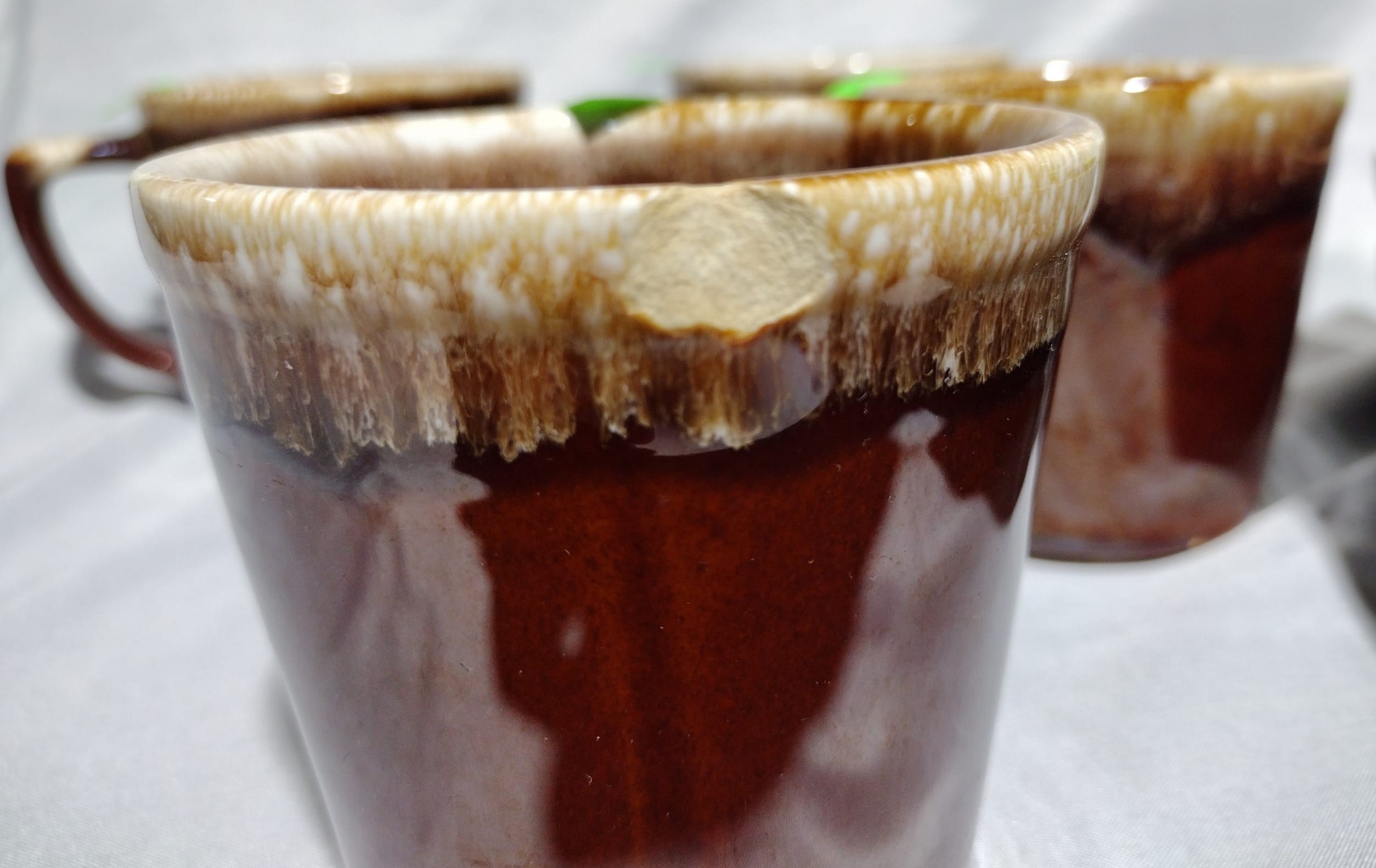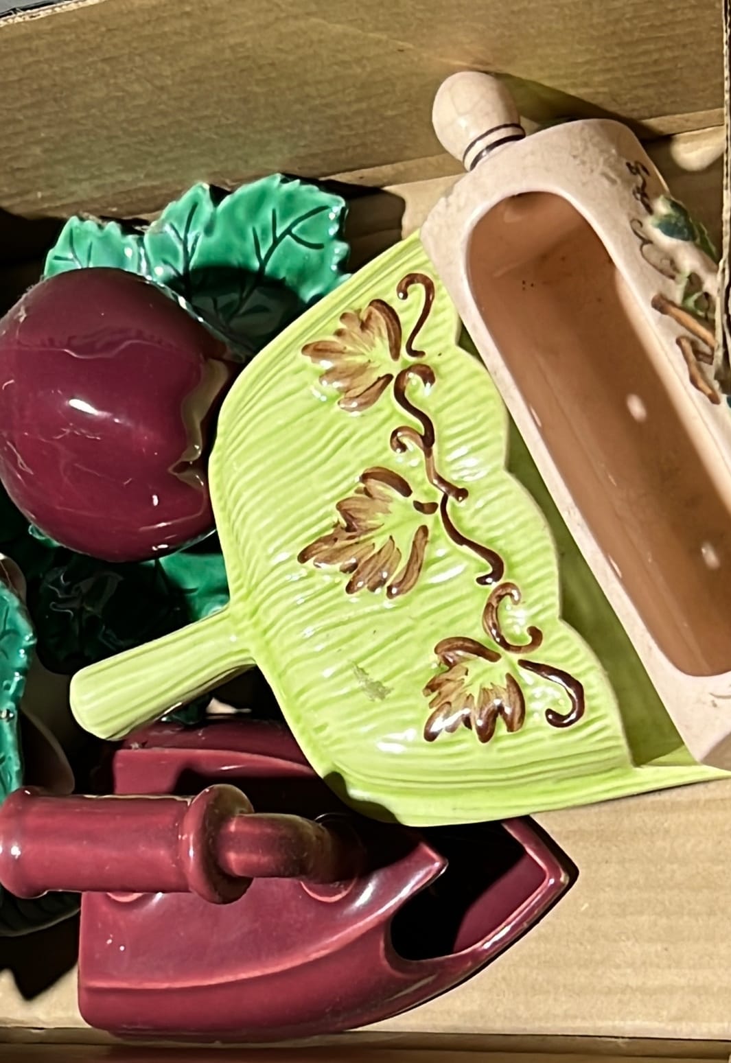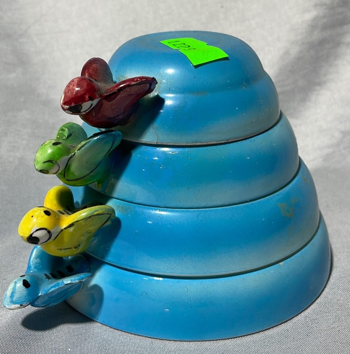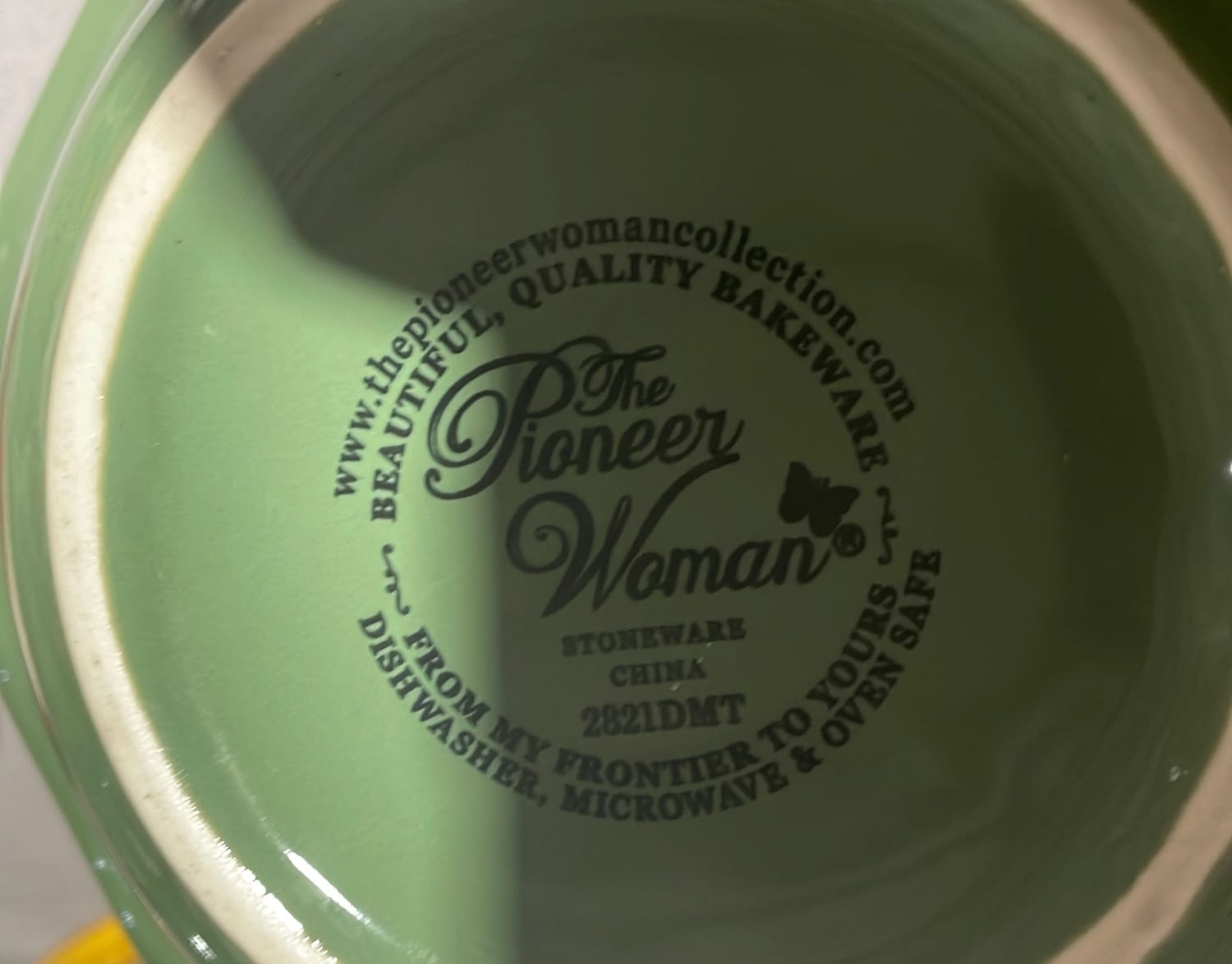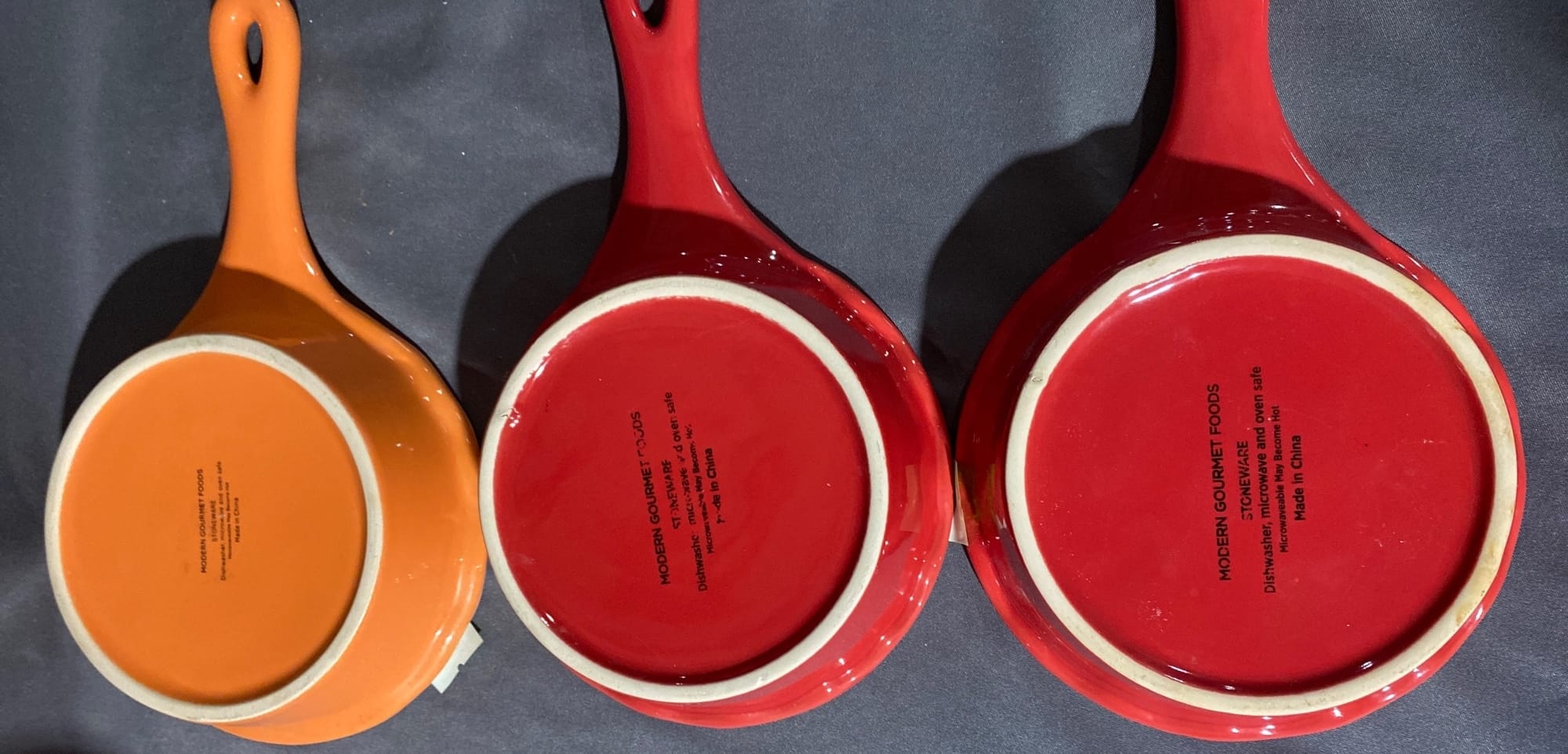 1211 Phlatzgraff ceramic snack trays 9", McCoy ceramic salt and pepper shakers 4", McCoy ceramic mugs-rim is chipped on one 3"