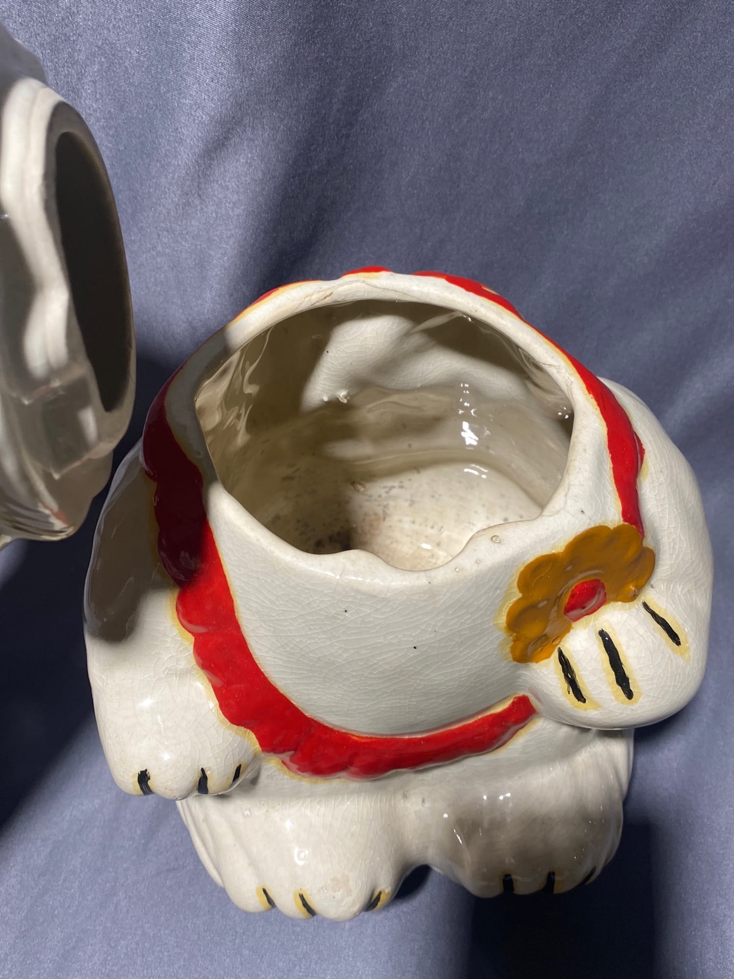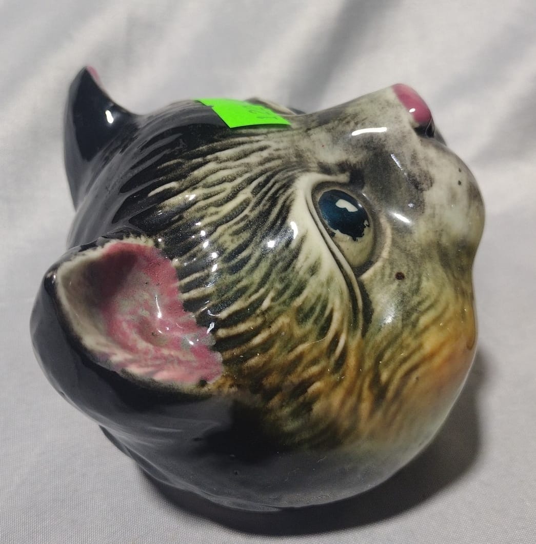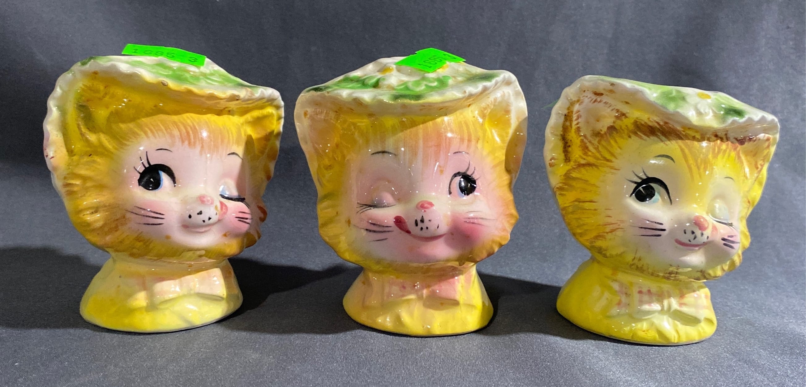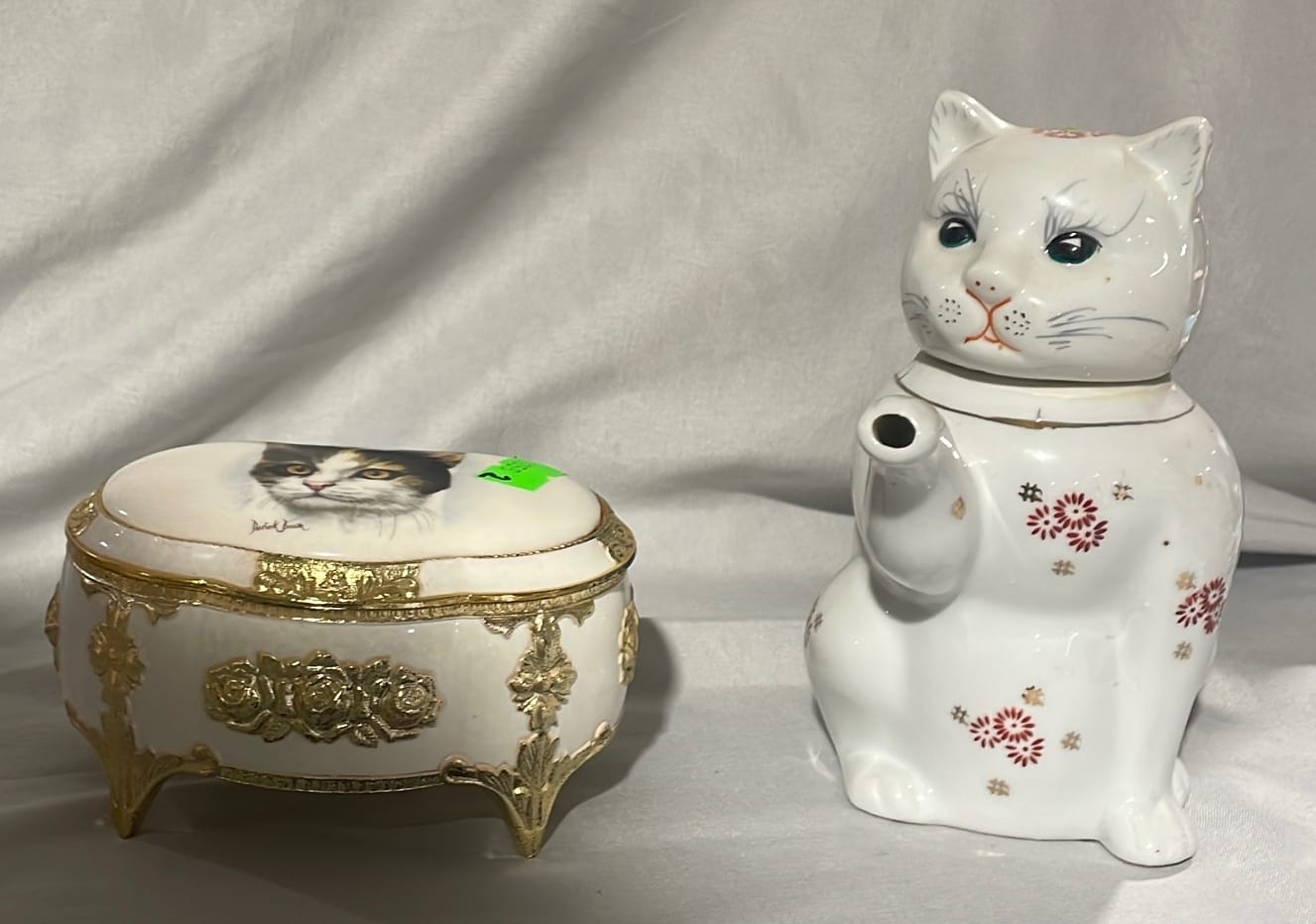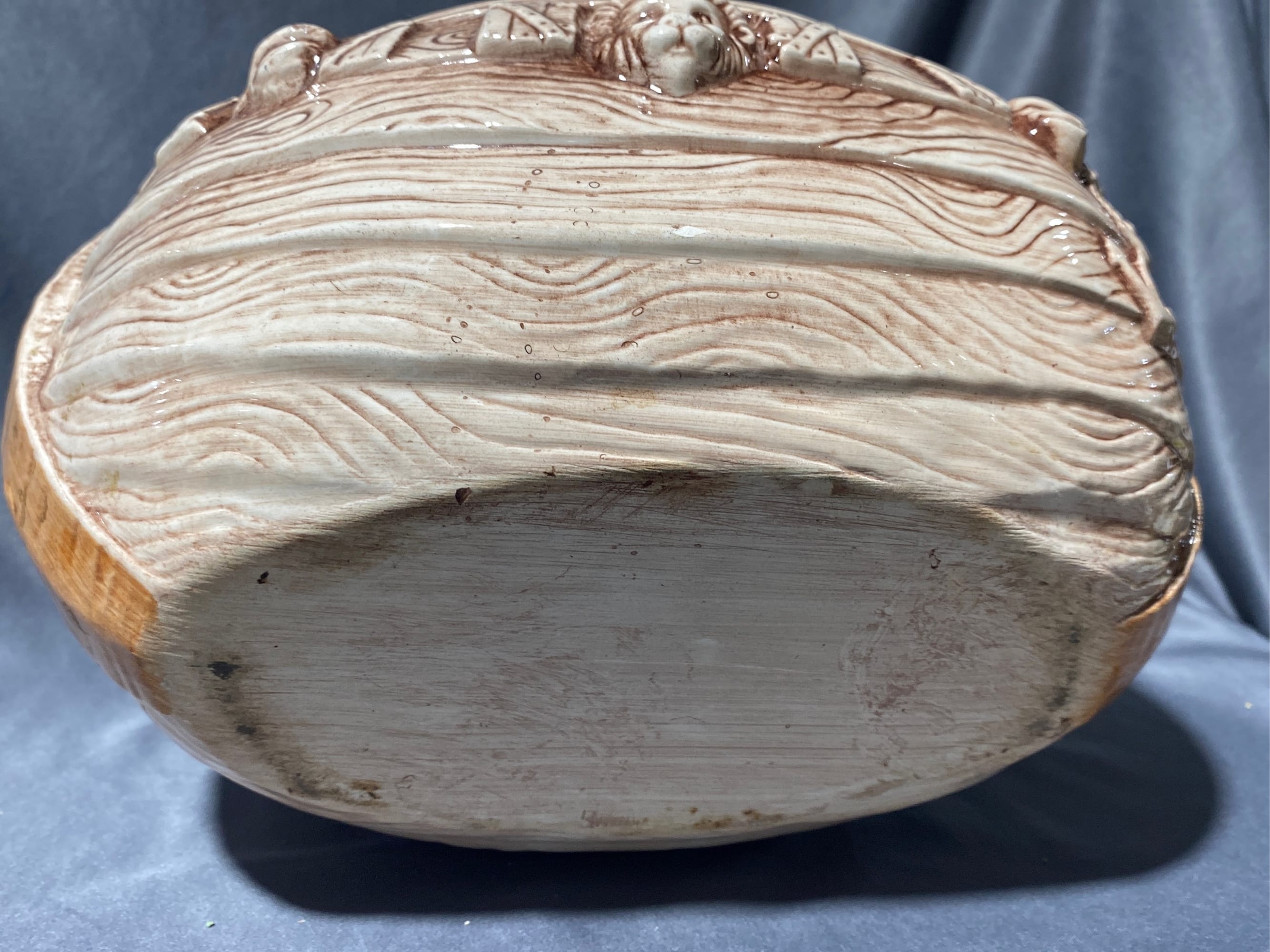 1221 Ceramic cat tea light holder 3"x4", ceramic cat with yarn planter-chipped 6"x8"