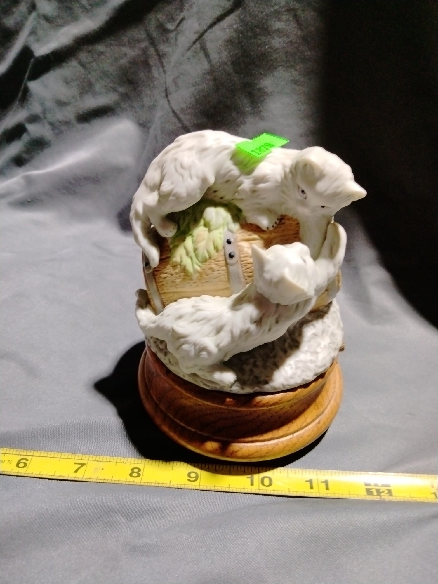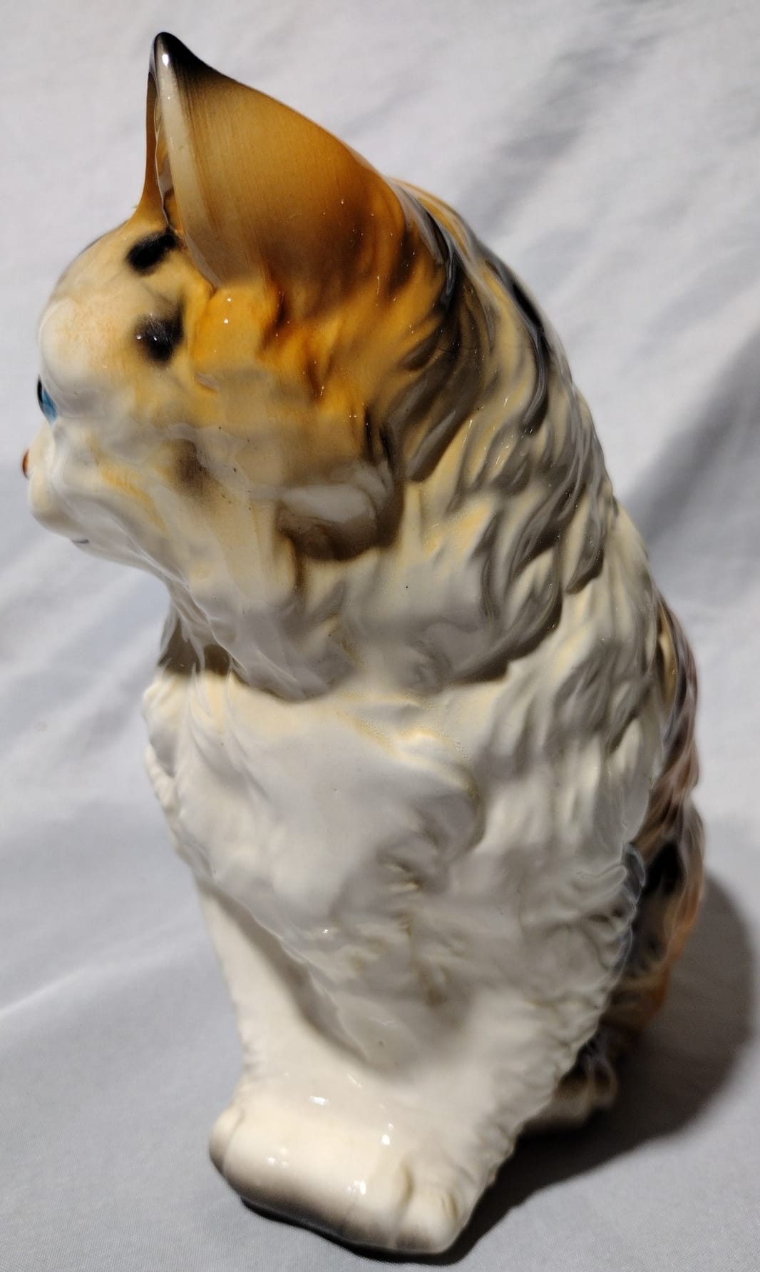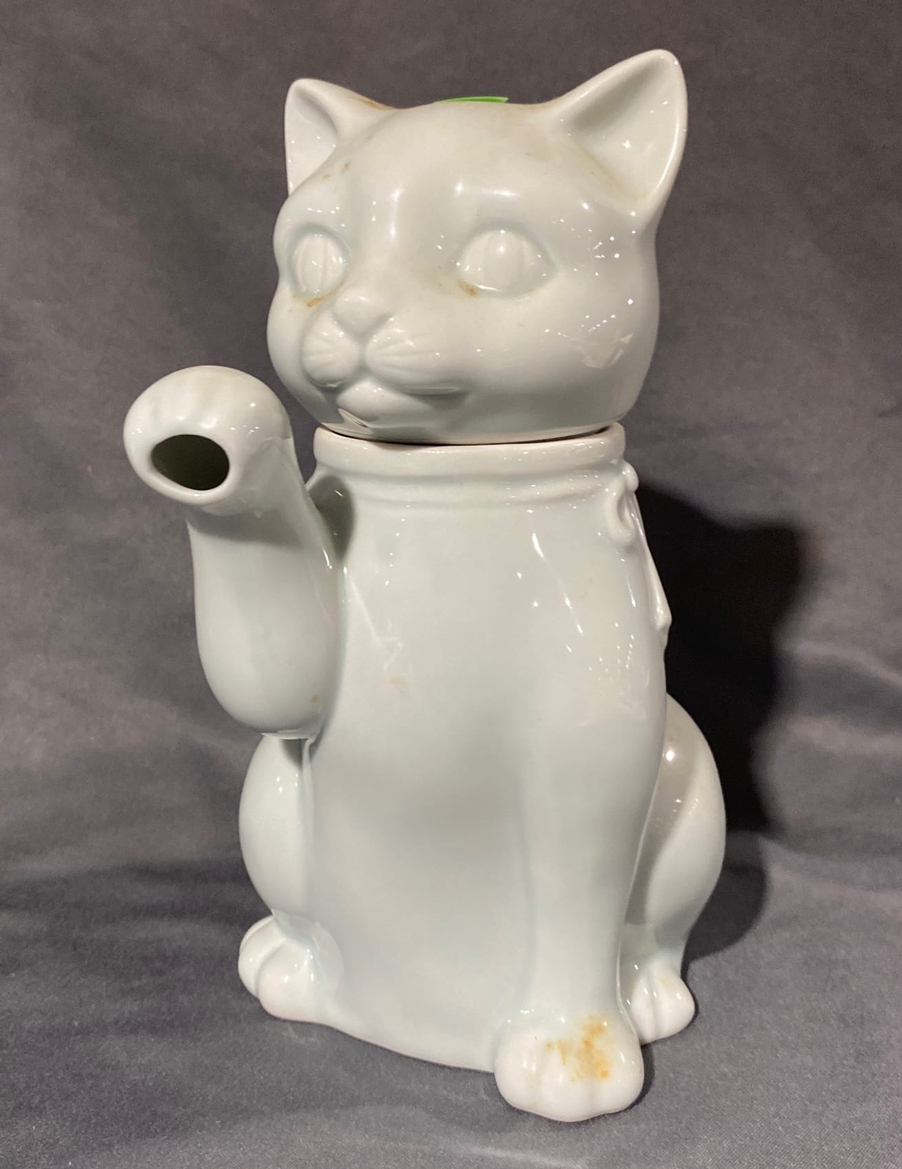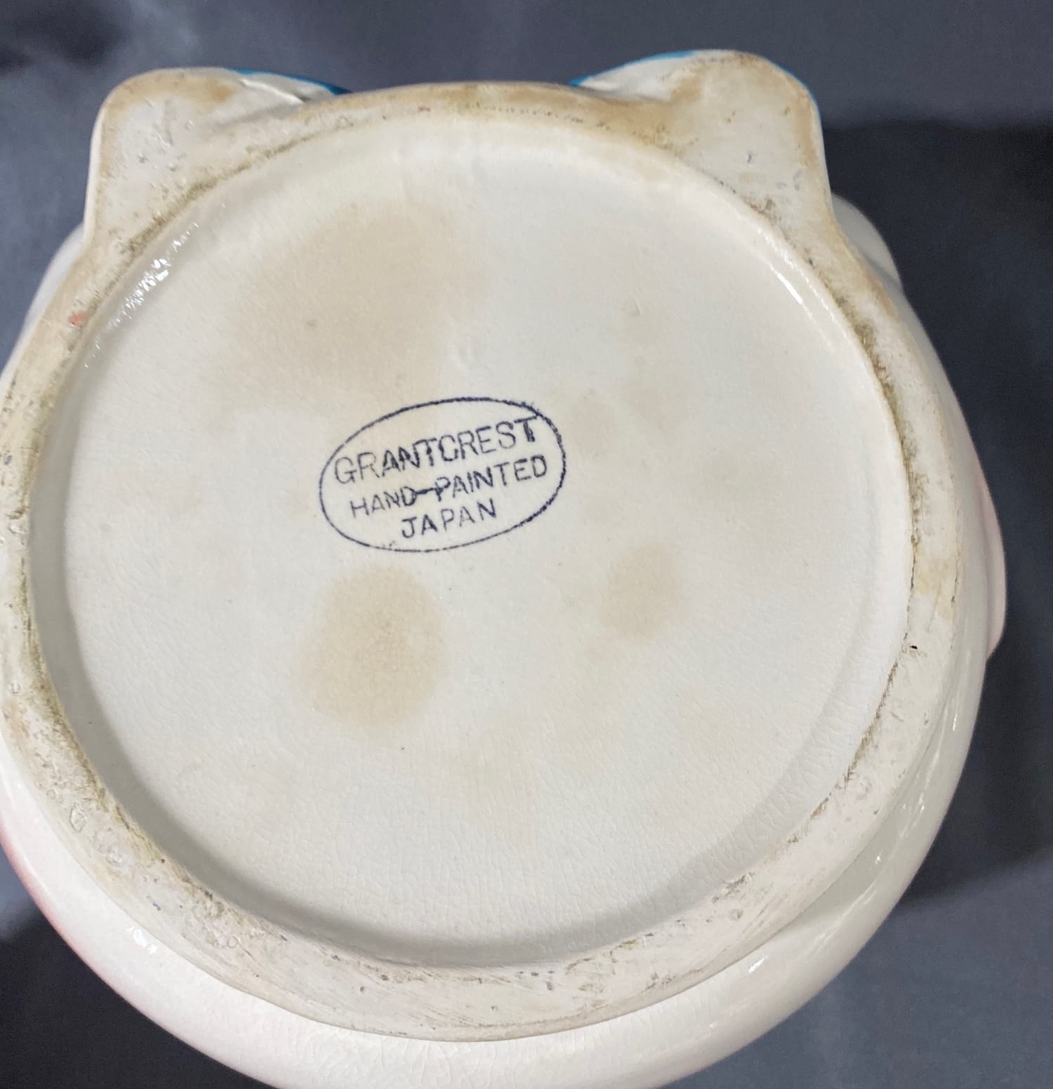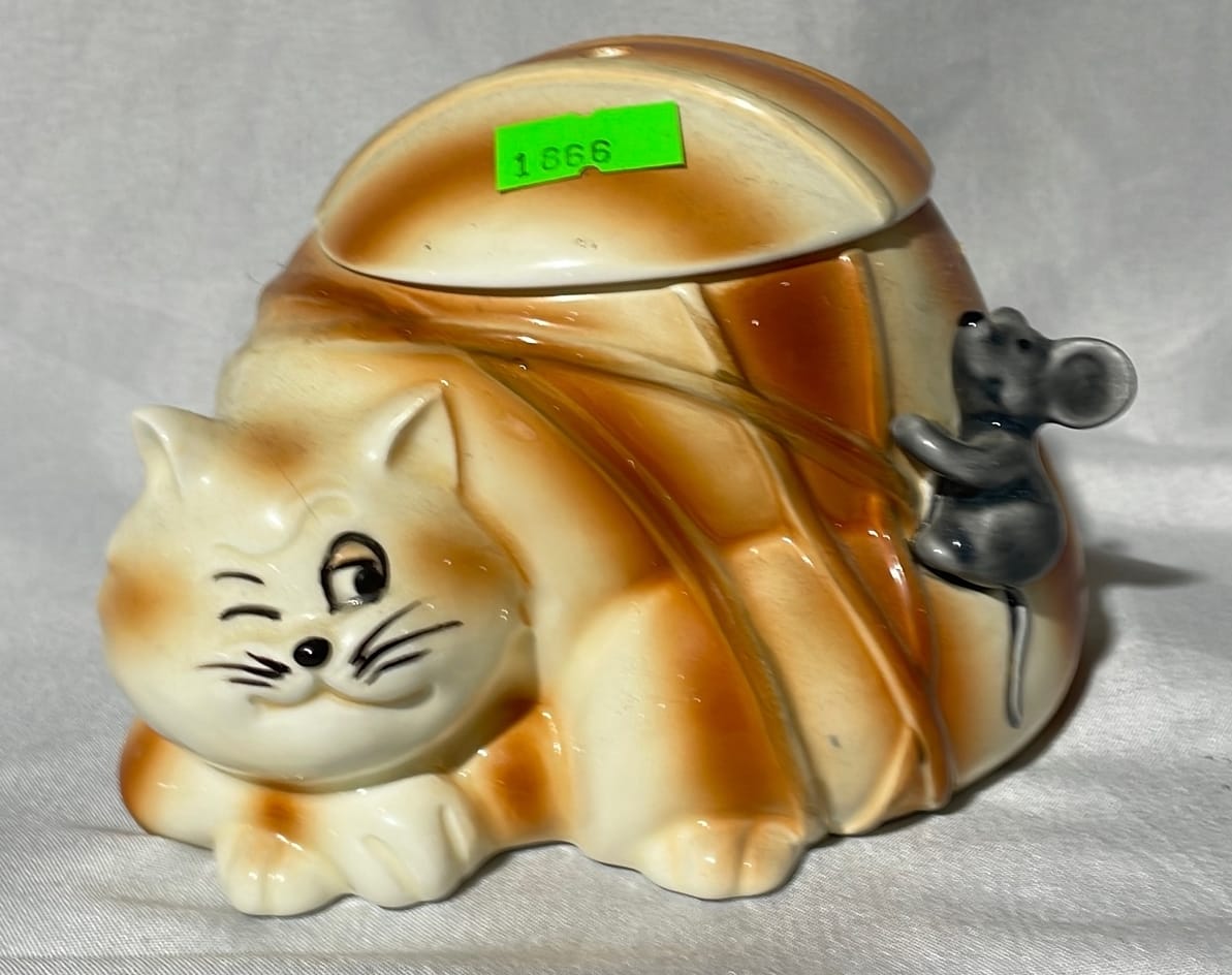 1221 Ceramic cat tea light holder 3"x4", ceramic cat with yarn planter-chipped 6"x8"