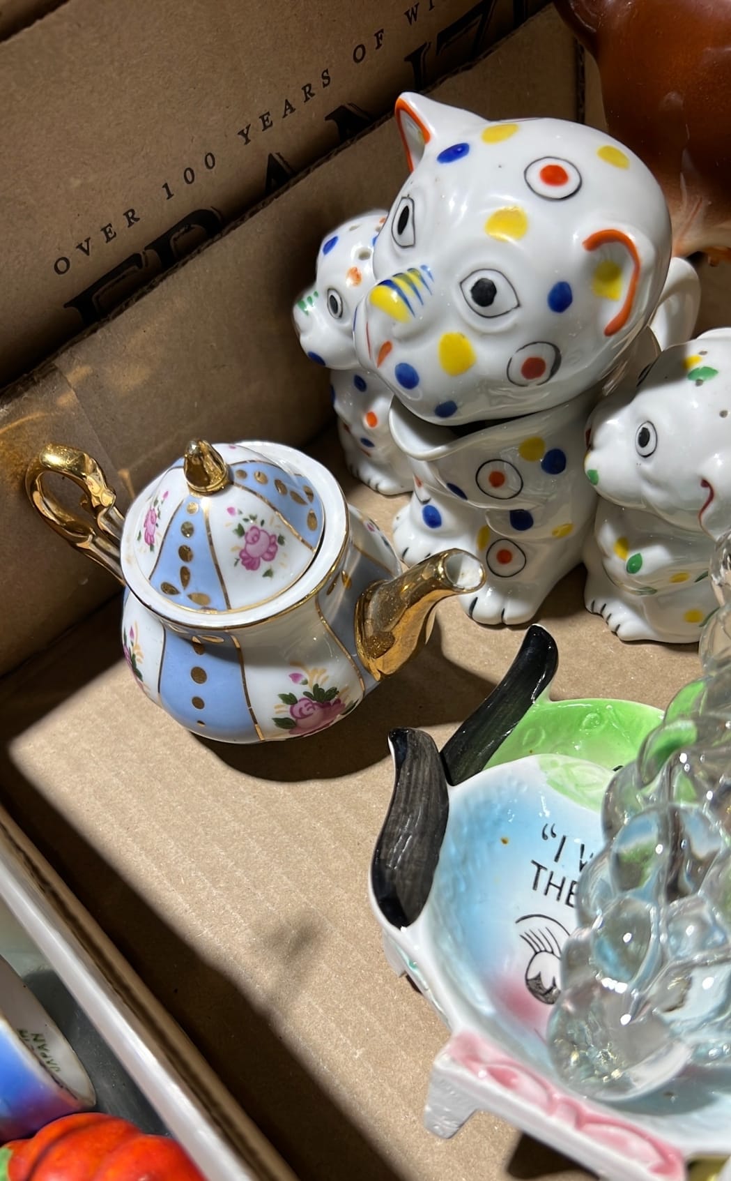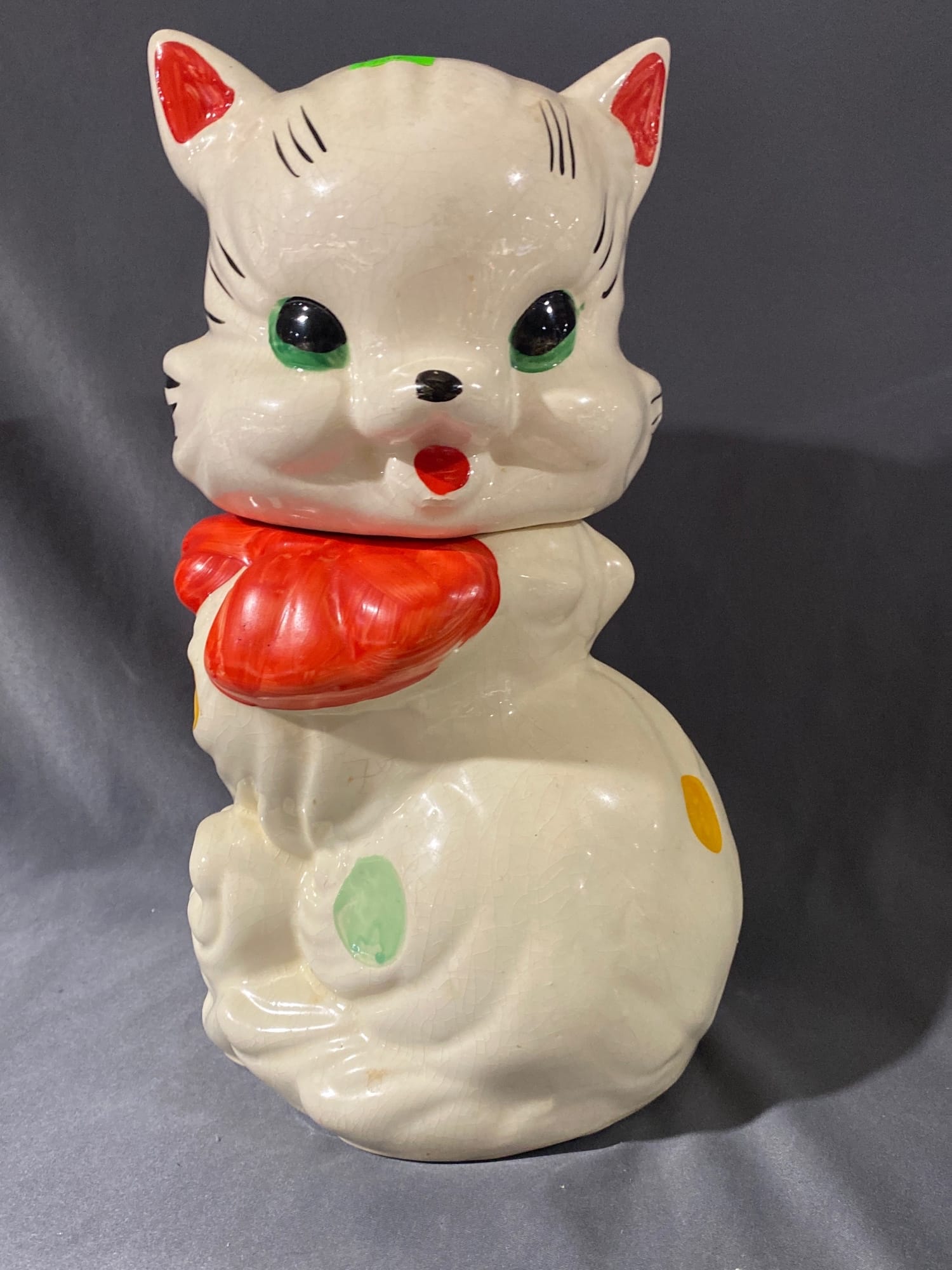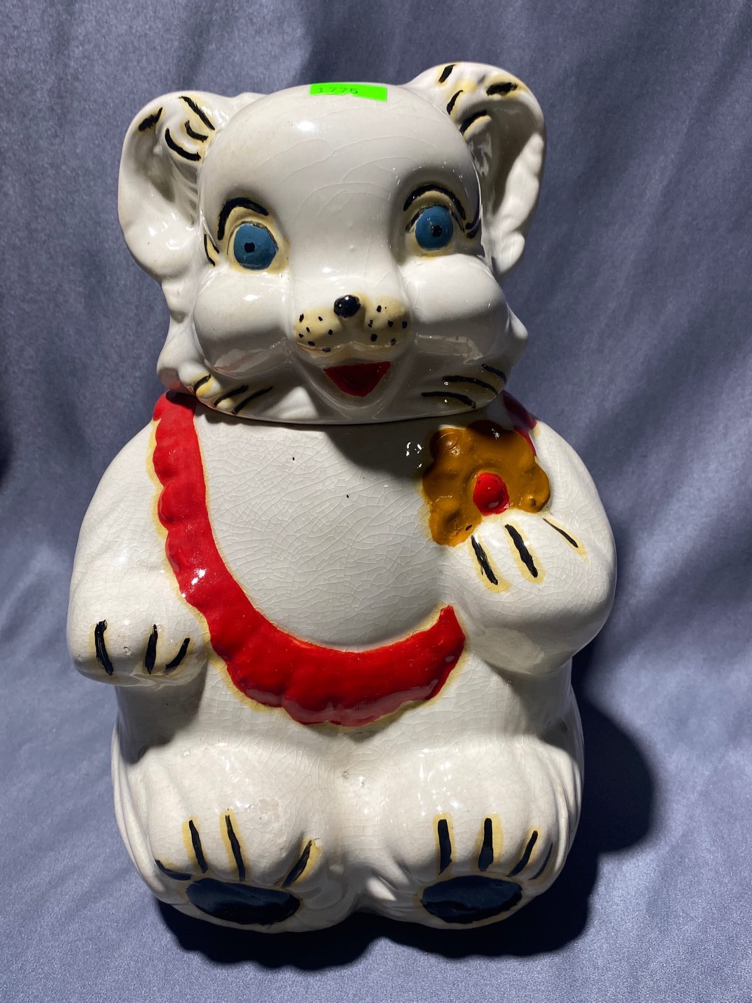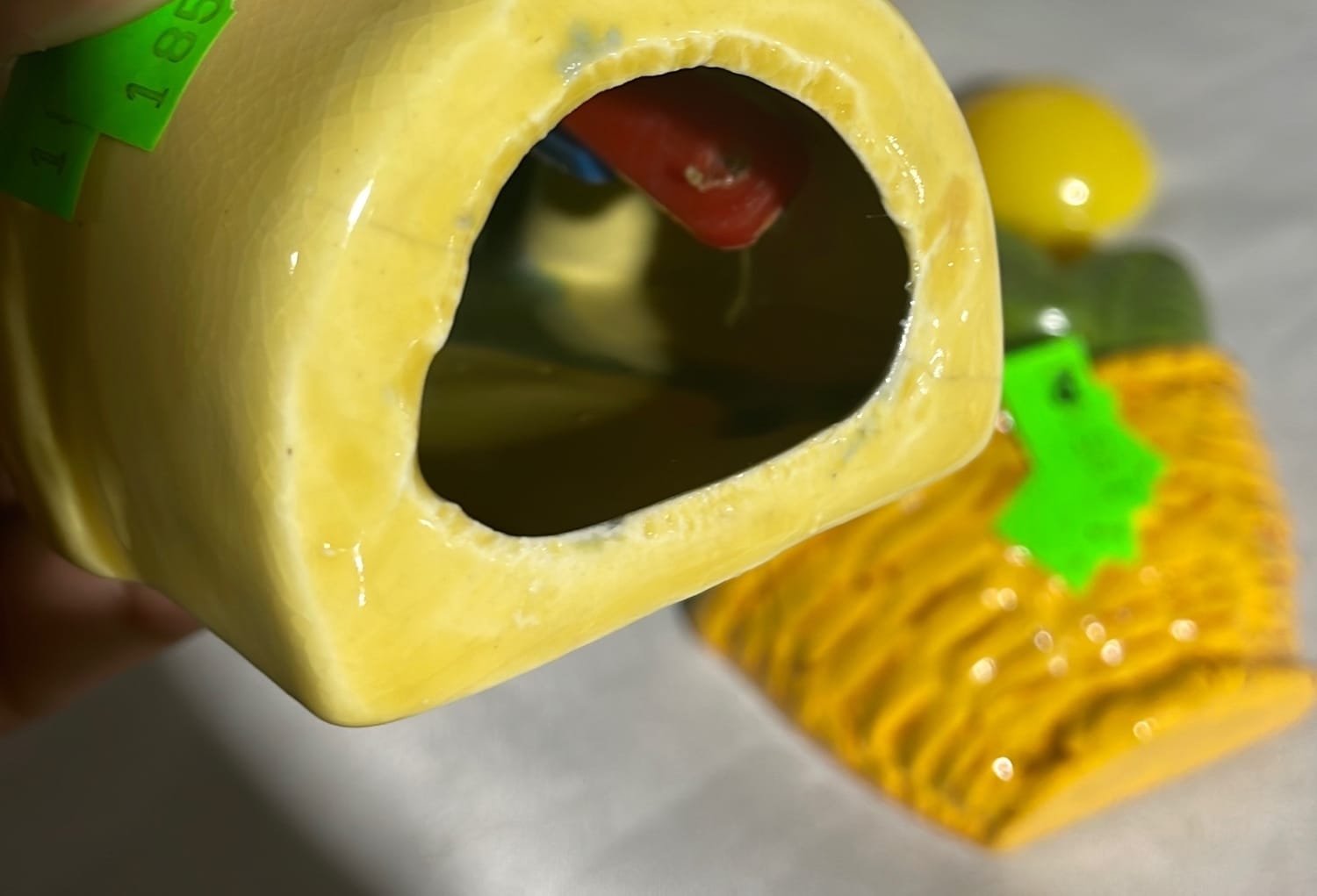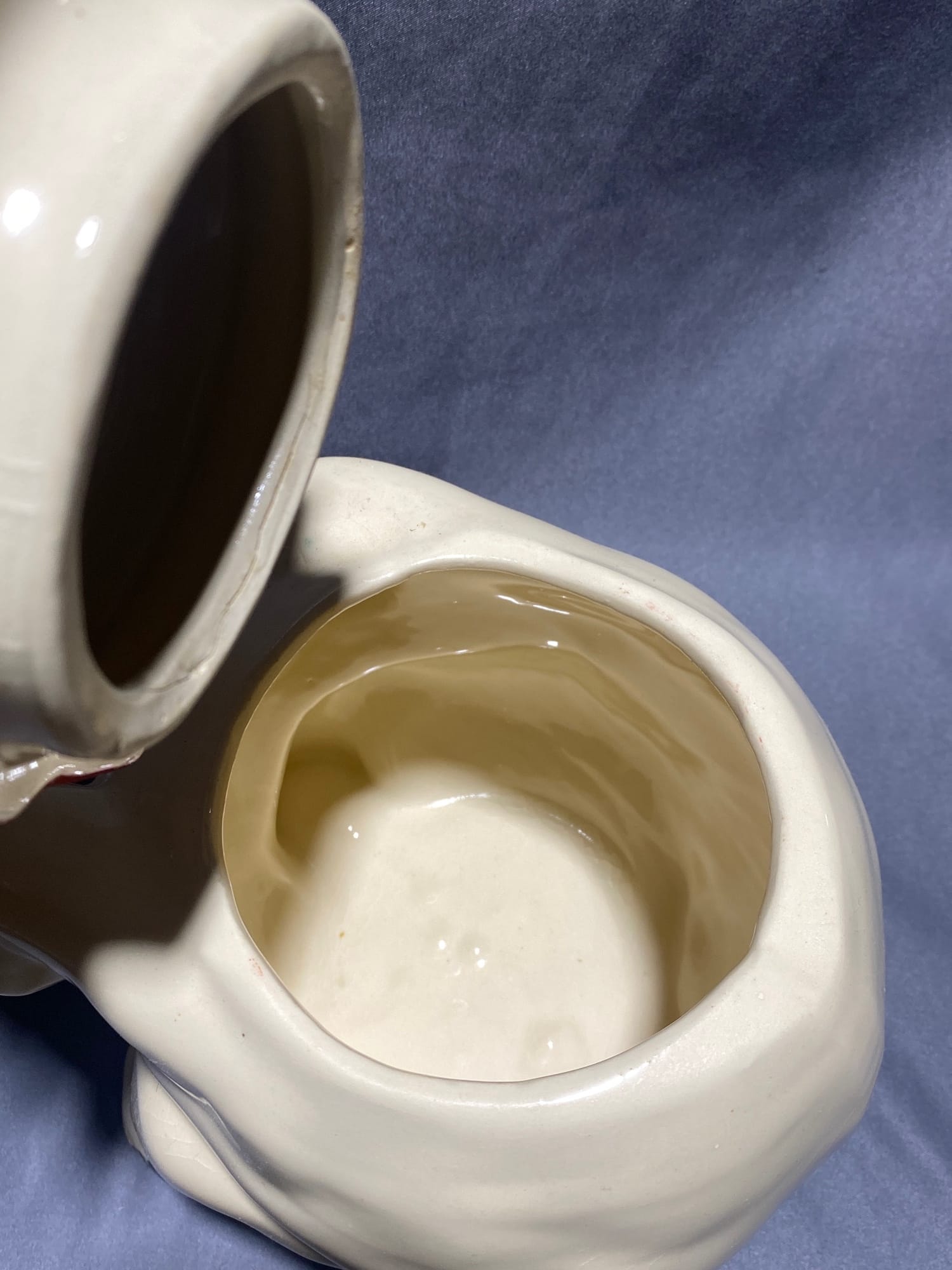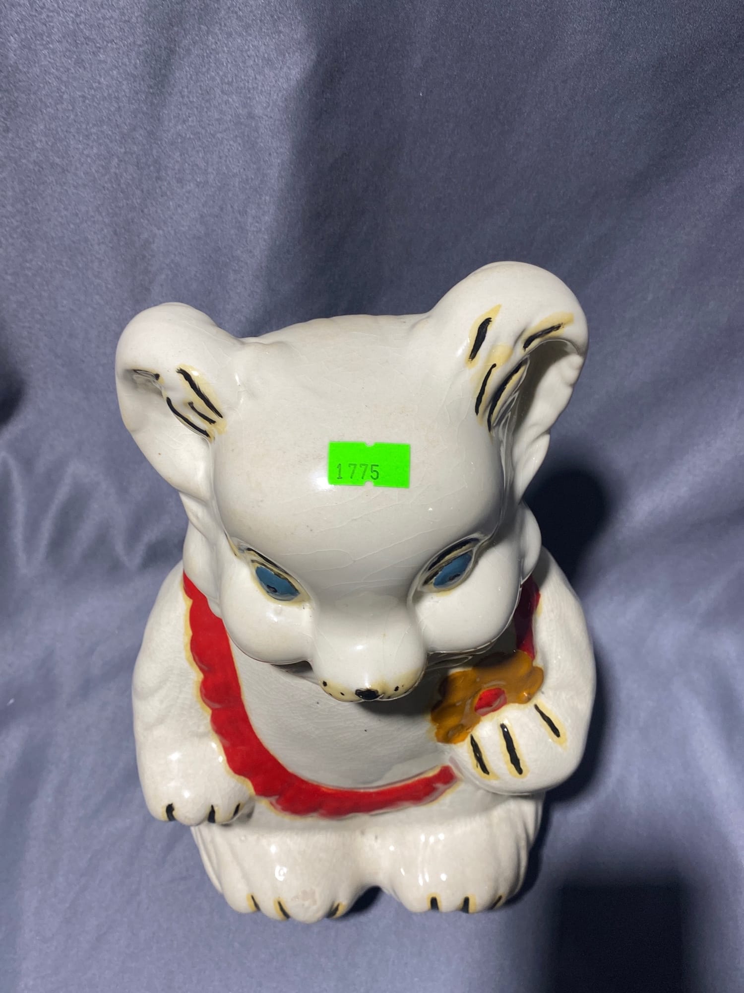 1221 Ceramic cat tea light holder 3"x4", ceramic cat with yarn planter-chipped 6"x8"