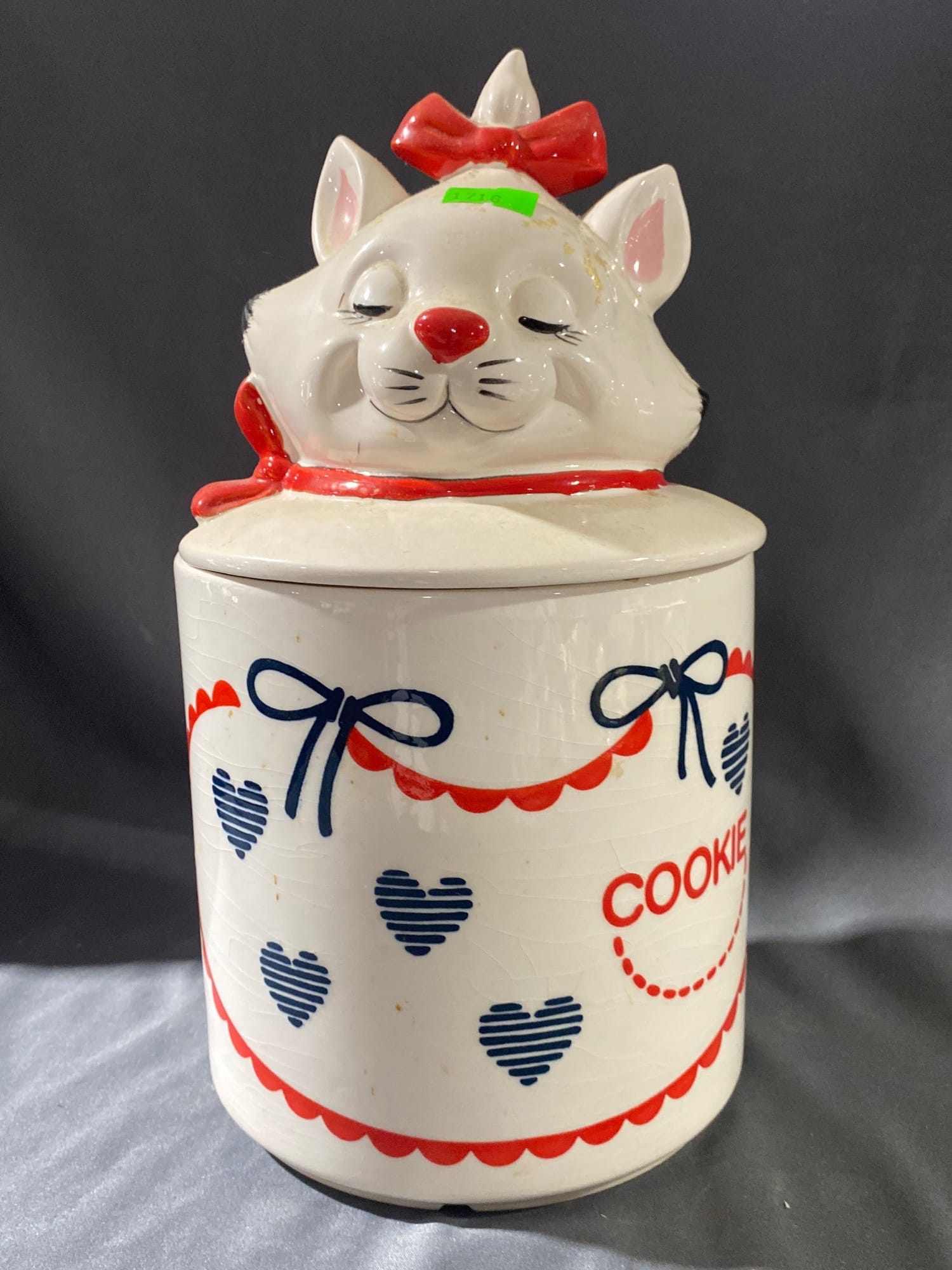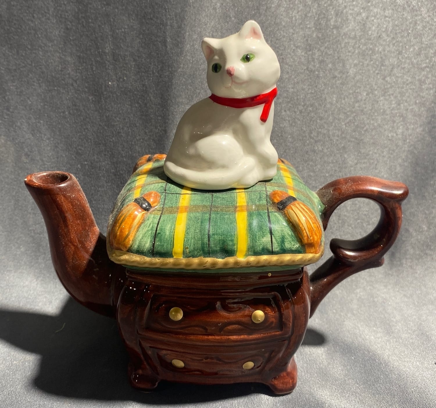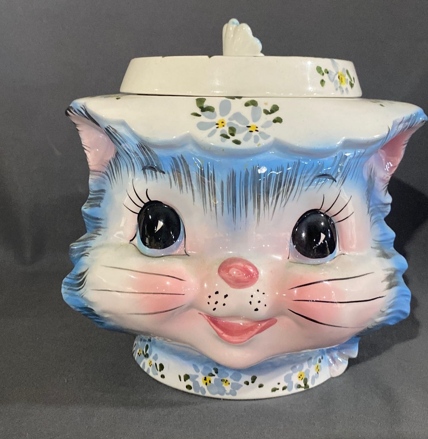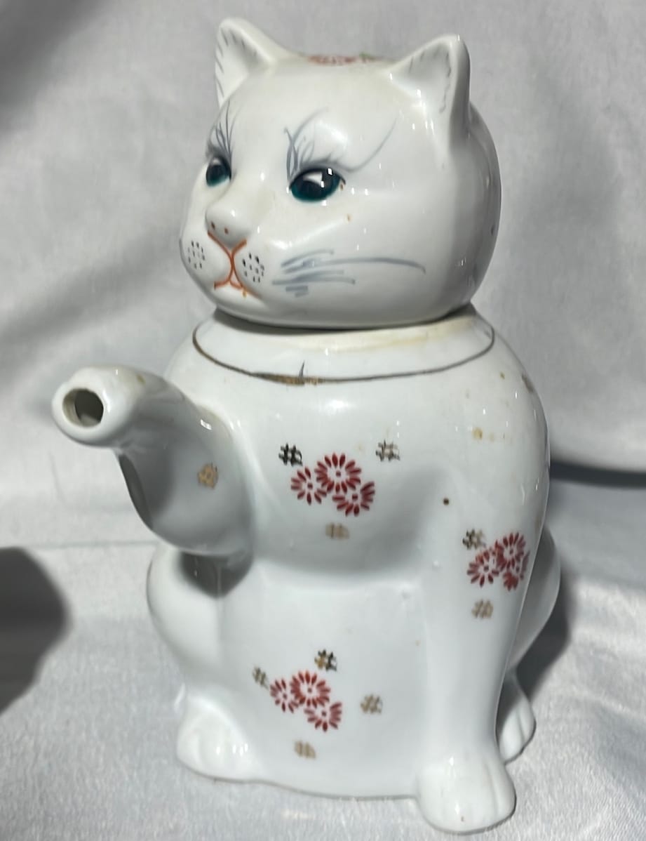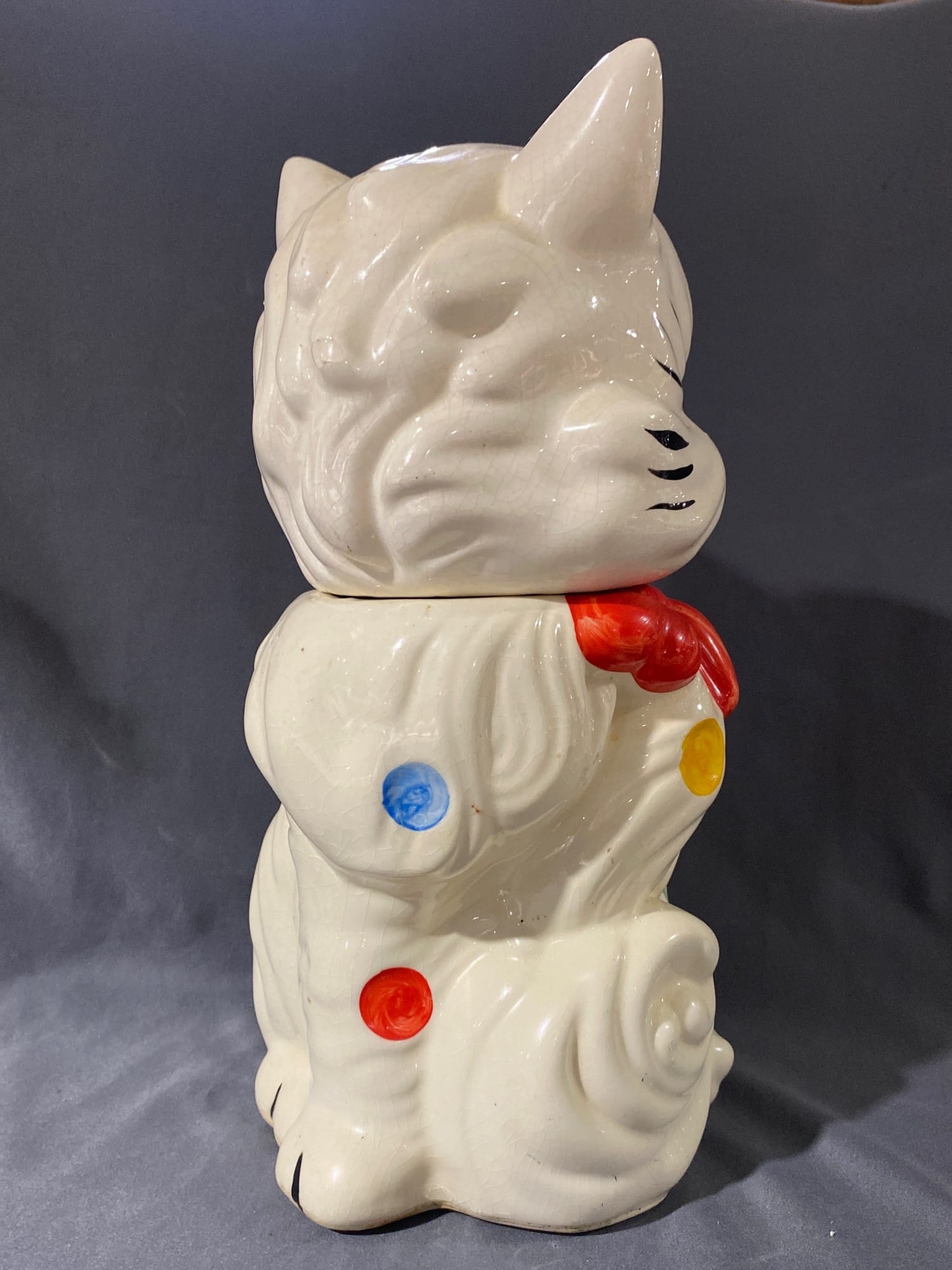 1221 Ceramic cat tea light holder 3"x4", ceramic cat with yarn planter-chipped 6"x8"