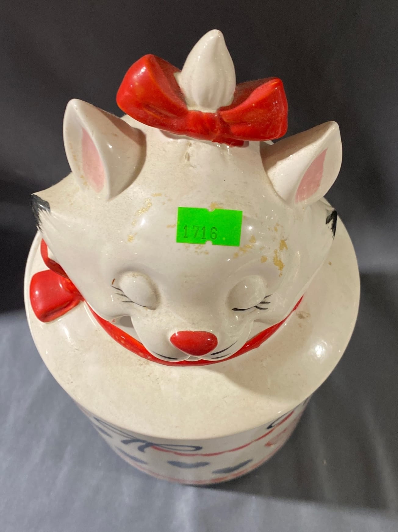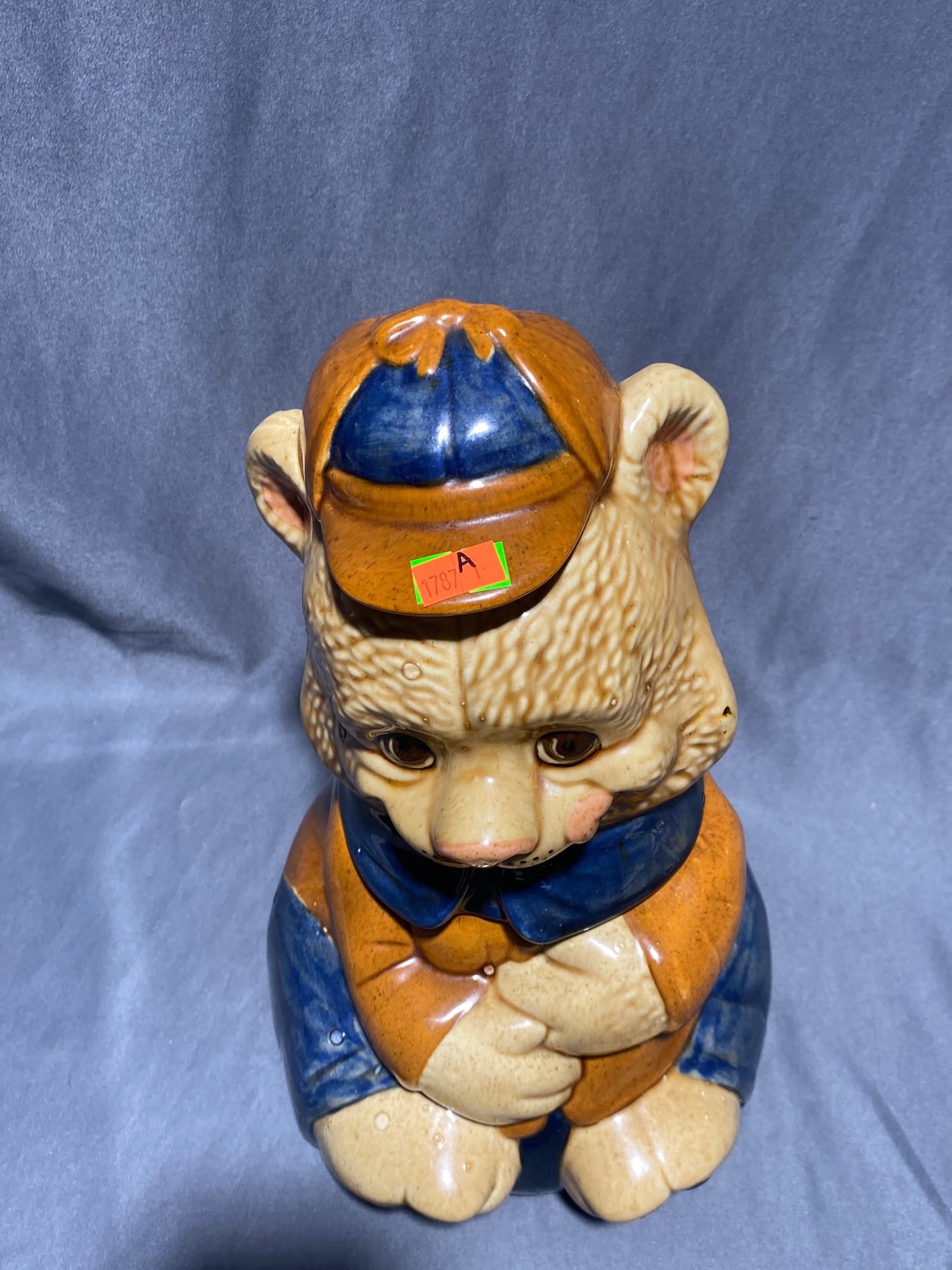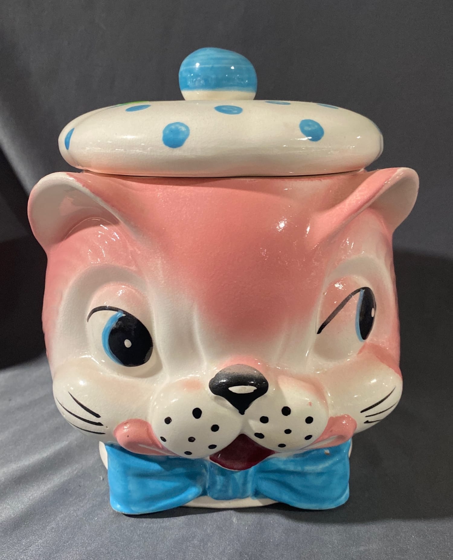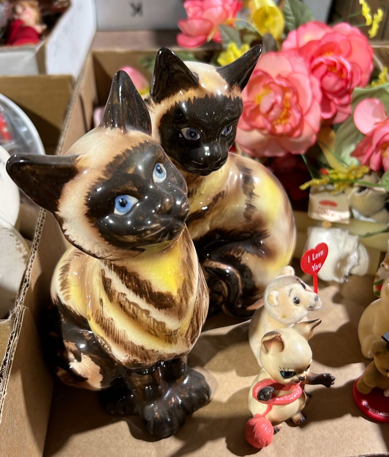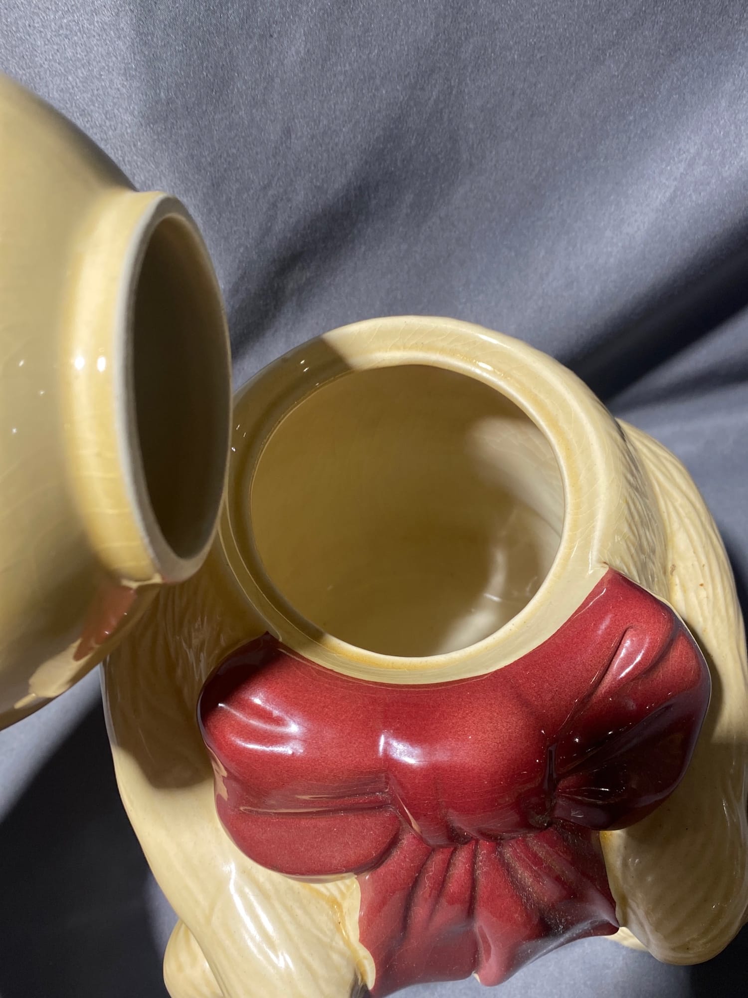 1221 Ceramic cat tea light holder 3"x4", ceramic cat with yarn planter-chipped 6"x8"
