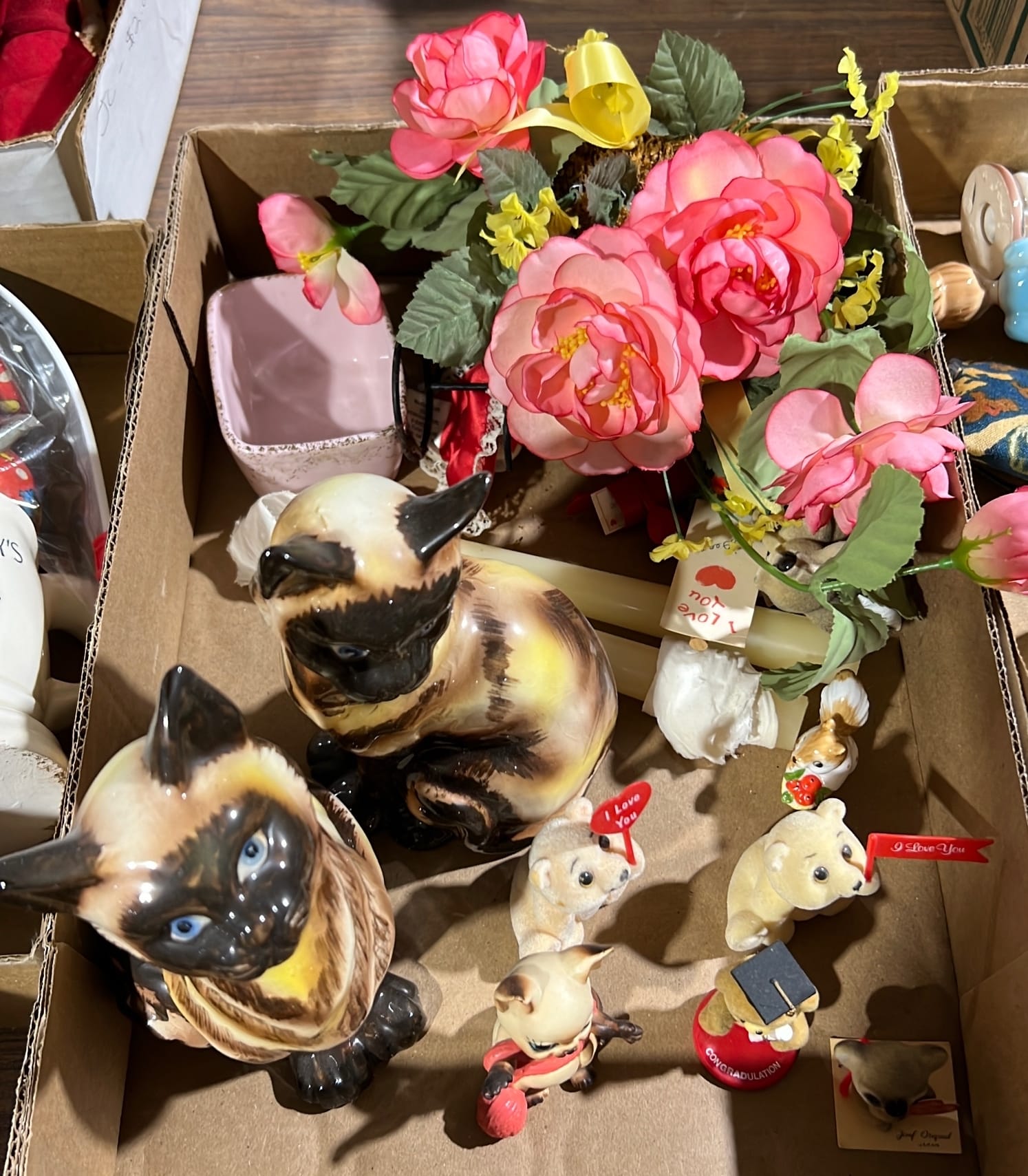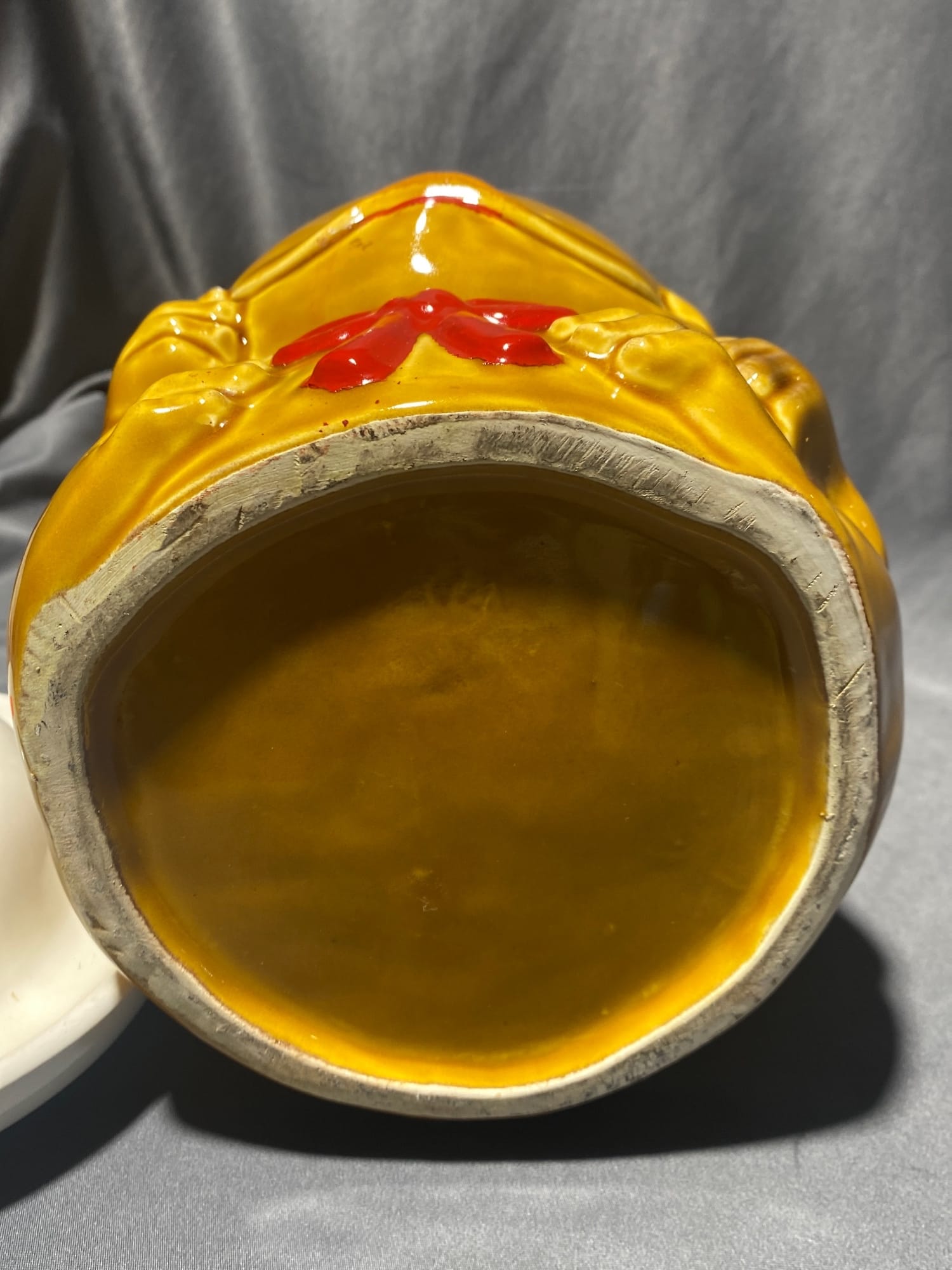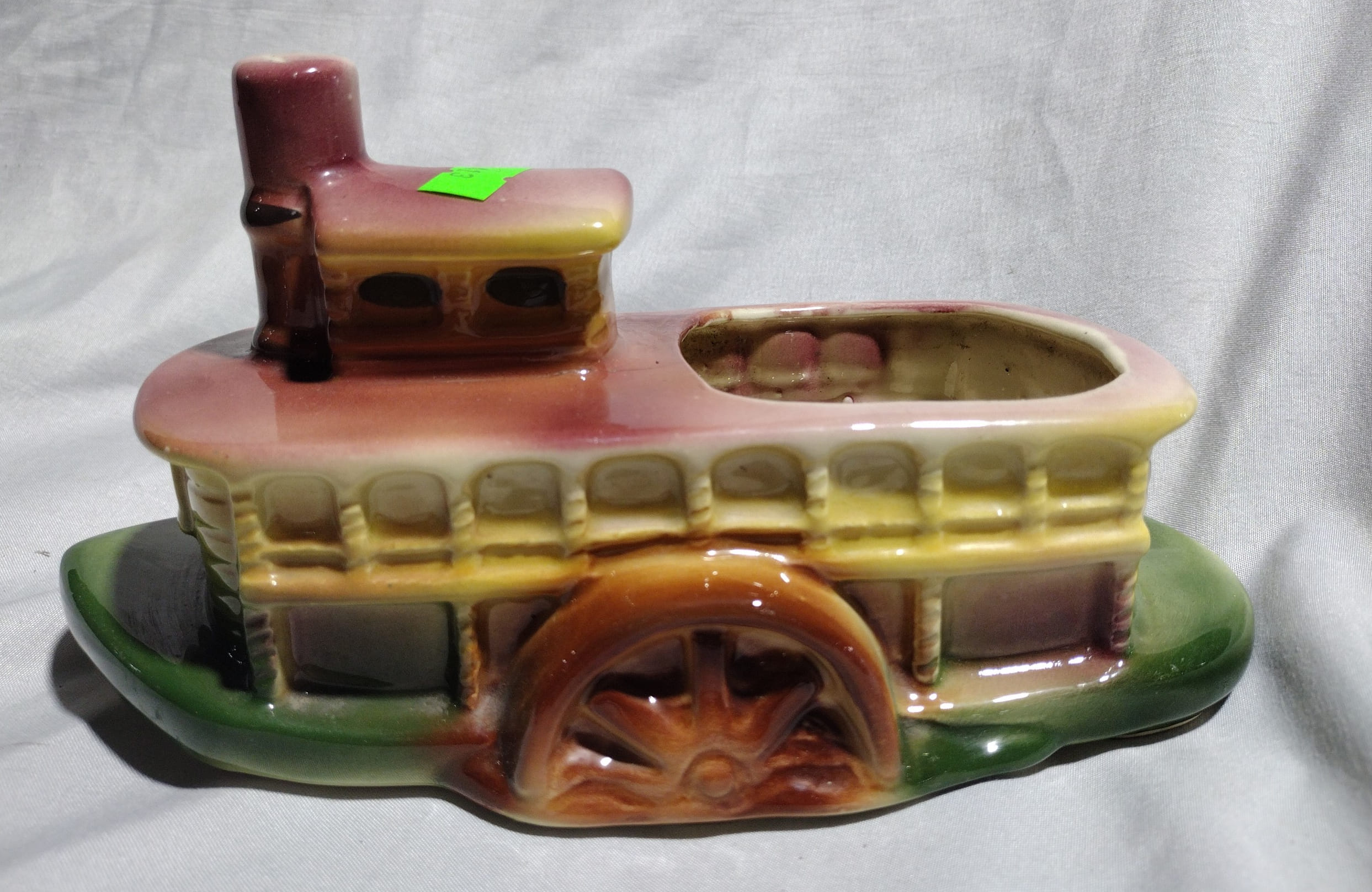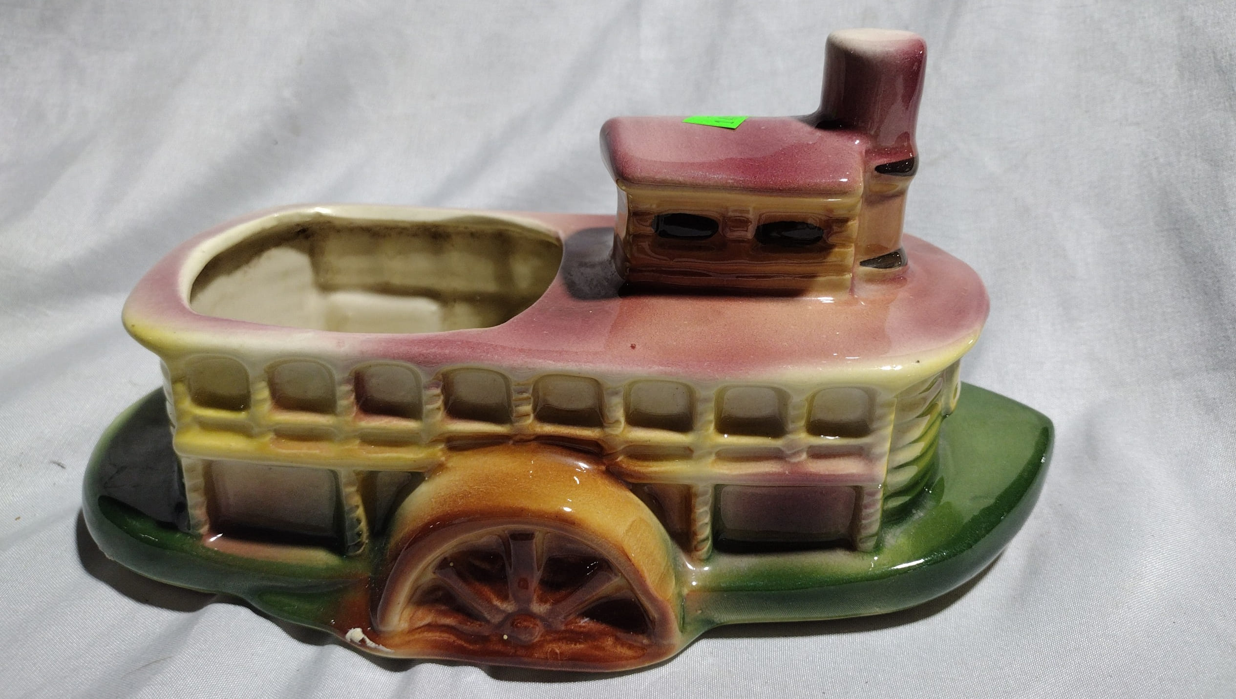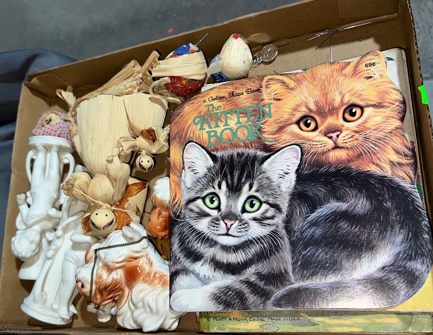 1221 Ceramic cat tea light holder 3"x4", ceramic cat with yarn planter-chipped 6"x8"