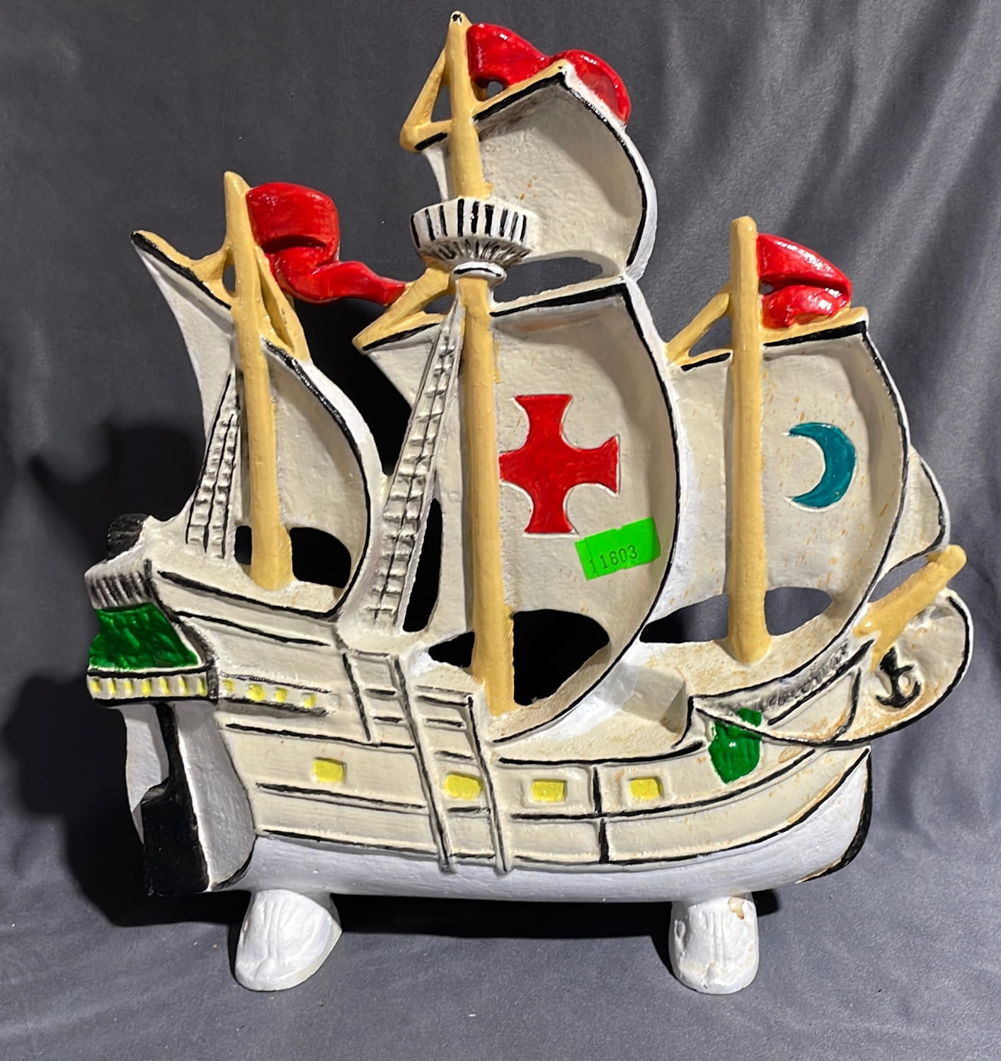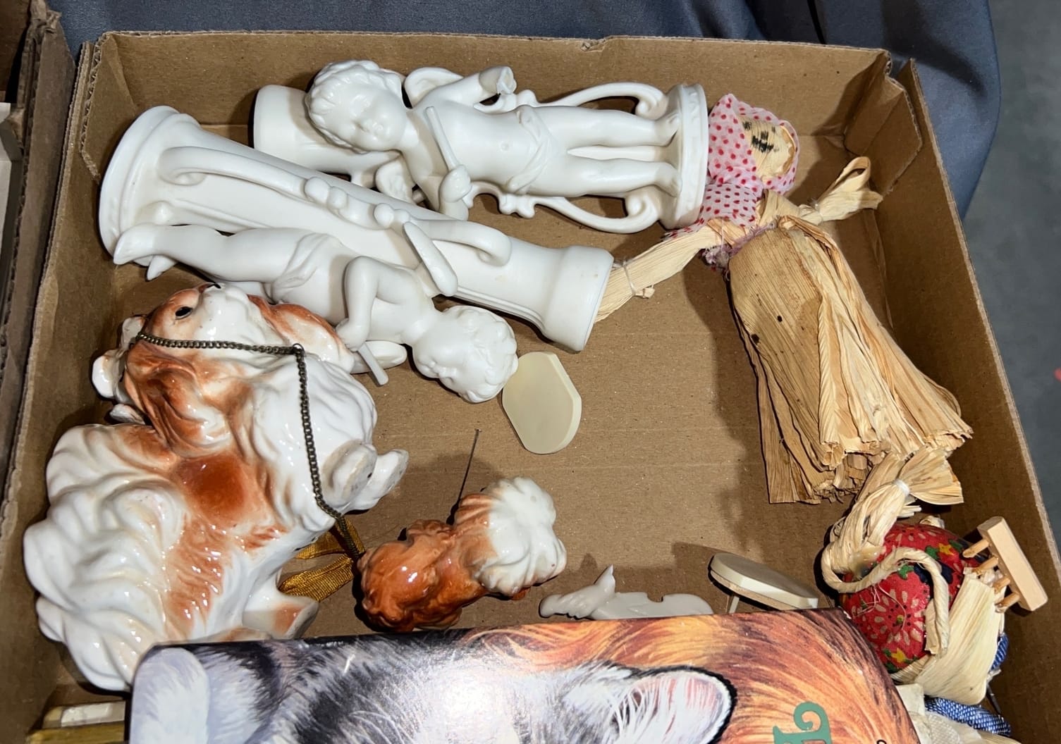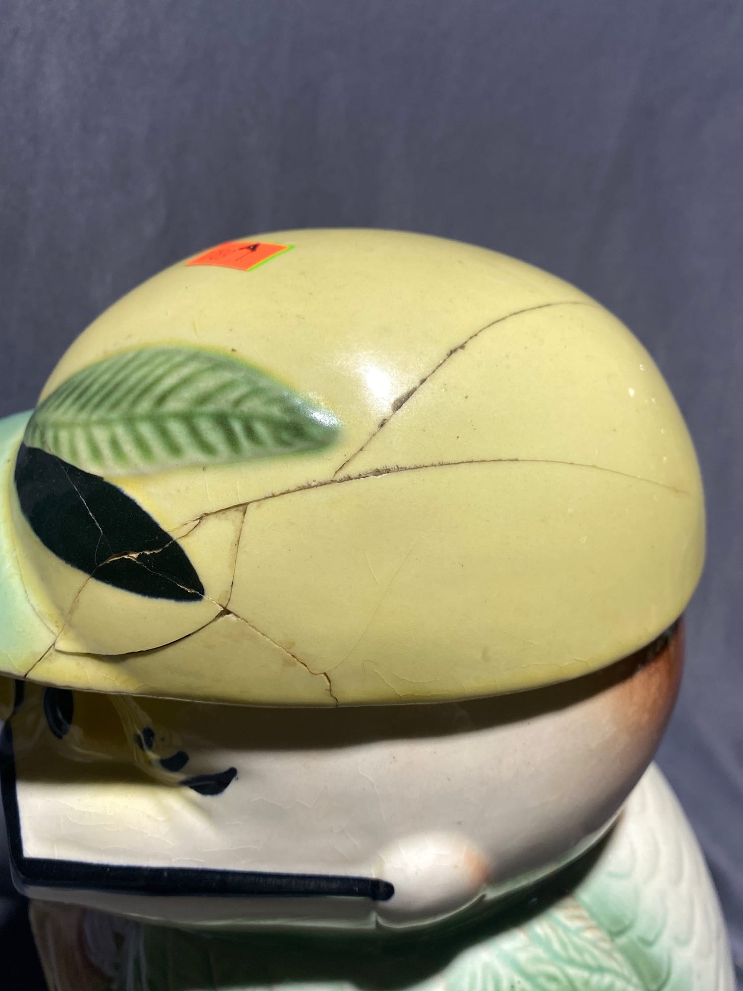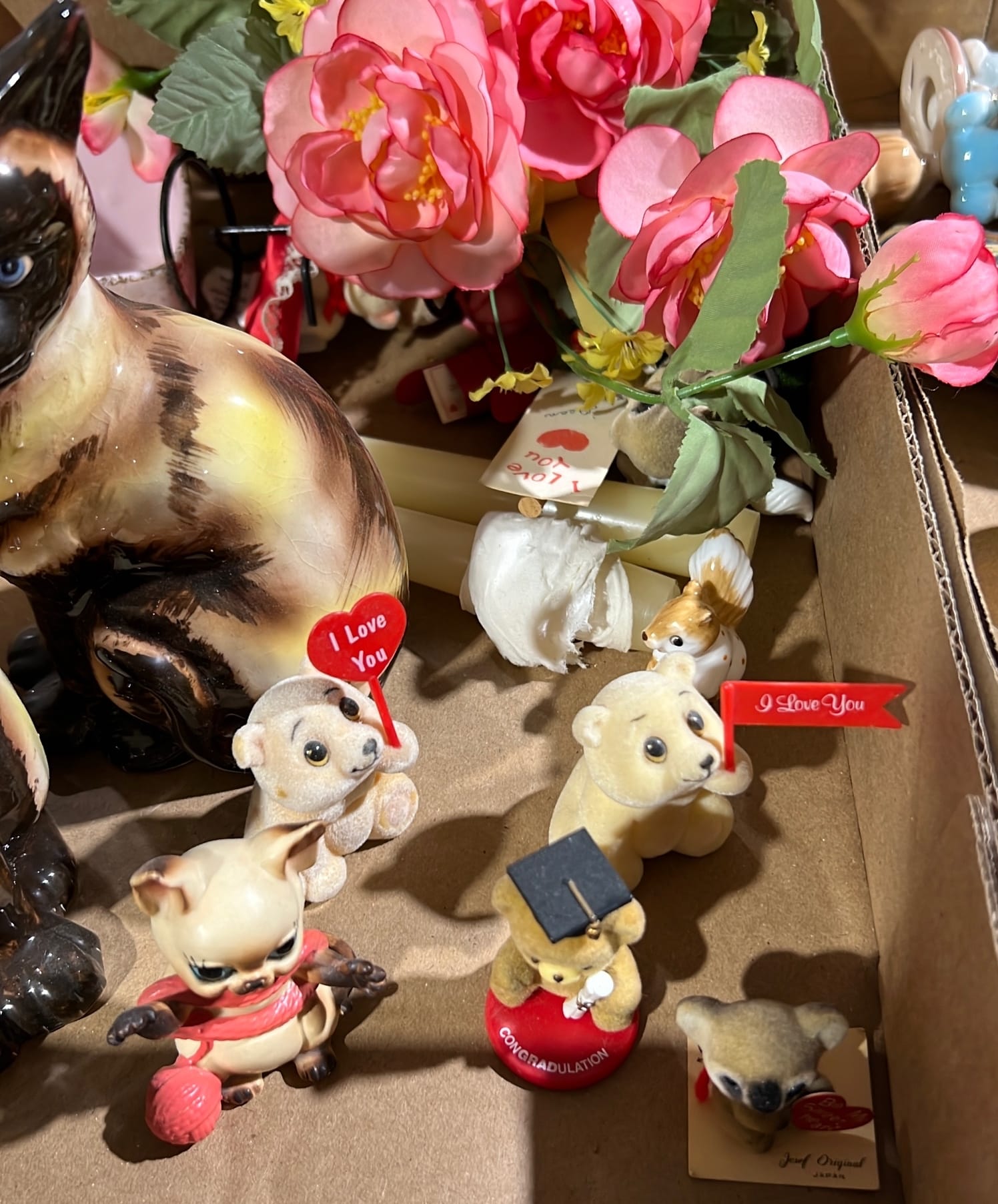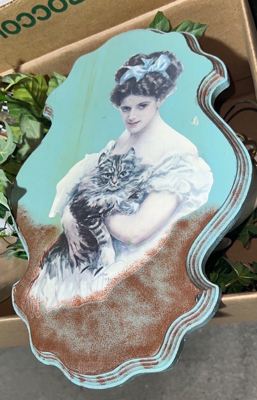 1221 Ceramic cat tea light holder 3"x4", ceramic cat with yarn planter-chipped 6"x8"