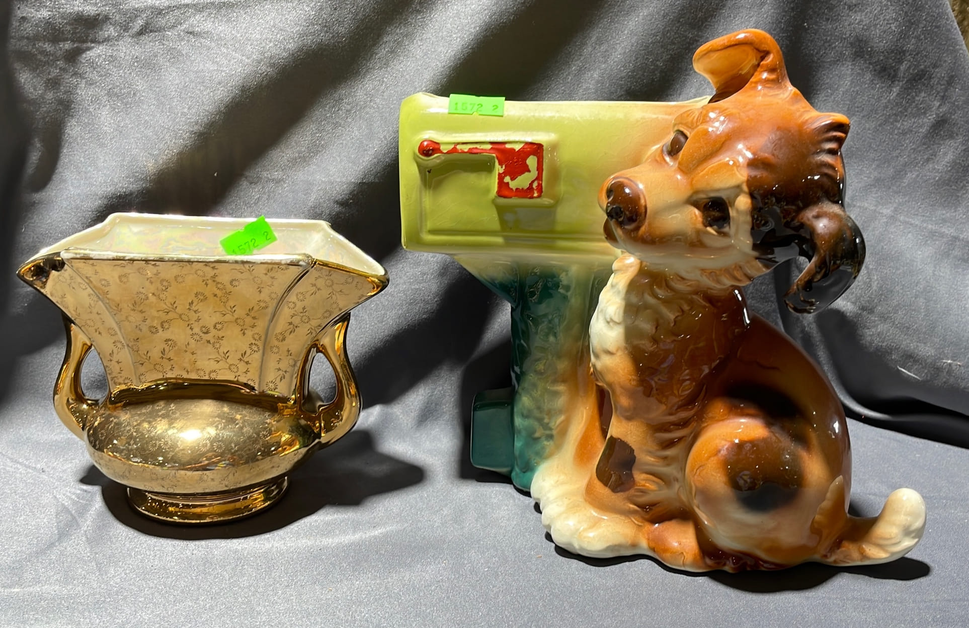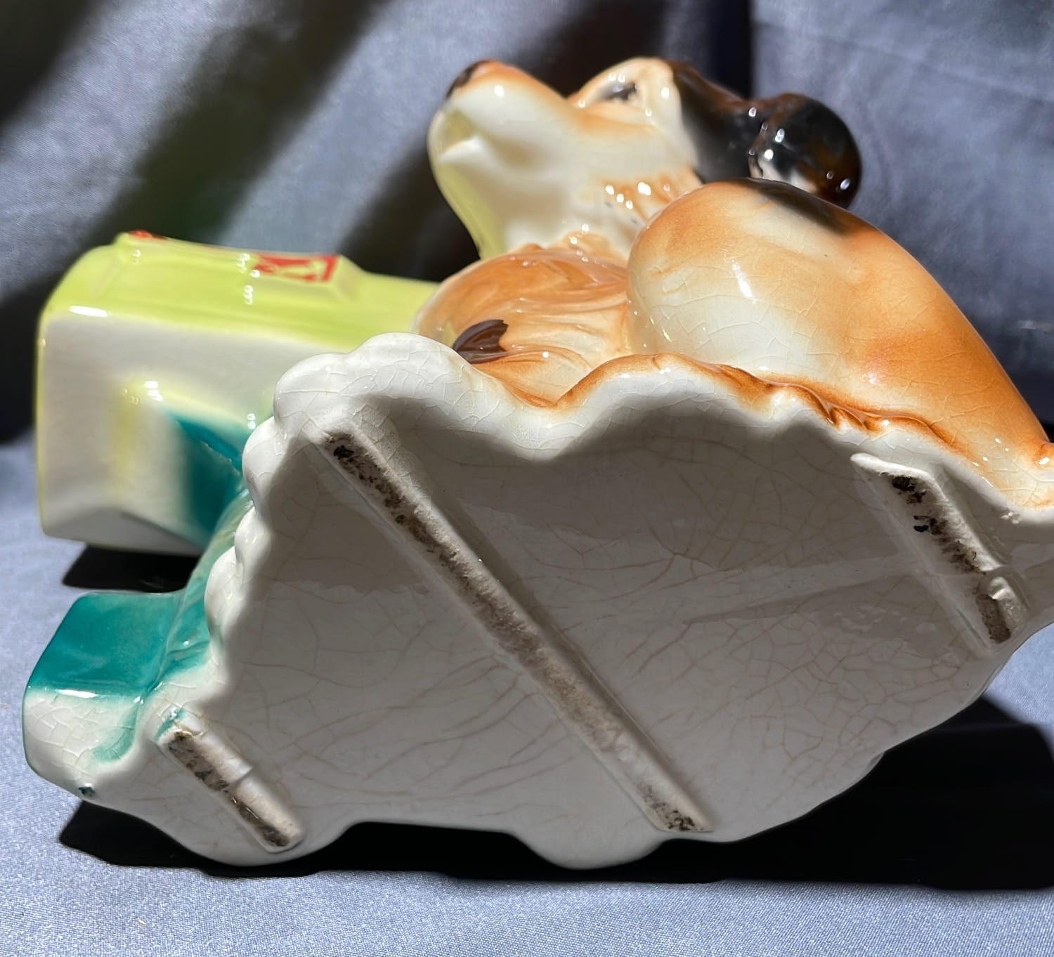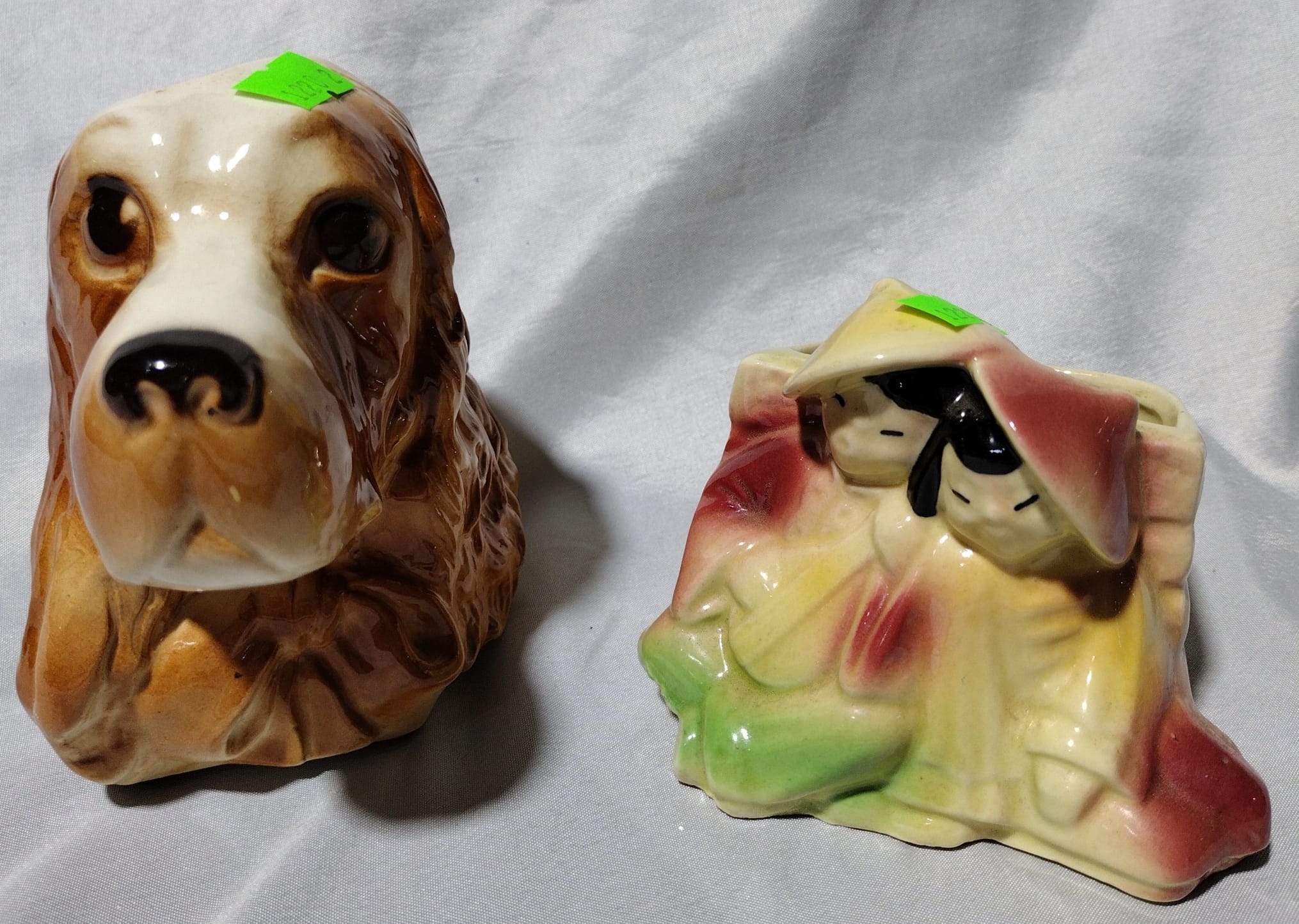 1220 Royal Copley ceramic spaniel planter 3"x5", planter 4"x4"
