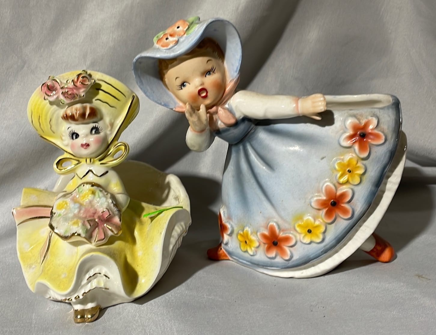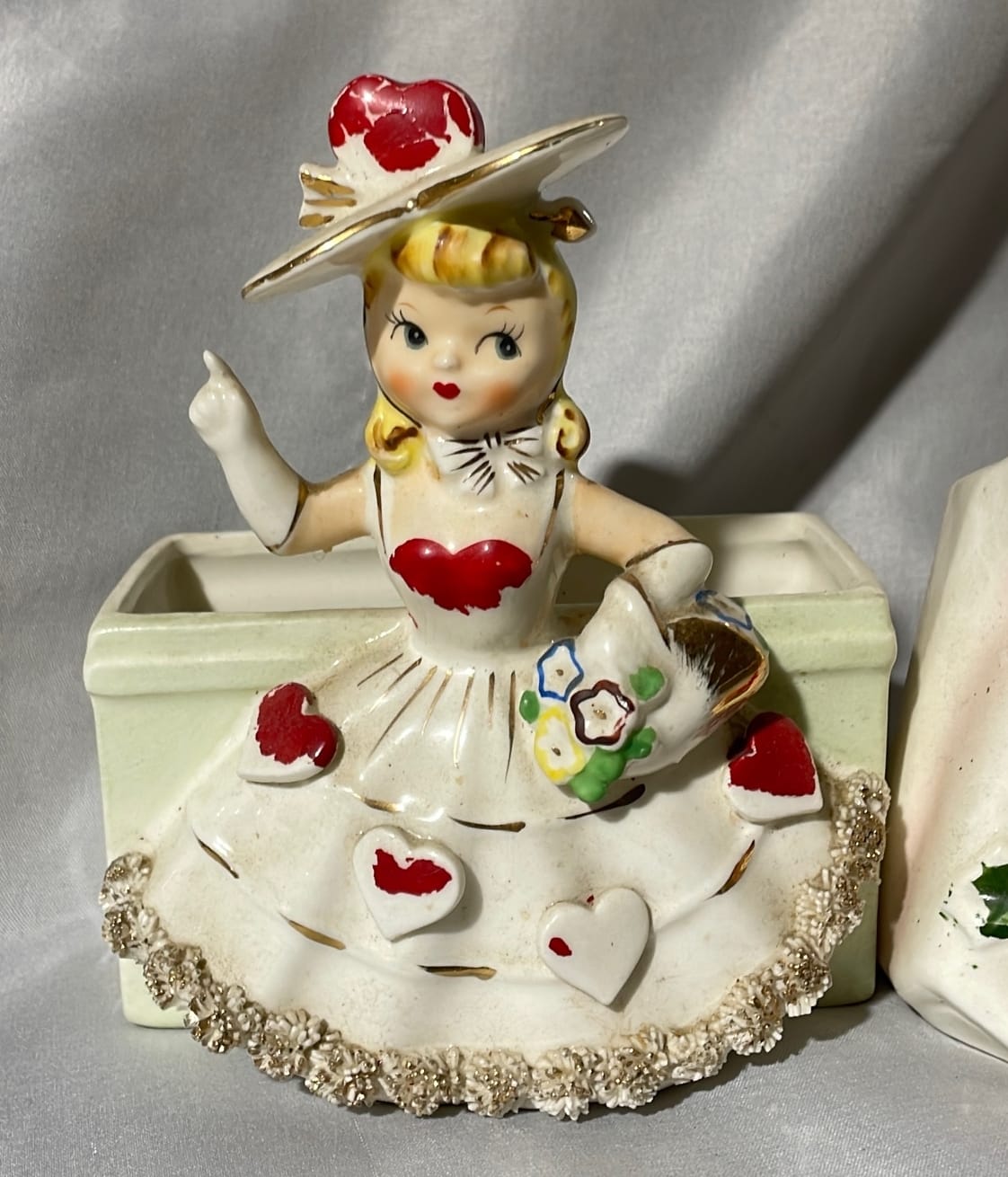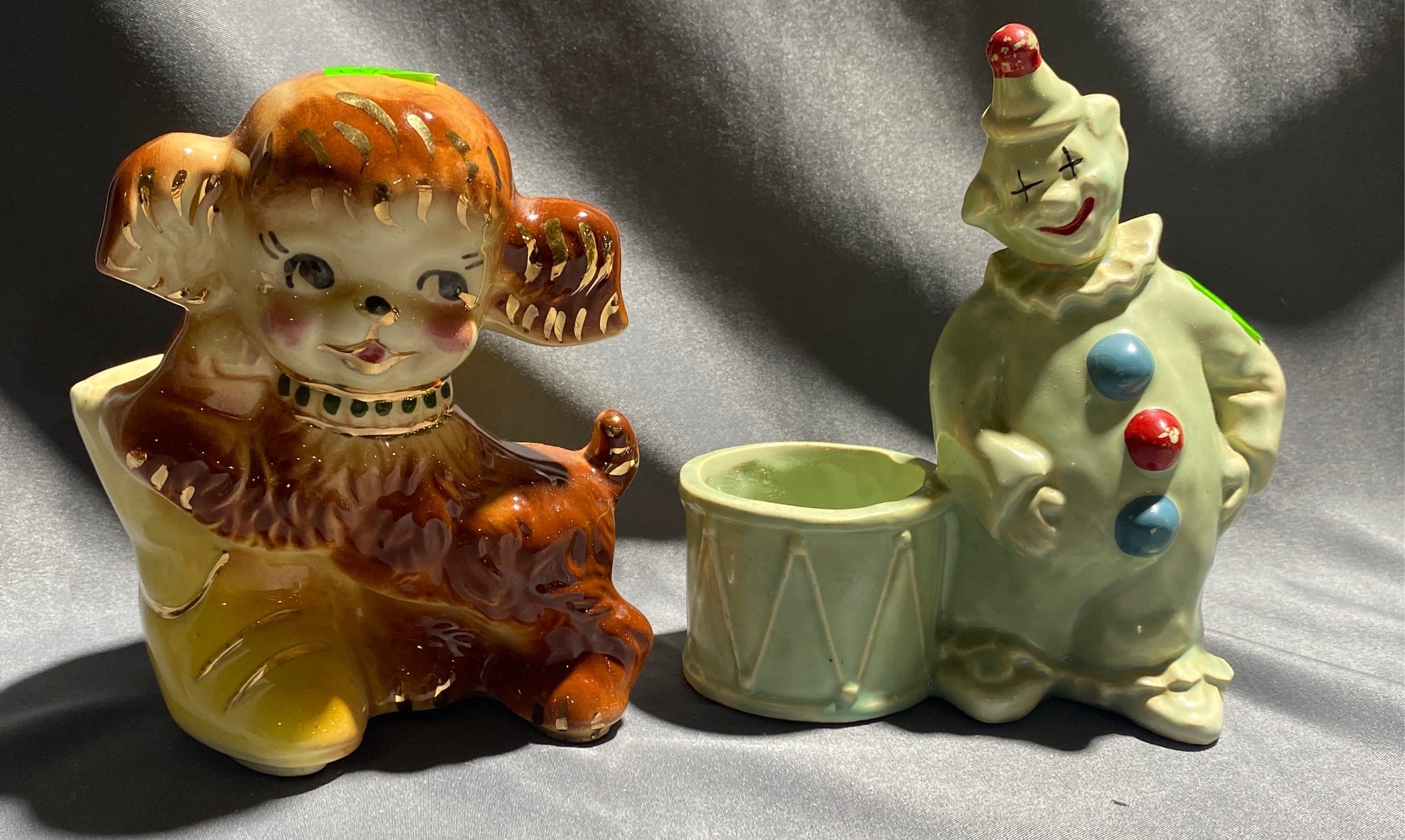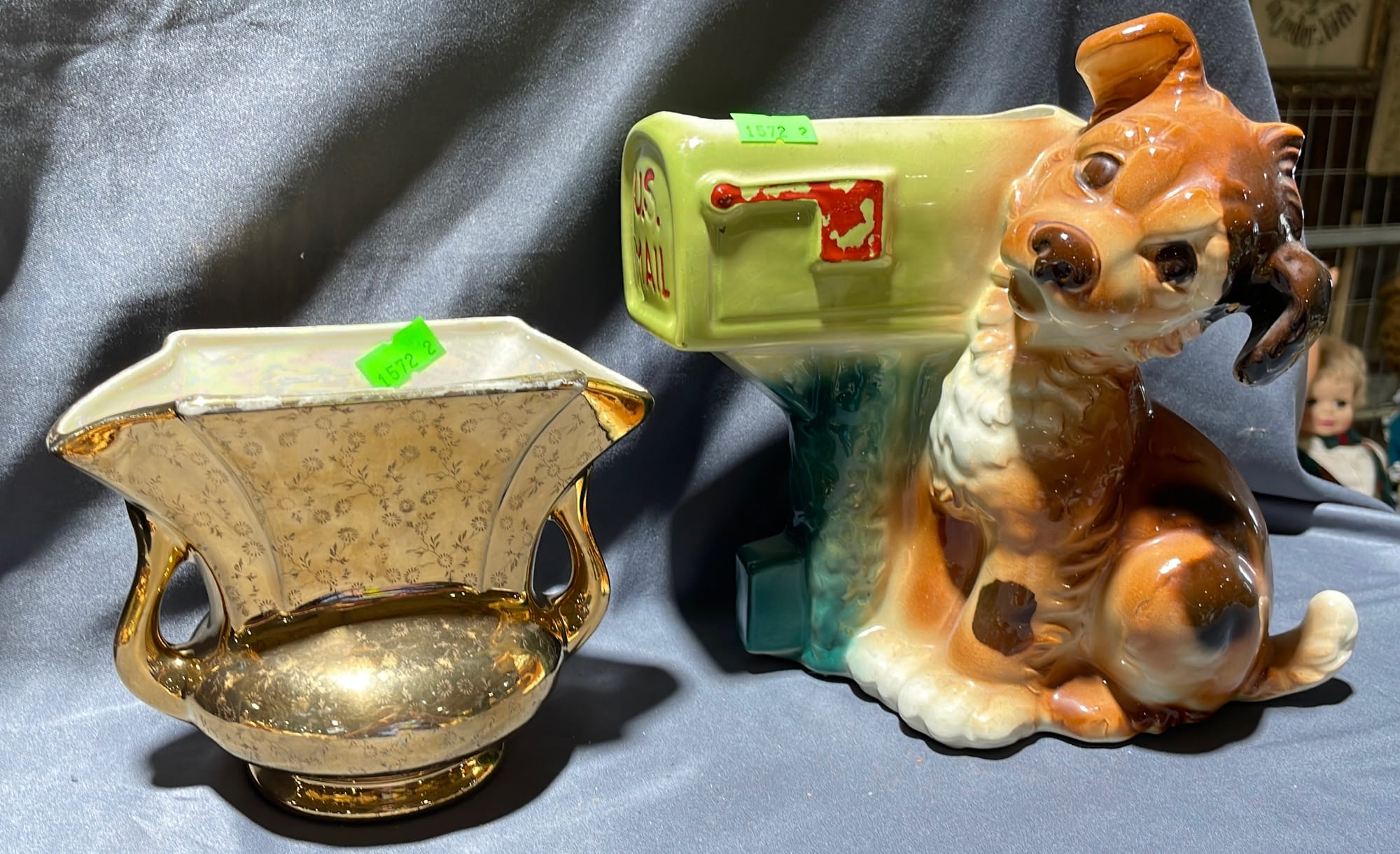 1220 Royal Copley ceramic spaniel planter 3"x5", planter 4"x4"