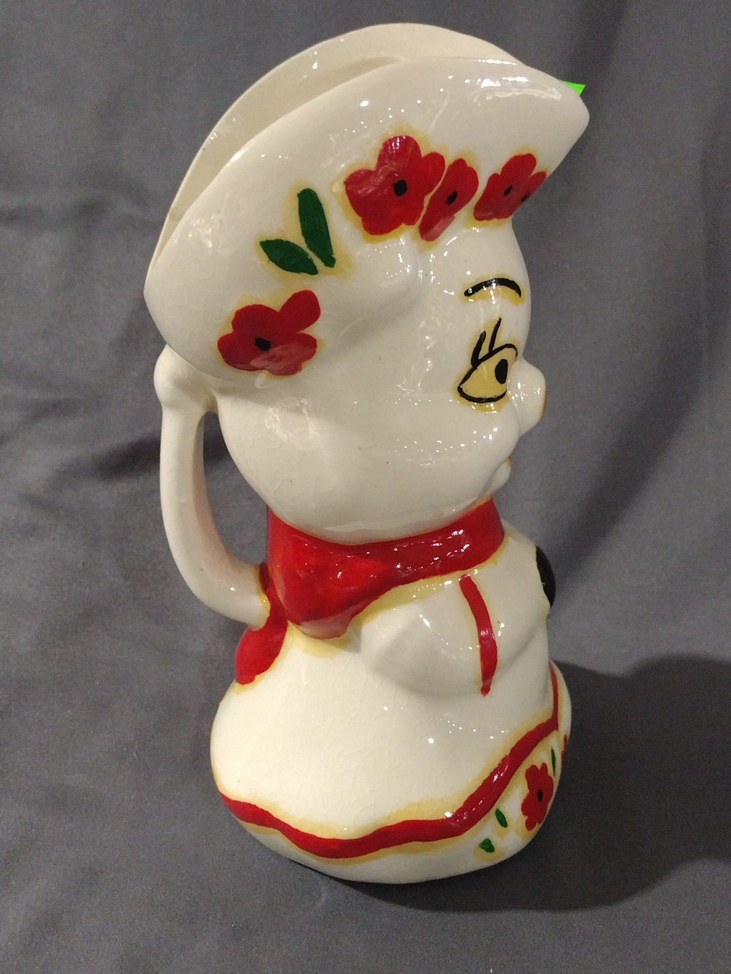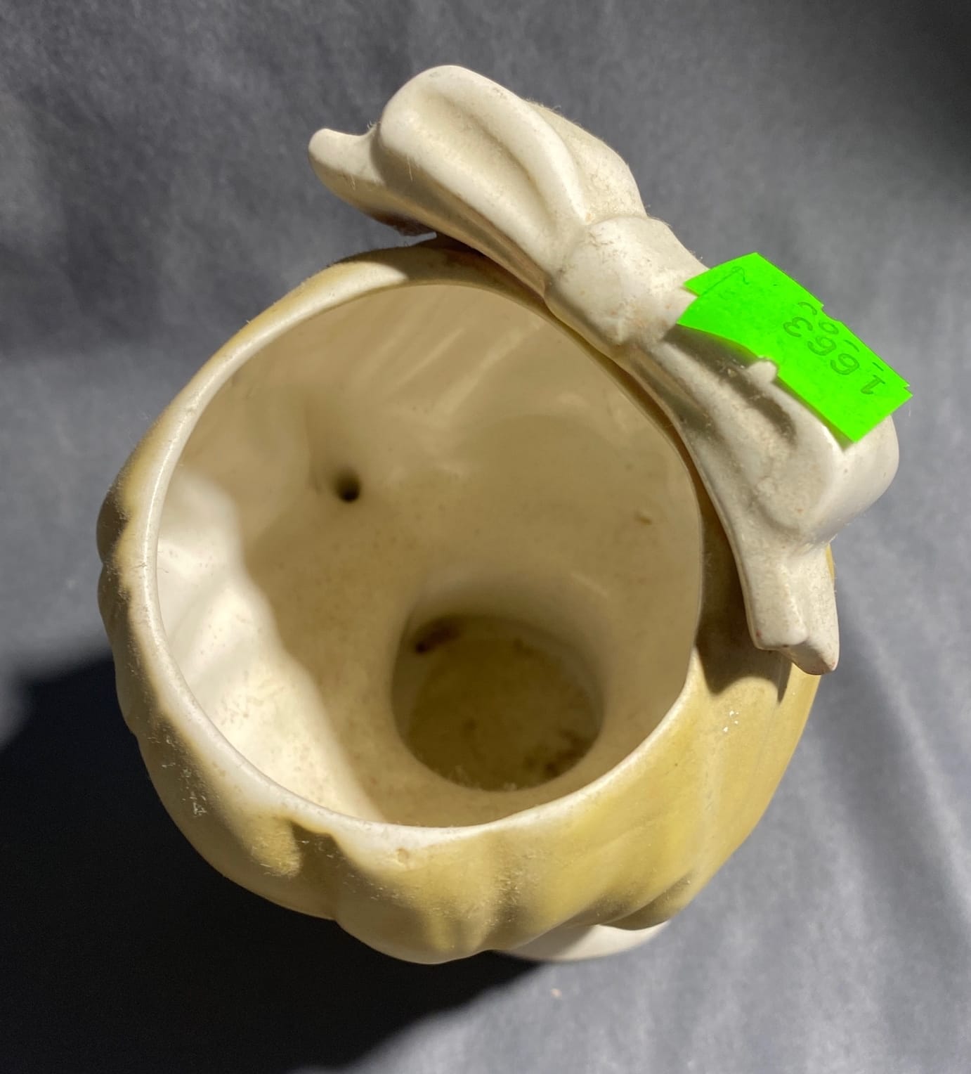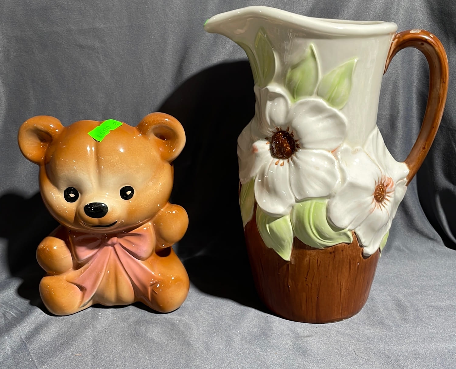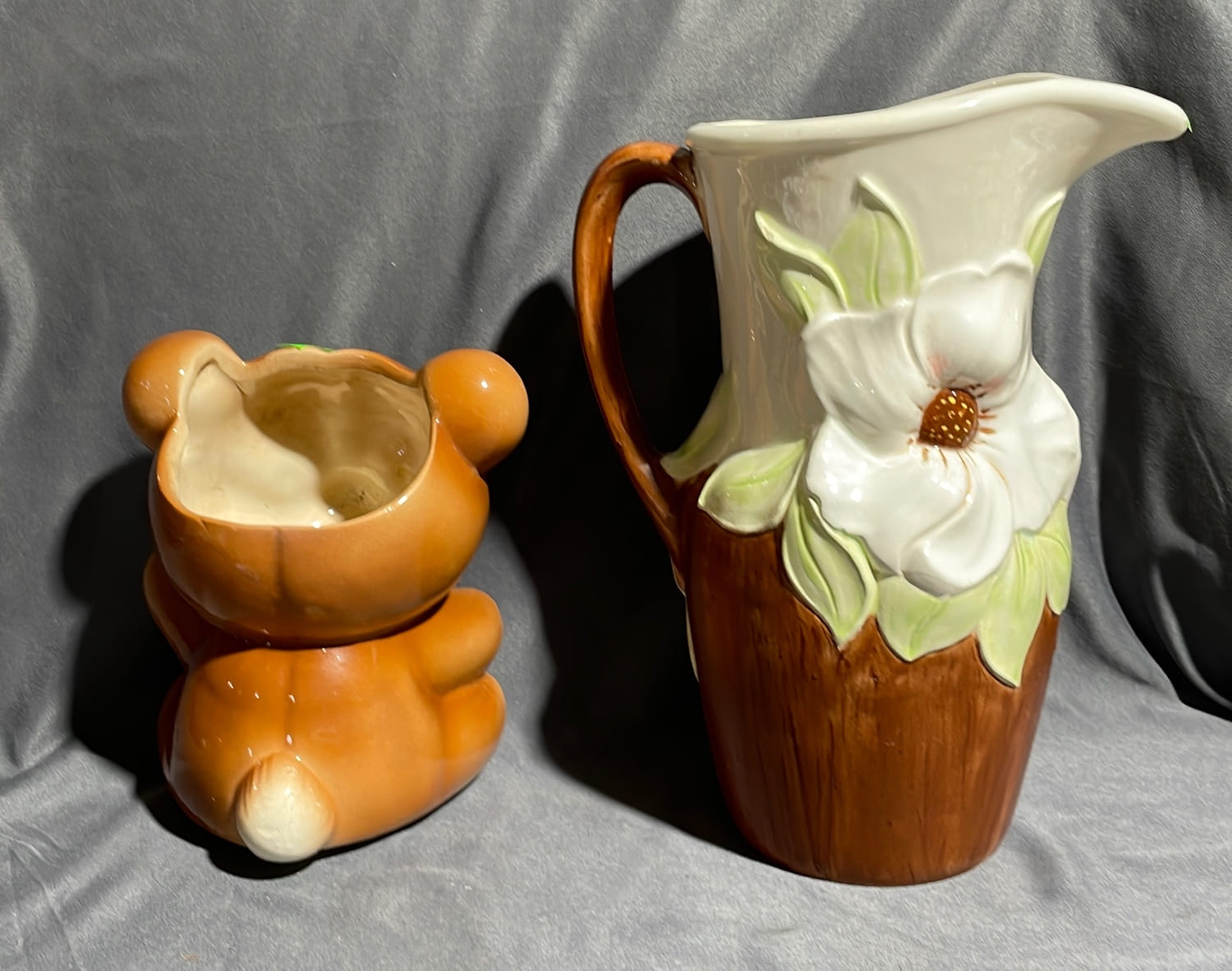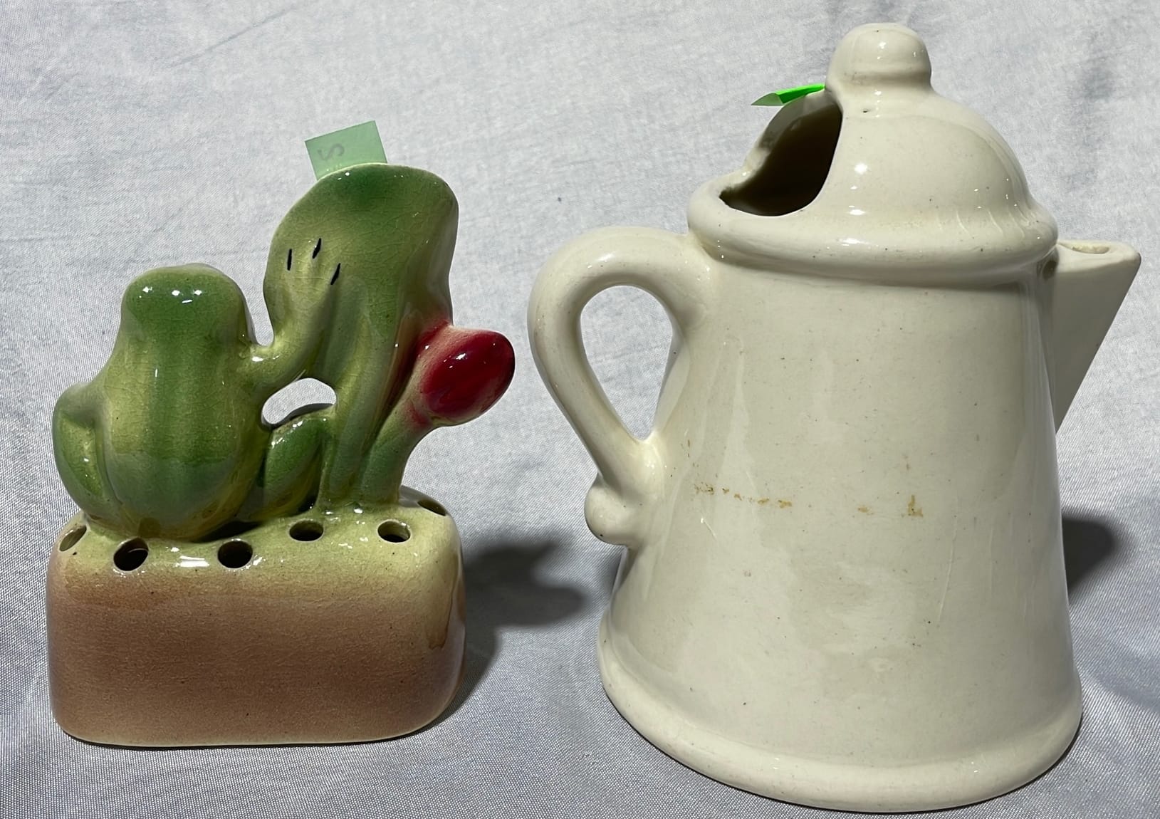 1226 Ceramic flower frog 3"x4", ceramic creamer 5"