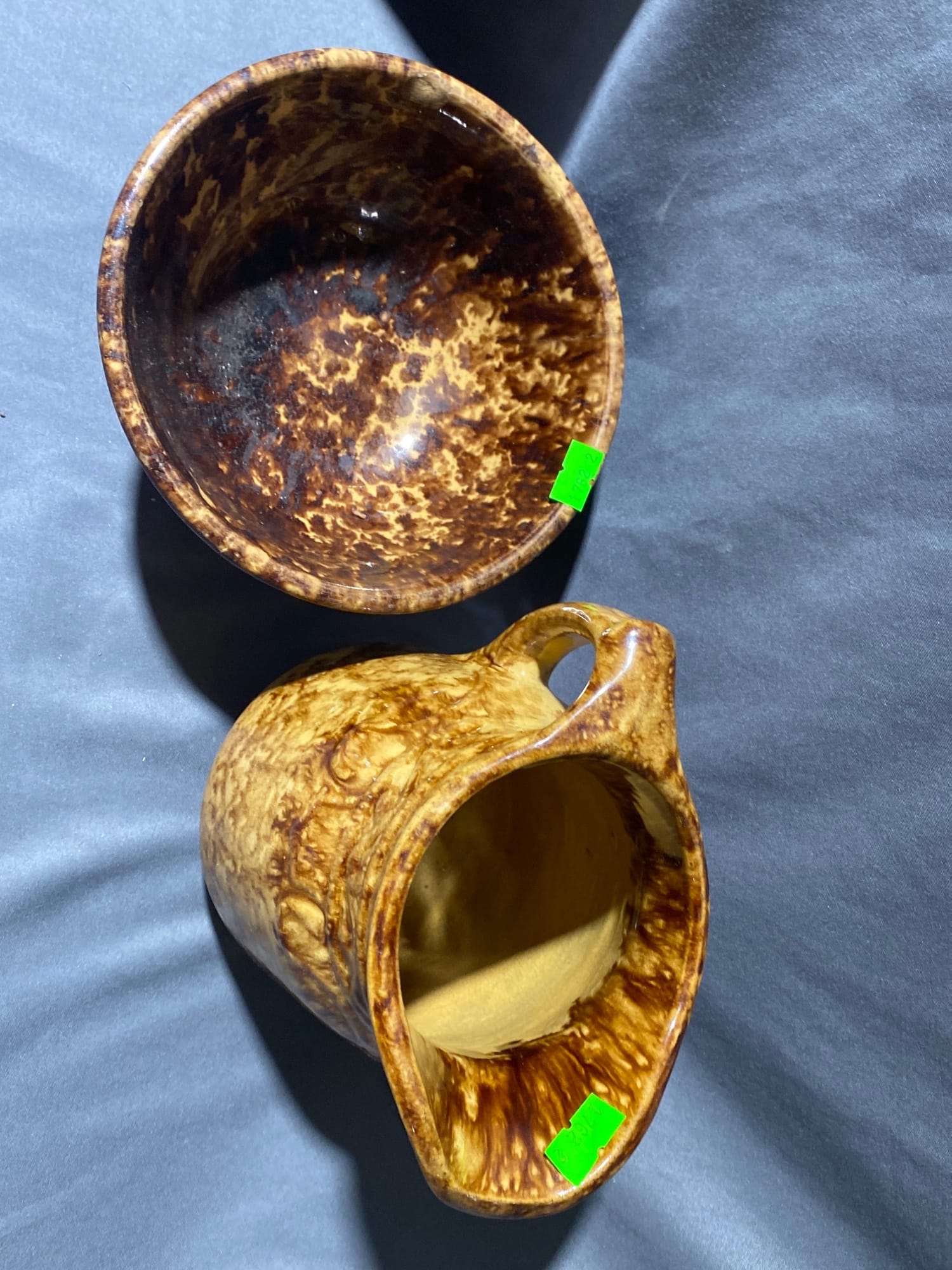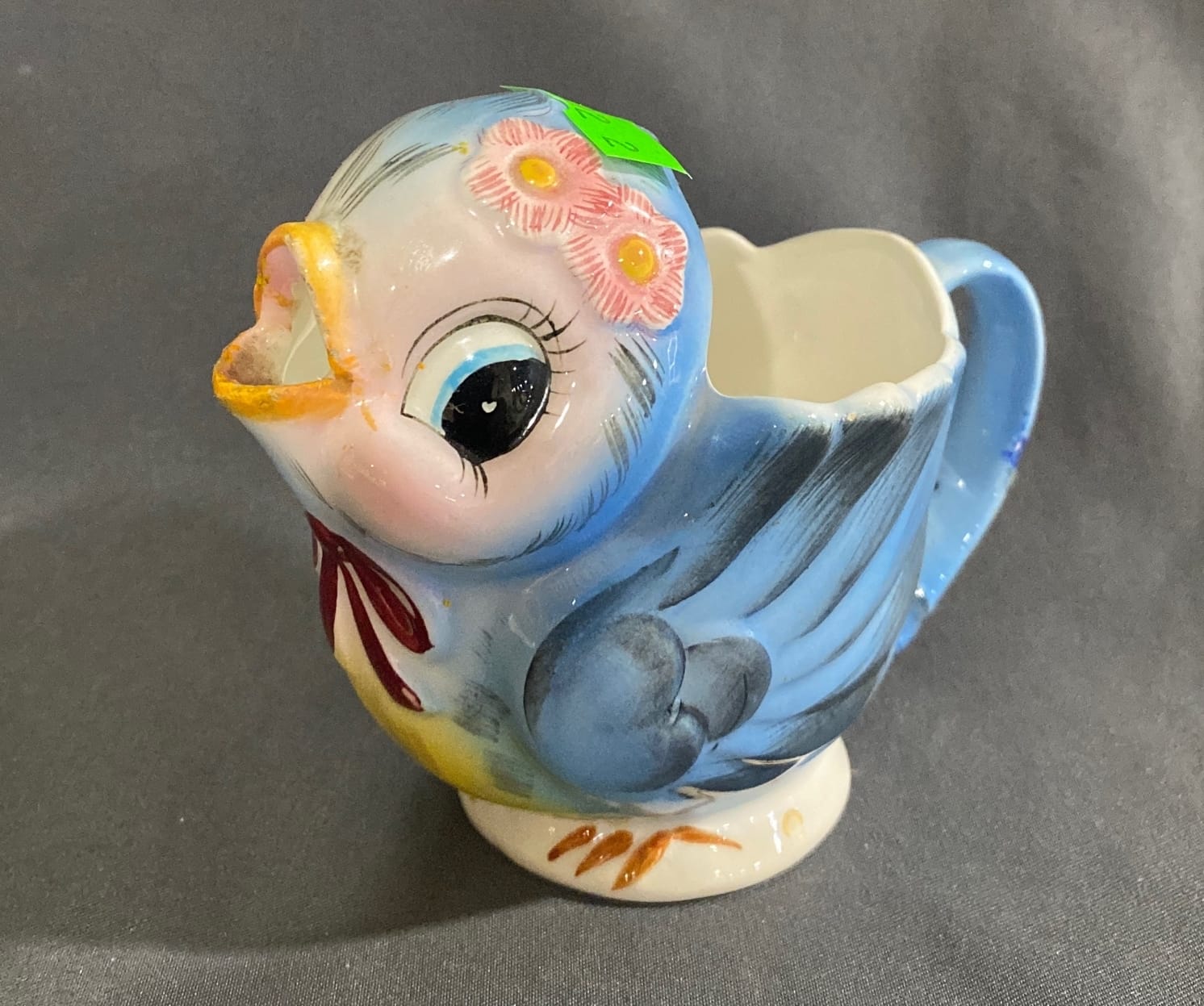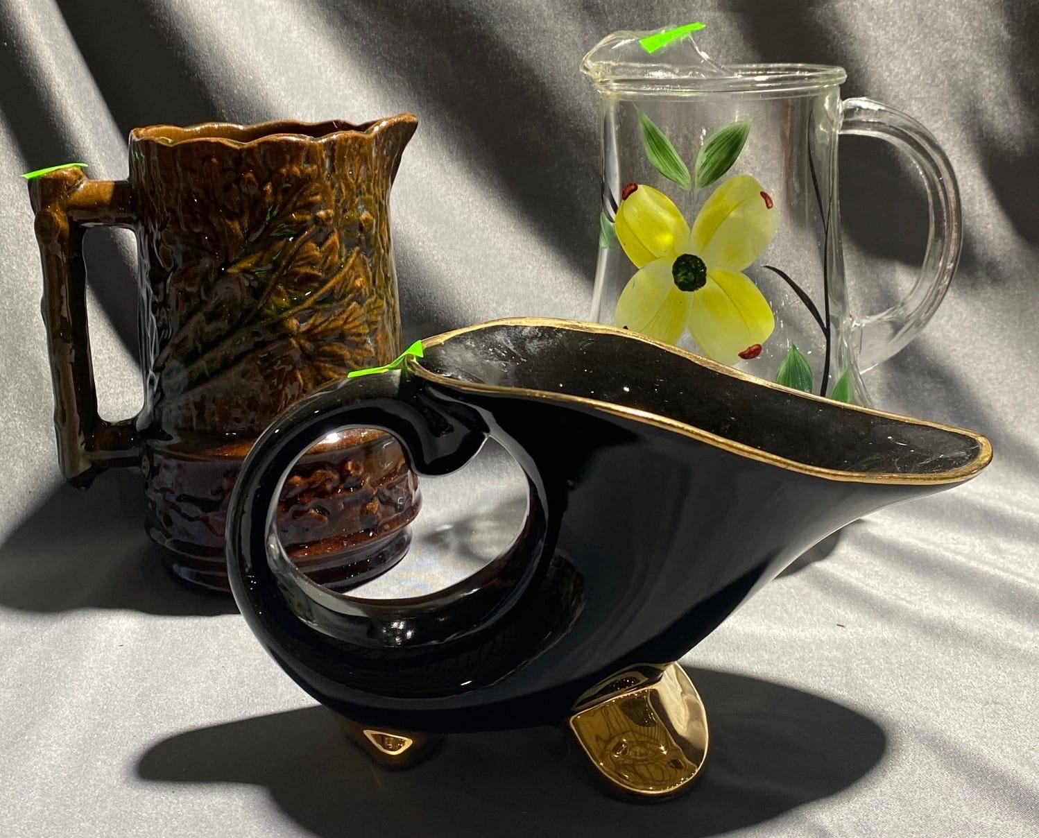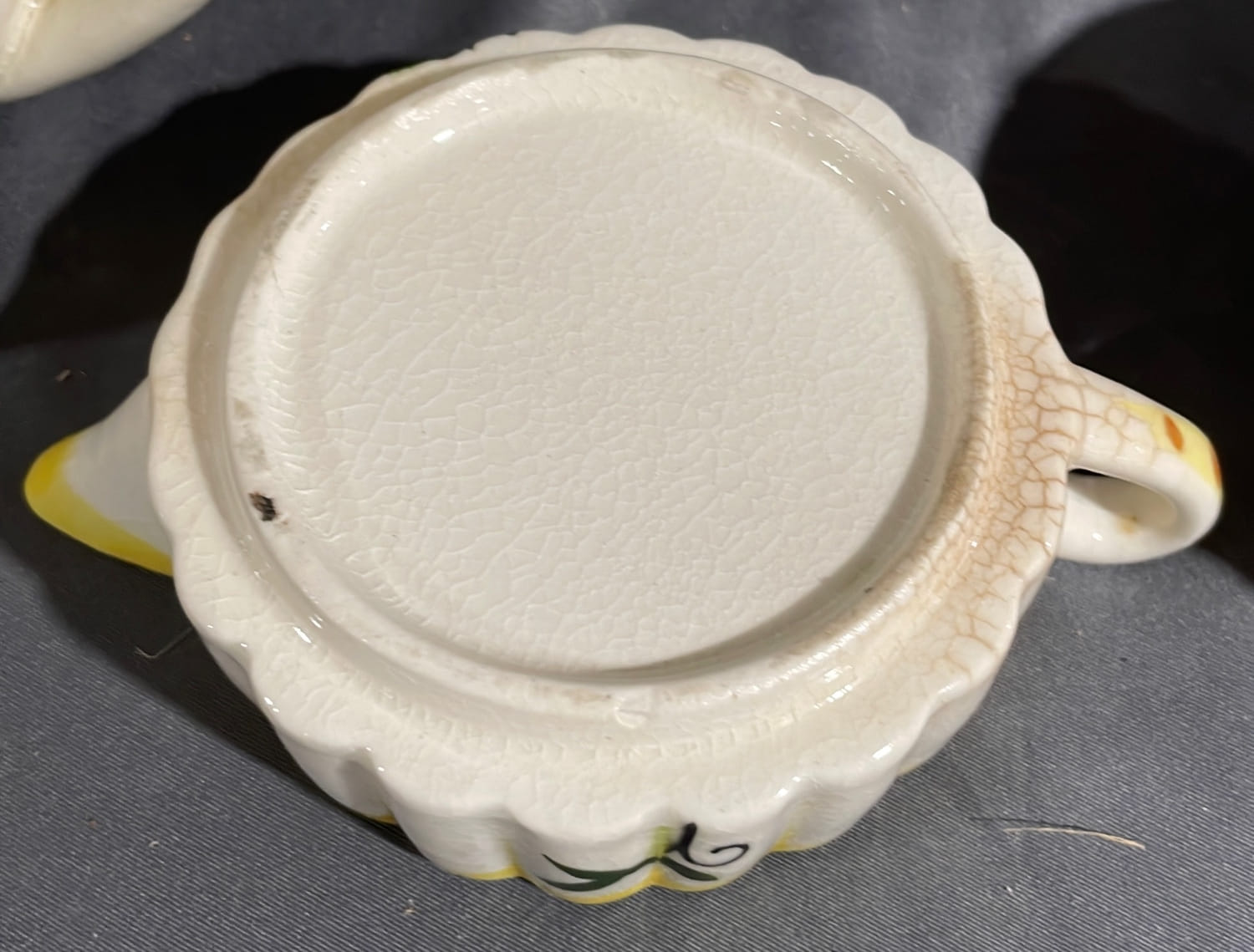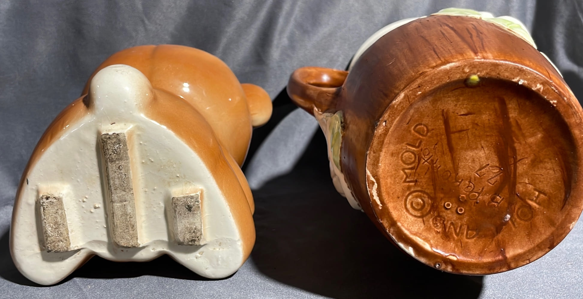1226 Ceramic flower frog 3"x4", ceramic creamer 5"