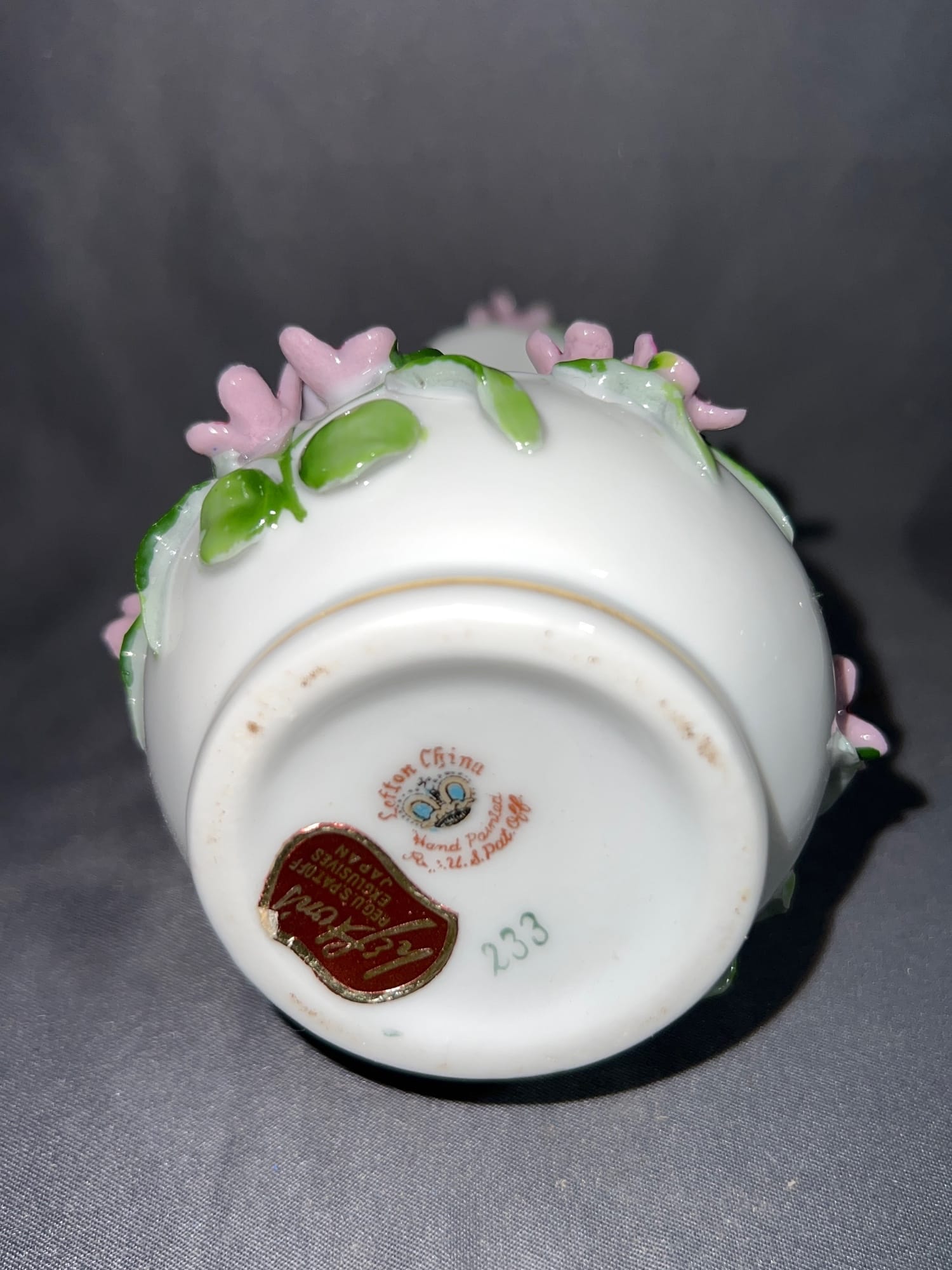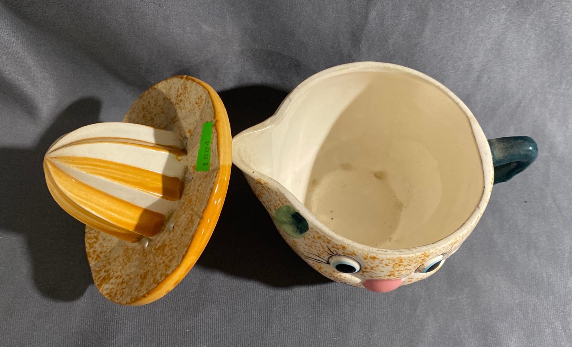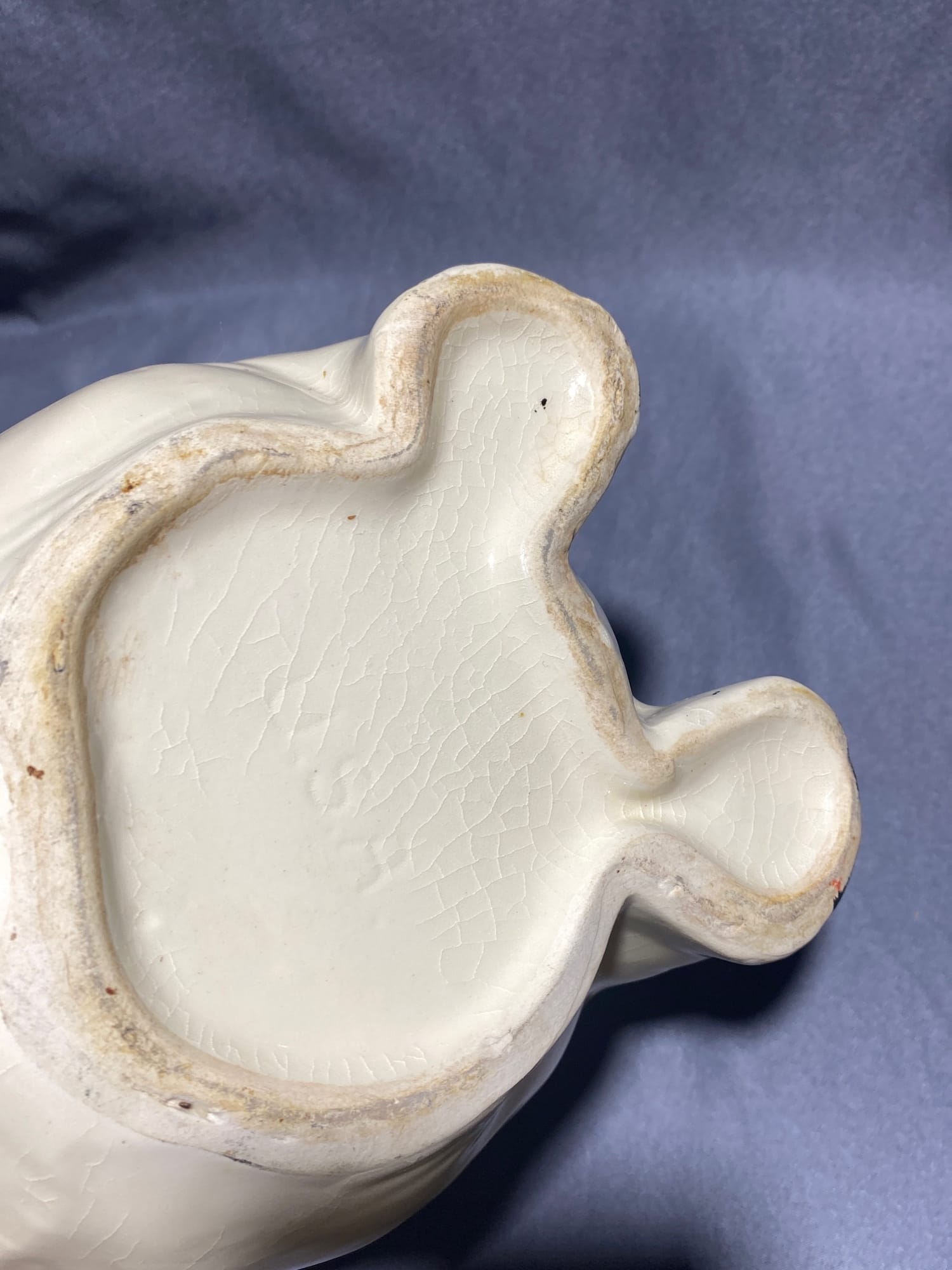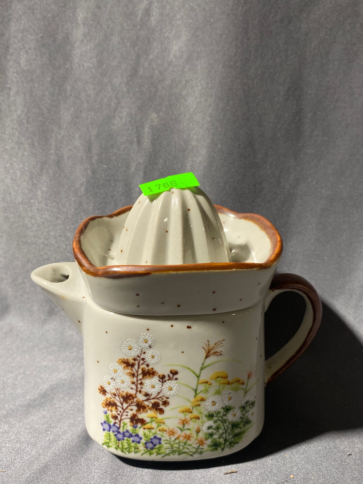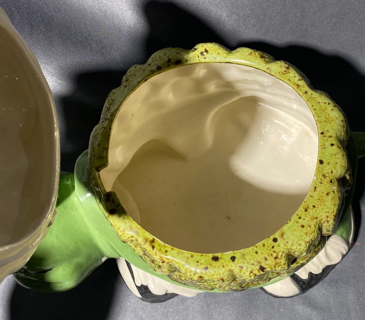 1226 Ceramic flower frog 3"x4", ceramic creamer 5"