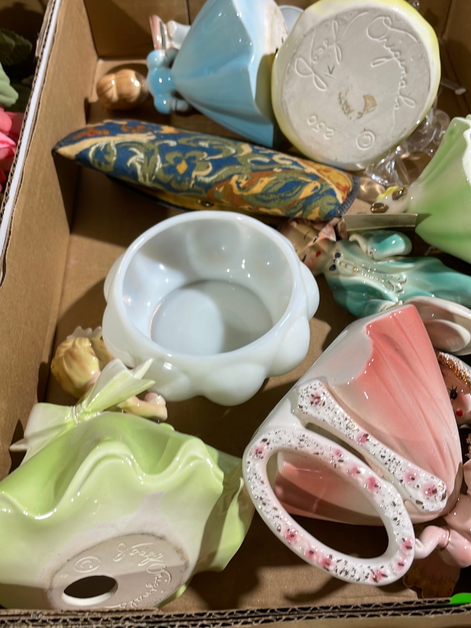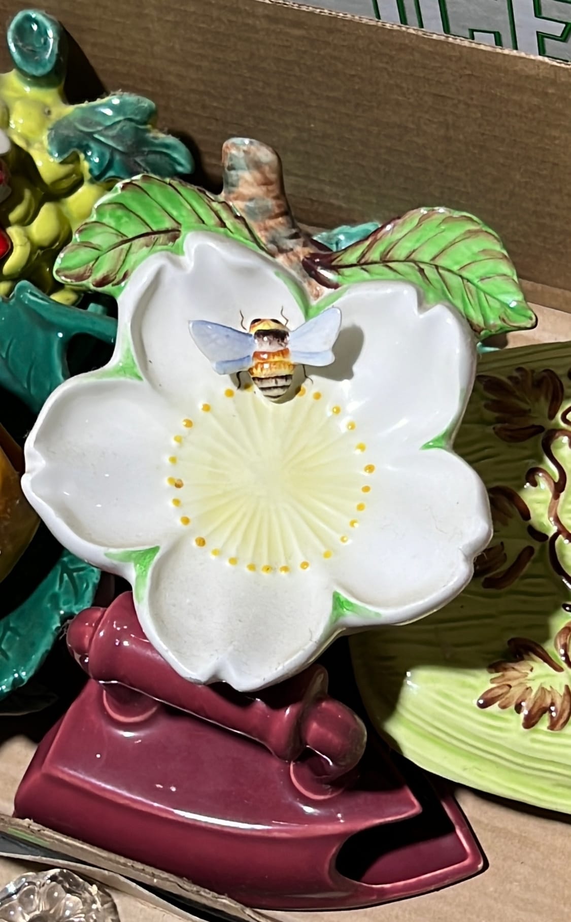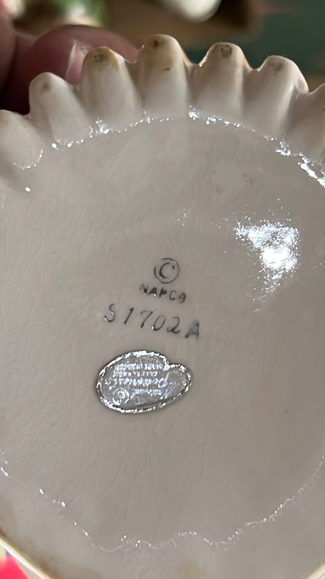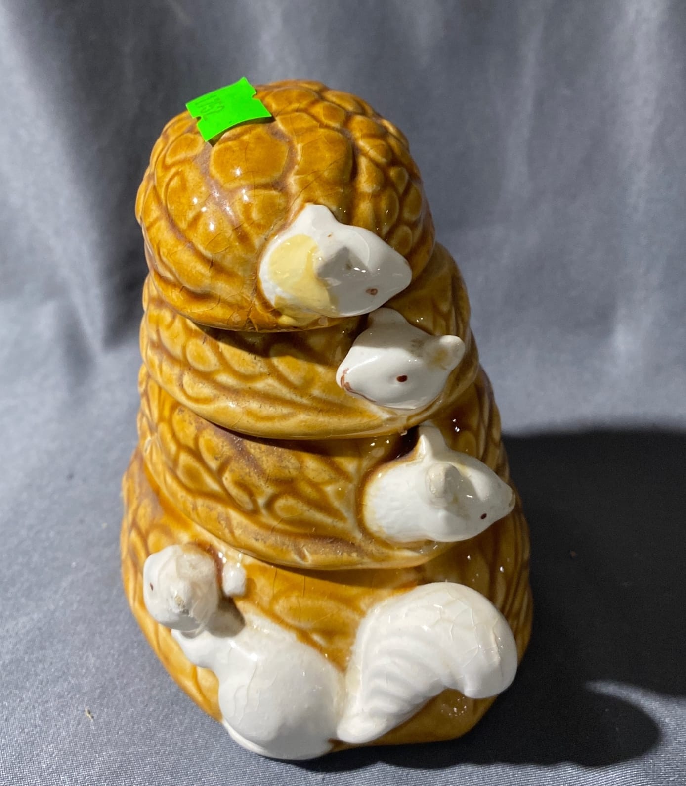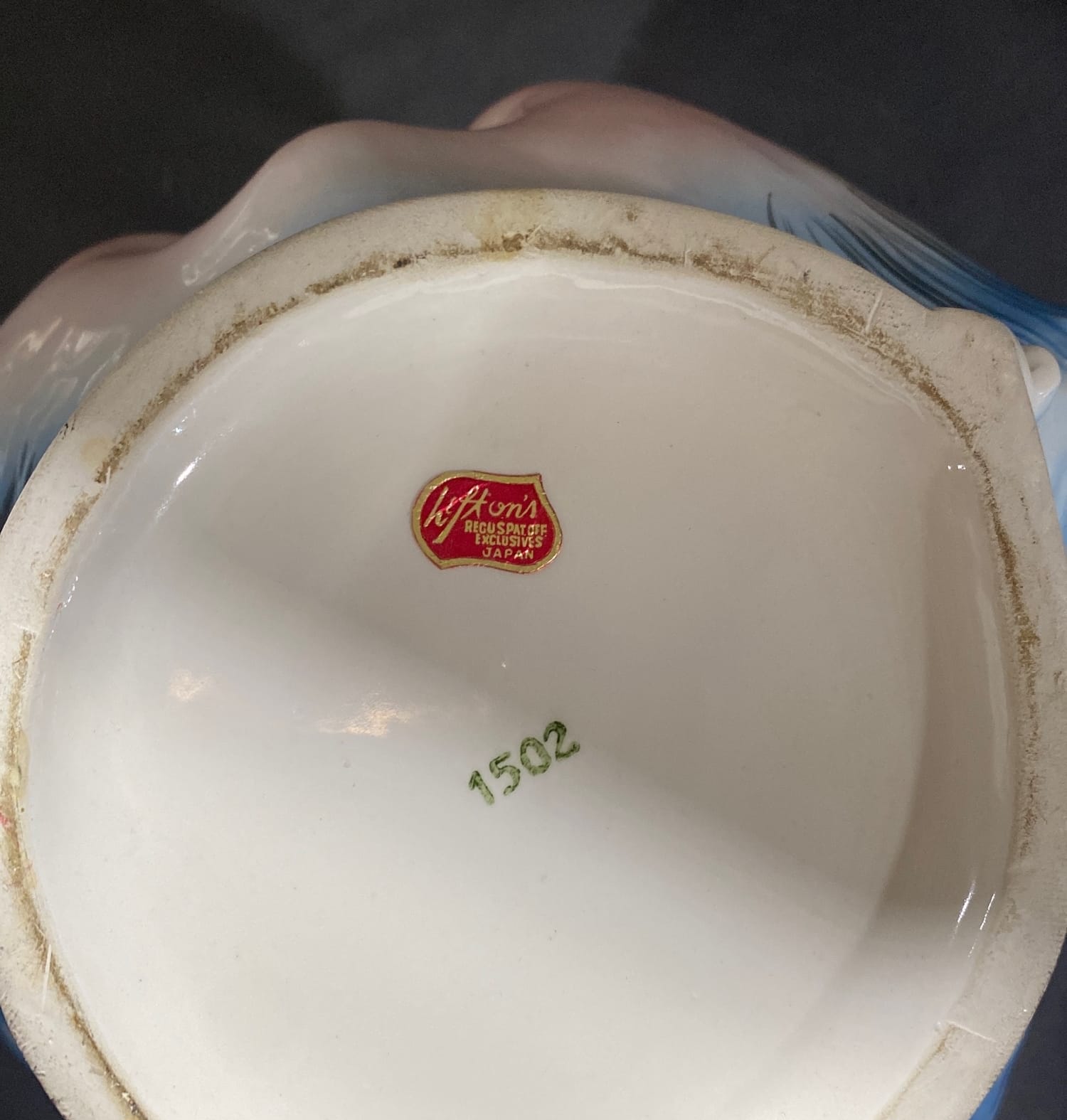 1226 Ceramic flower frog 3"x4", ceramic creamer 5"