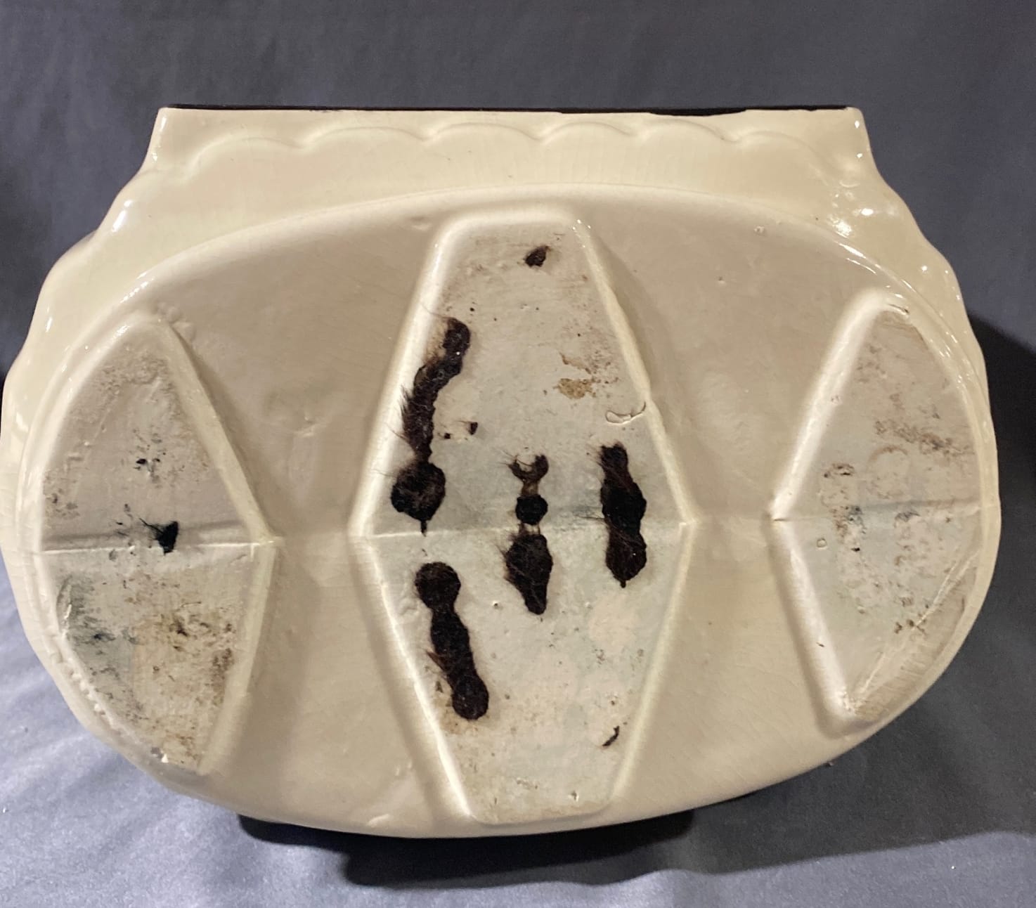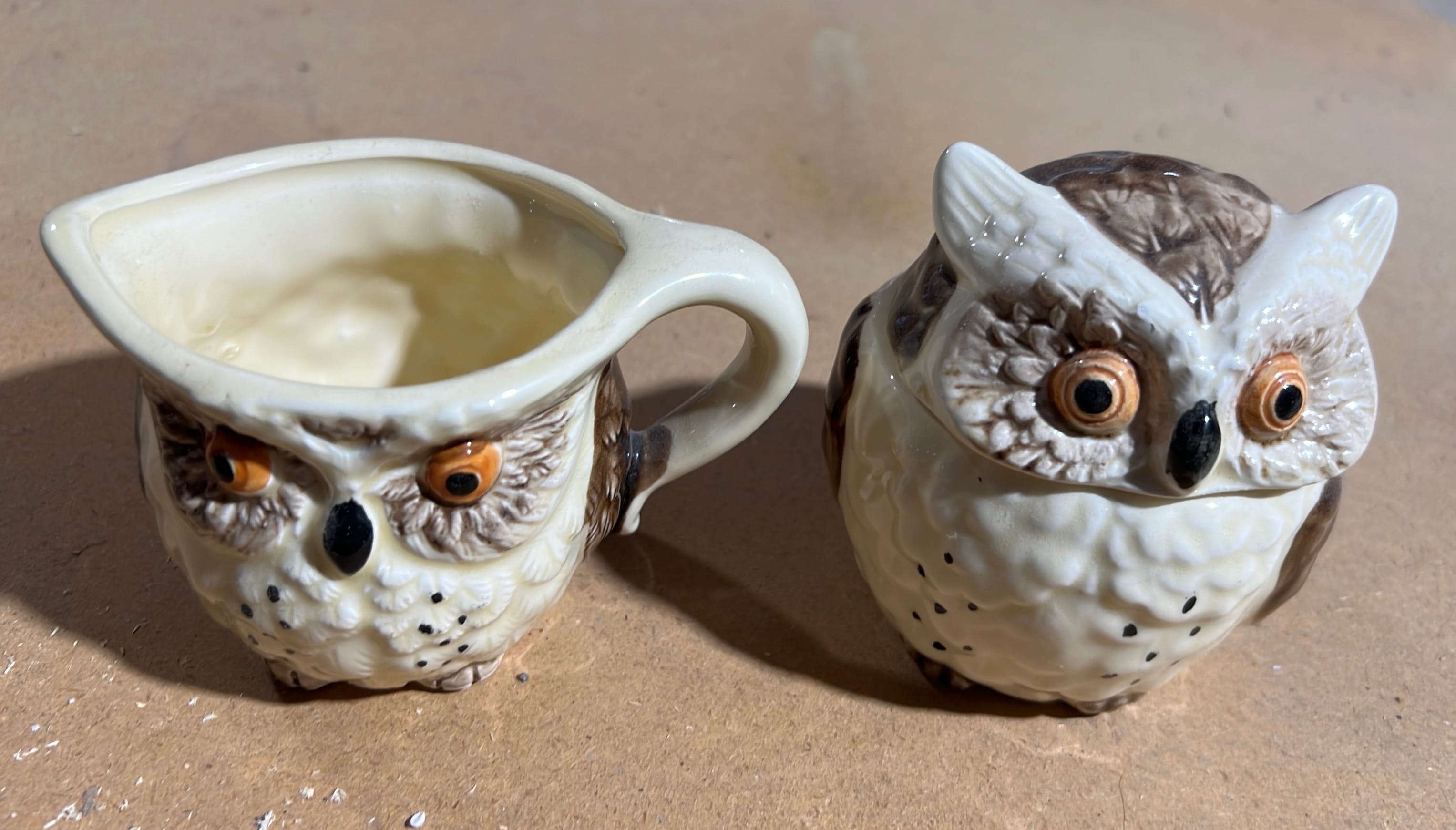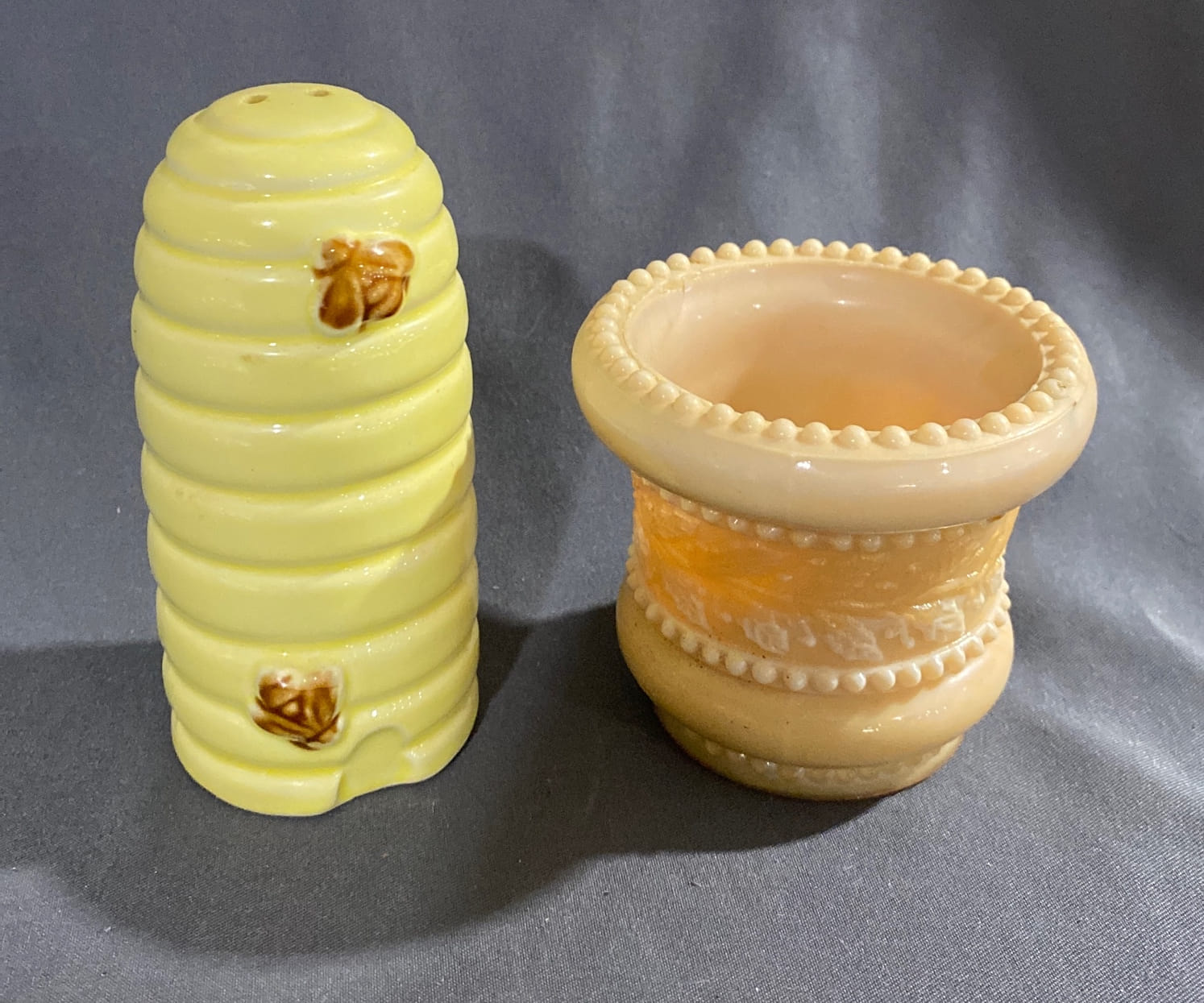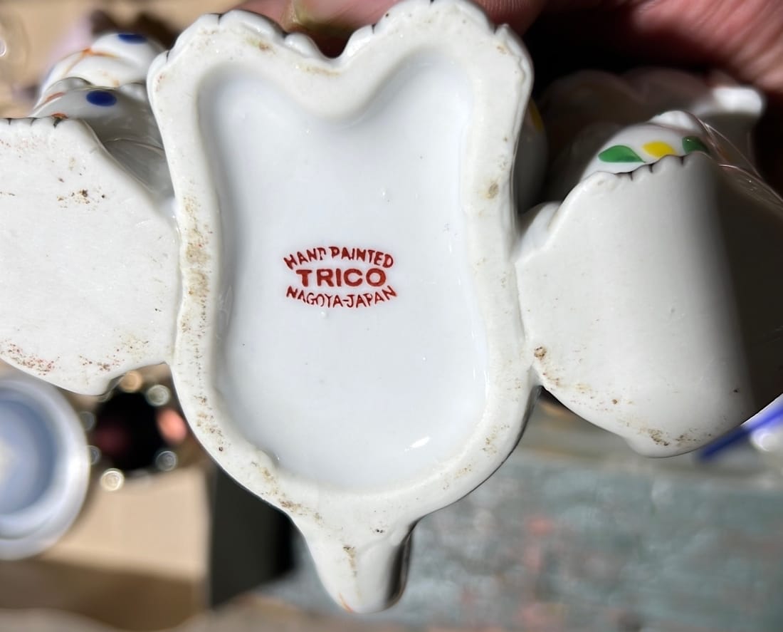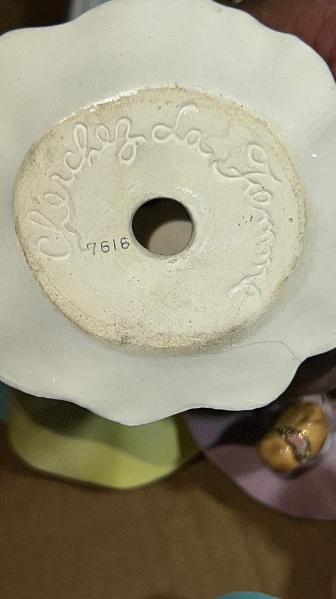 1226 Ceramic flower frog 3"x4", ceramic creamer 5"