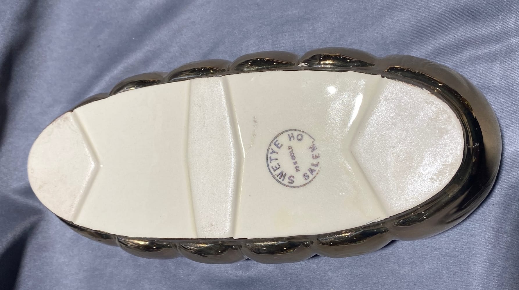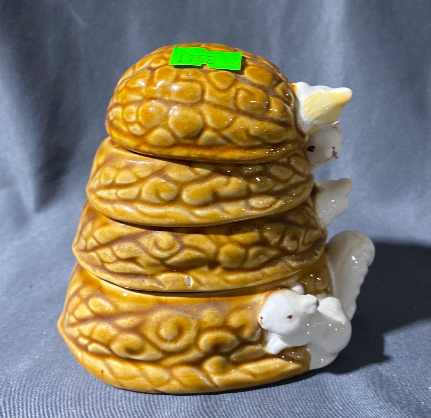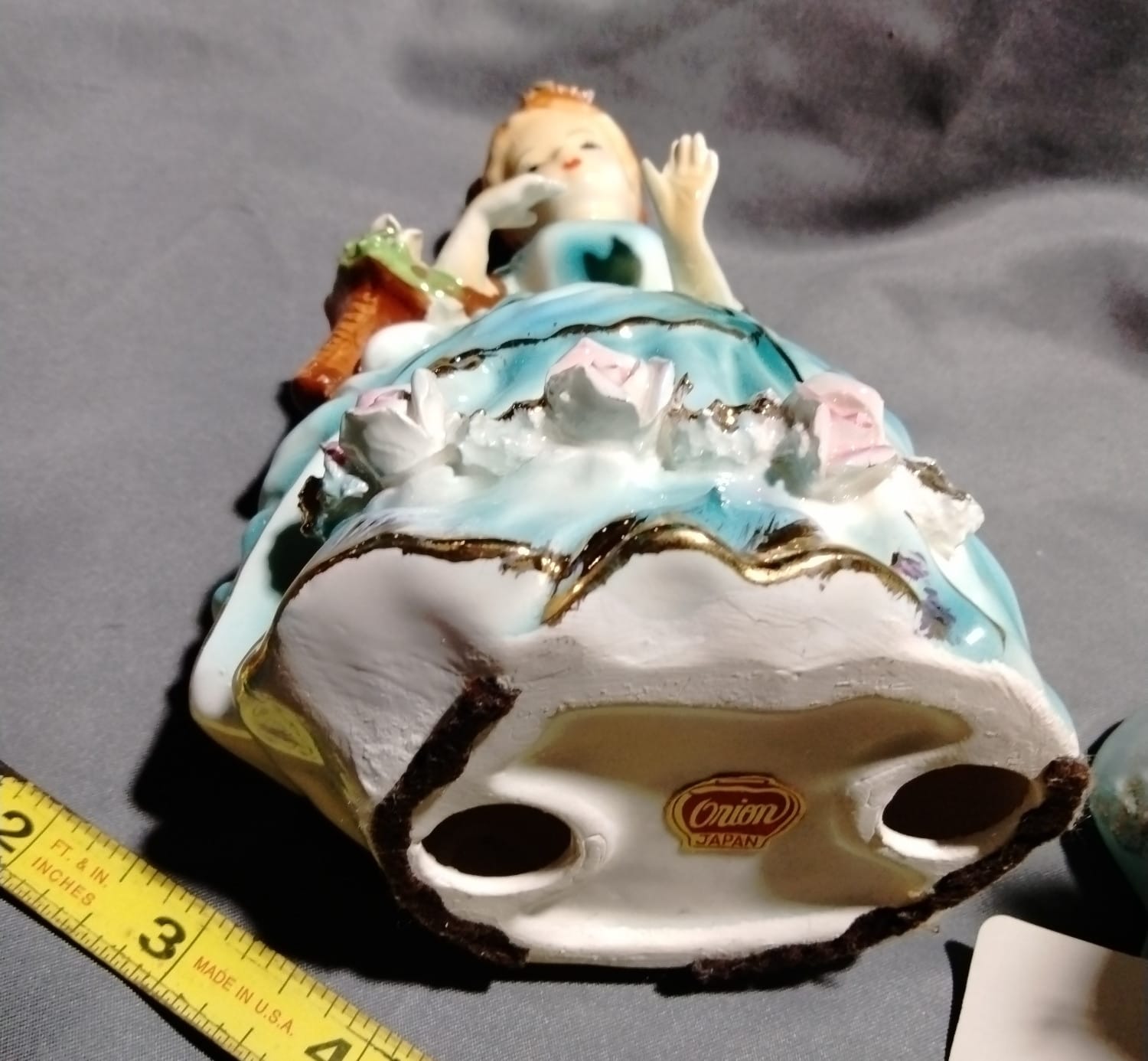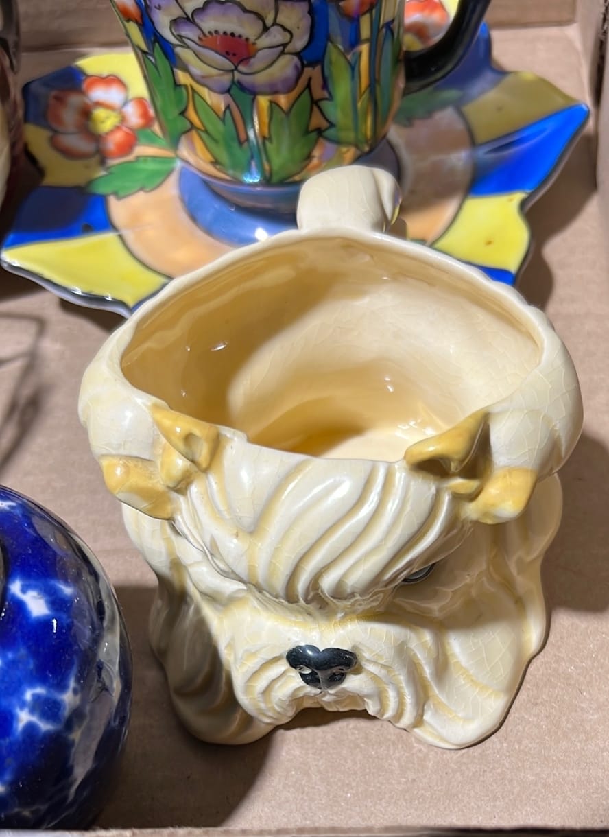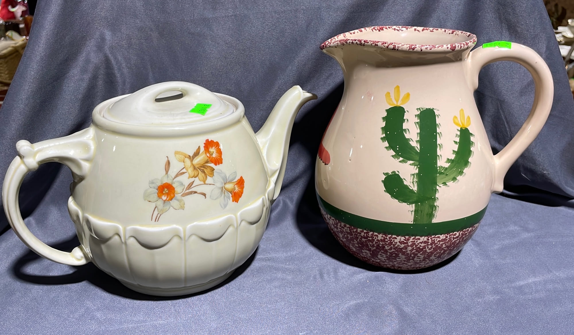 1226 Ceramic flower frog 3"x4", ceramic creamer 5"