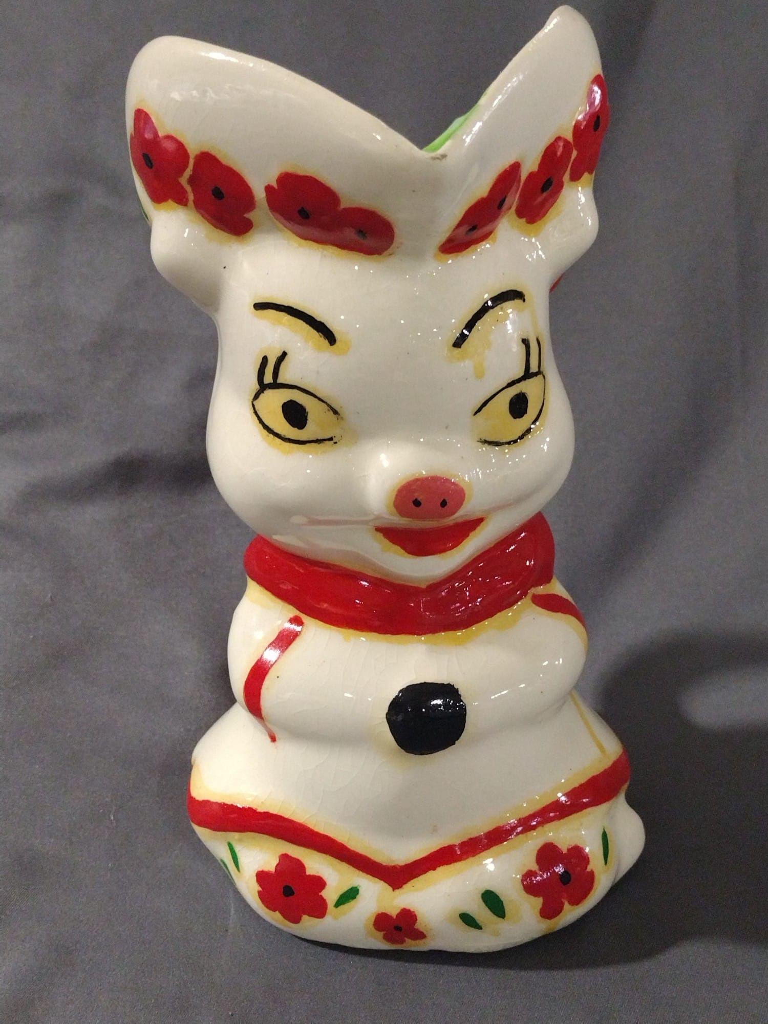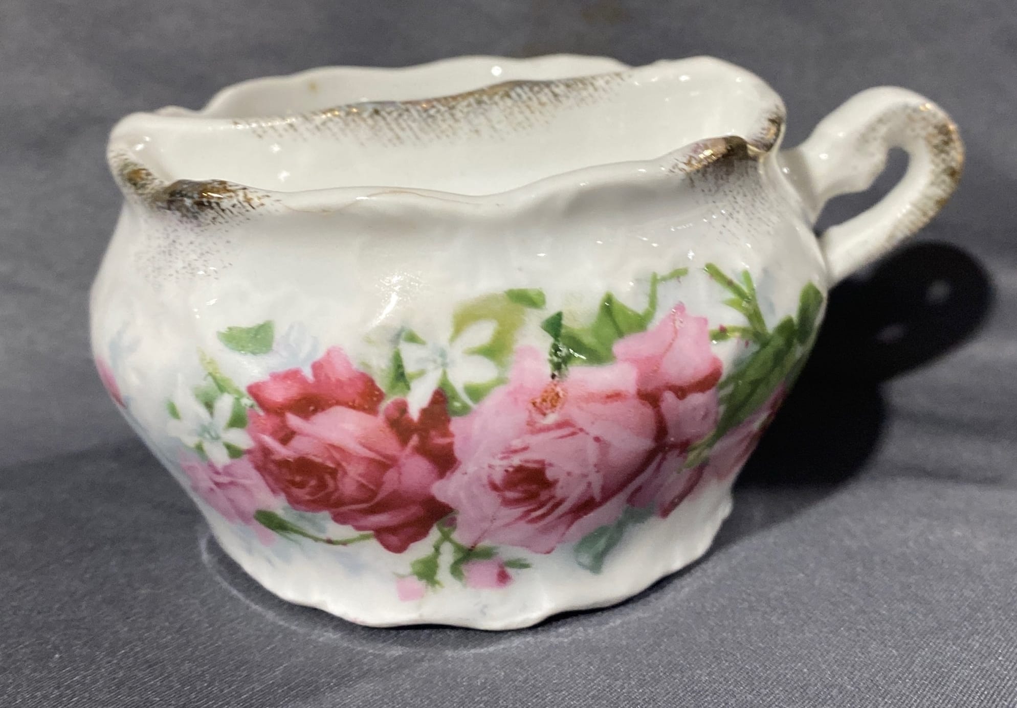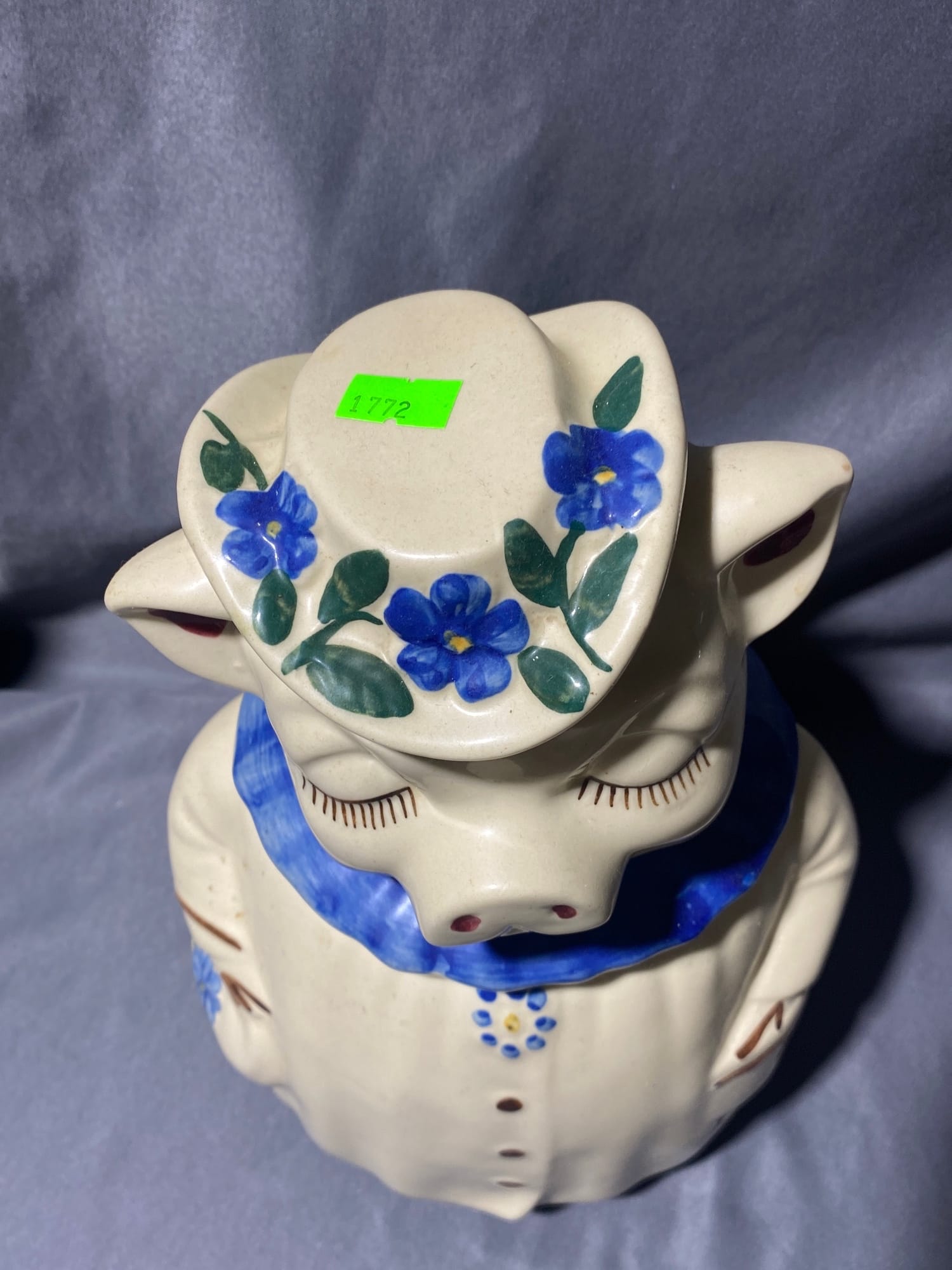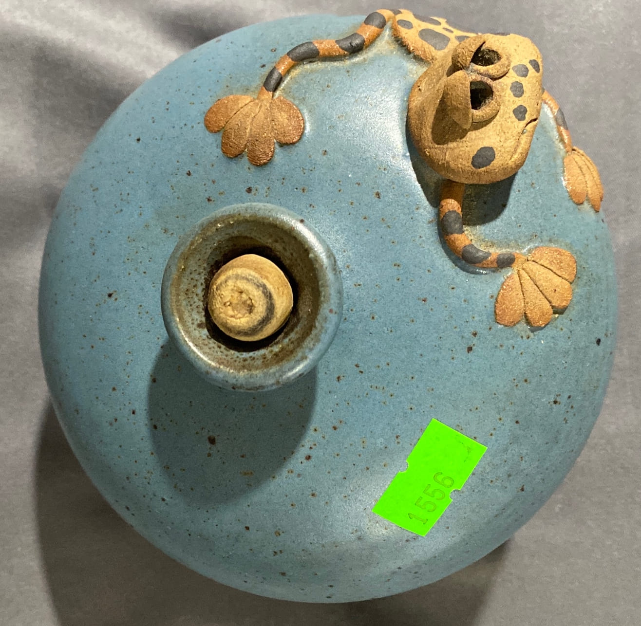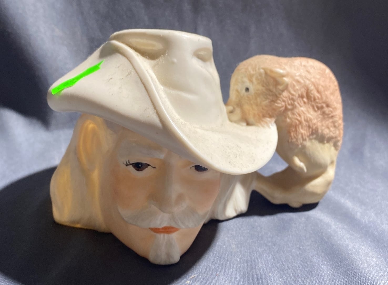 1226 Ceramic flower frog 3"x4", ceramic creamer 5"