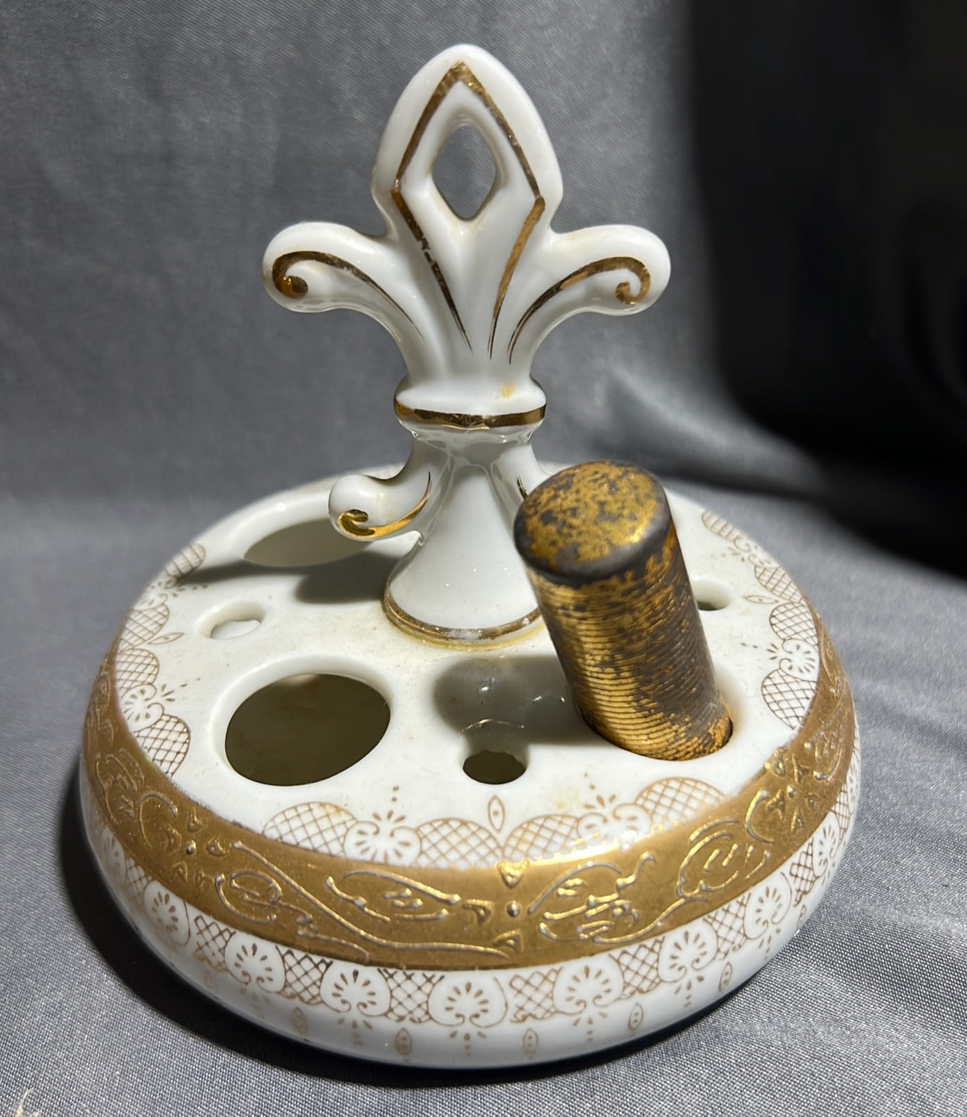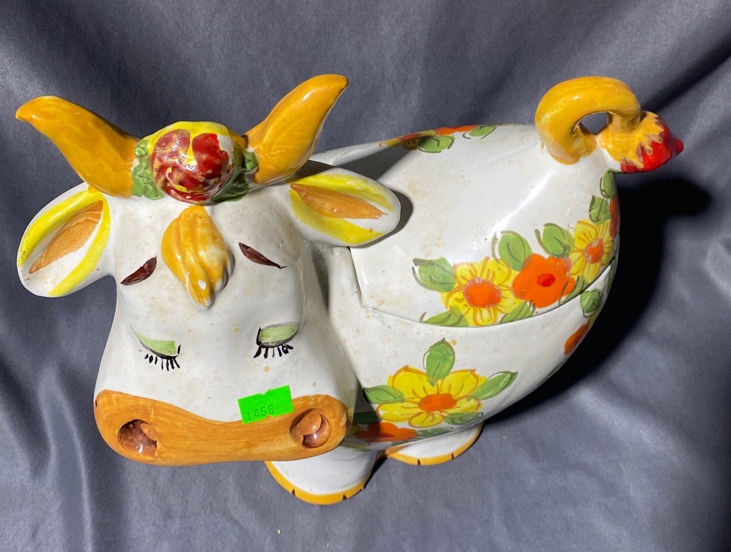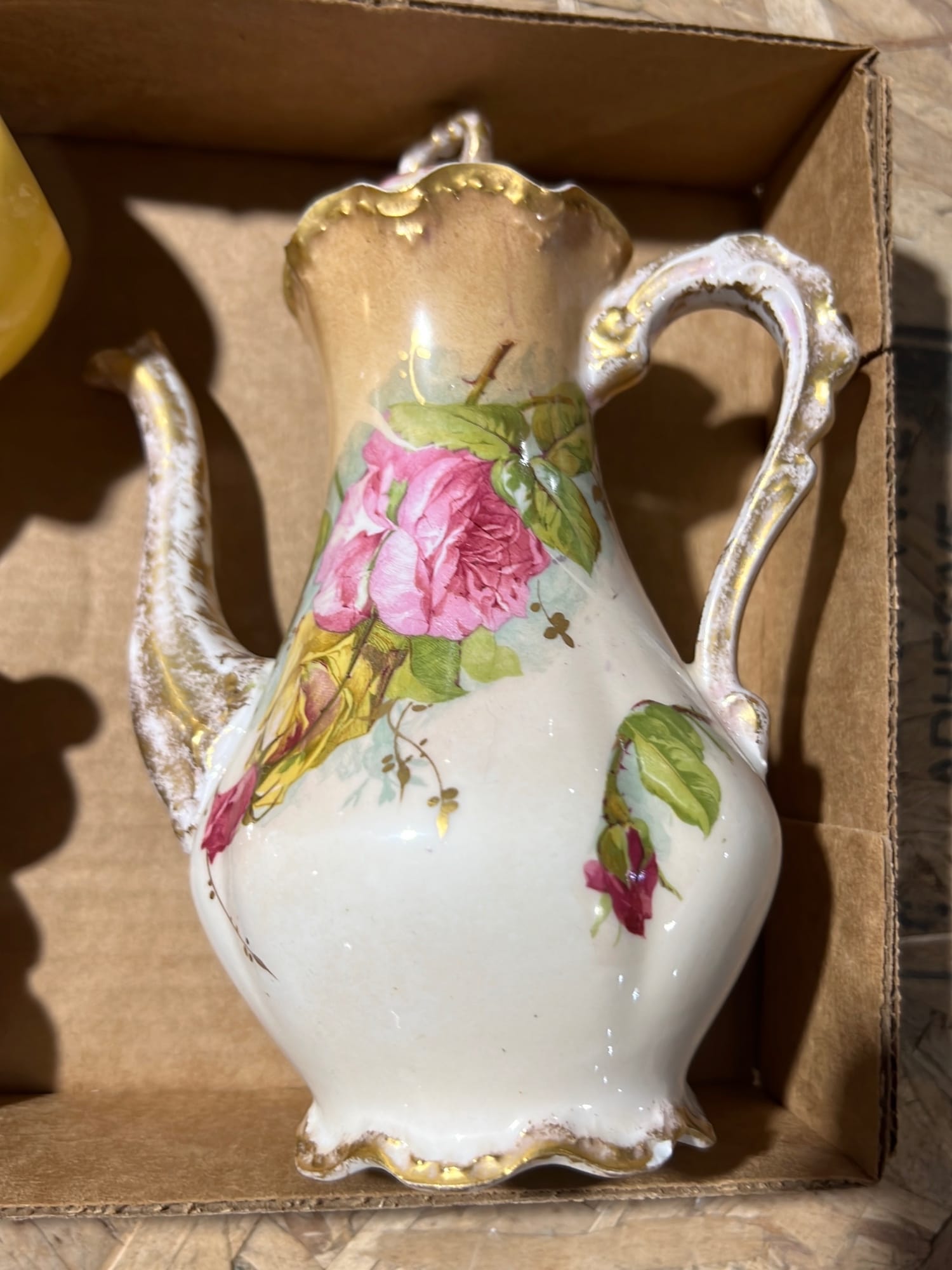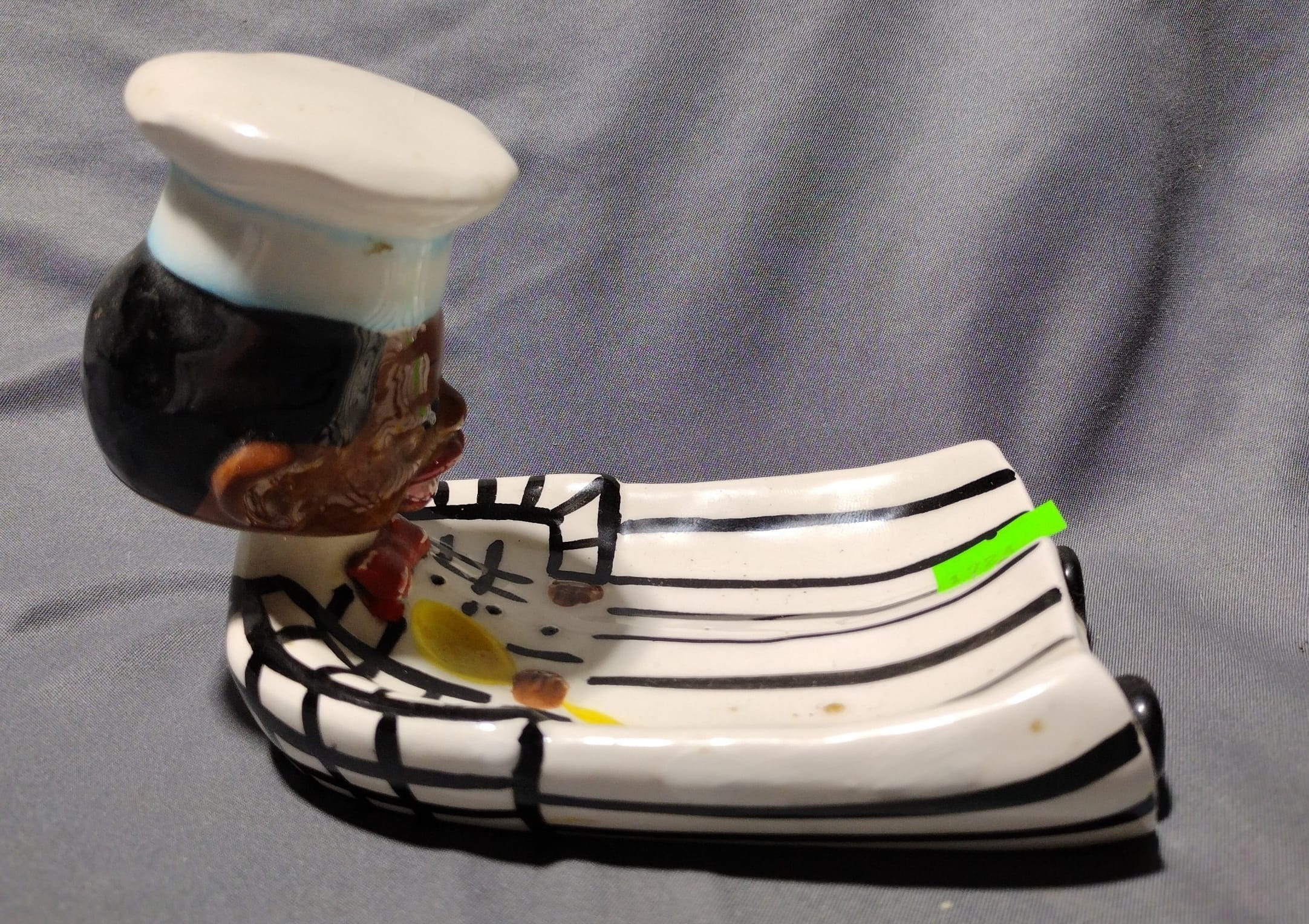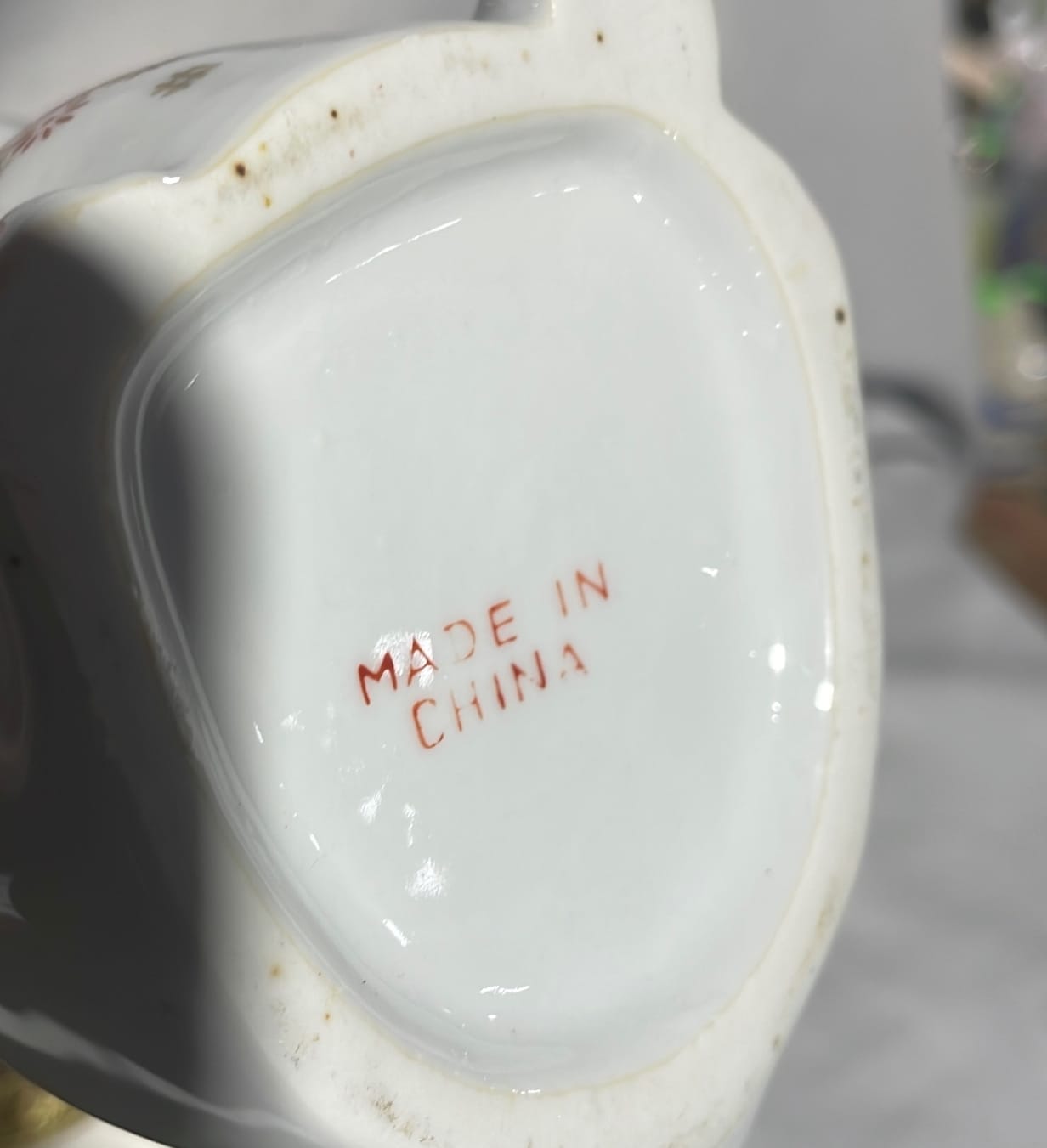 1226 Ceramic flower frog 3"x4", ceramic creamer 5"