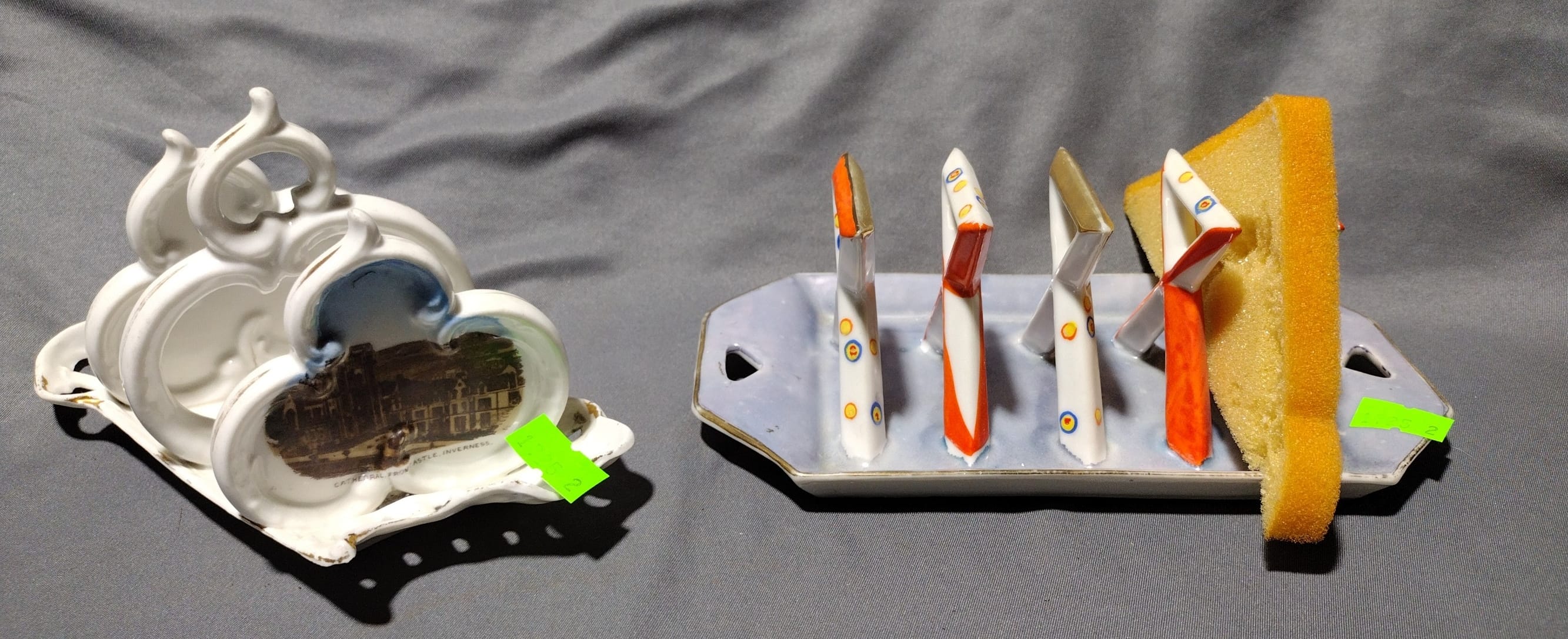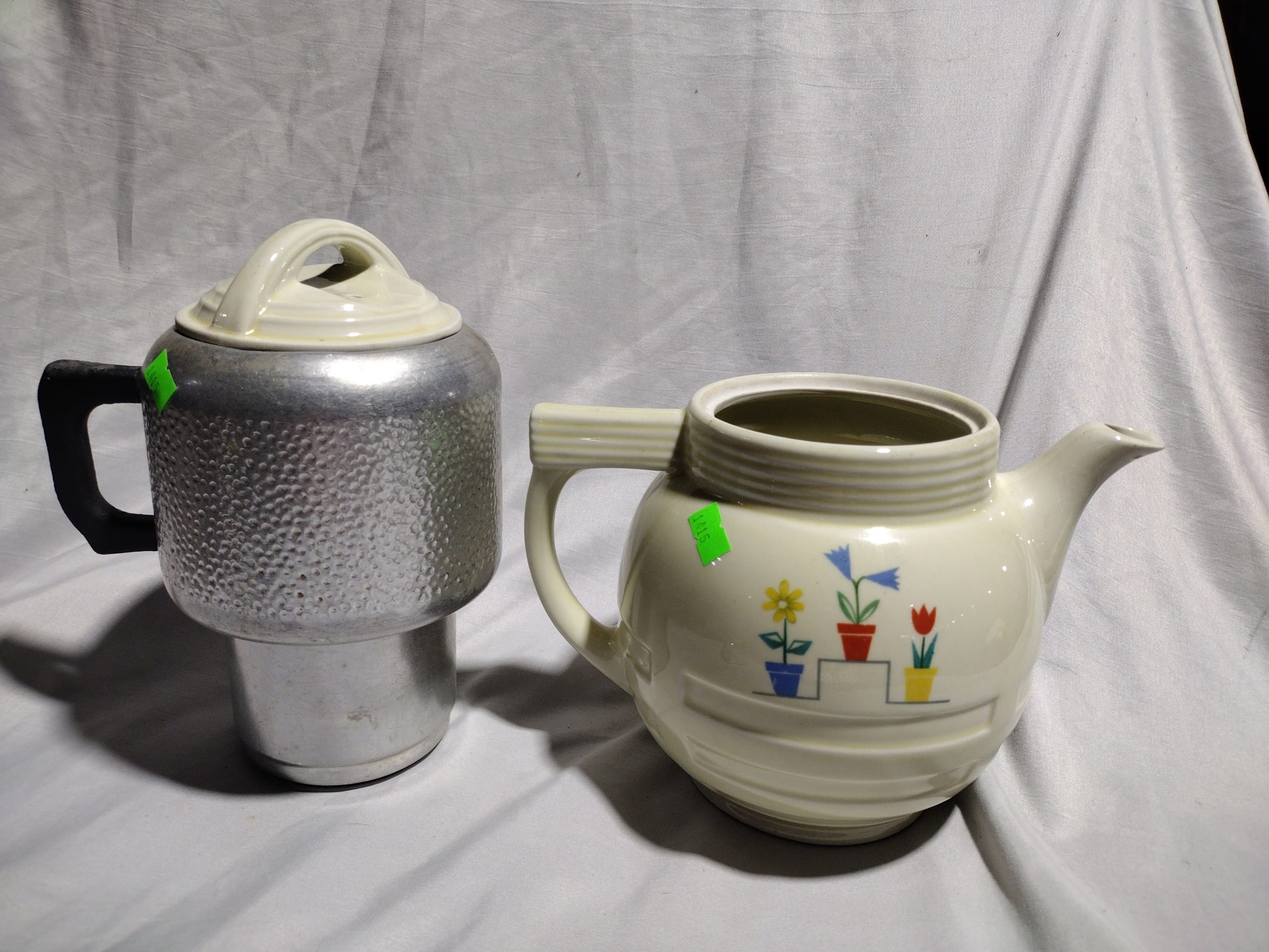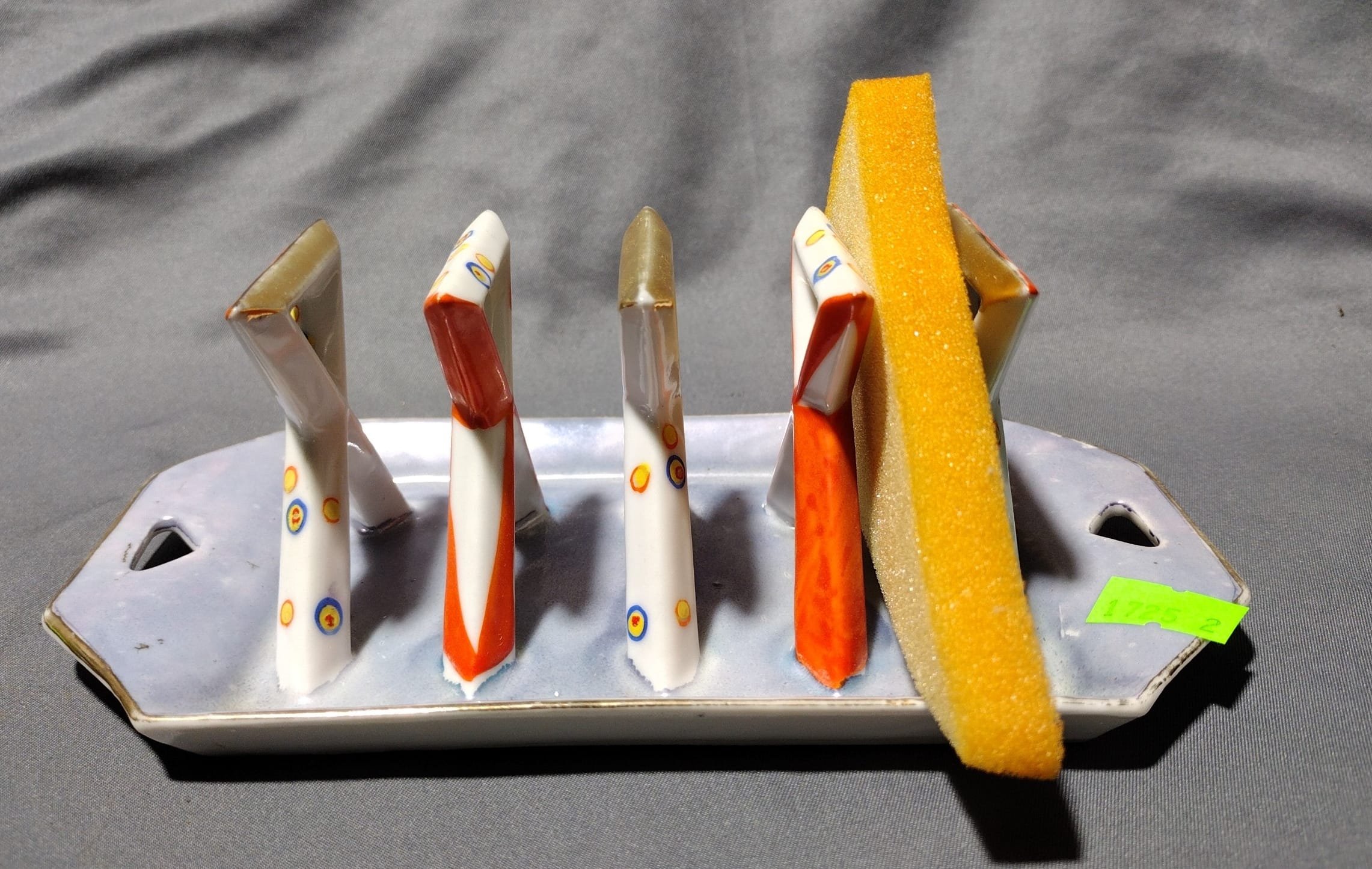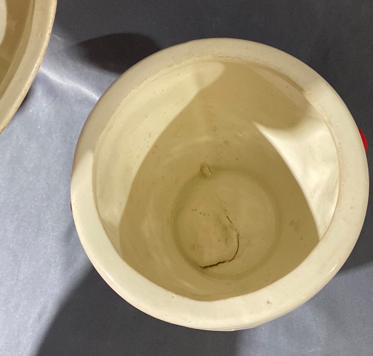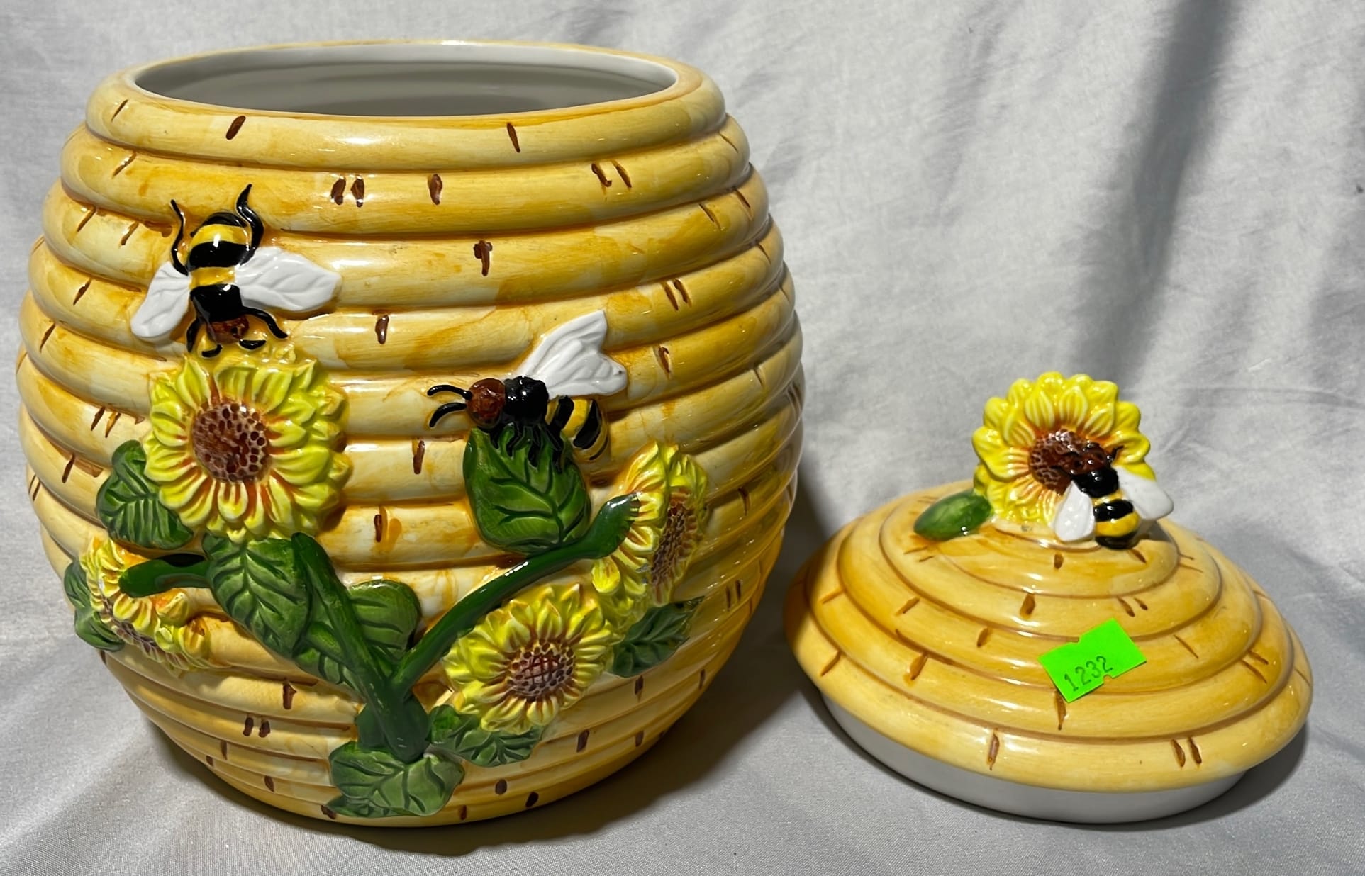 1226 Ceramic flower frog 3"x4", ceramic creamer 5"