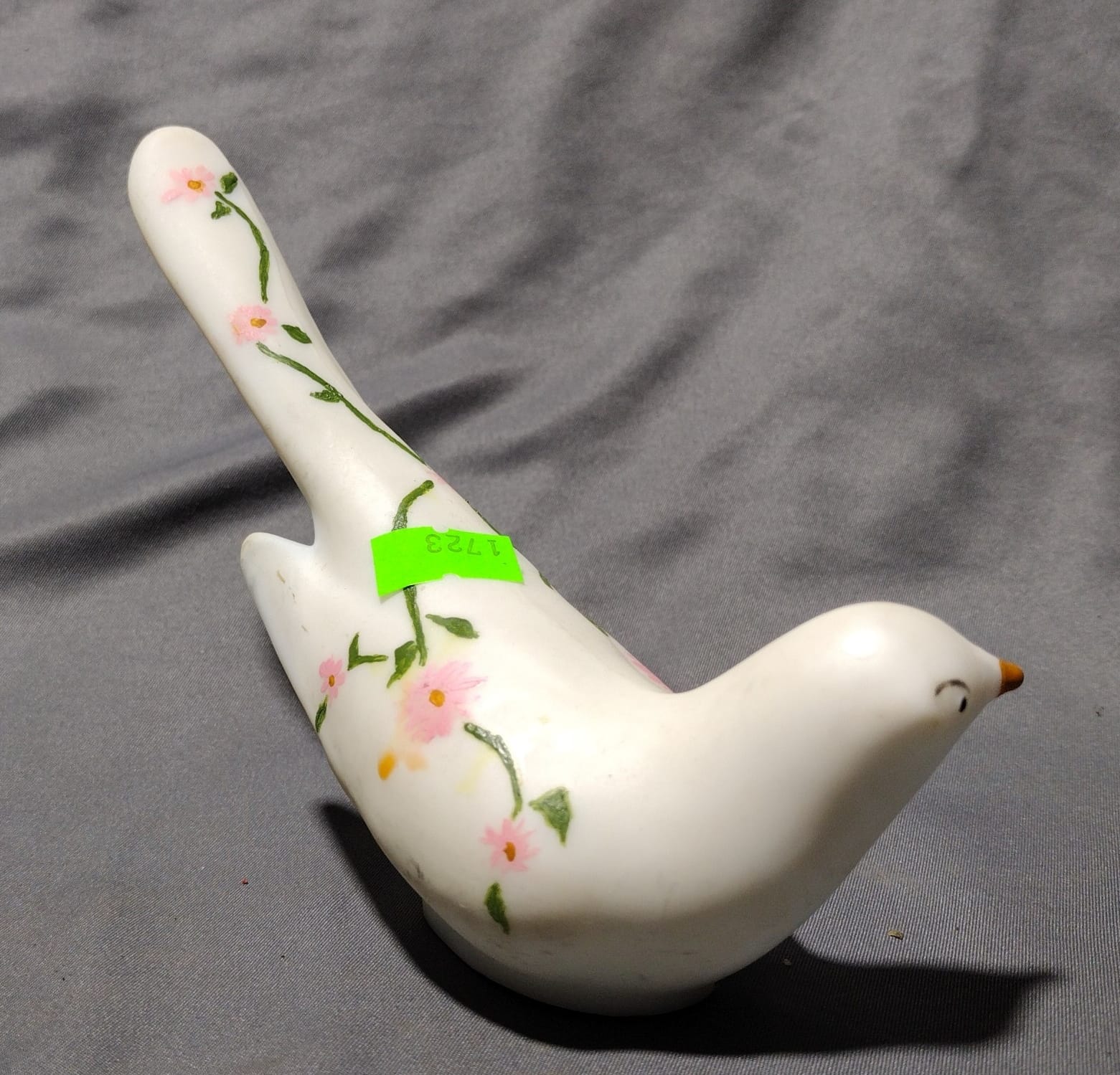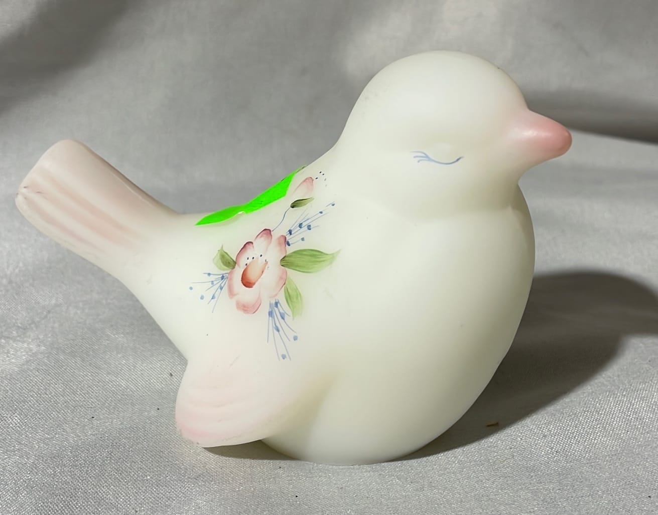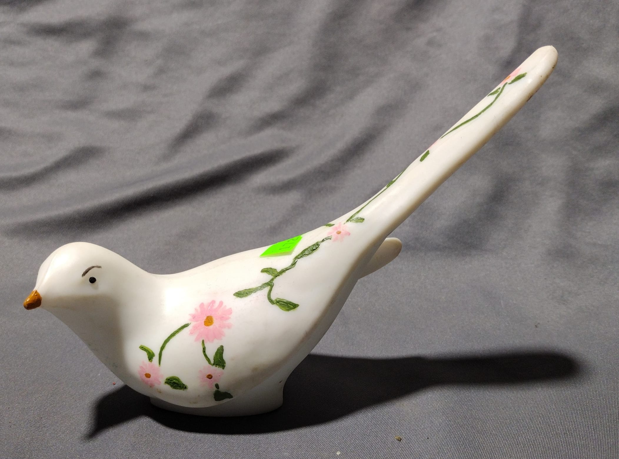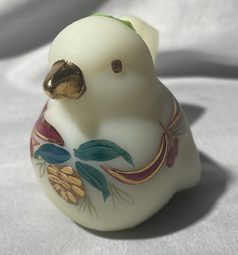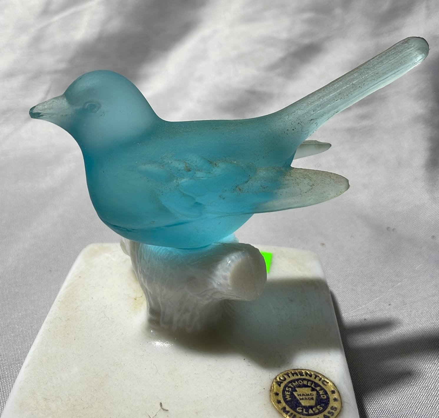 1265 Westmoreland milk glass stand with bird, birds wings are chipped on edges 3"x4"