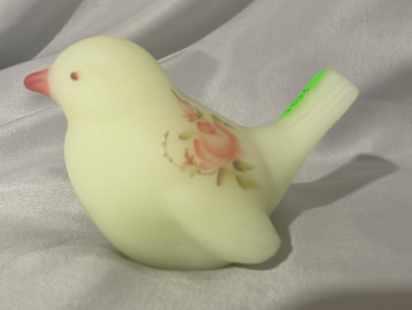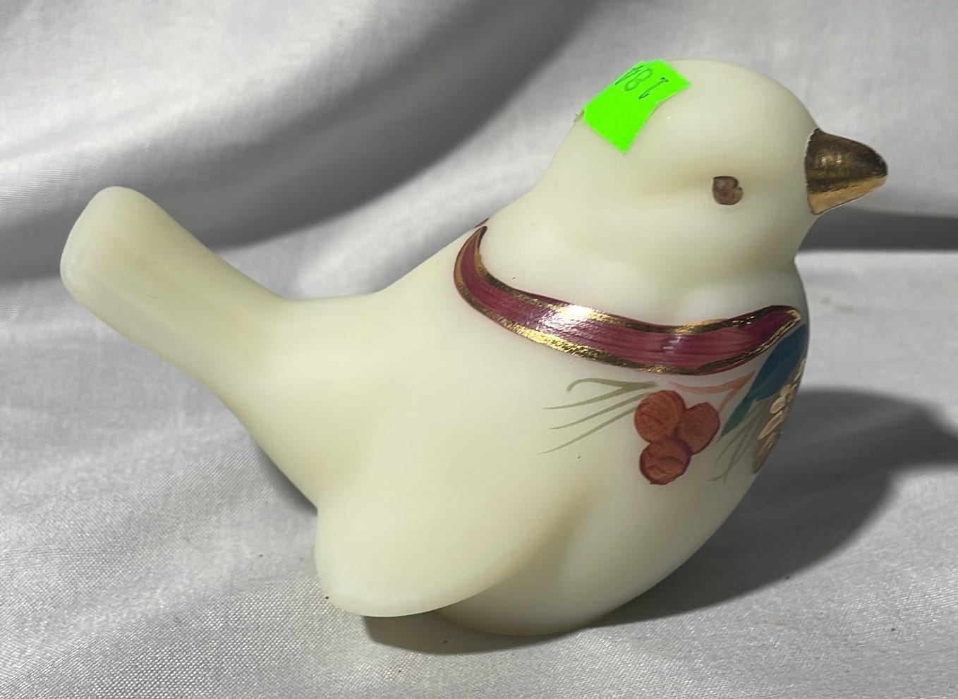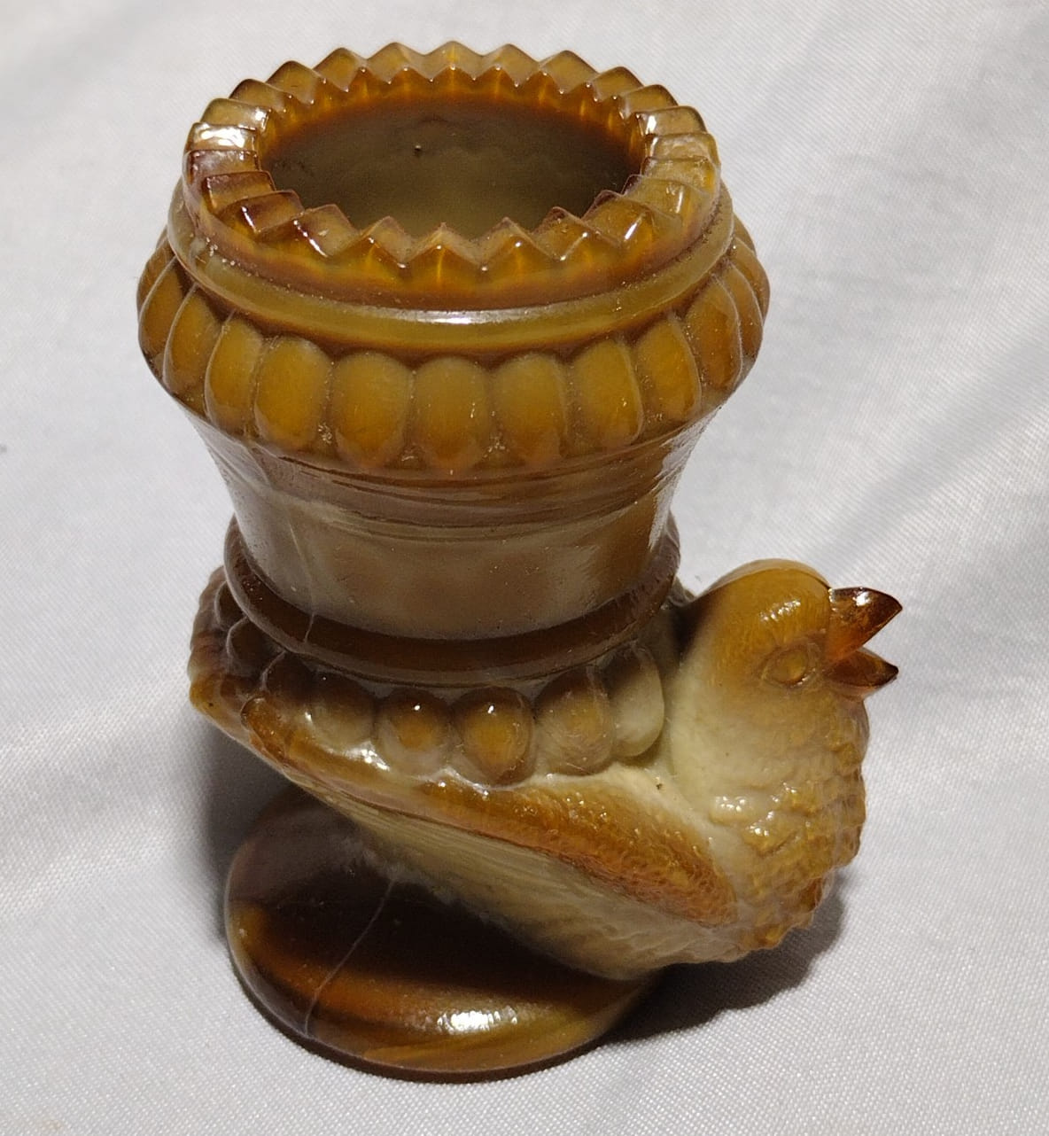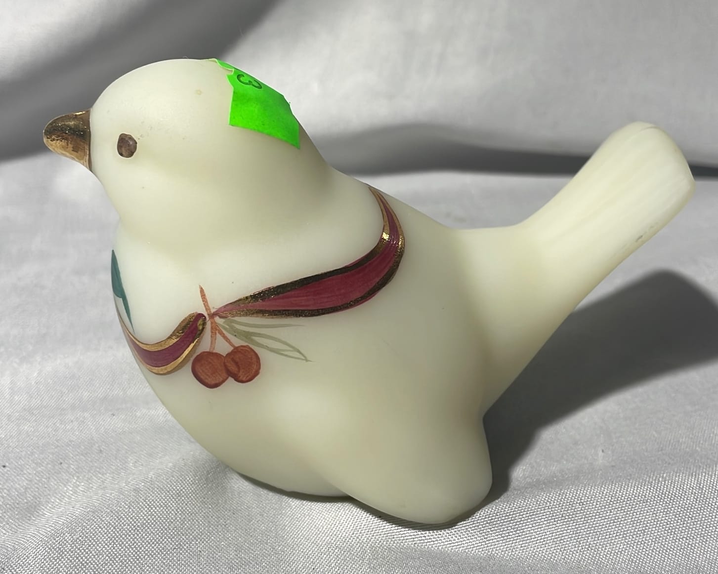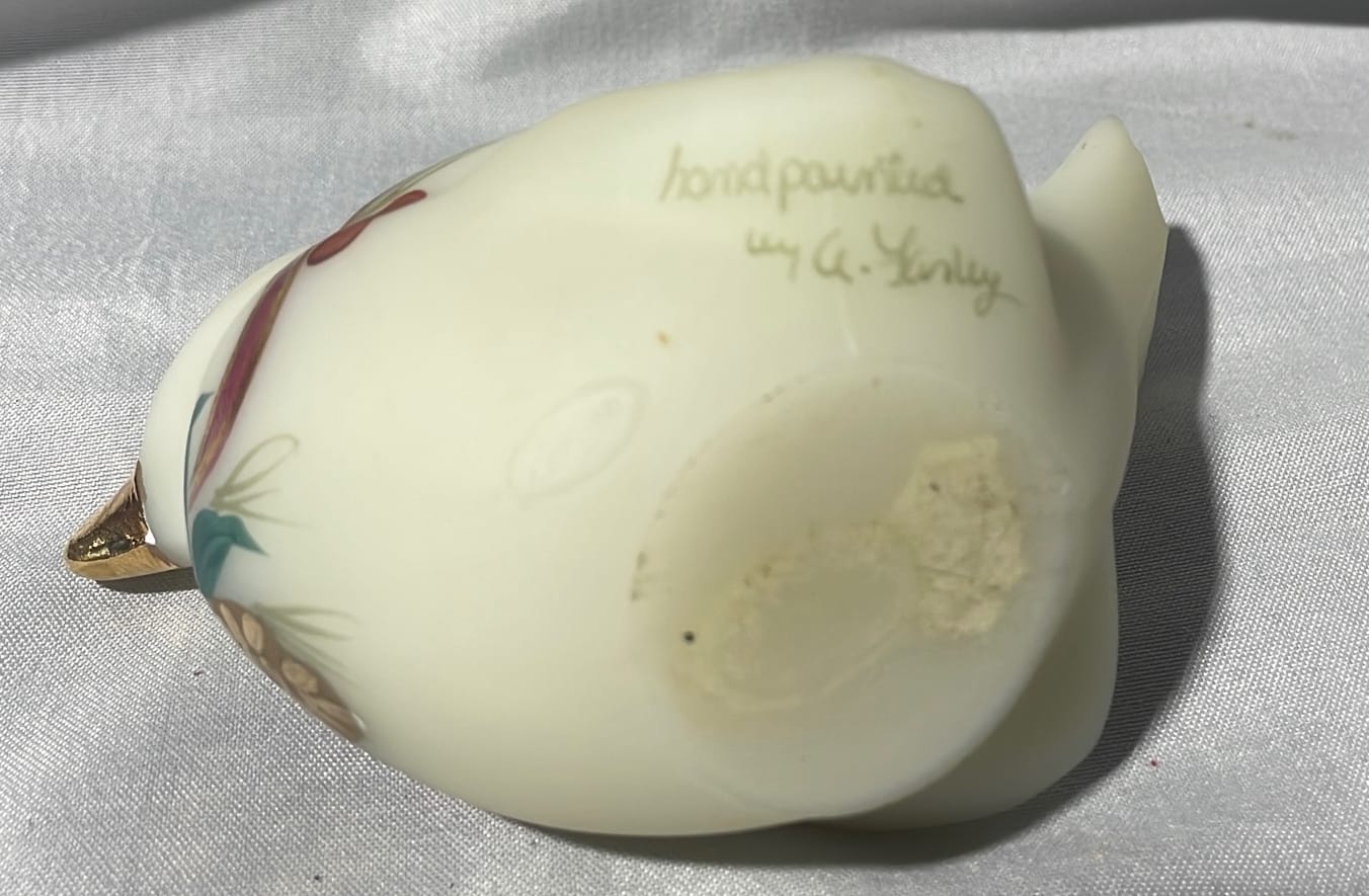 1265 Westmoreland milk glass stand with bird, birds wings are chipped on edges 3"x4"