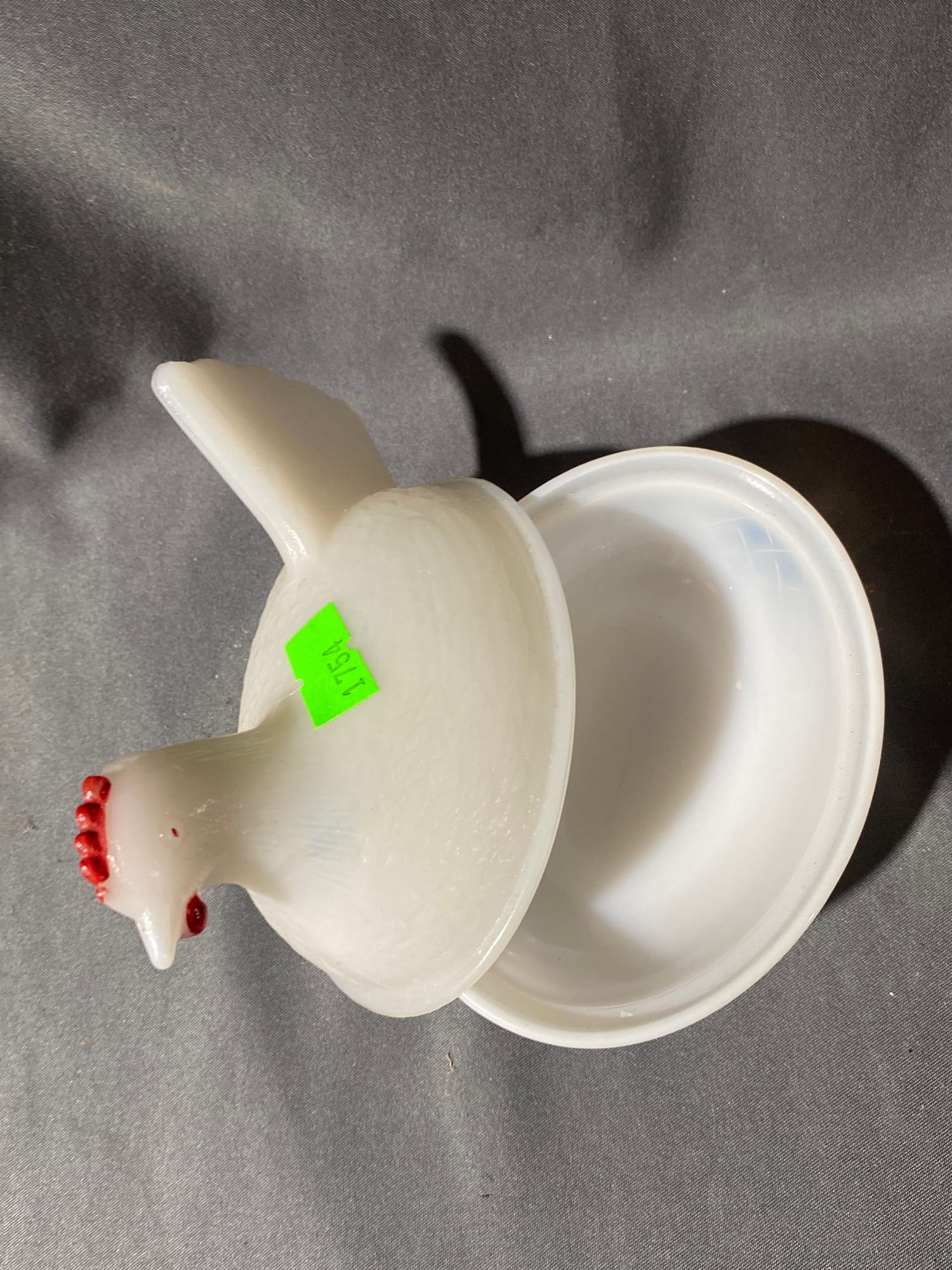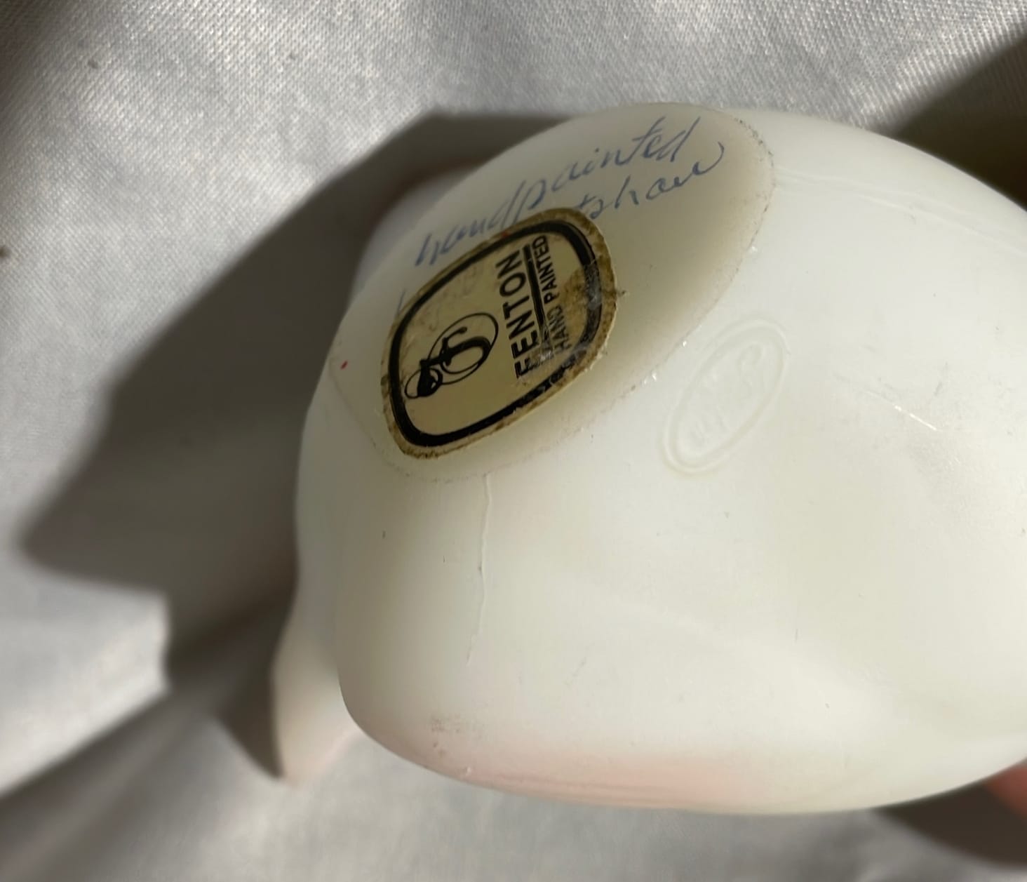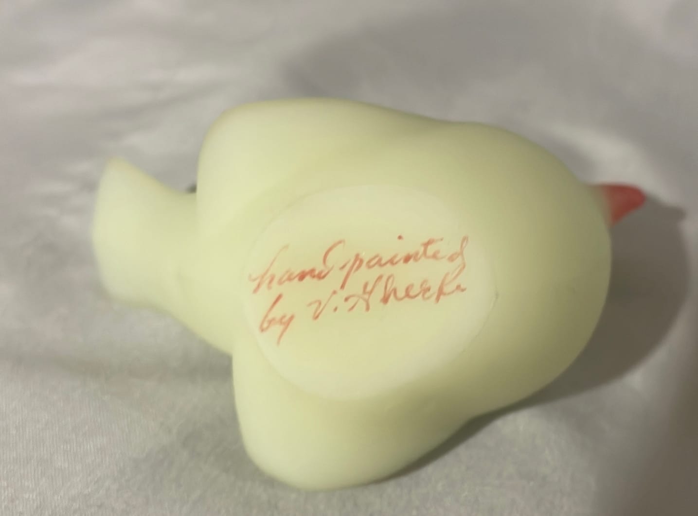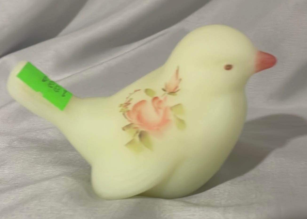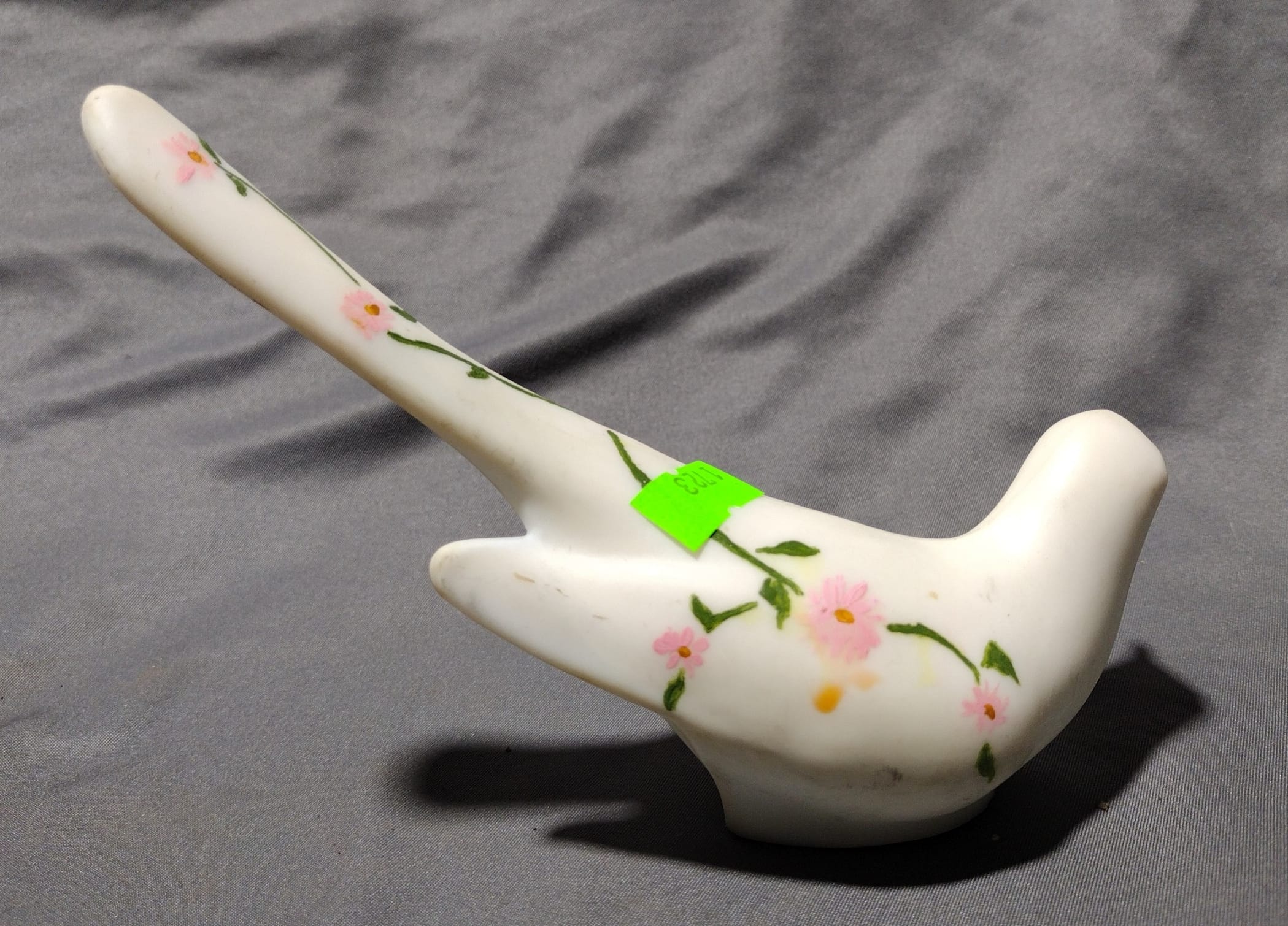 1265 Westmoreland milk glass stand with bird, birds wings are chipped on edges 3"x4"