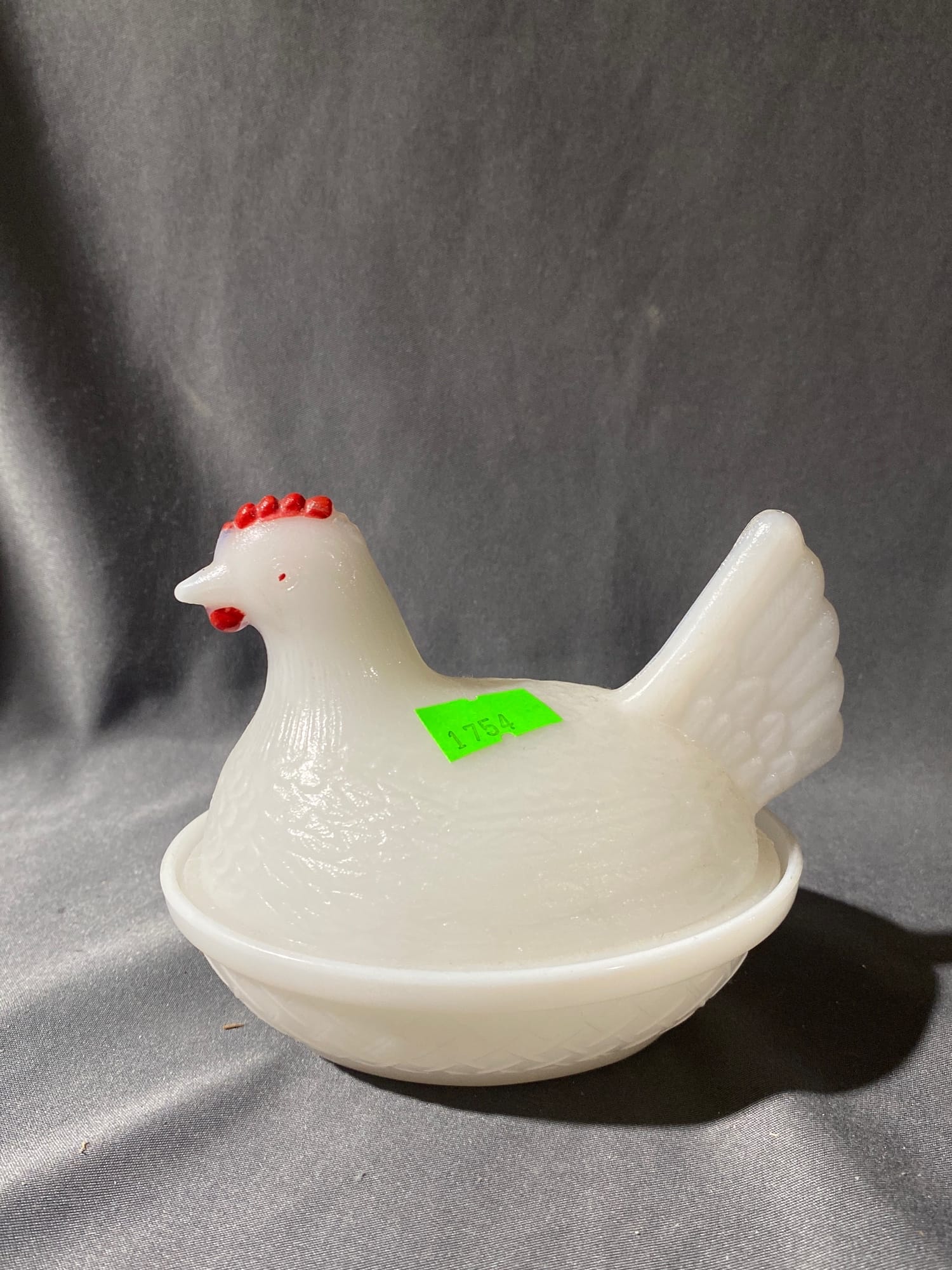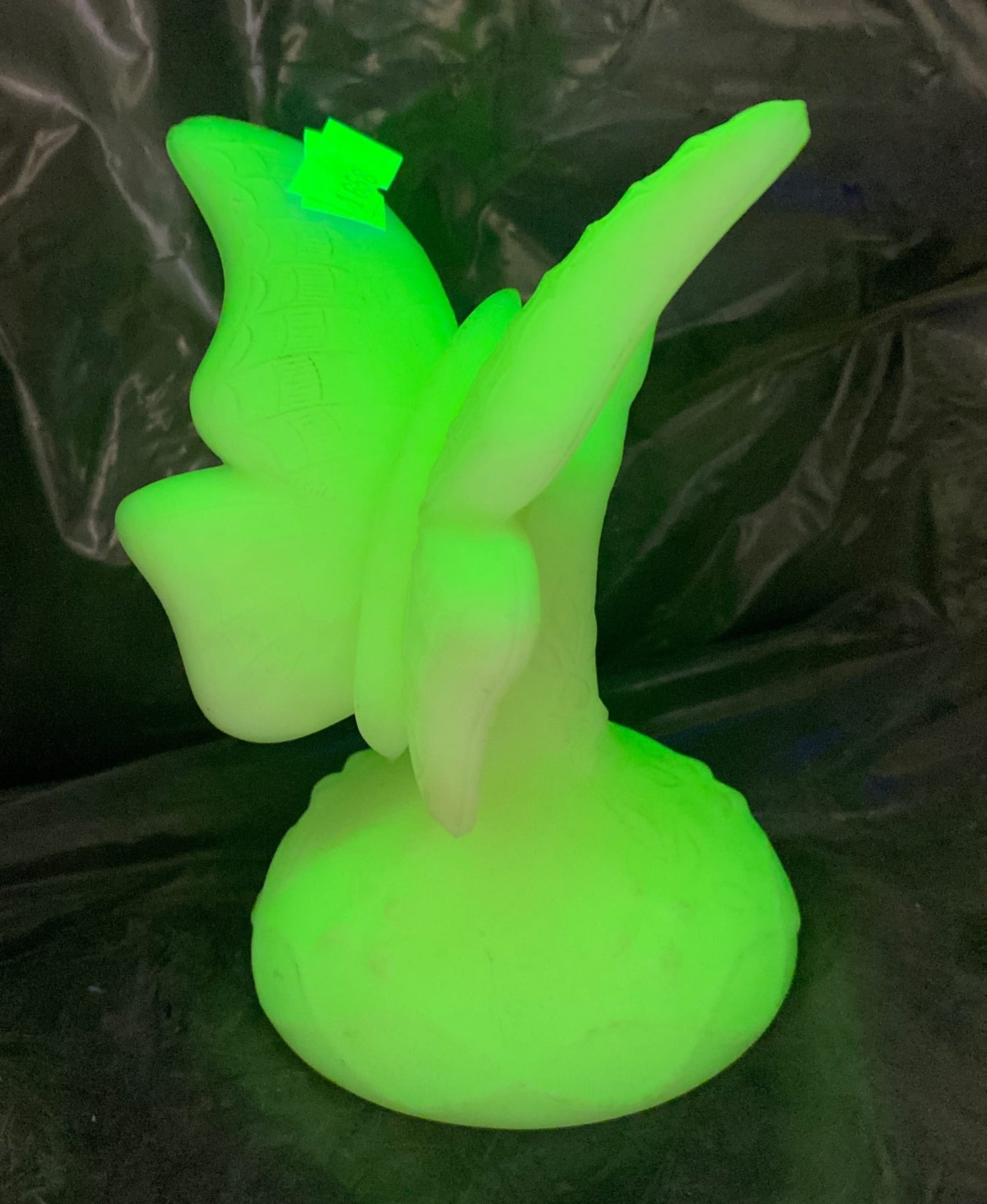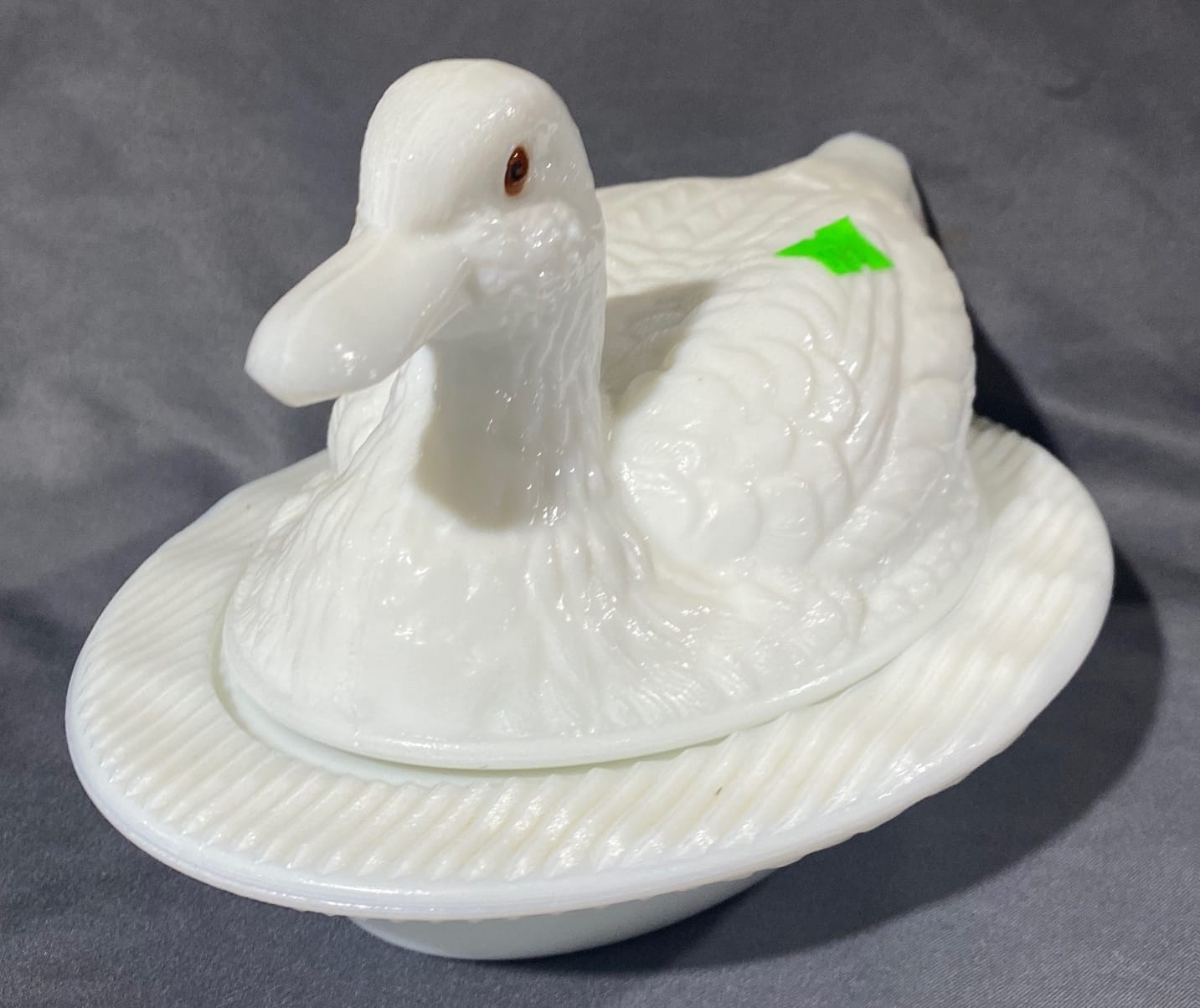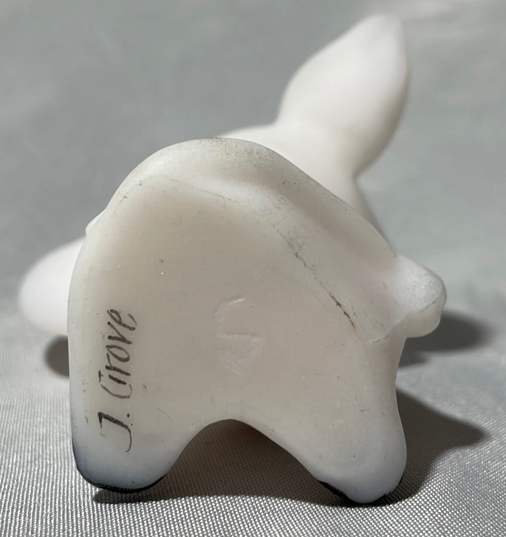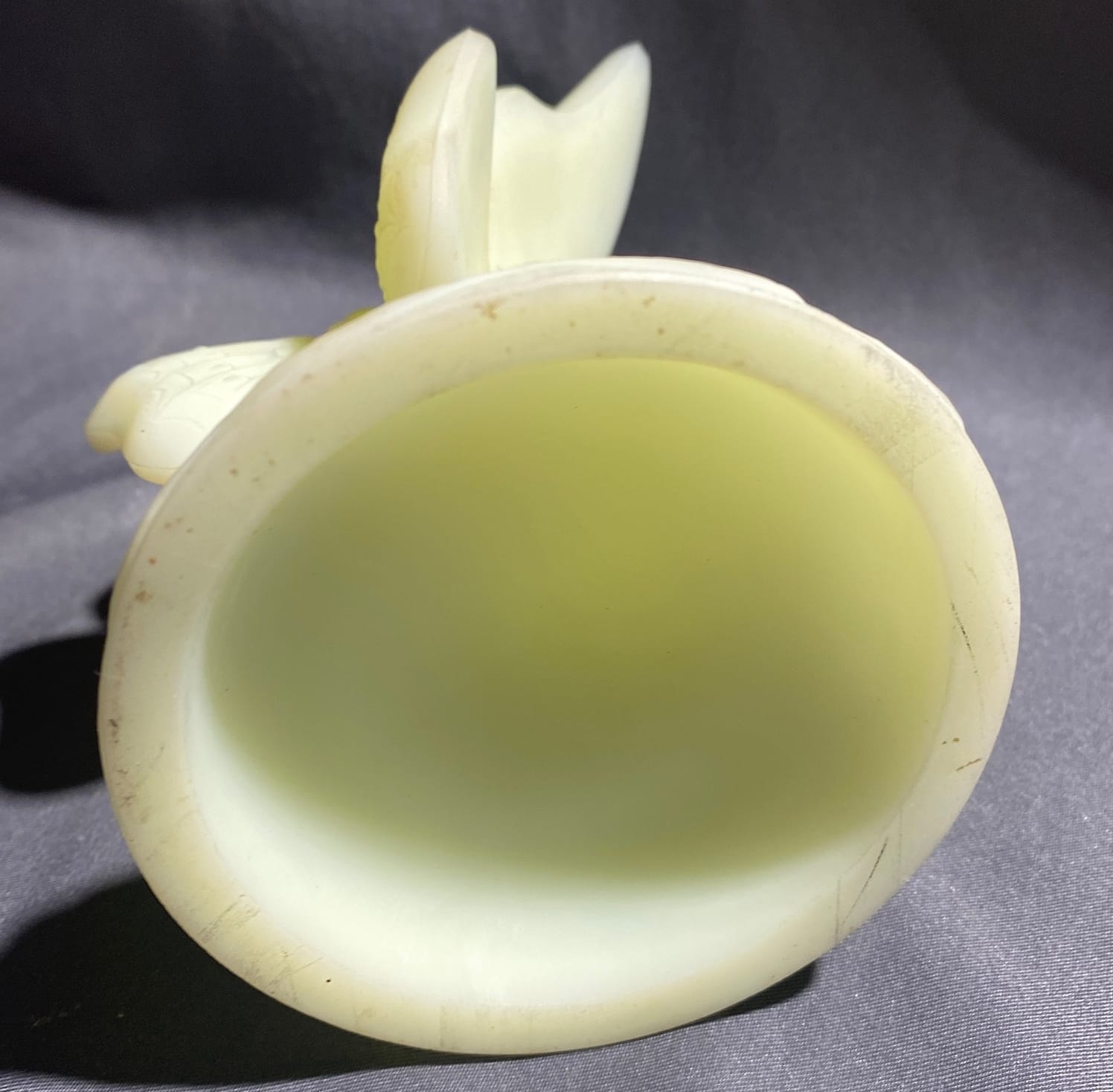 1265 Westmoreland milk glass stand with bird, birds wings are chipped on edges 3"x4"
