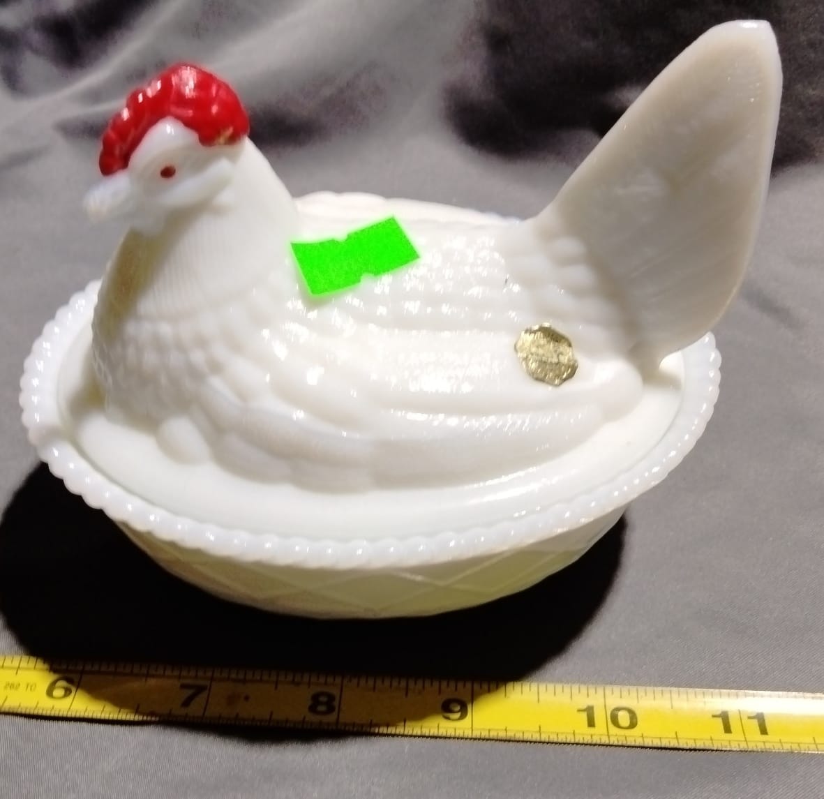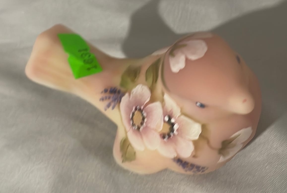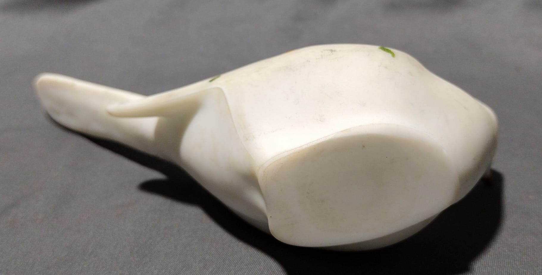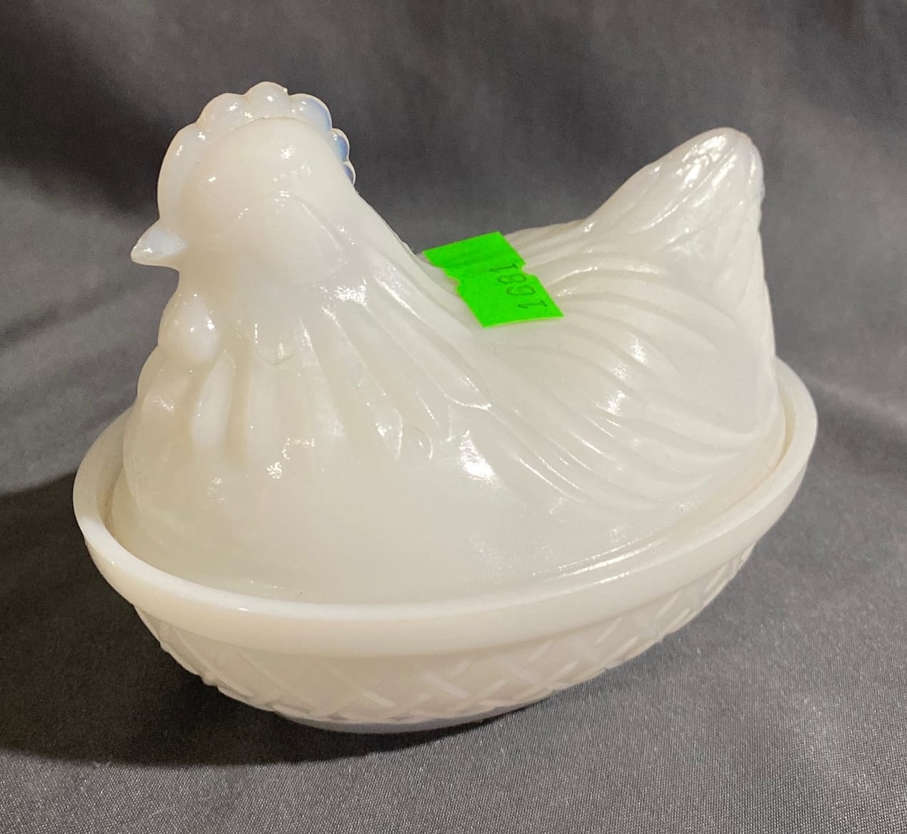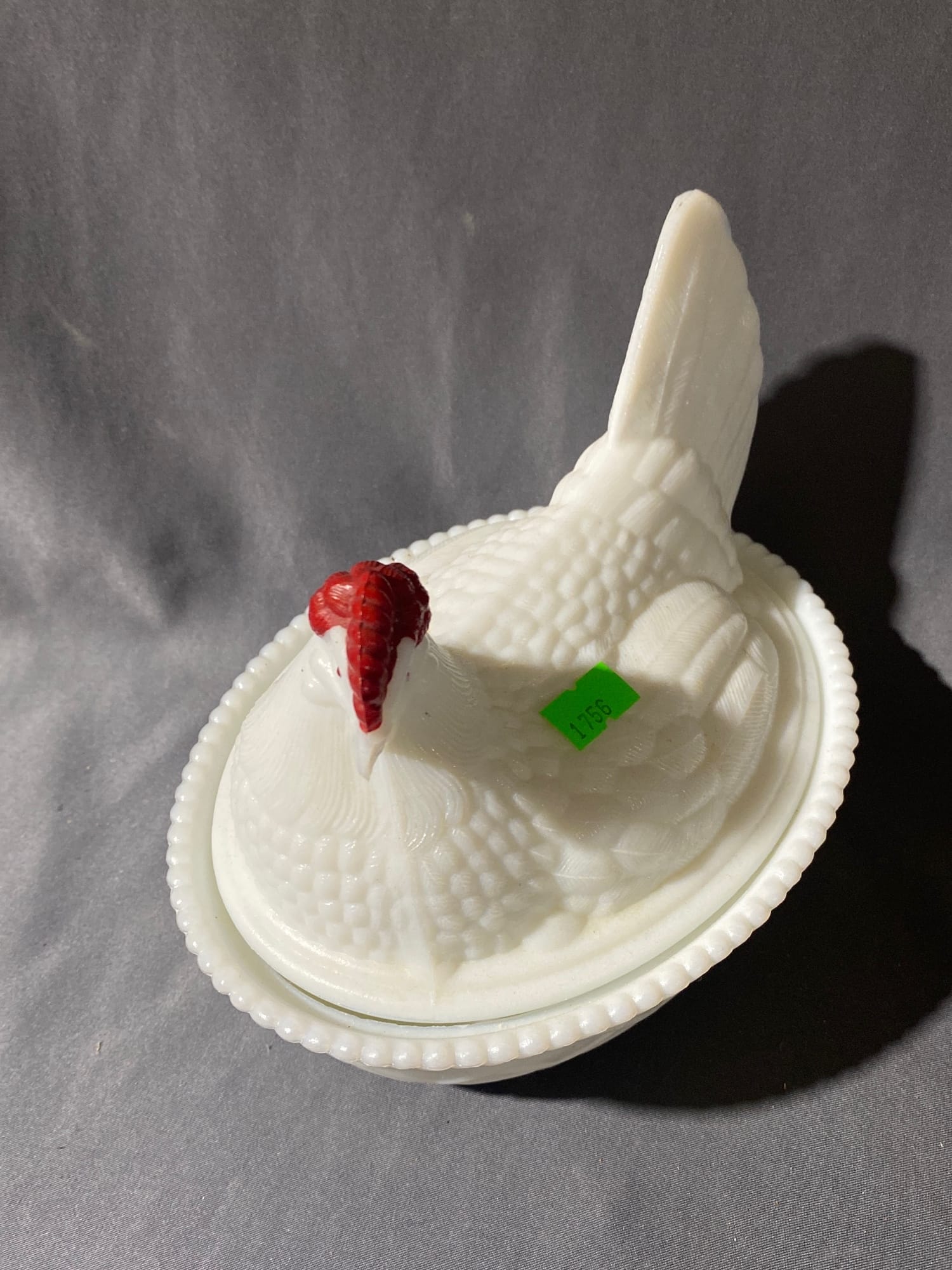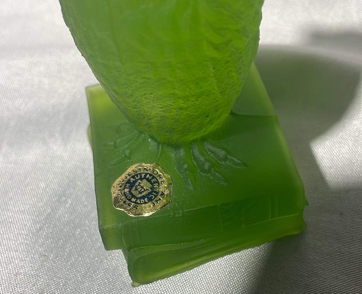 1265 Westmoreland milk glass stand with bird, birds wings are chipped on edges 3"x4"