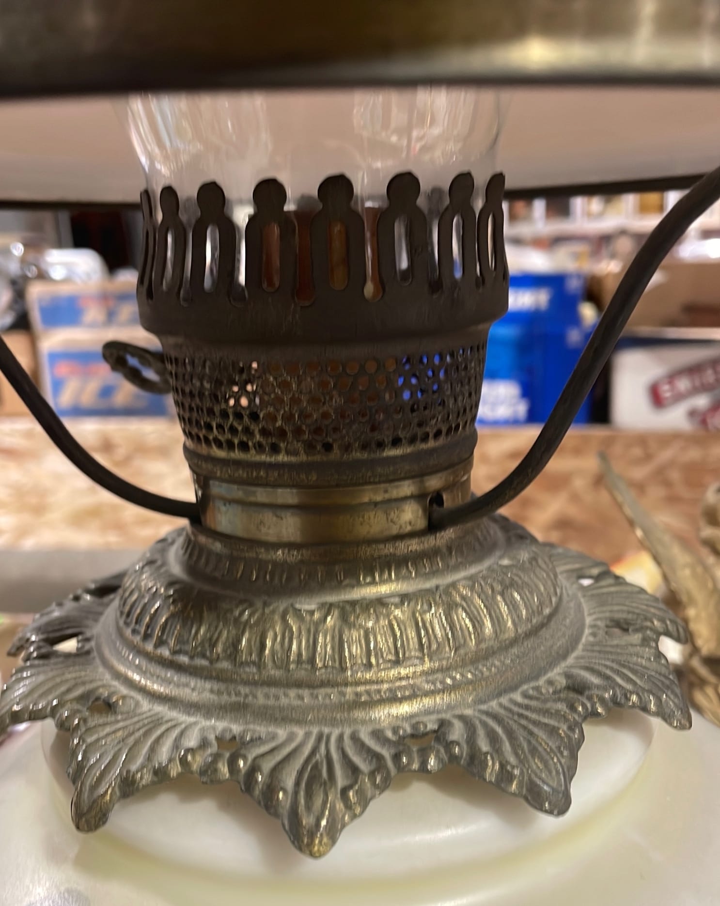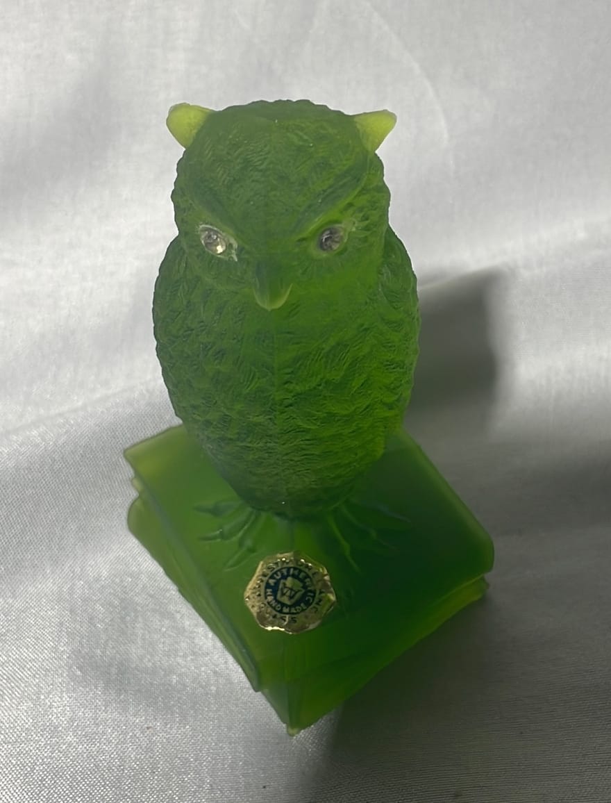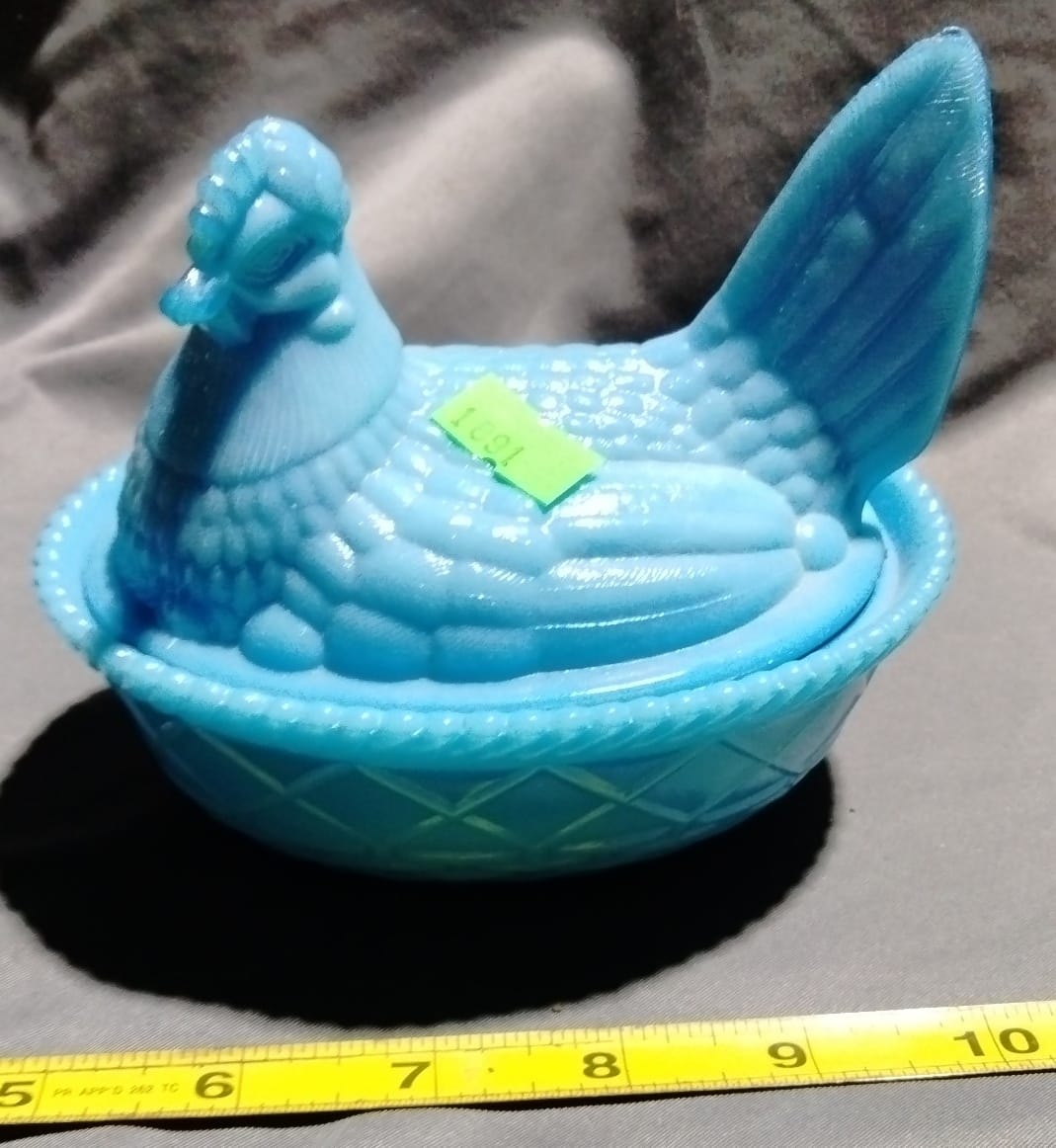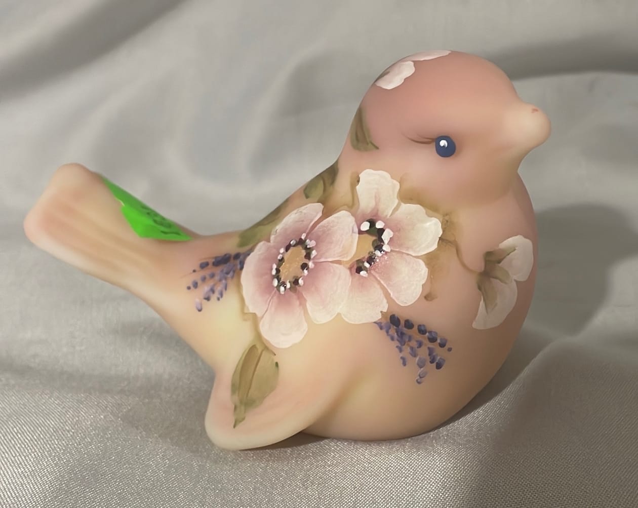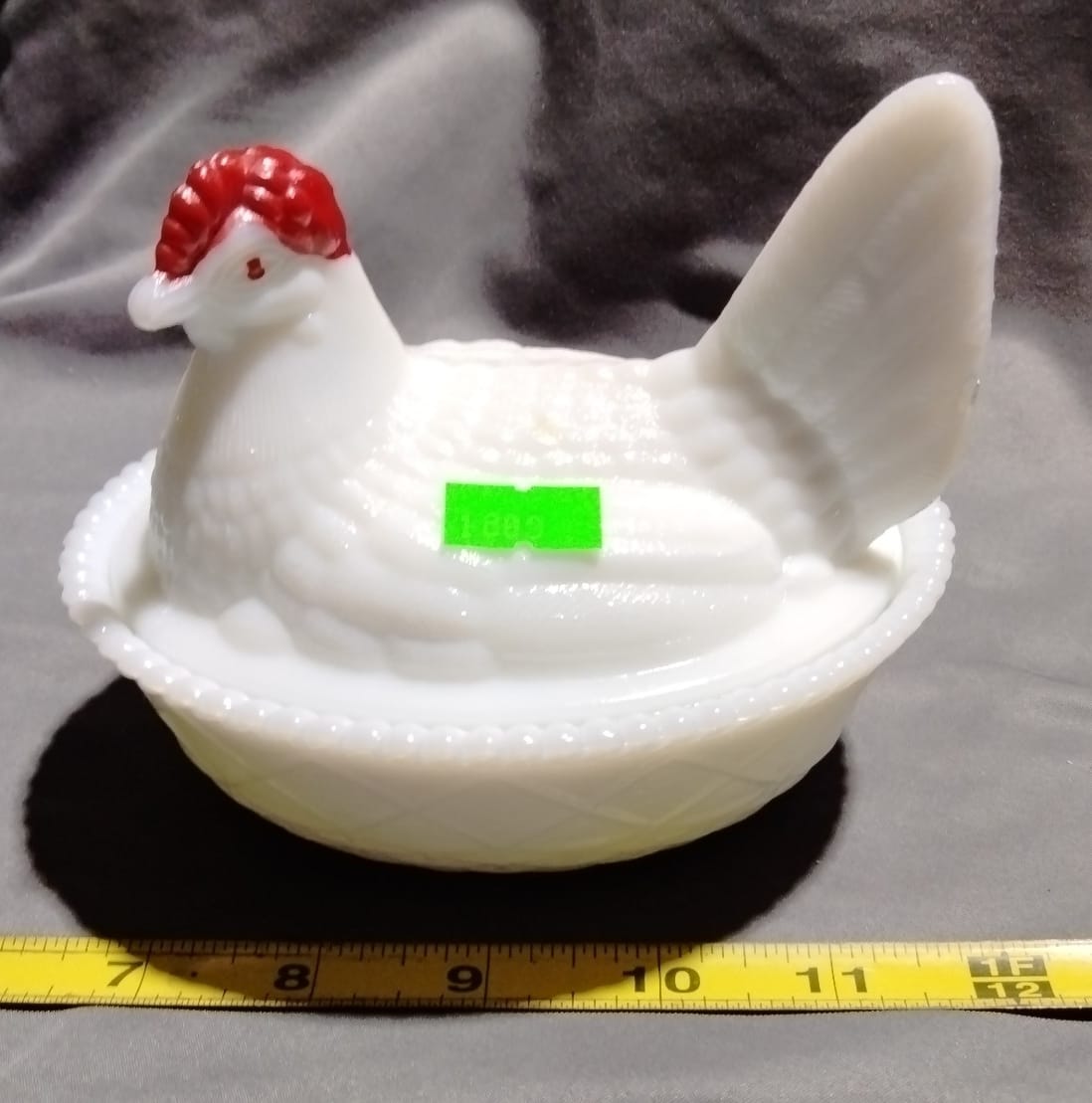 1265 Westmoreland milk glass stand with bird, birds wings are chipped on edges 3"x4"