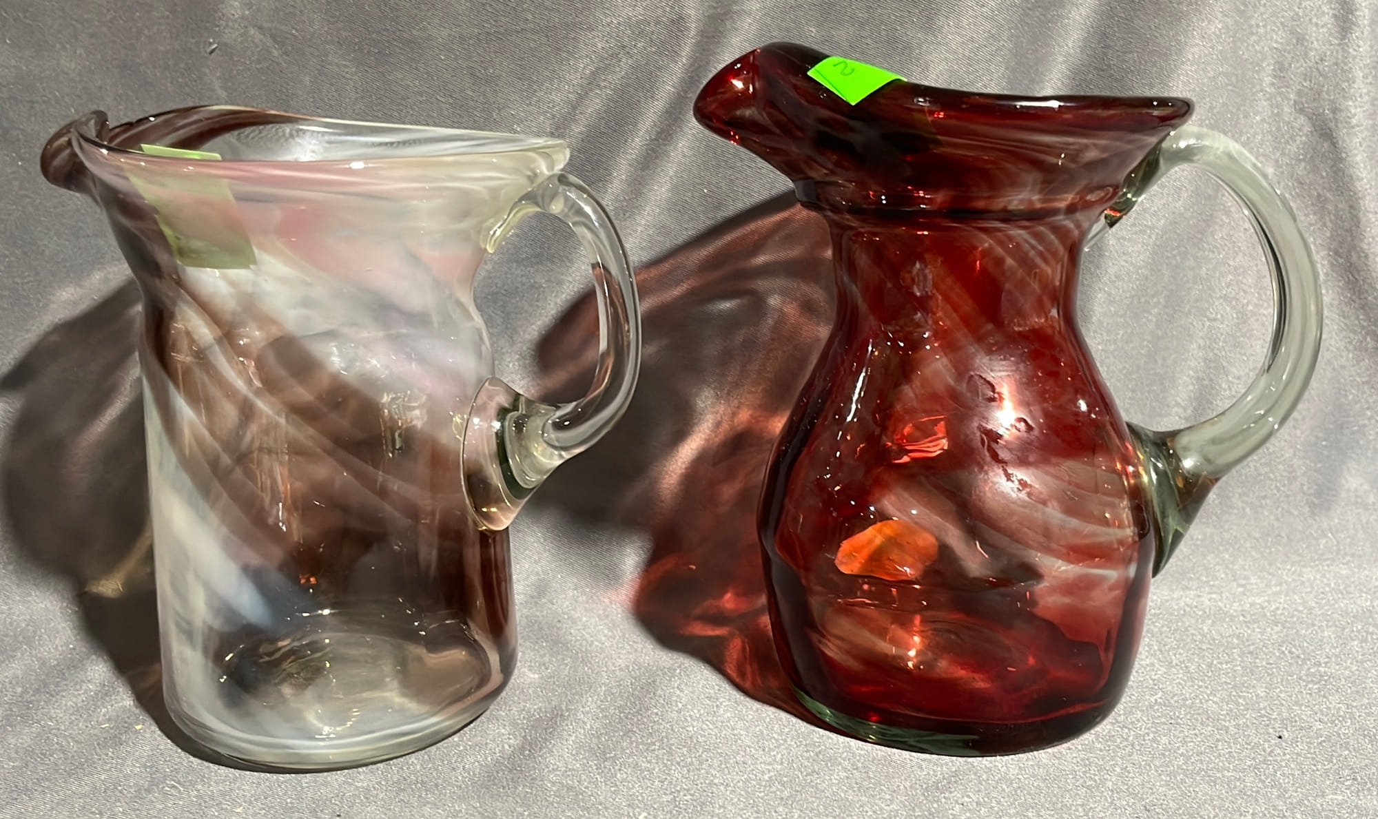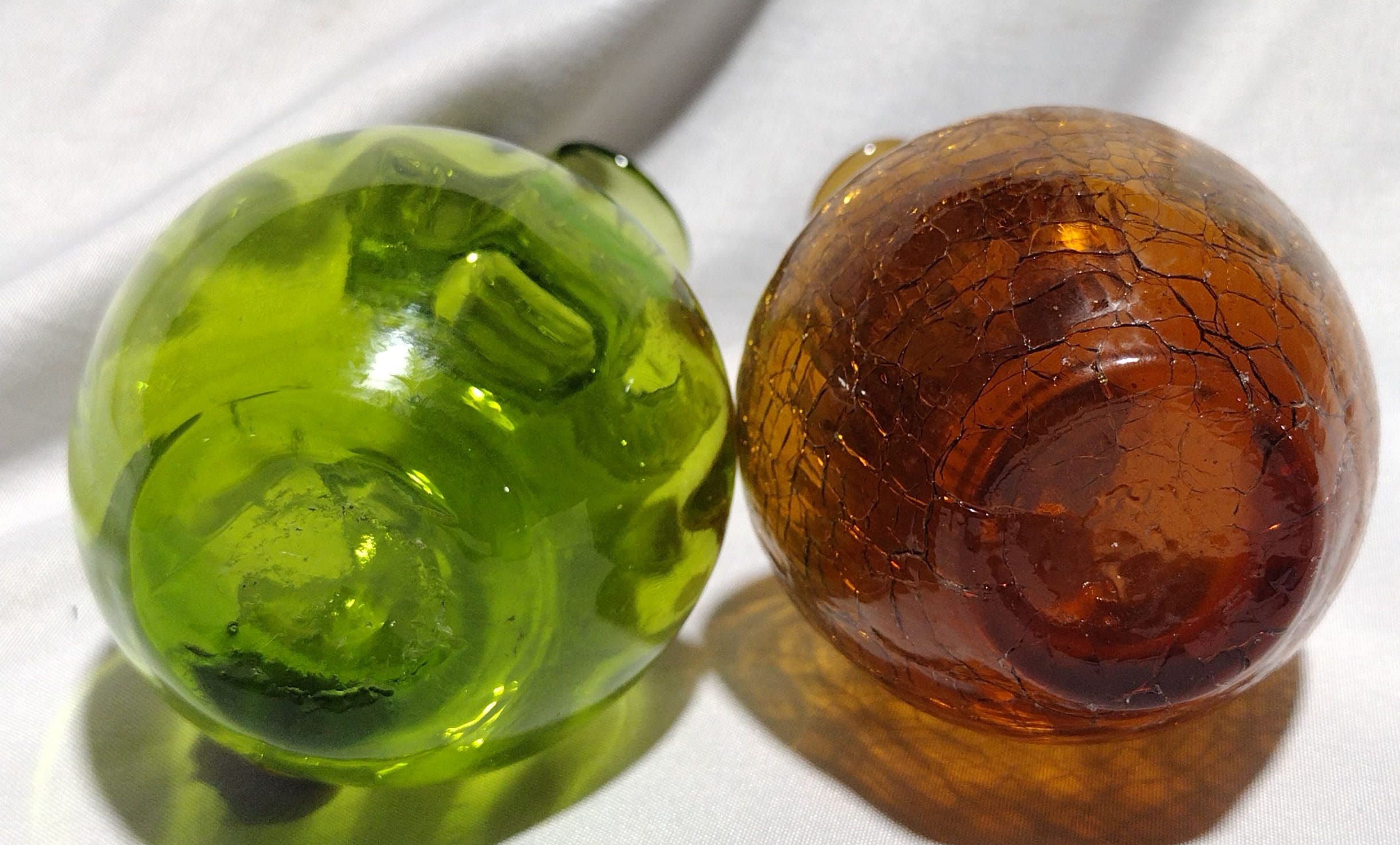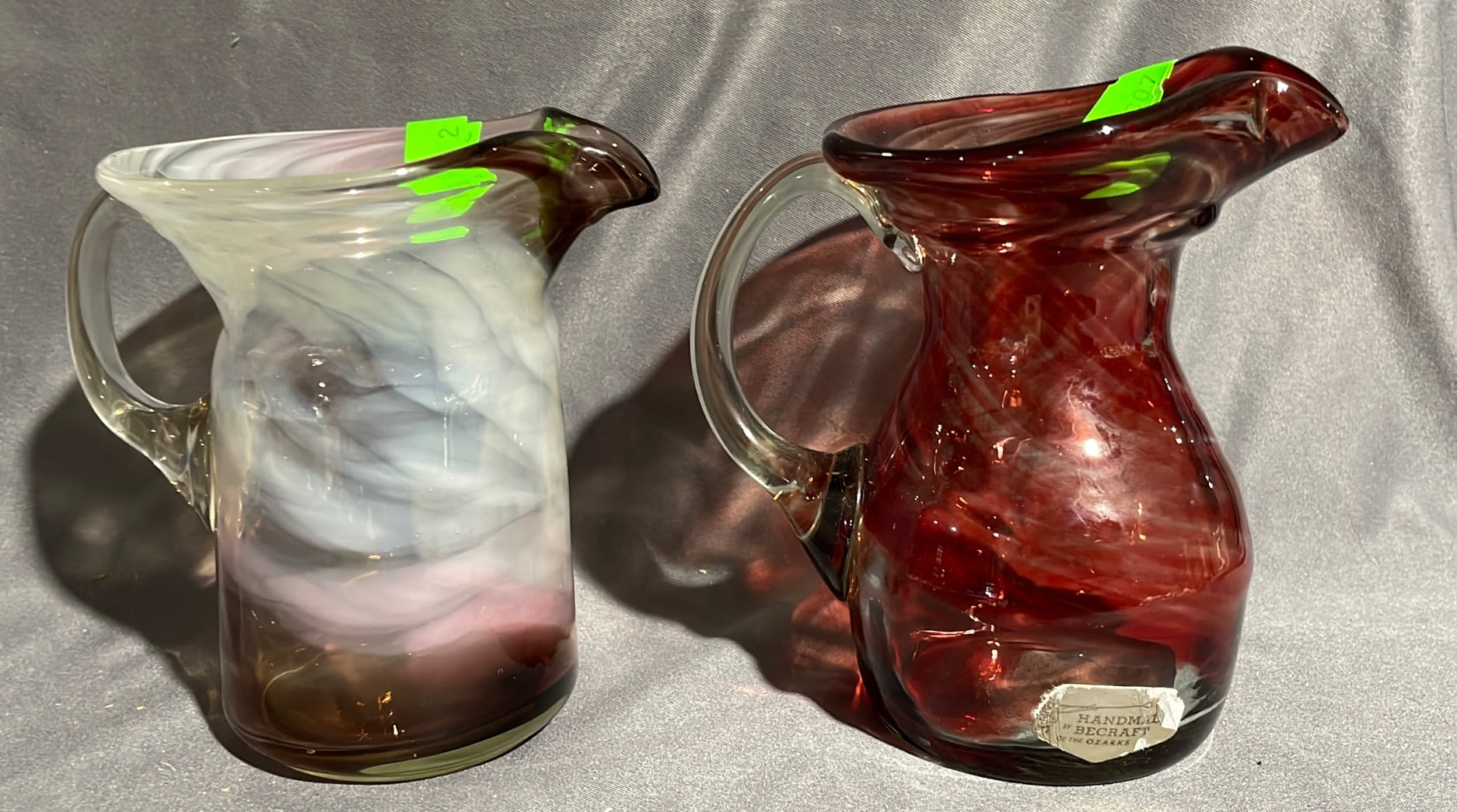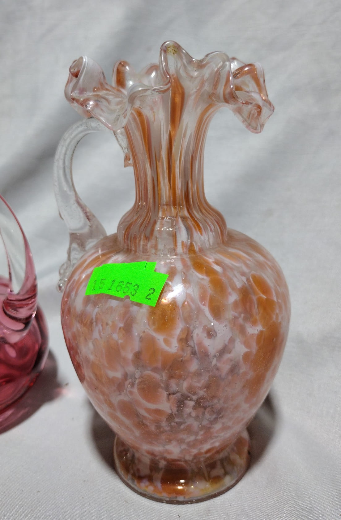 1234 2- Crackle glass creamers 4", 5", amber glass creamer 5"