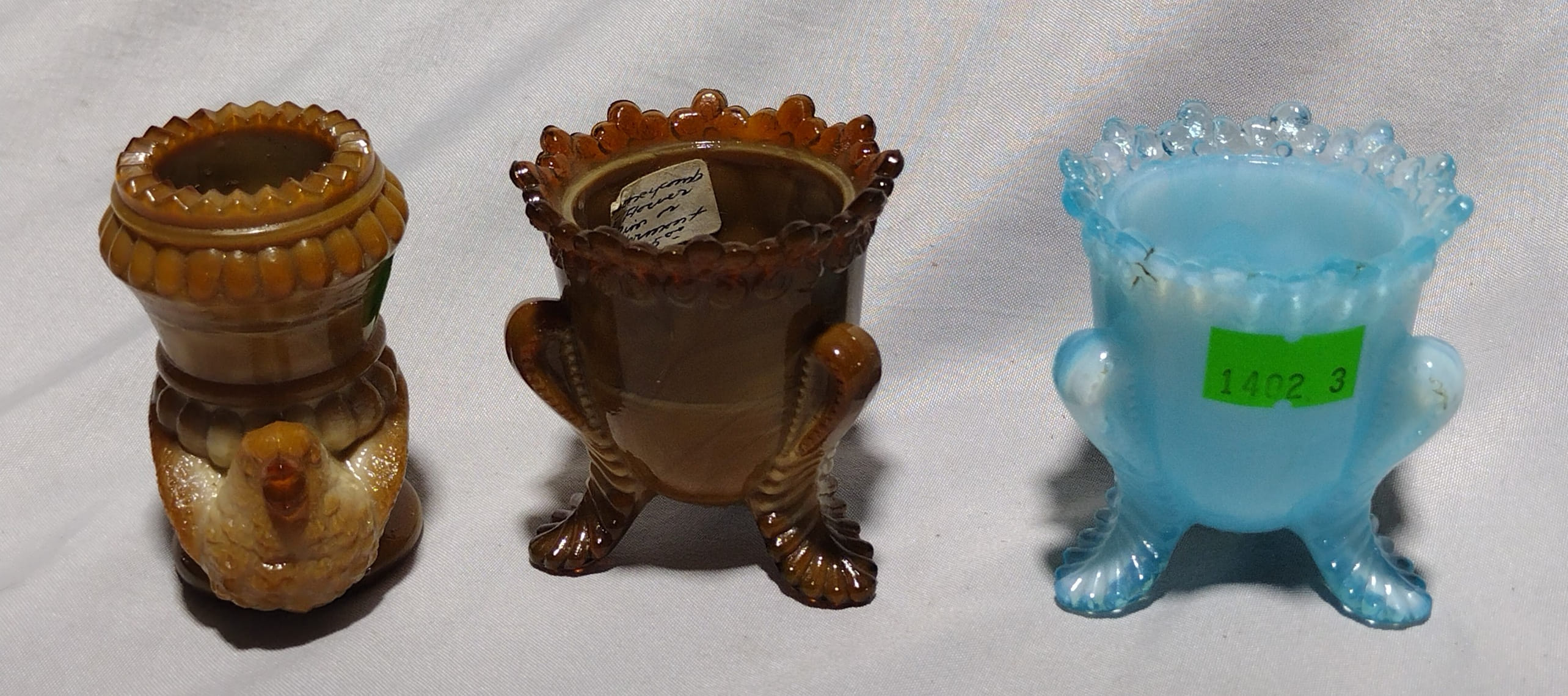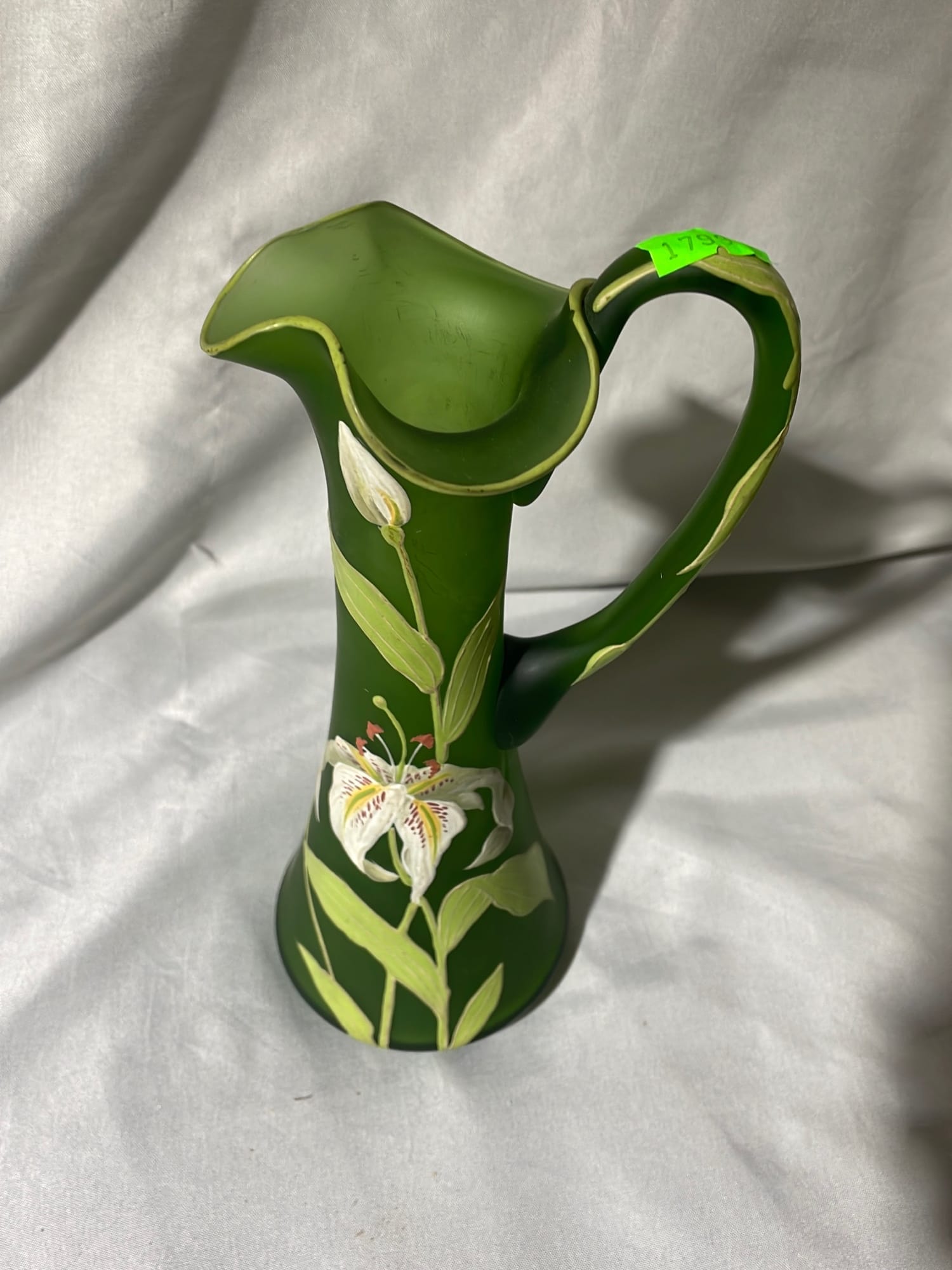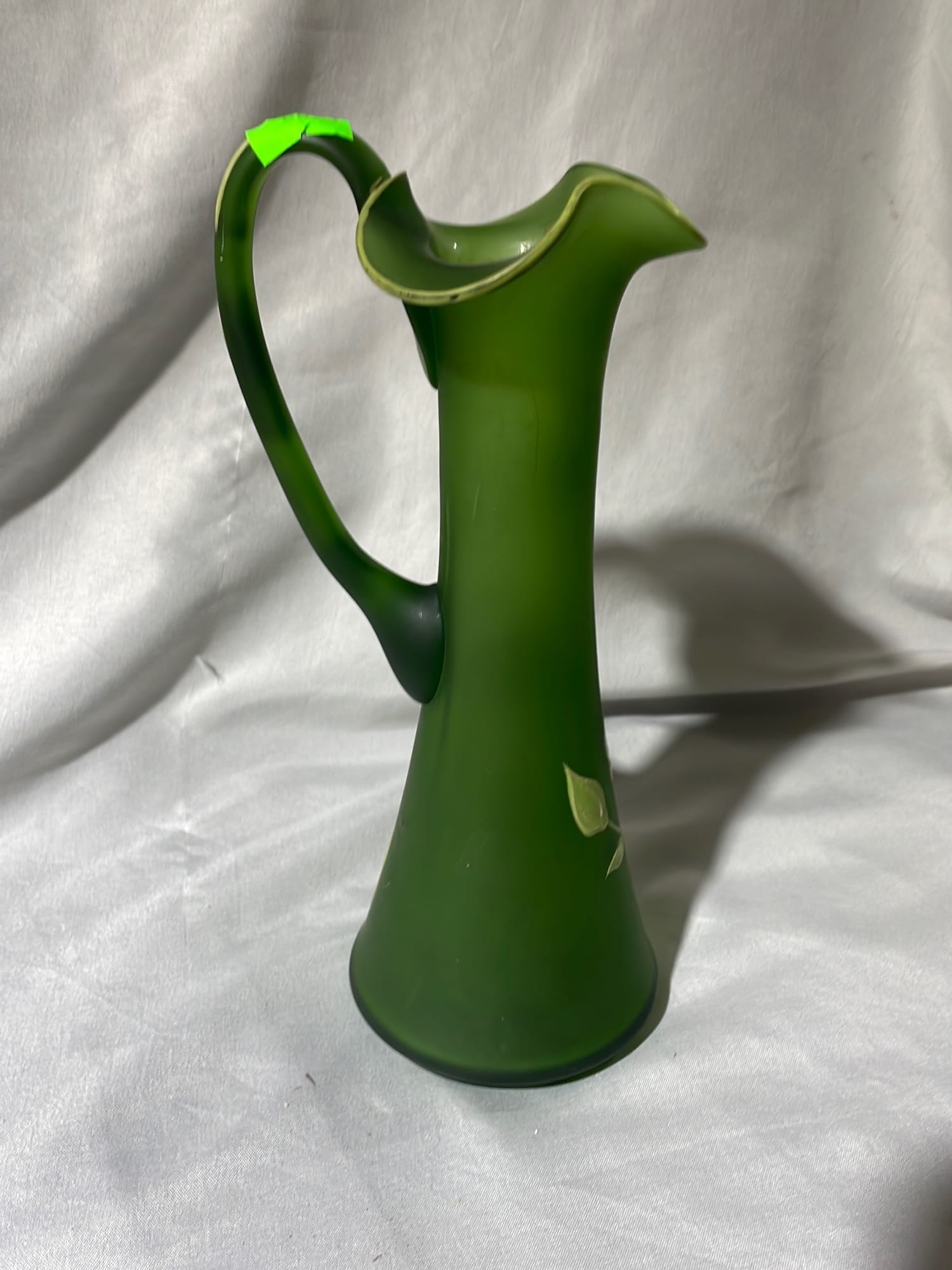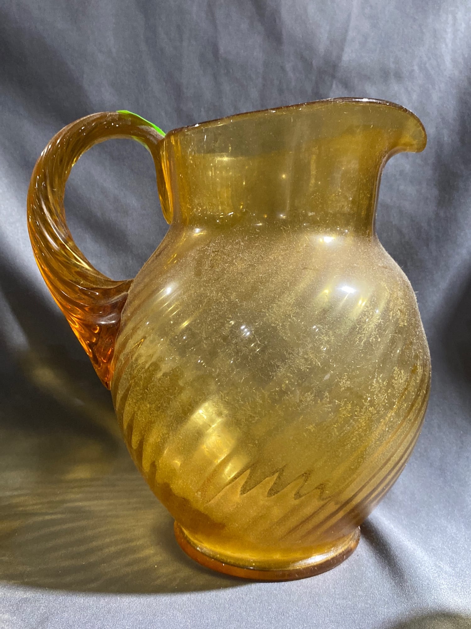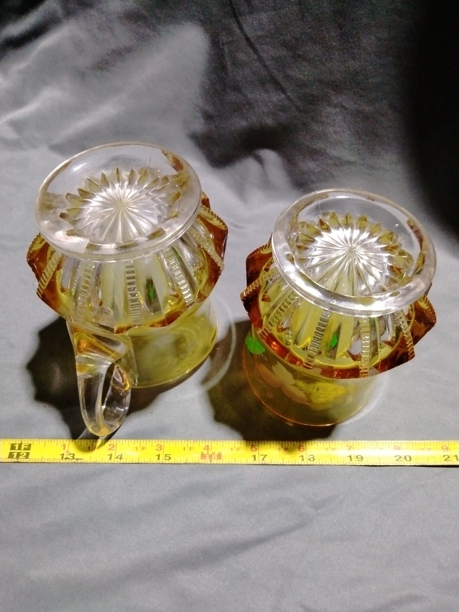 1234 2- Crackle glass creamers 4", 5", amber glass creamer 5"