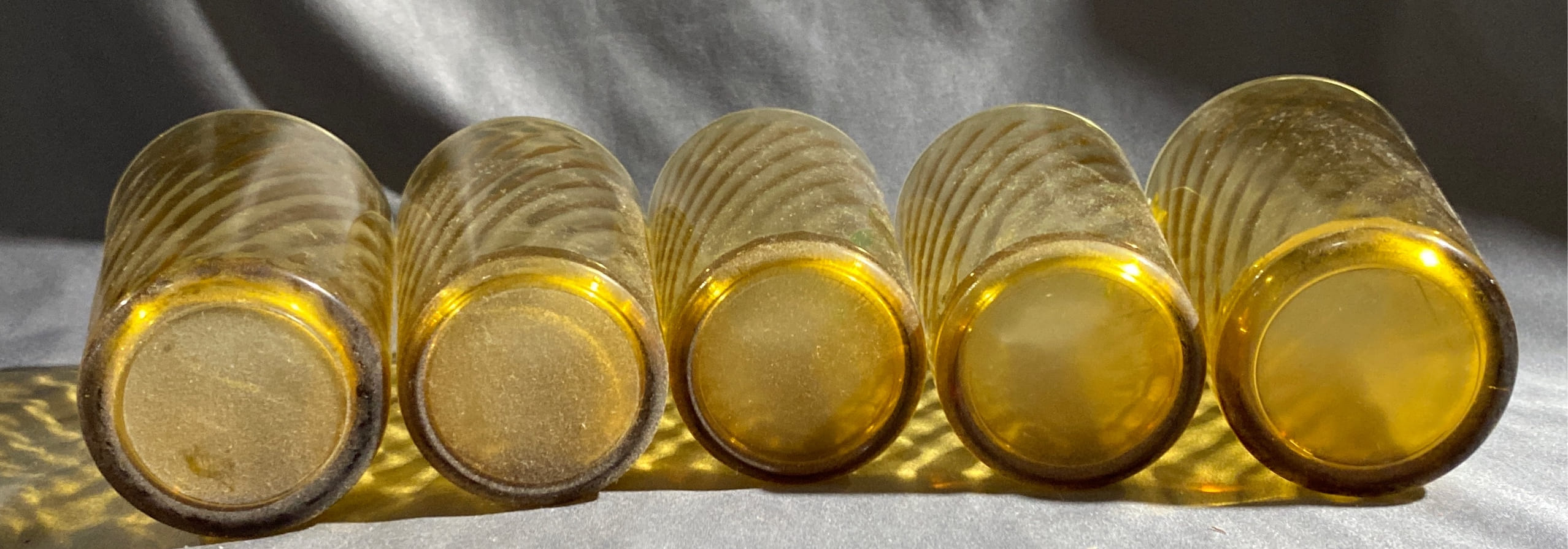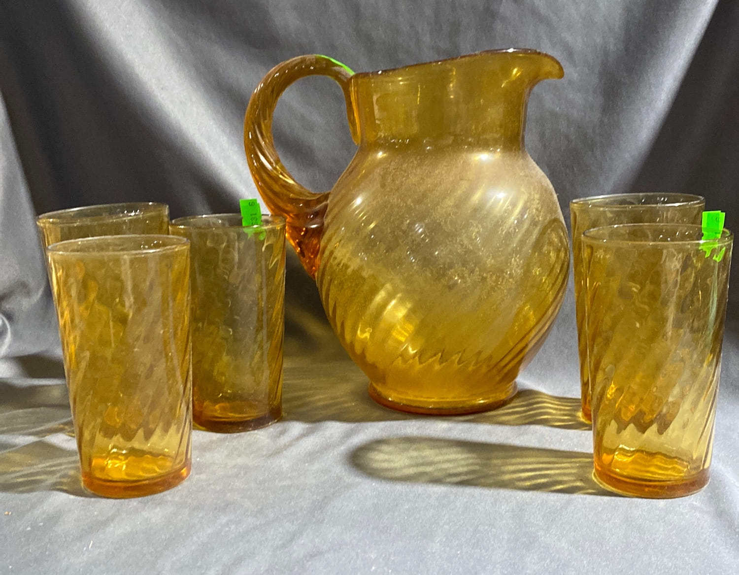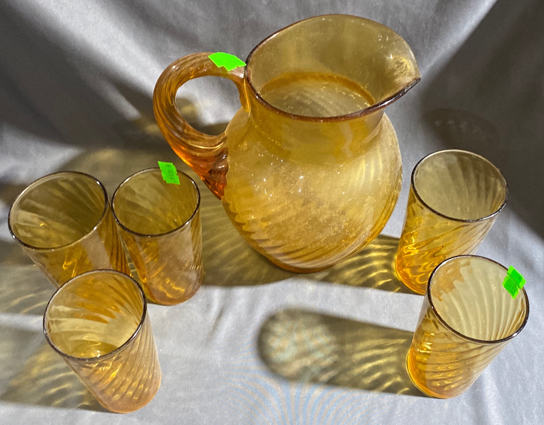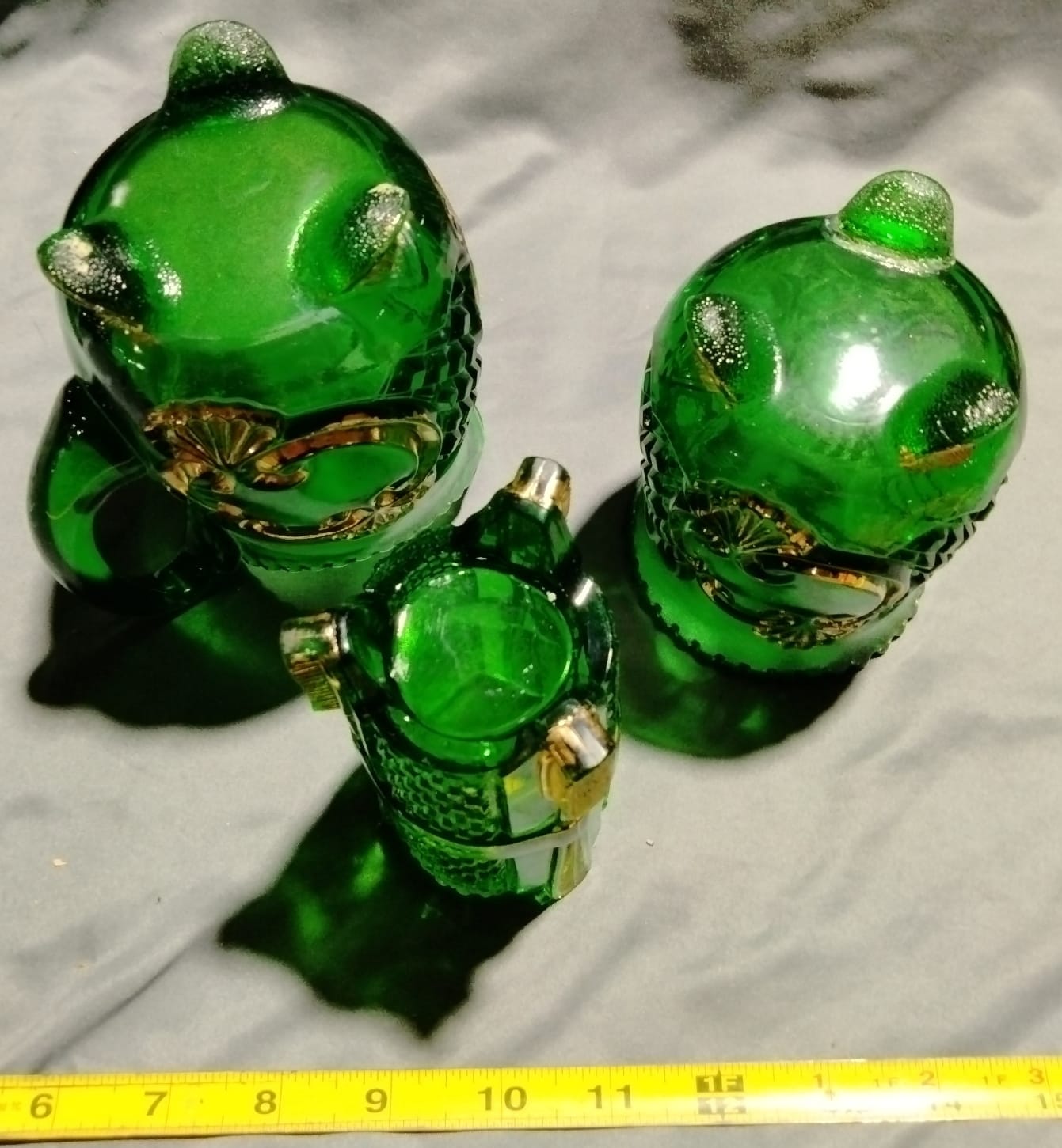1234 2- Crackle glass creamers 4", 5", amber glass creamer 5"