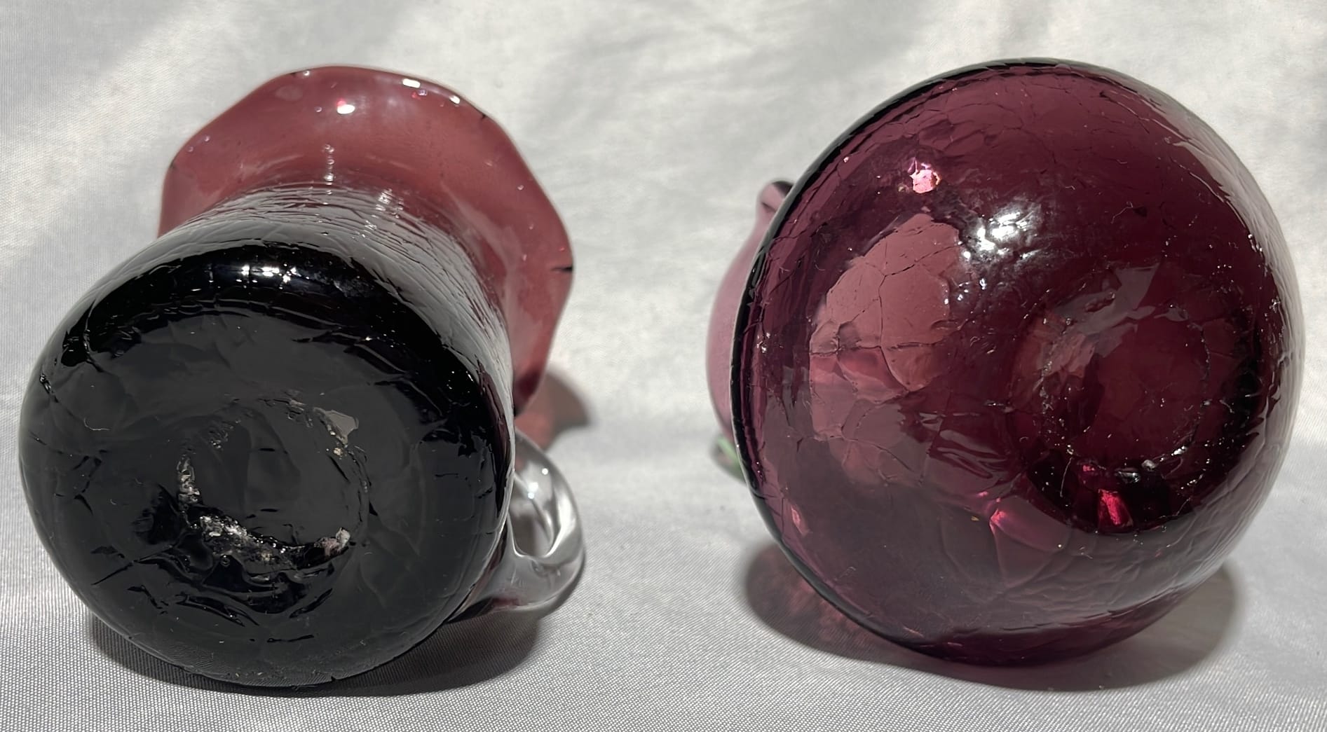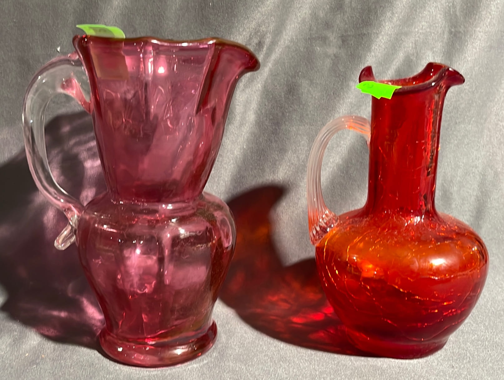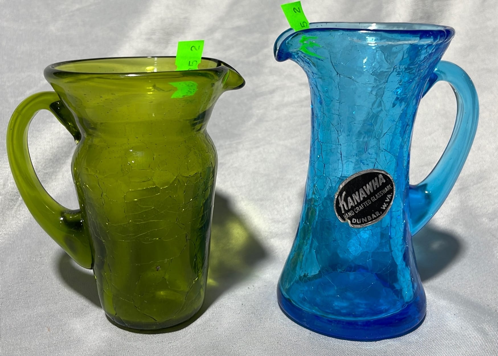 1235 Indiana glass crackle creamer 3", Kanawha crackle pitcher 4"