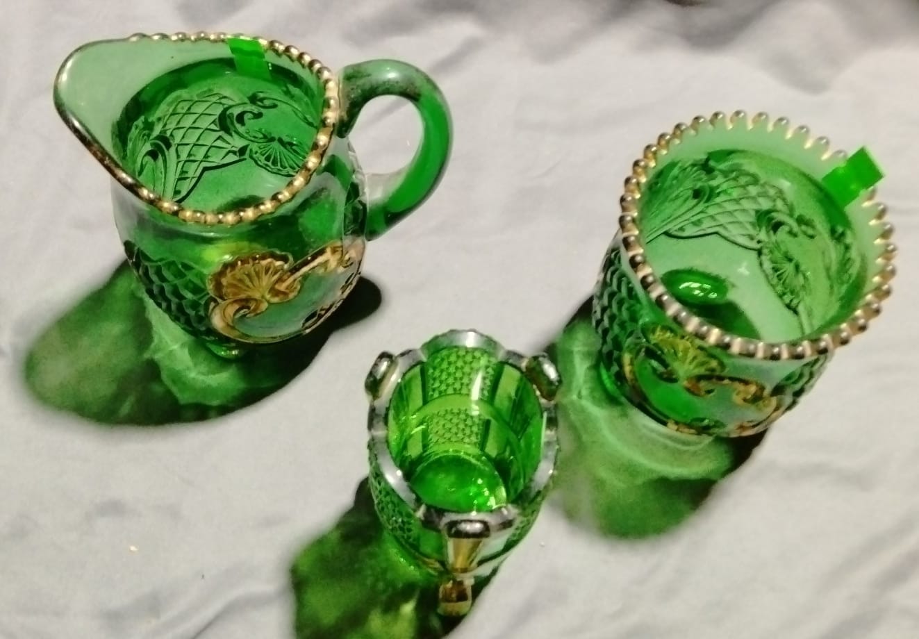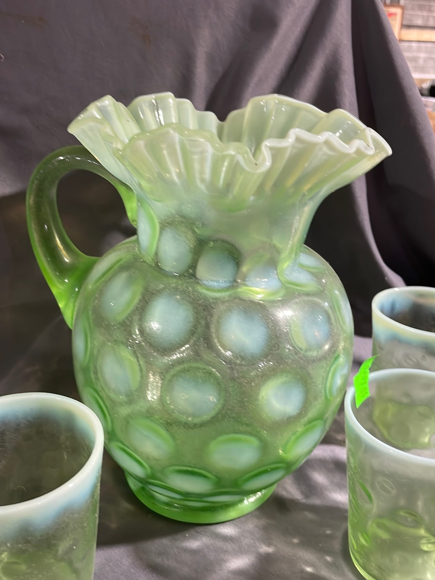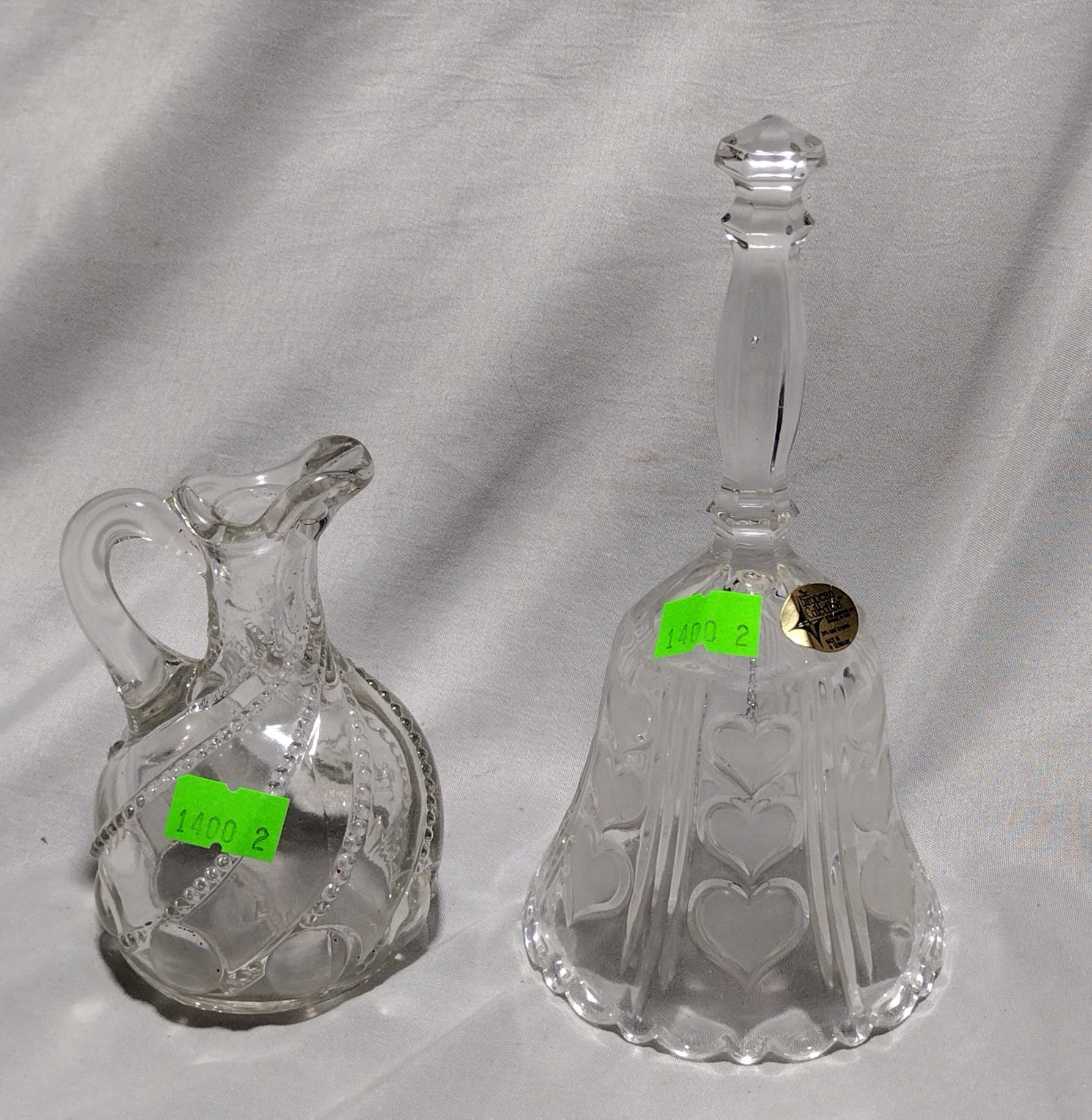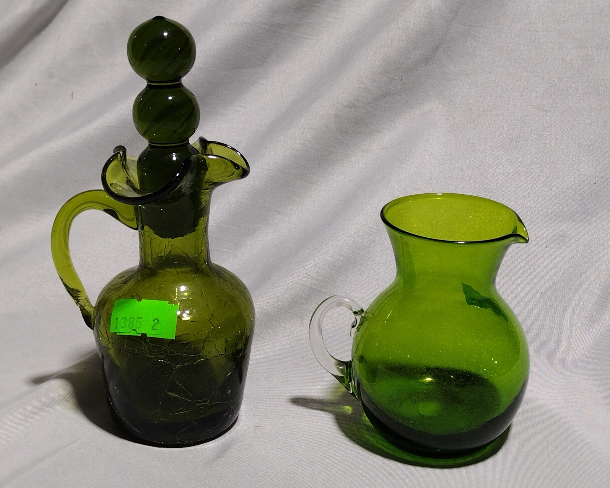 1235 Indiana glass crackle creamer 3", Kanawha crackle pitcher 4"