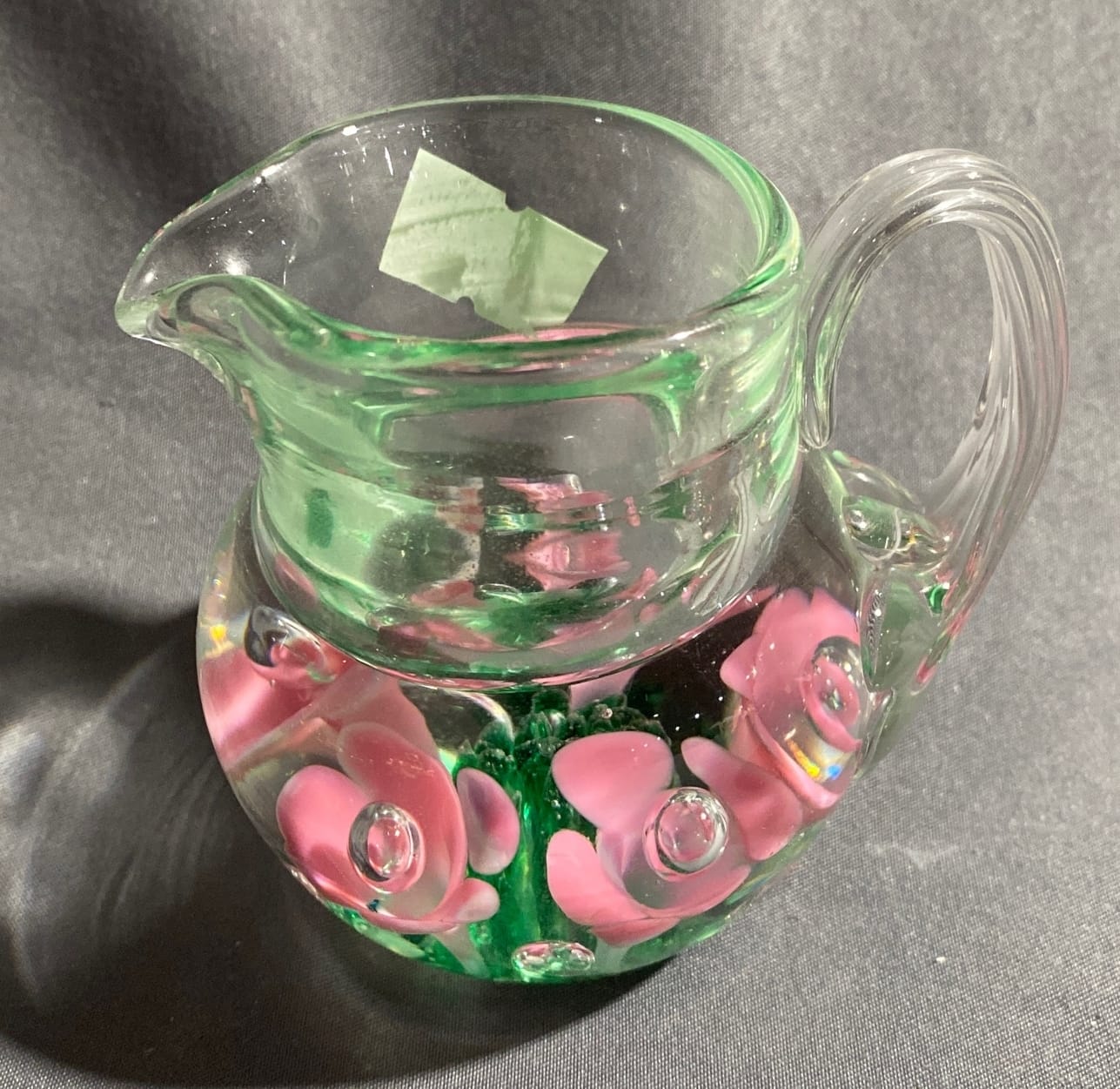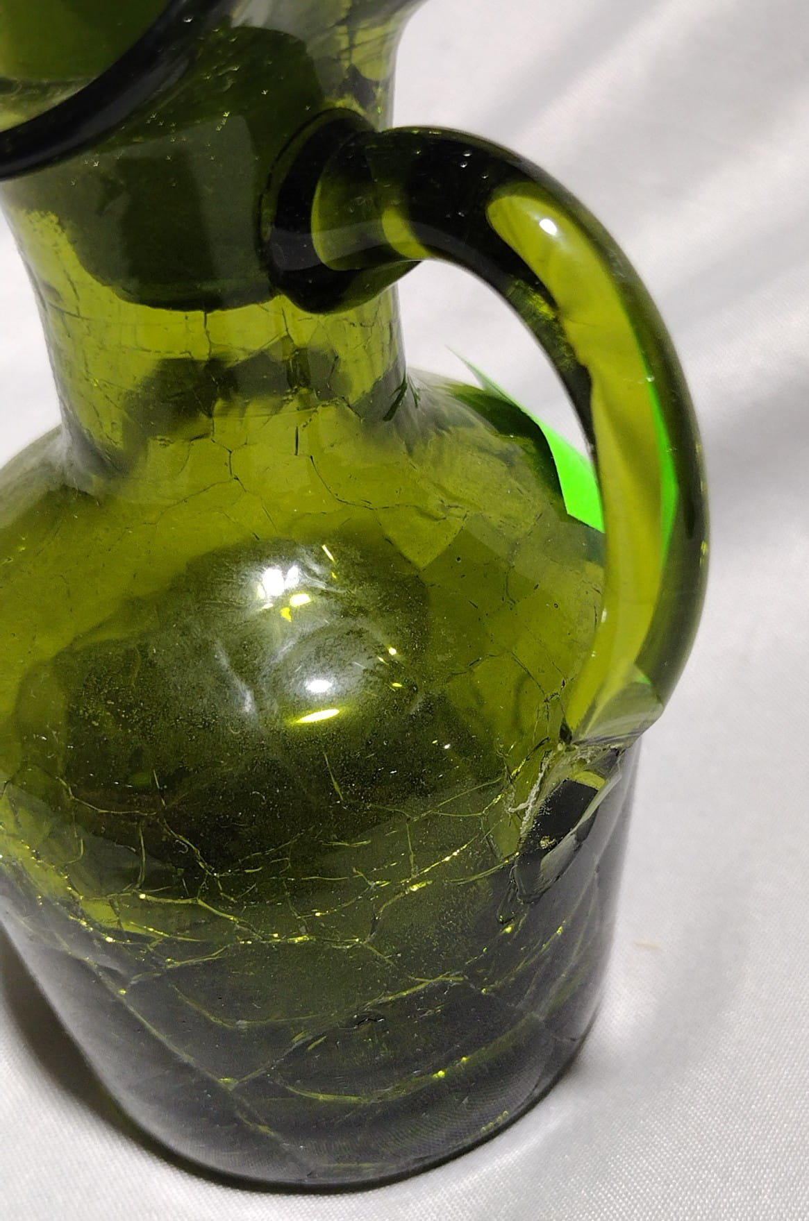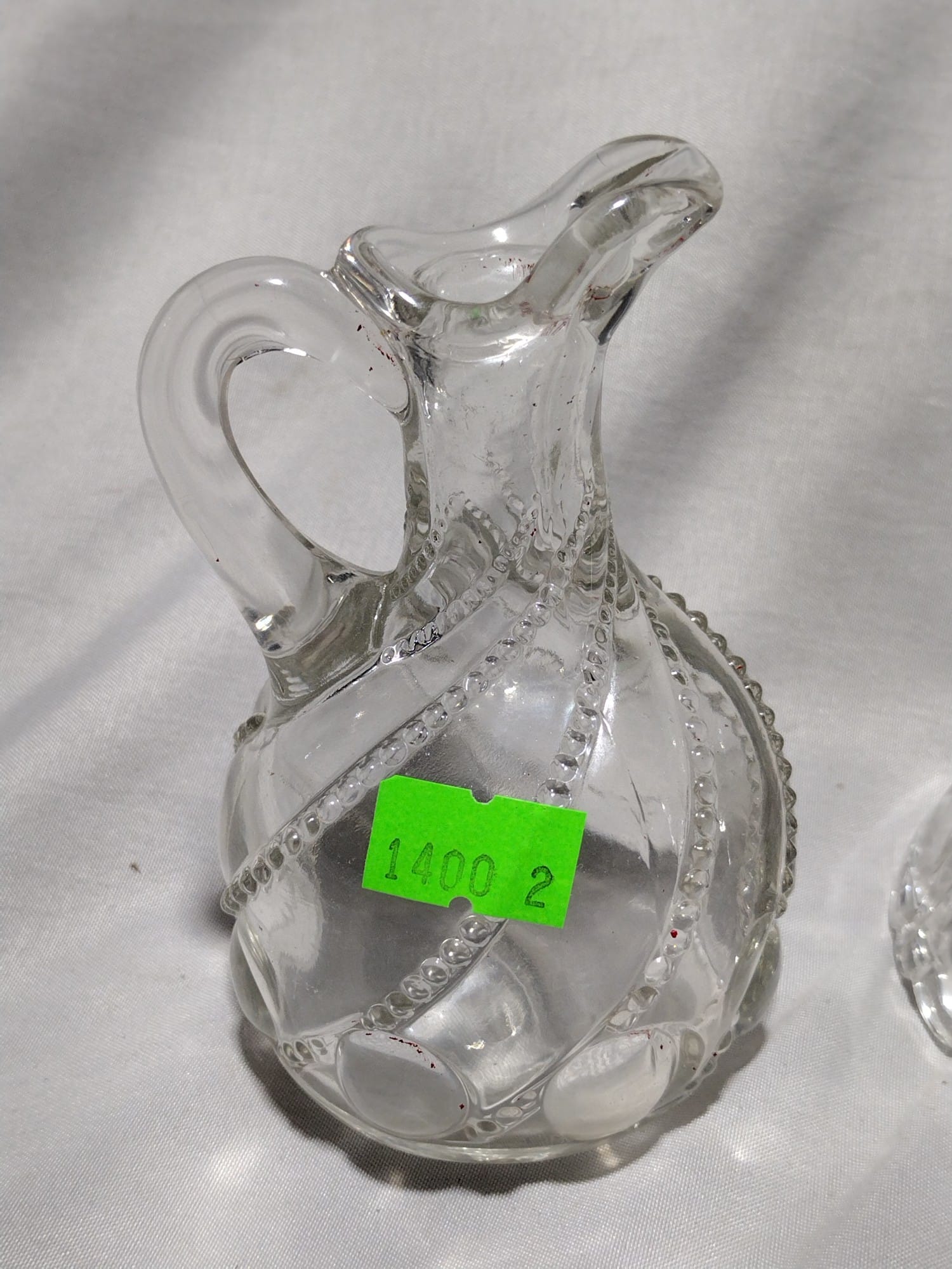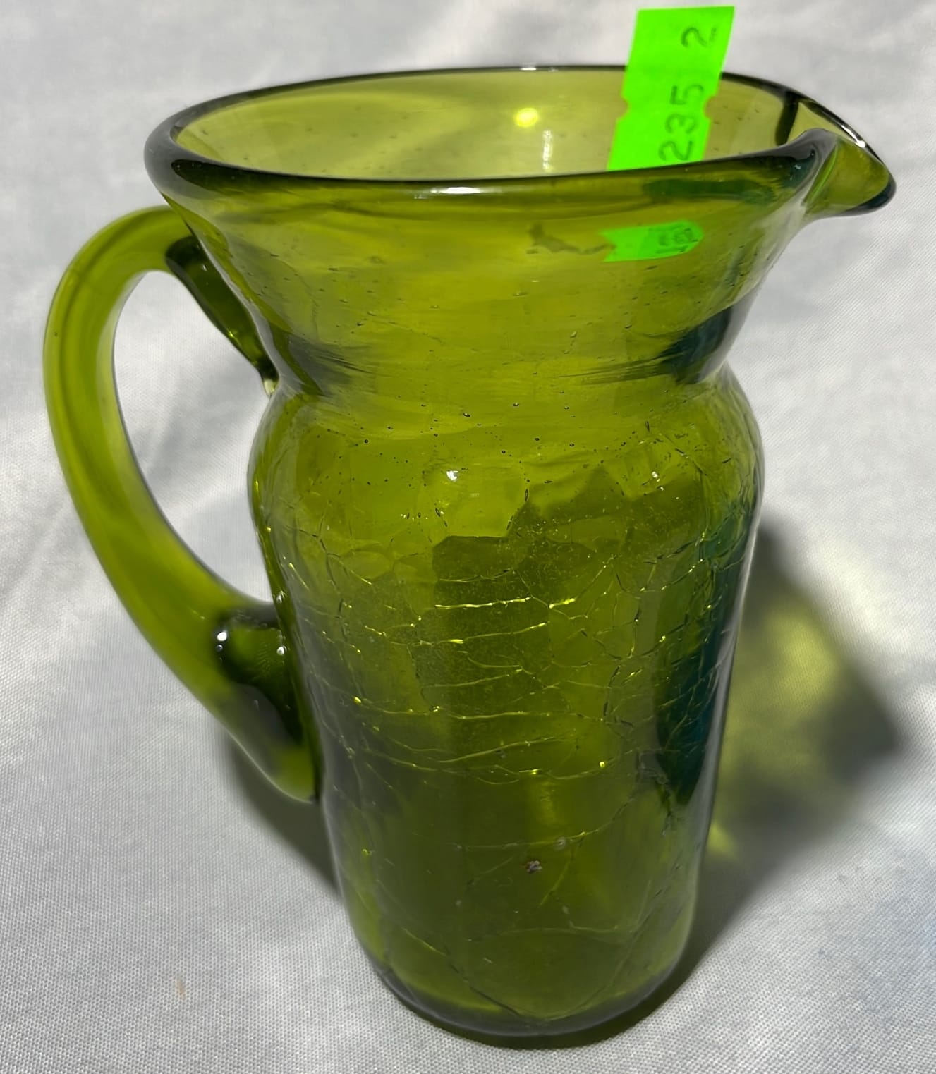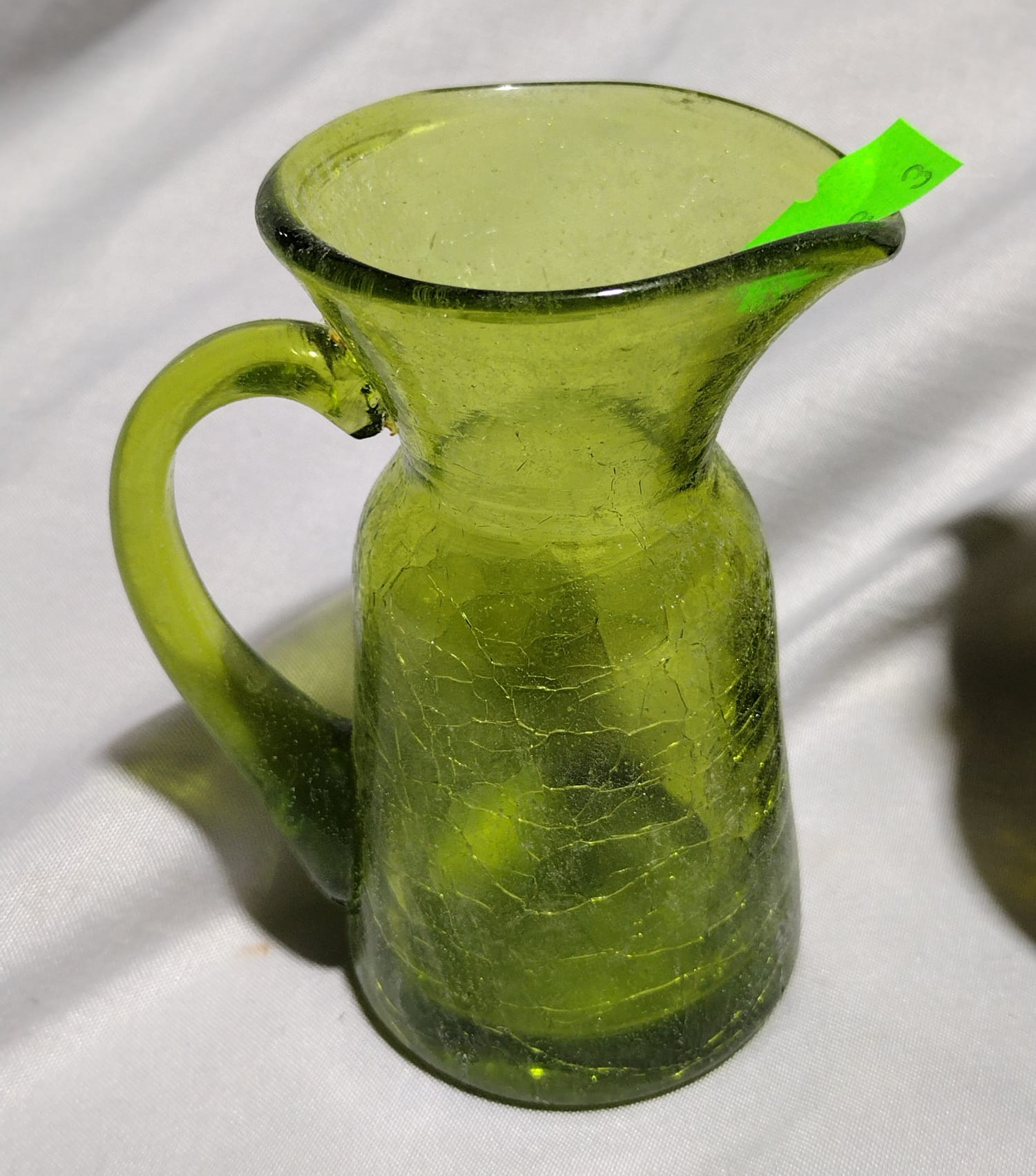 1233 Crackle glass creamer 3", crackle glass cup 3"