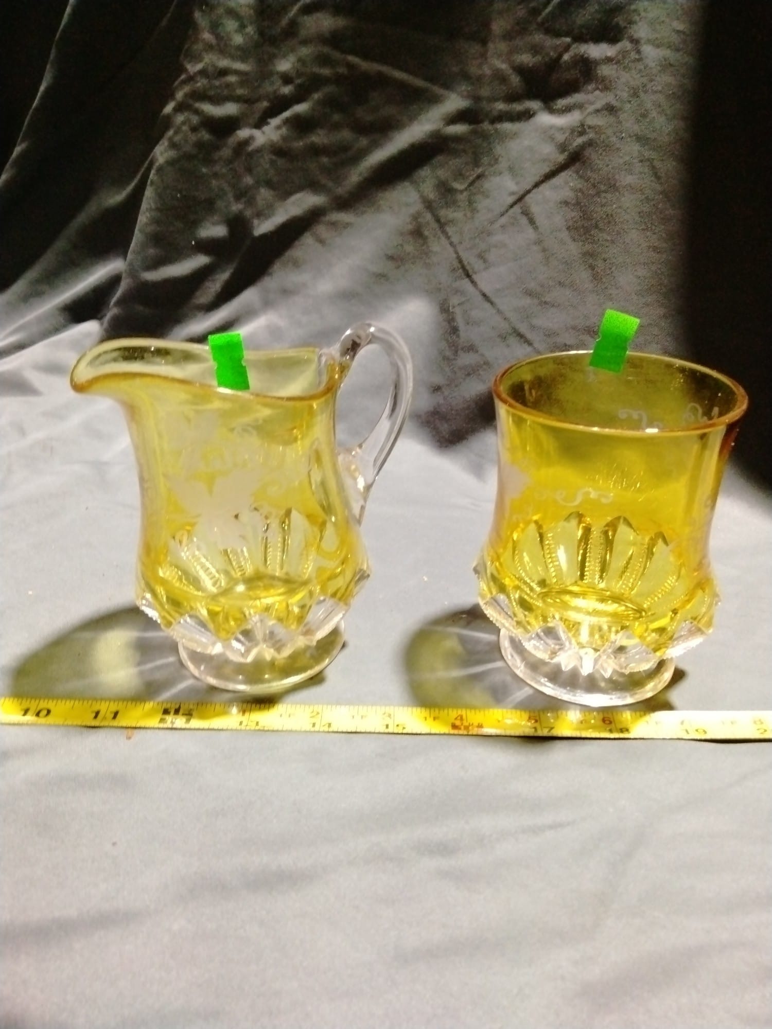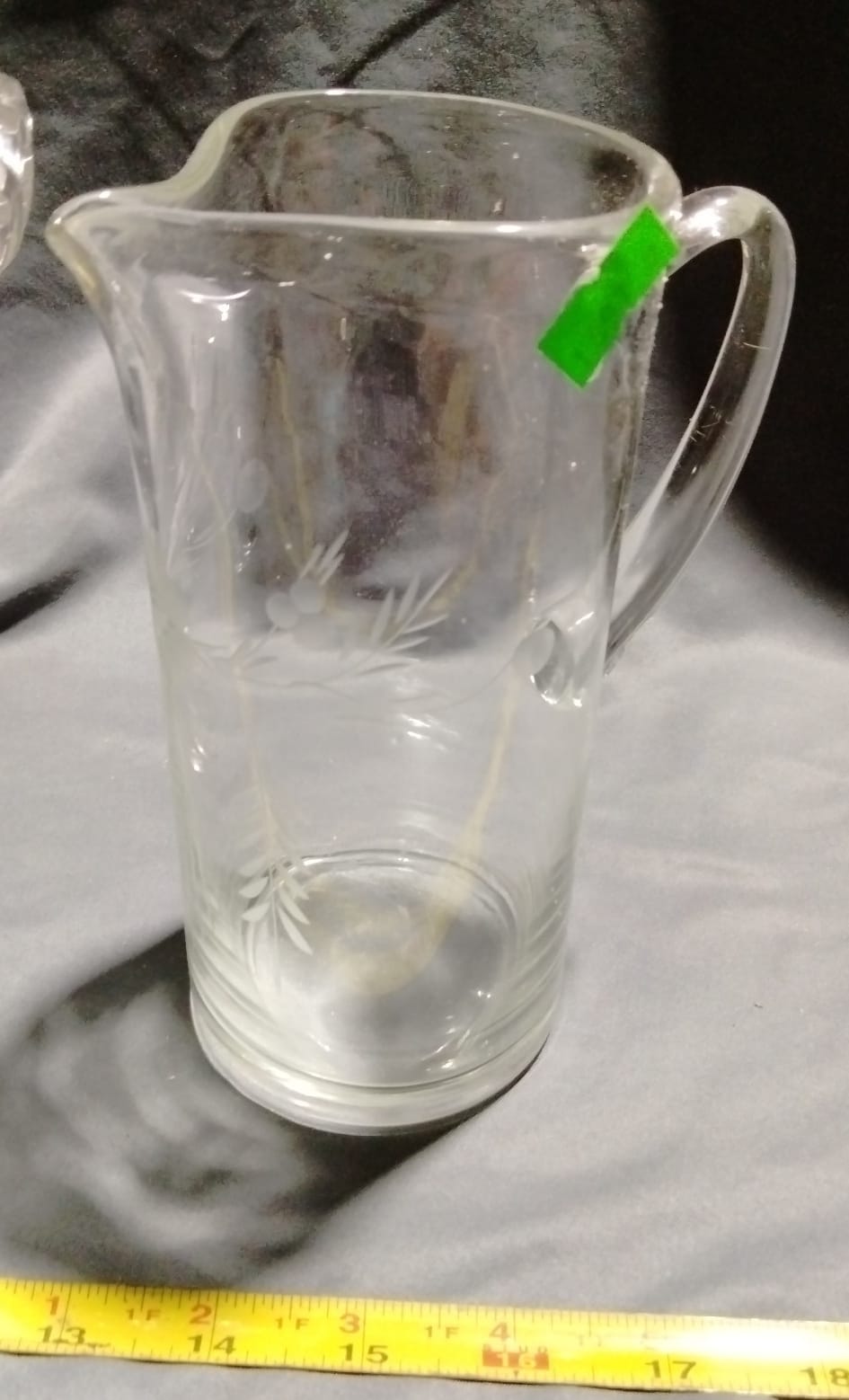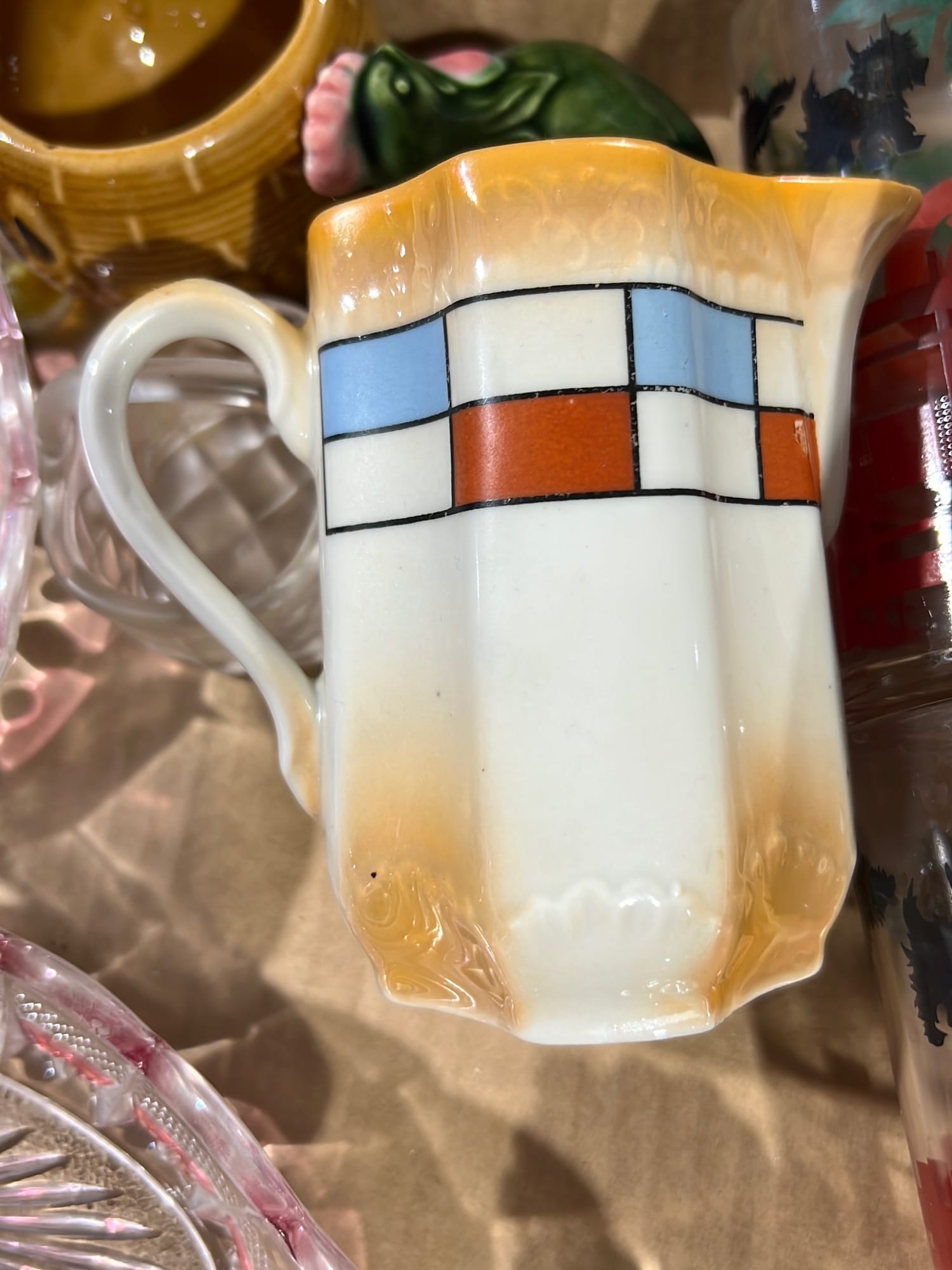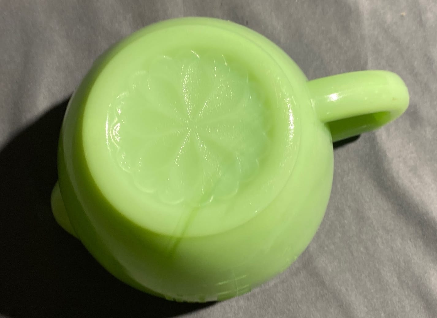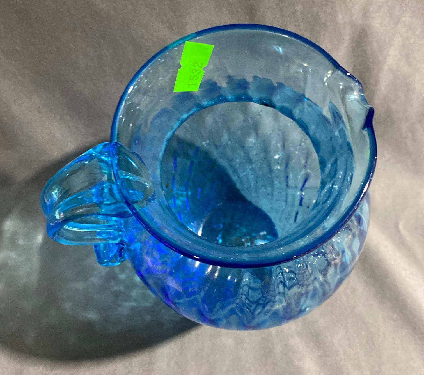 1233 Crackle glass creamer 3", crackle glass cup 3"