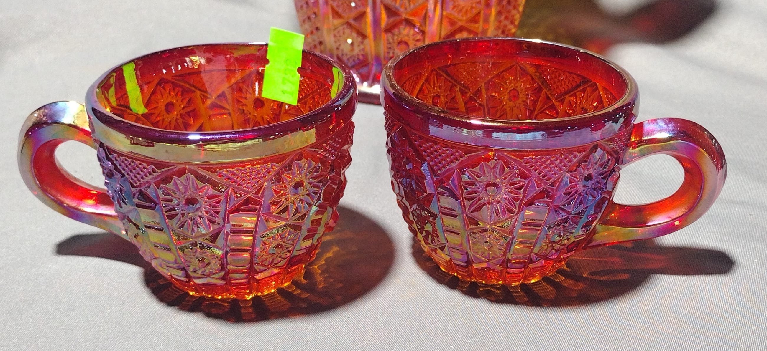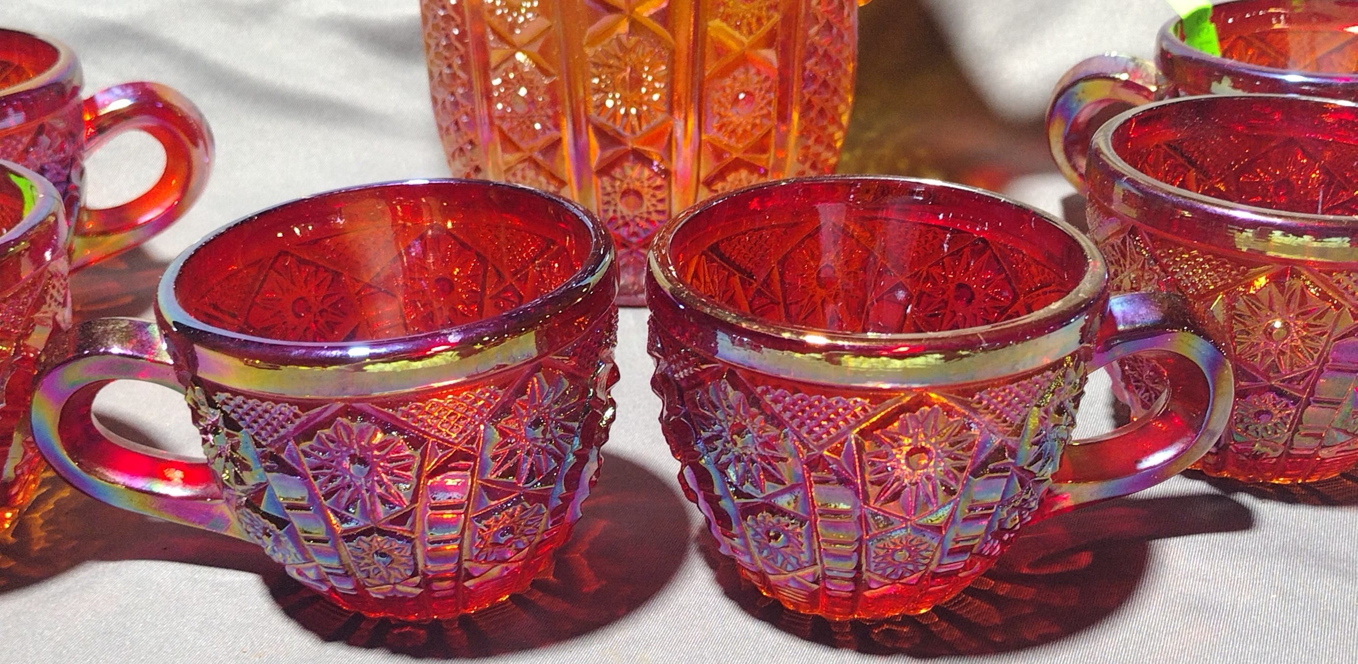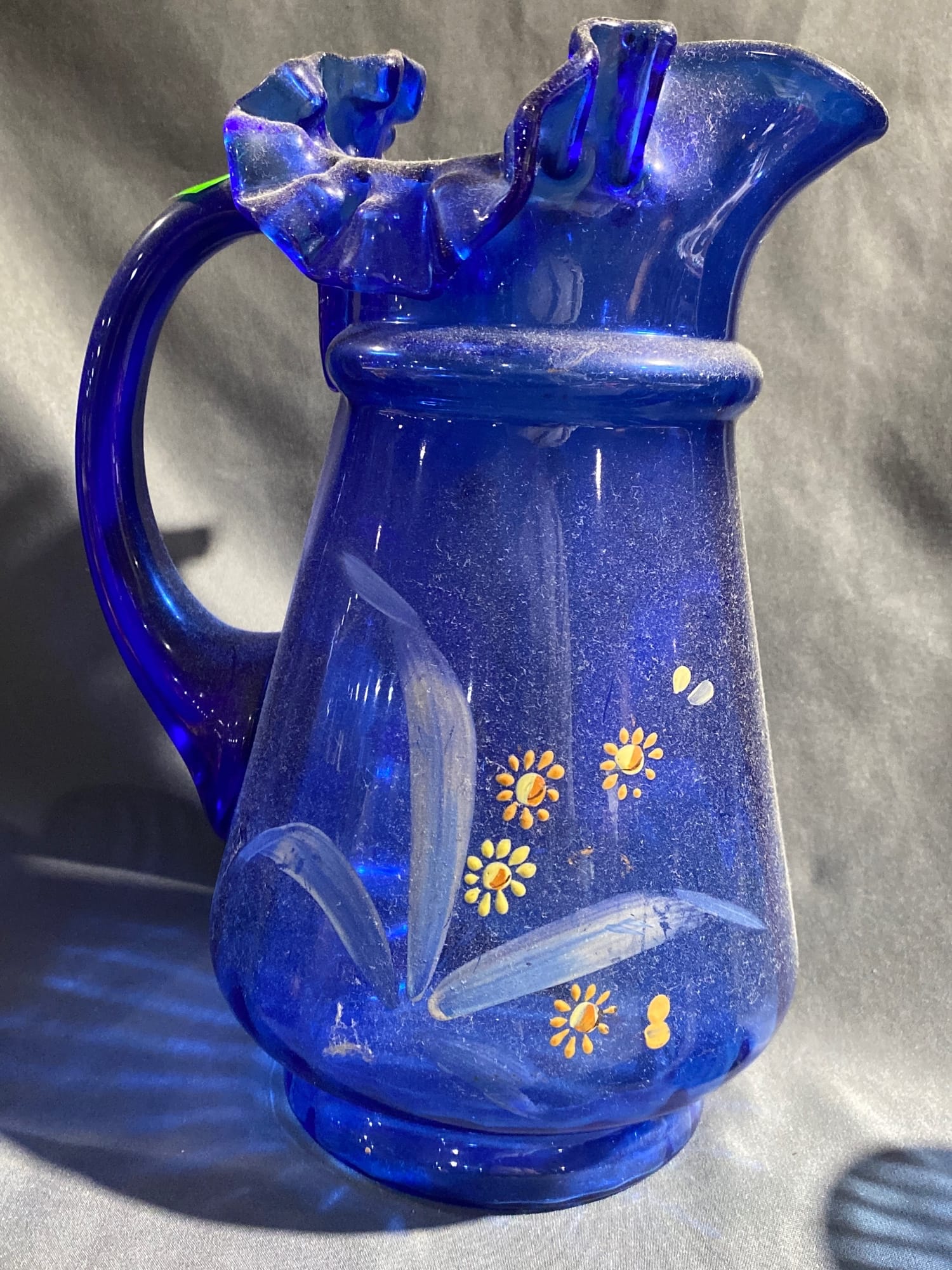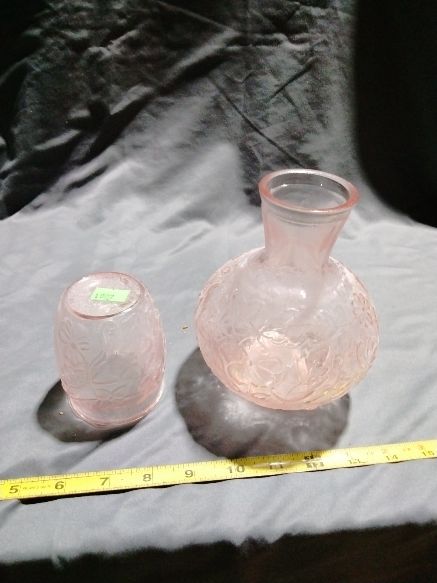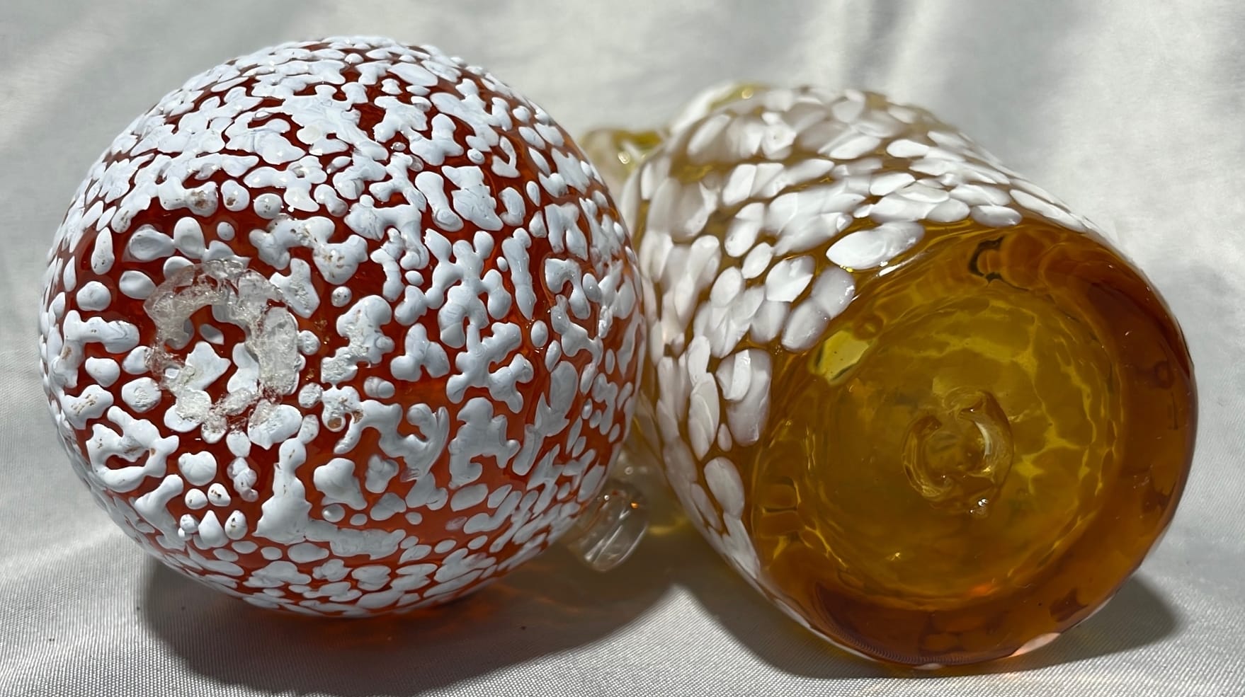 1233 Crackle glass creamer 3", crackle glass cup 3"