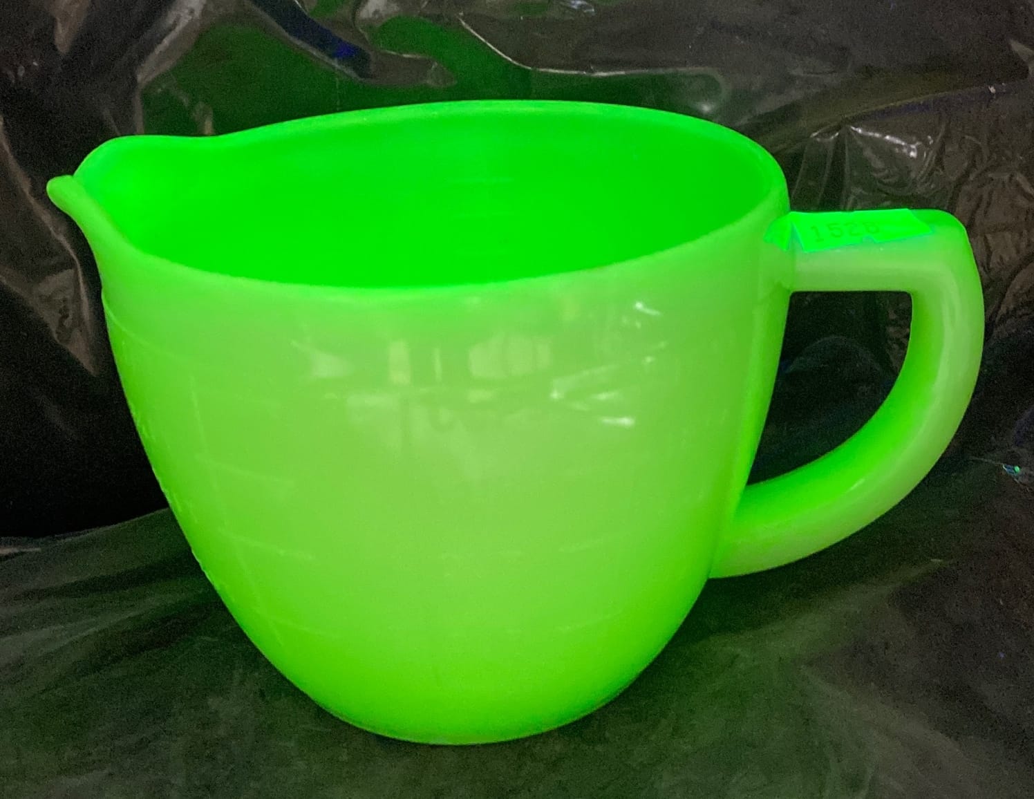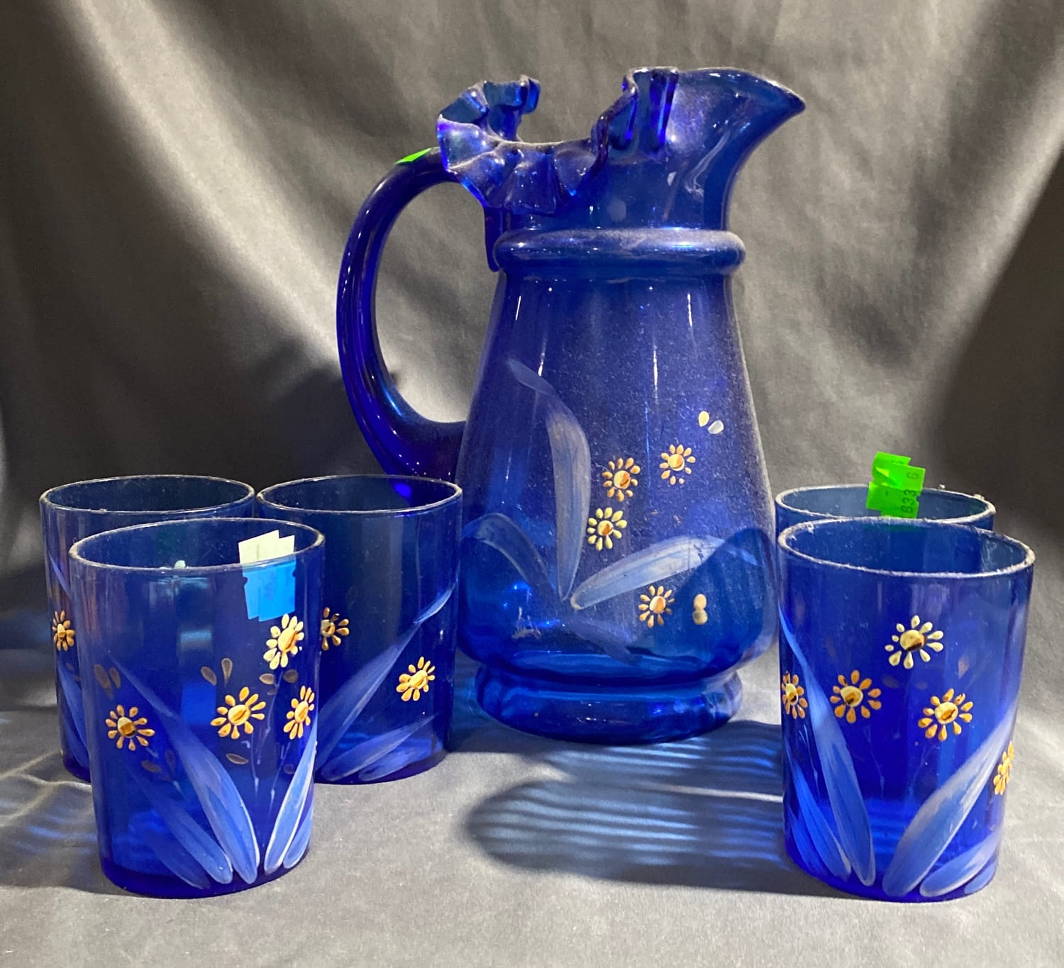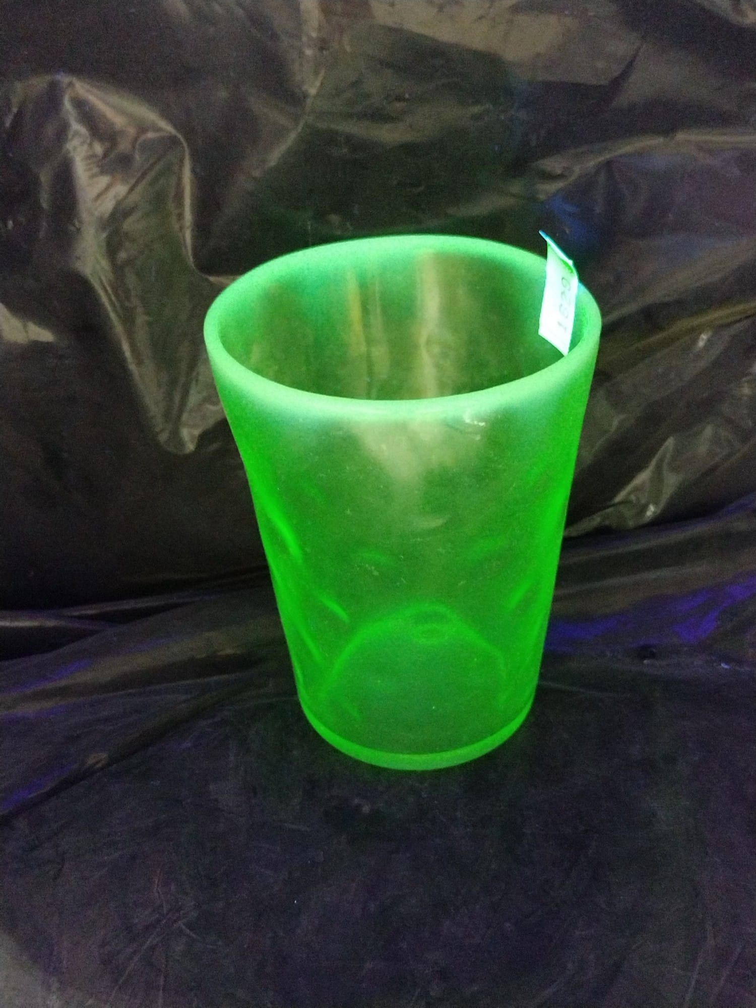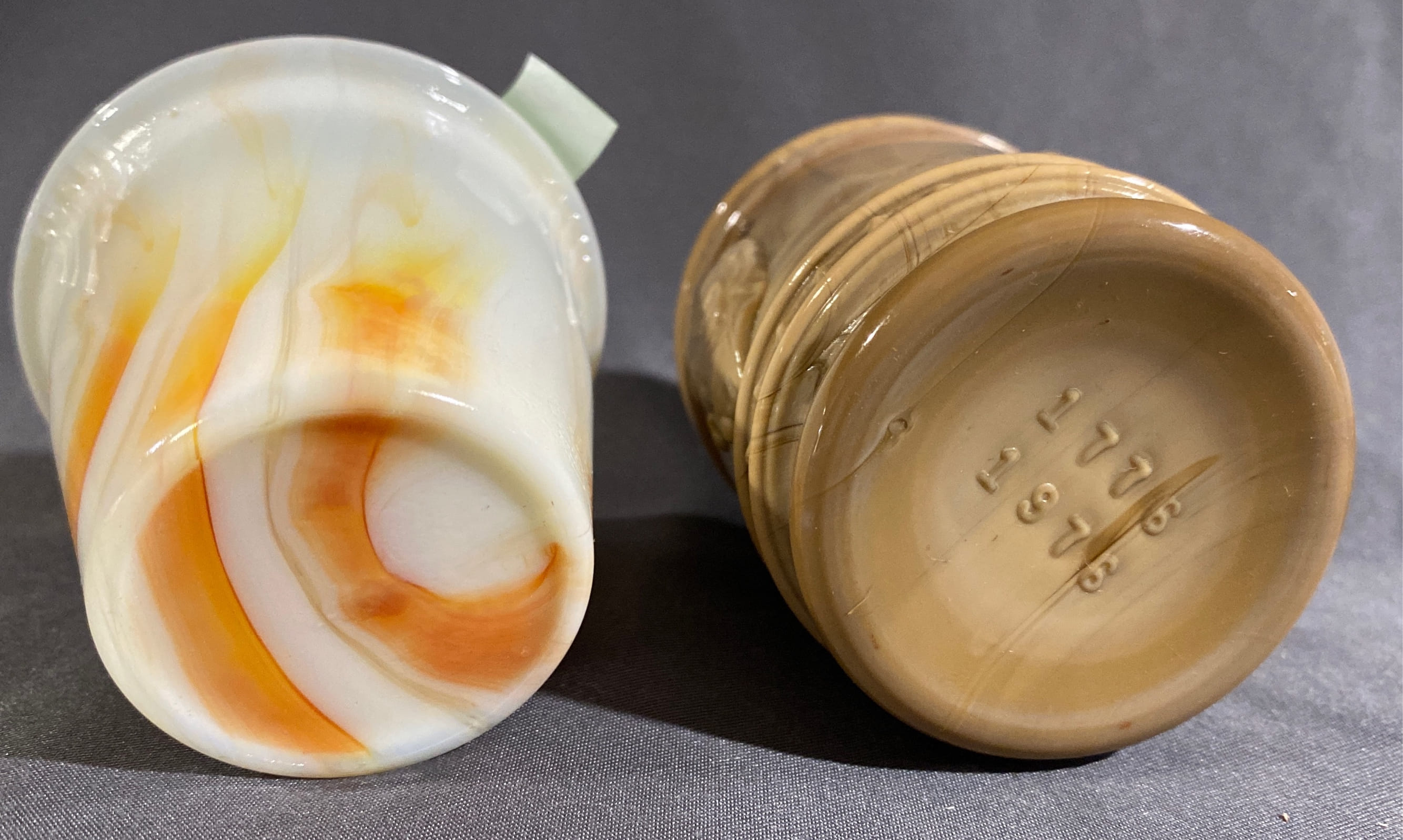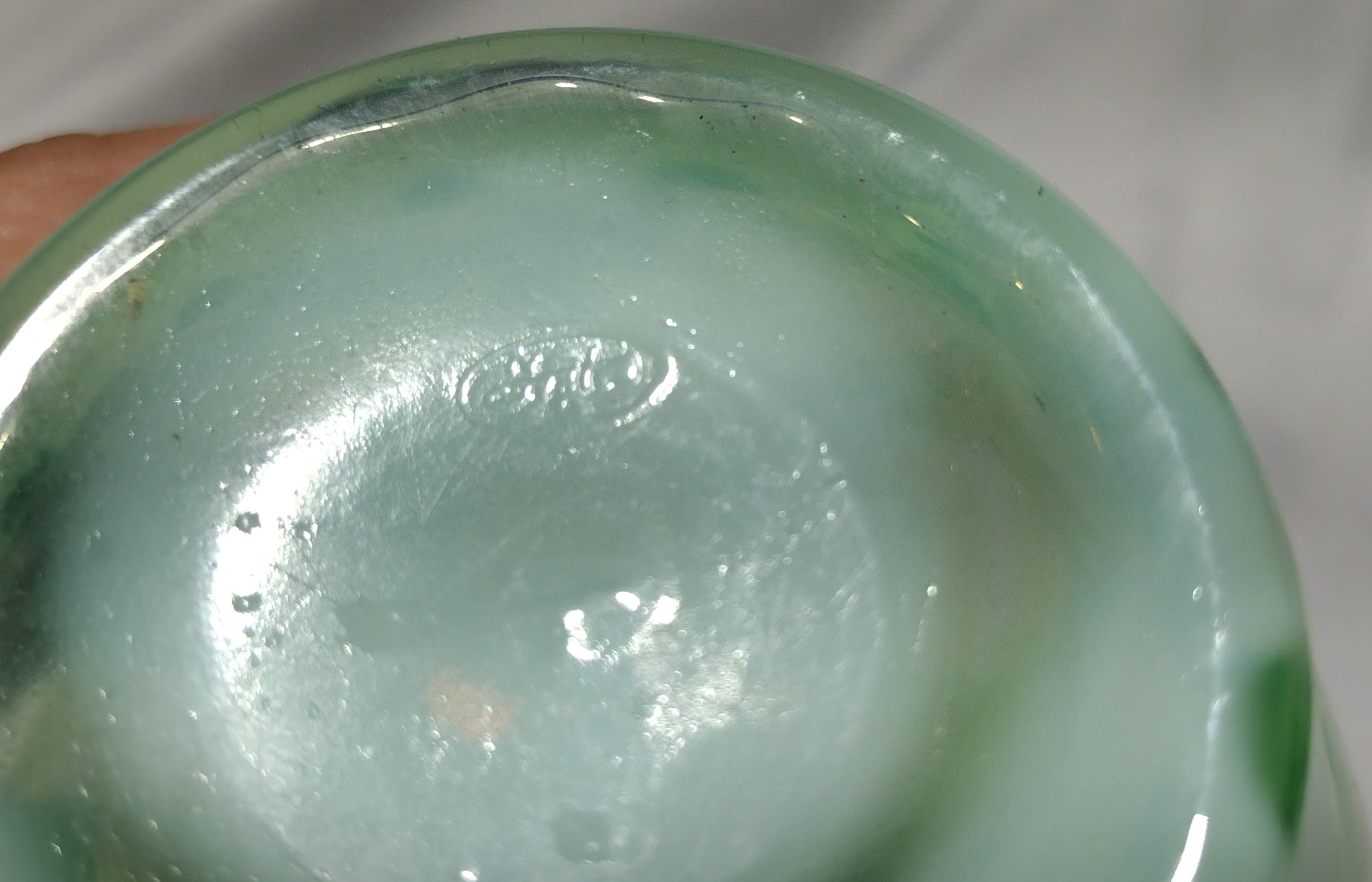 1233 Crackle glass creamer 3", crackle glass cup 3"