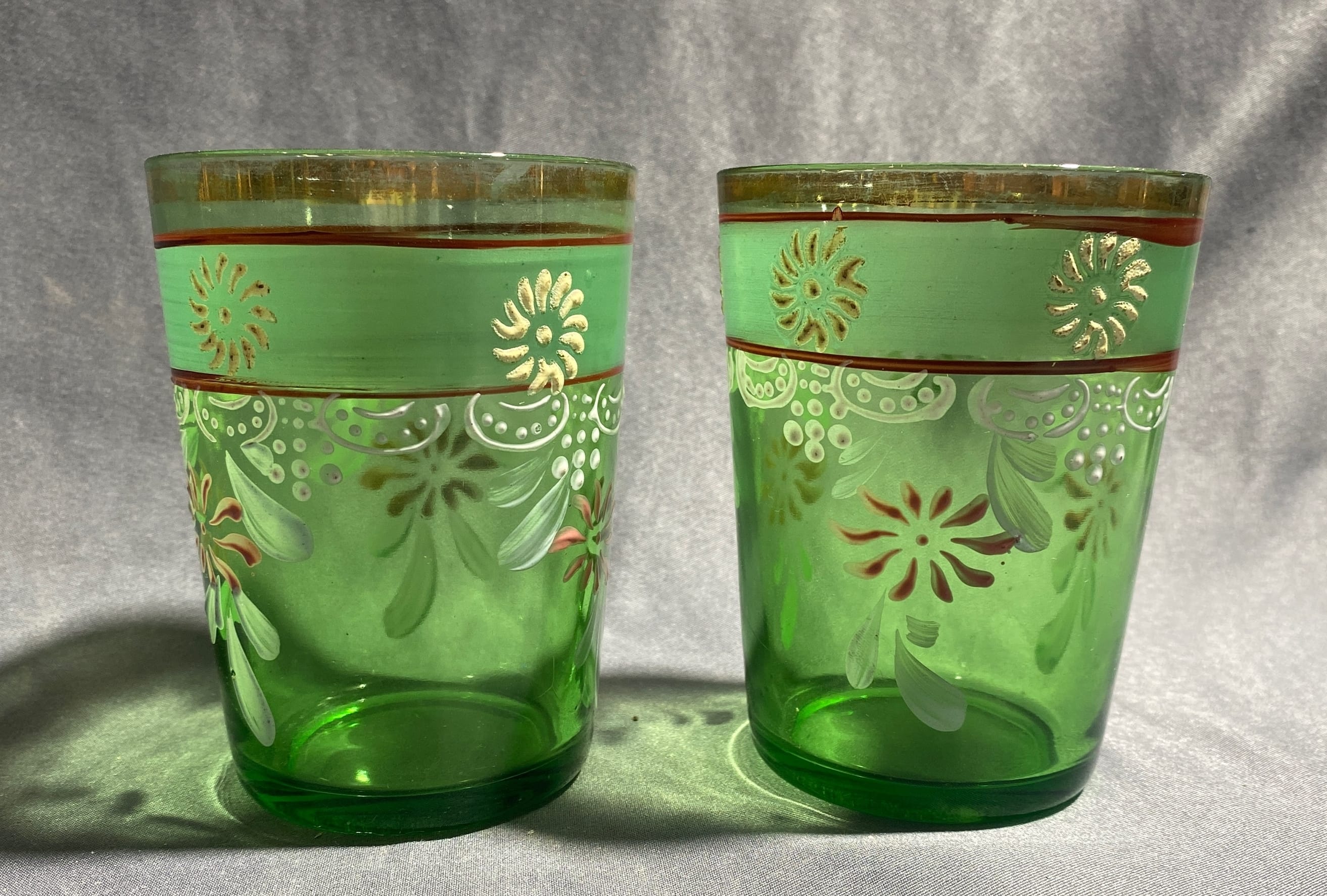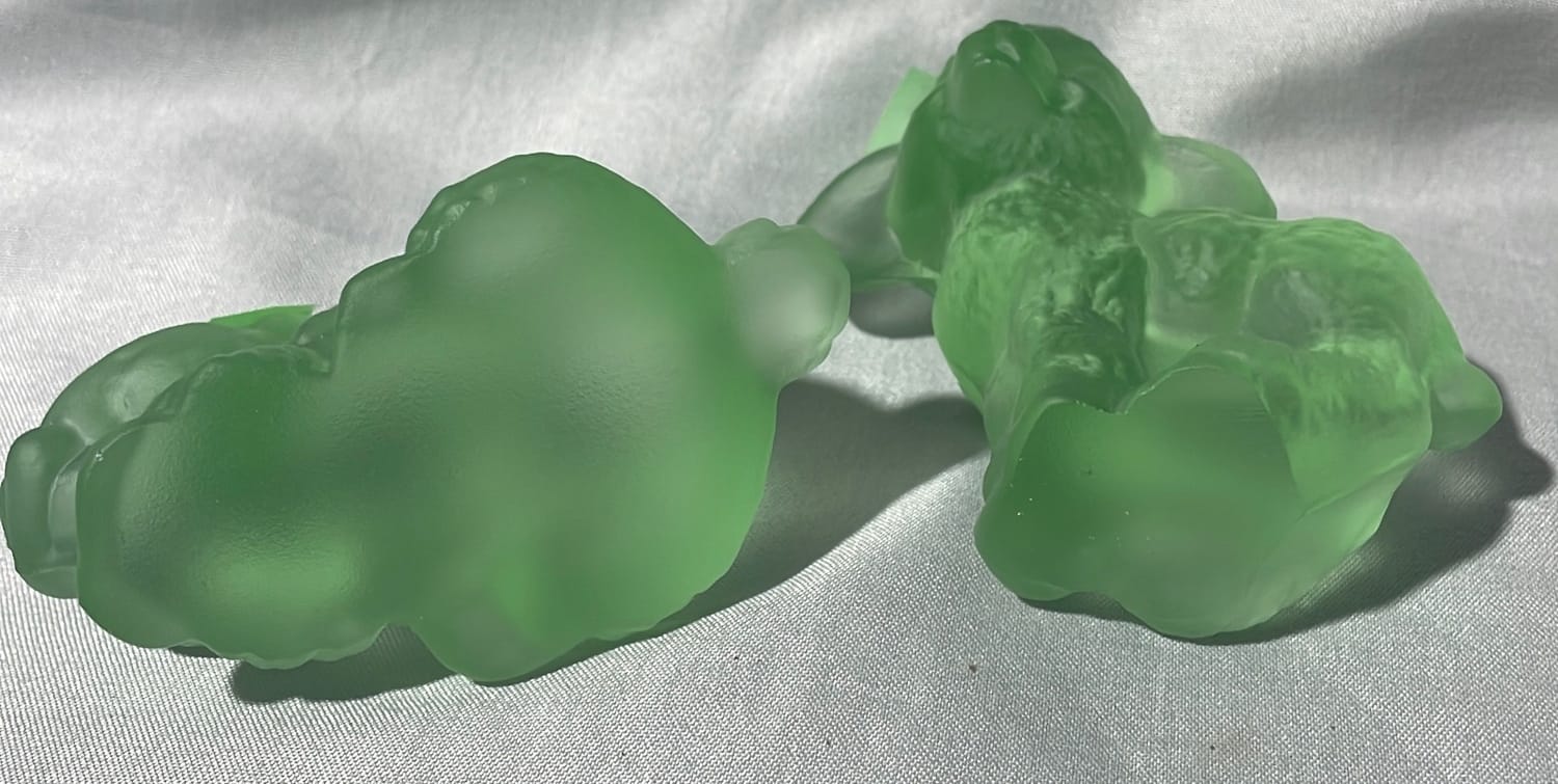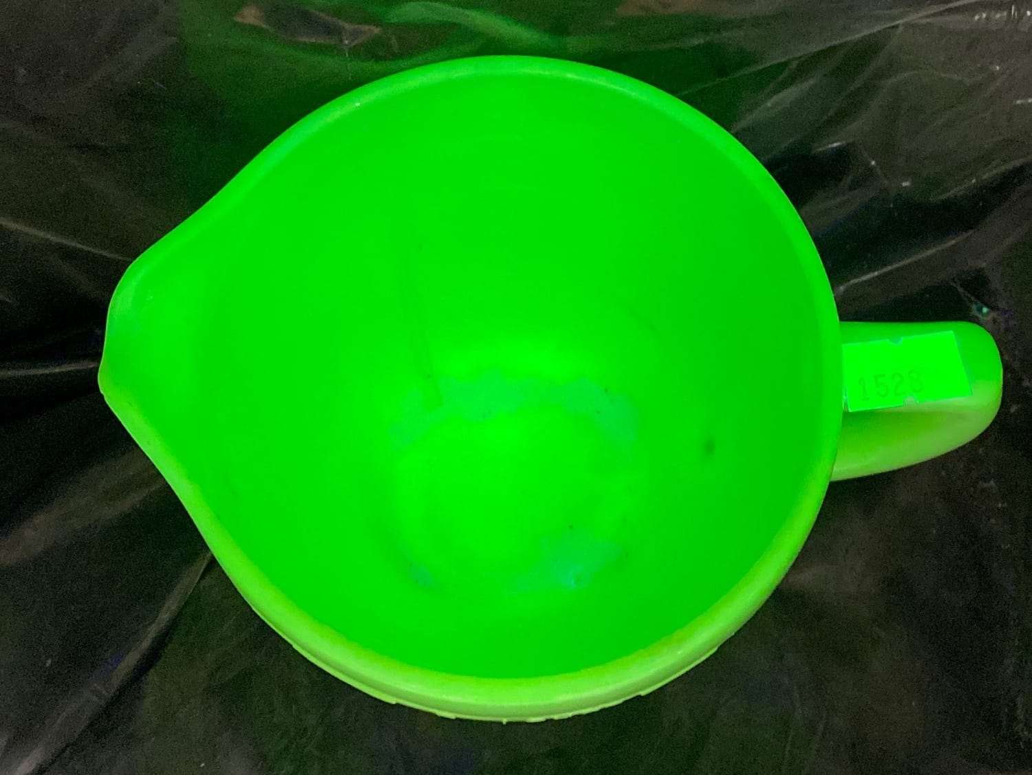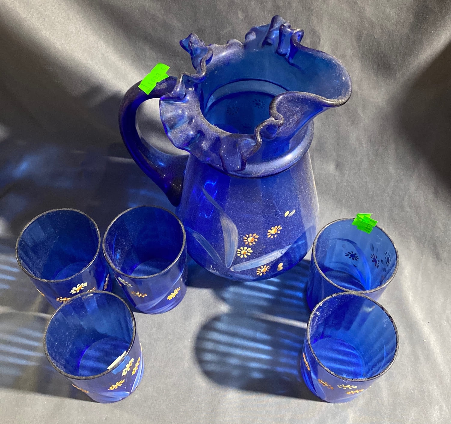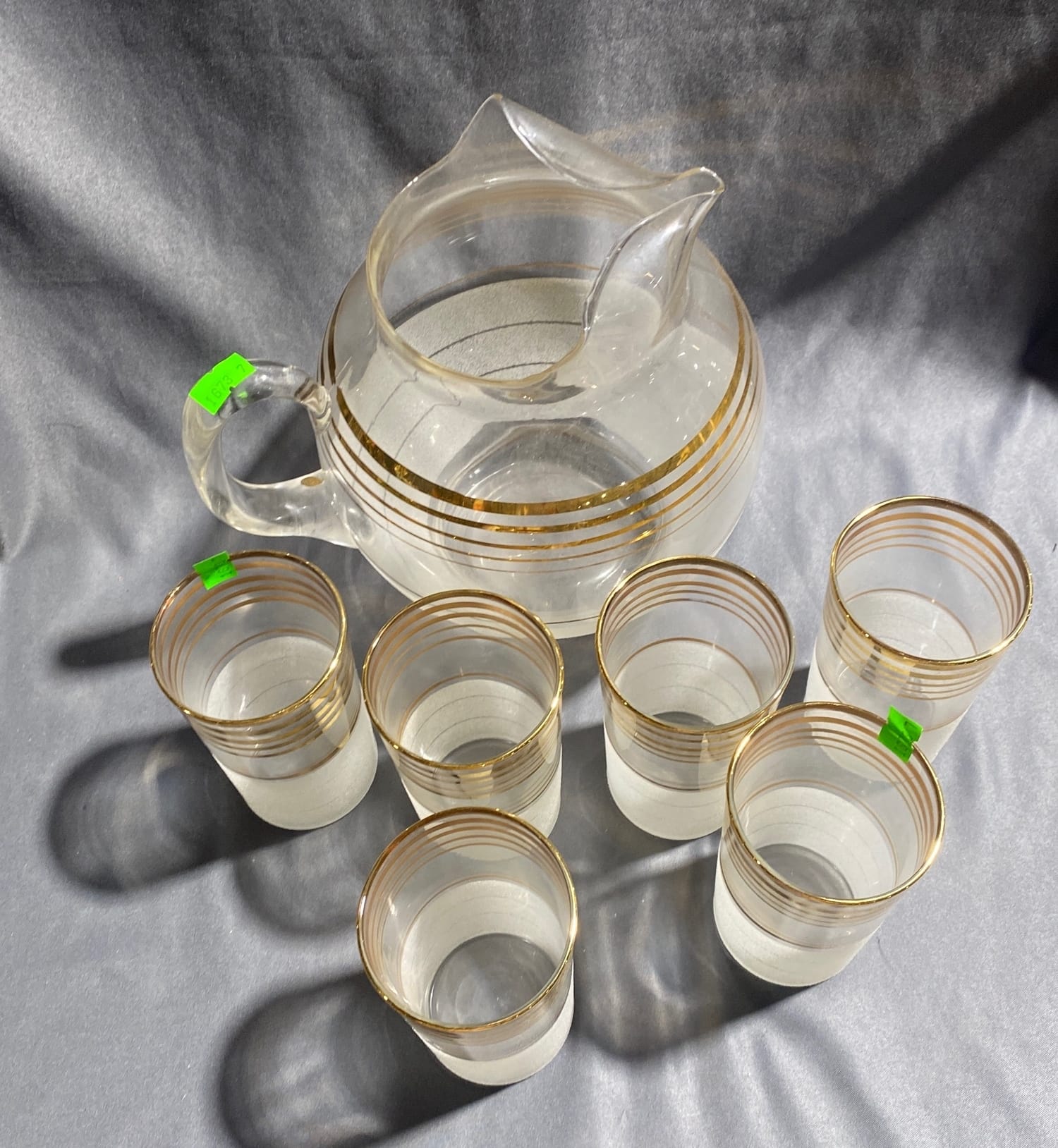 1233 Crackle glass creamer 3", crackle glass cup 3"