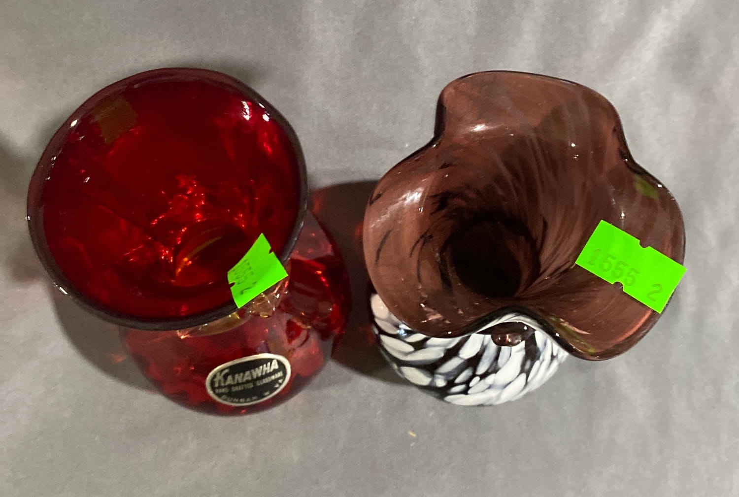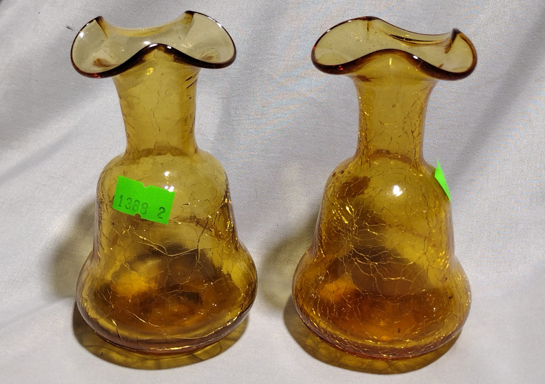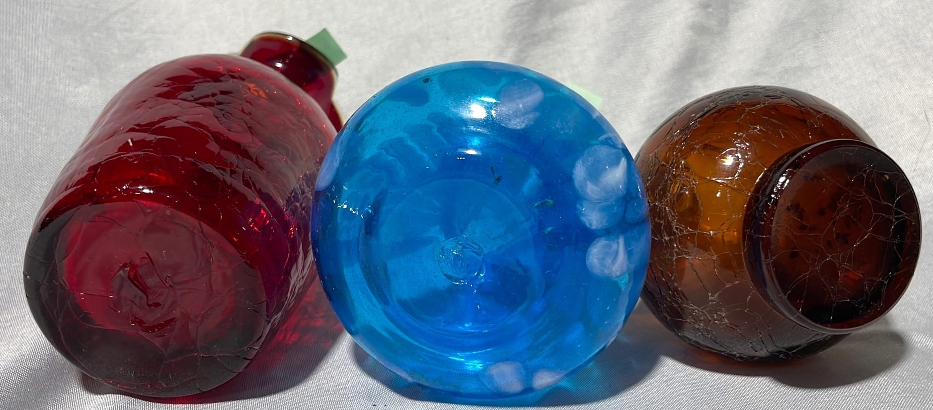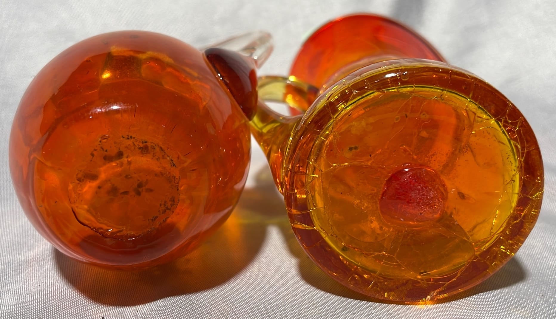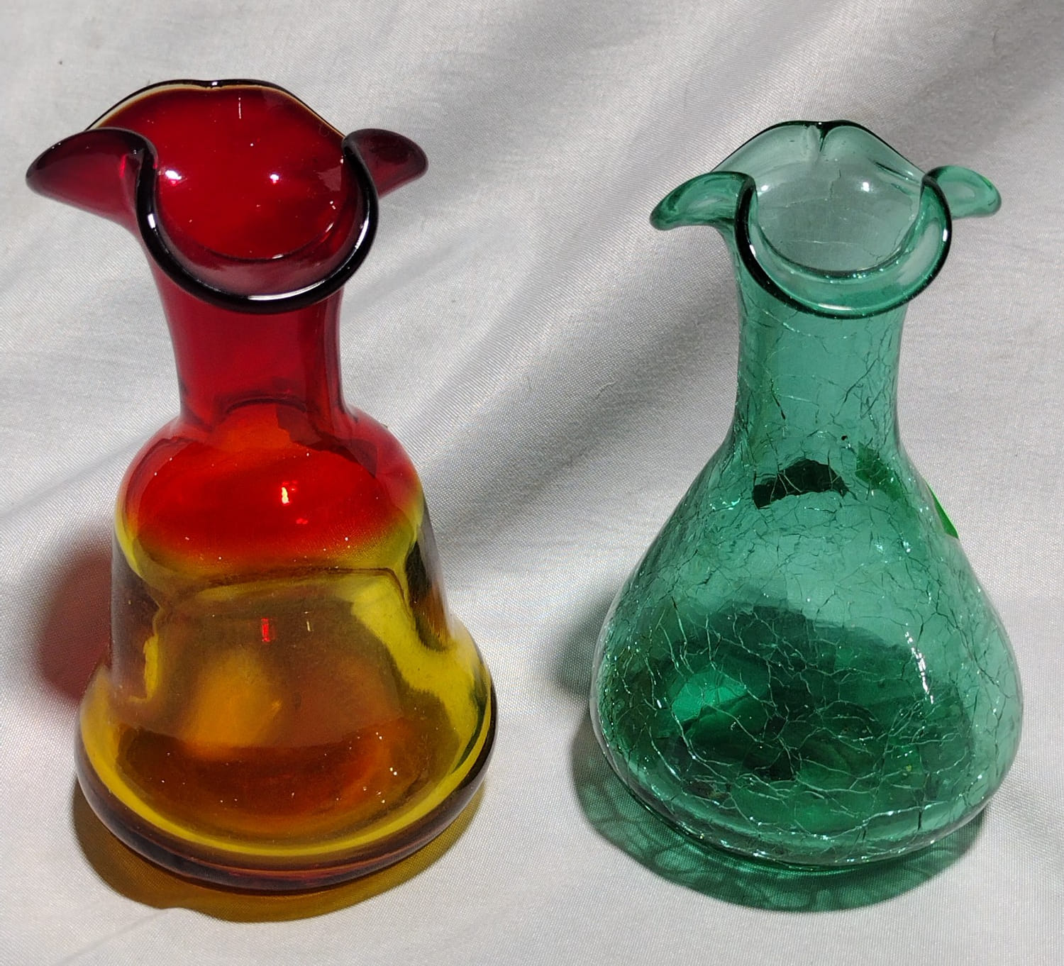 1241 Cranberry crackle glass vase 5", art glass vase 5", amber crackle vase 4"
