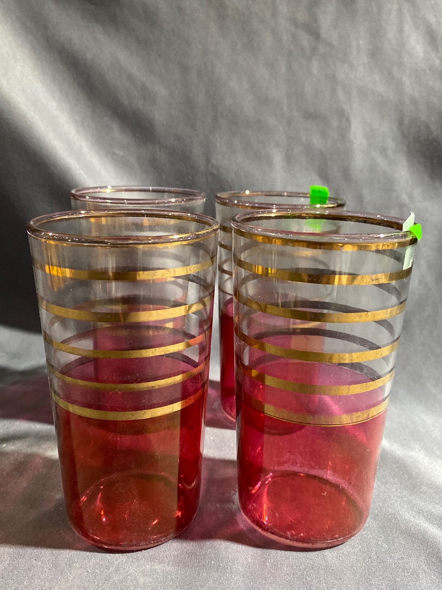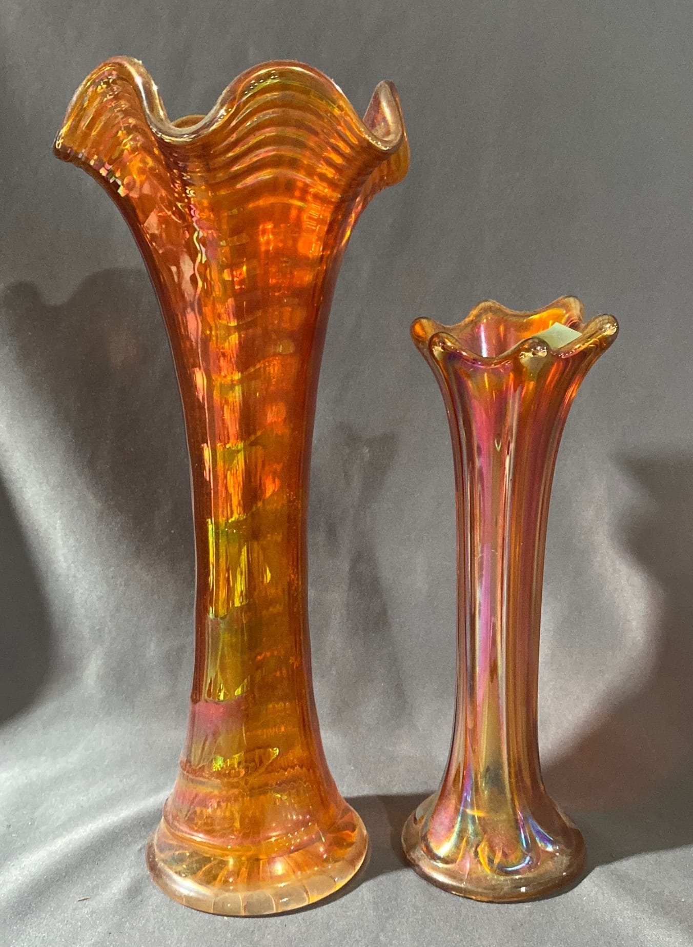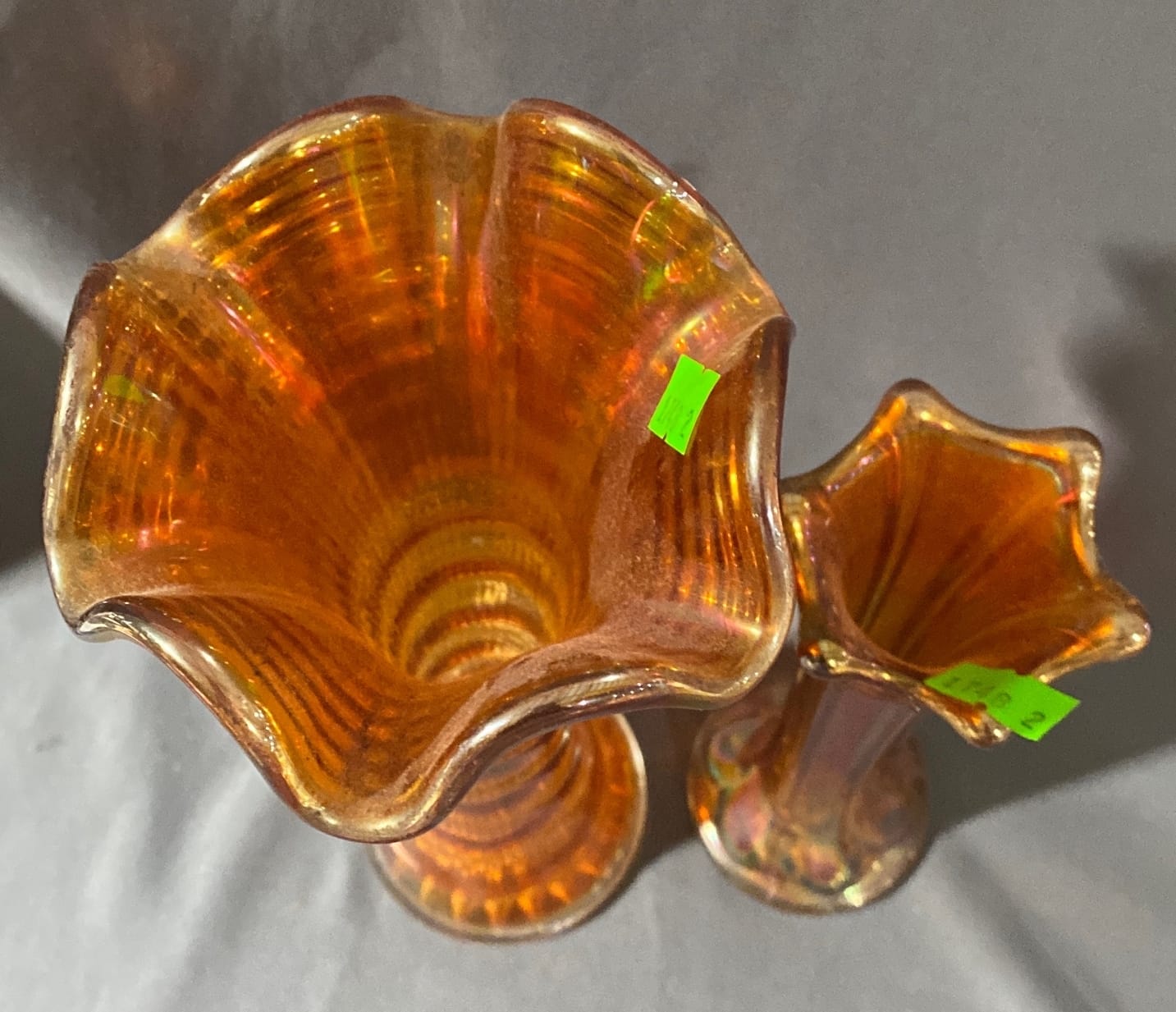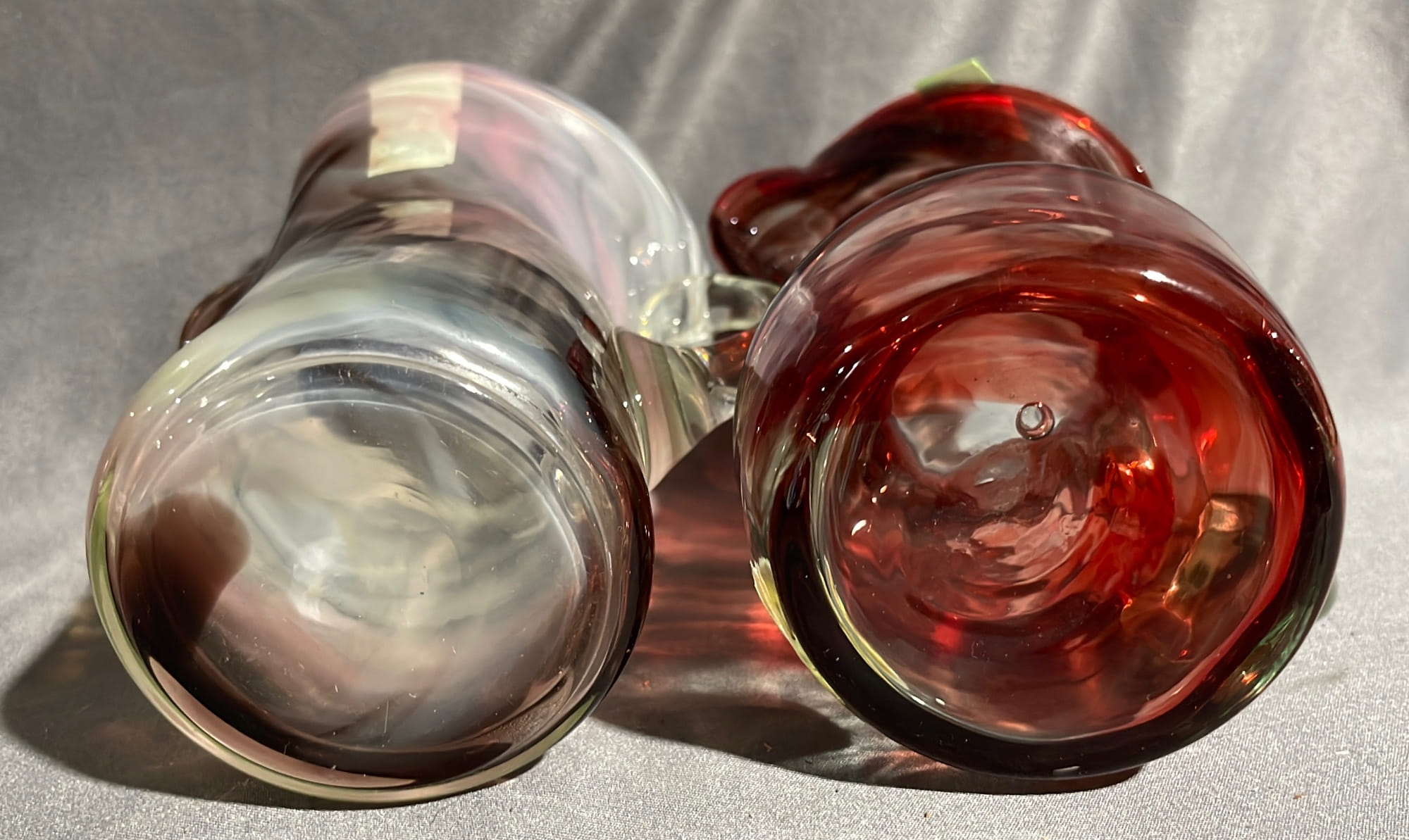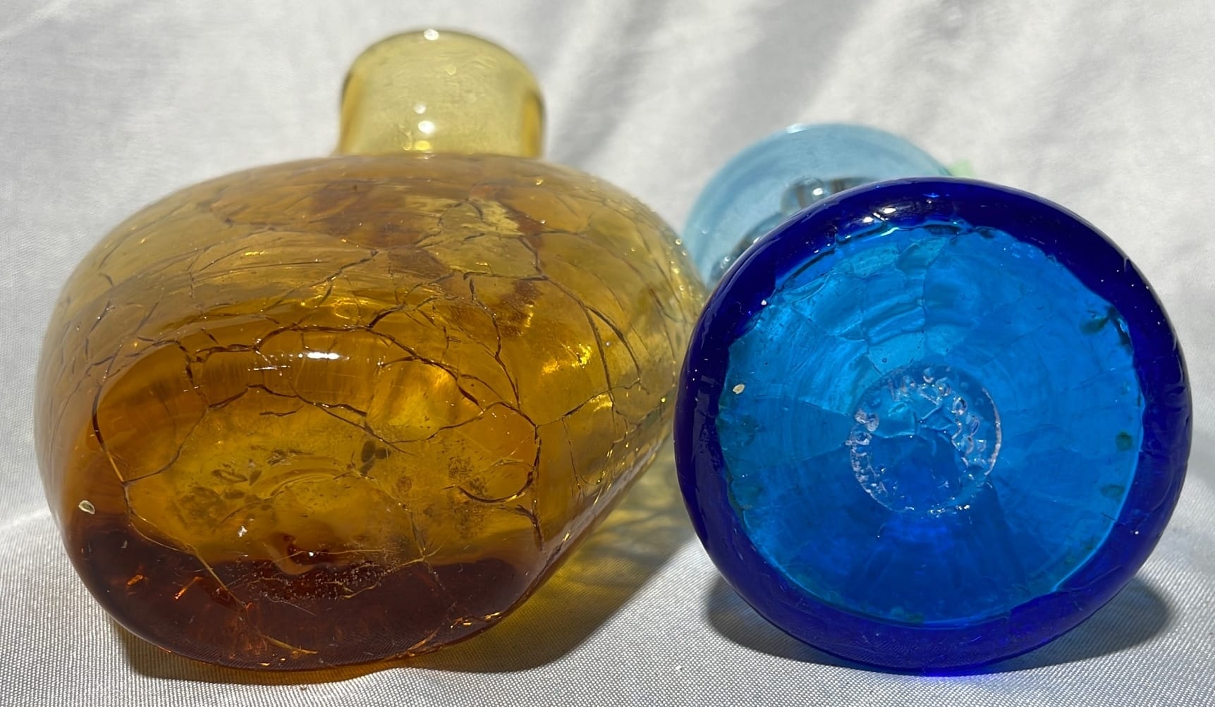 1241 Cranberry crackle glass vase 5", art glass vase 5", amber crackle vase 4"
