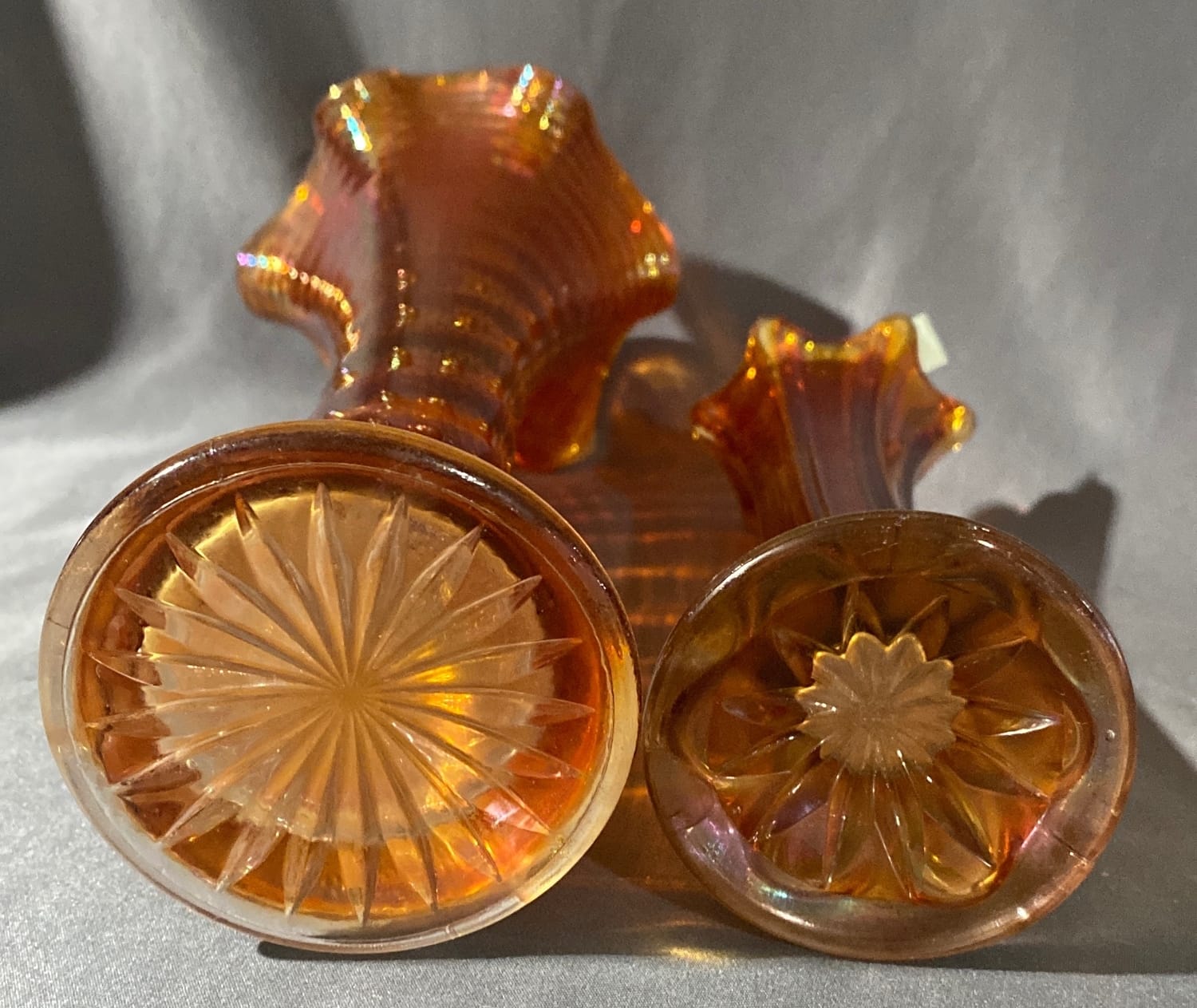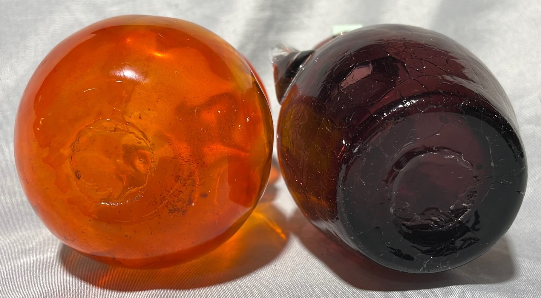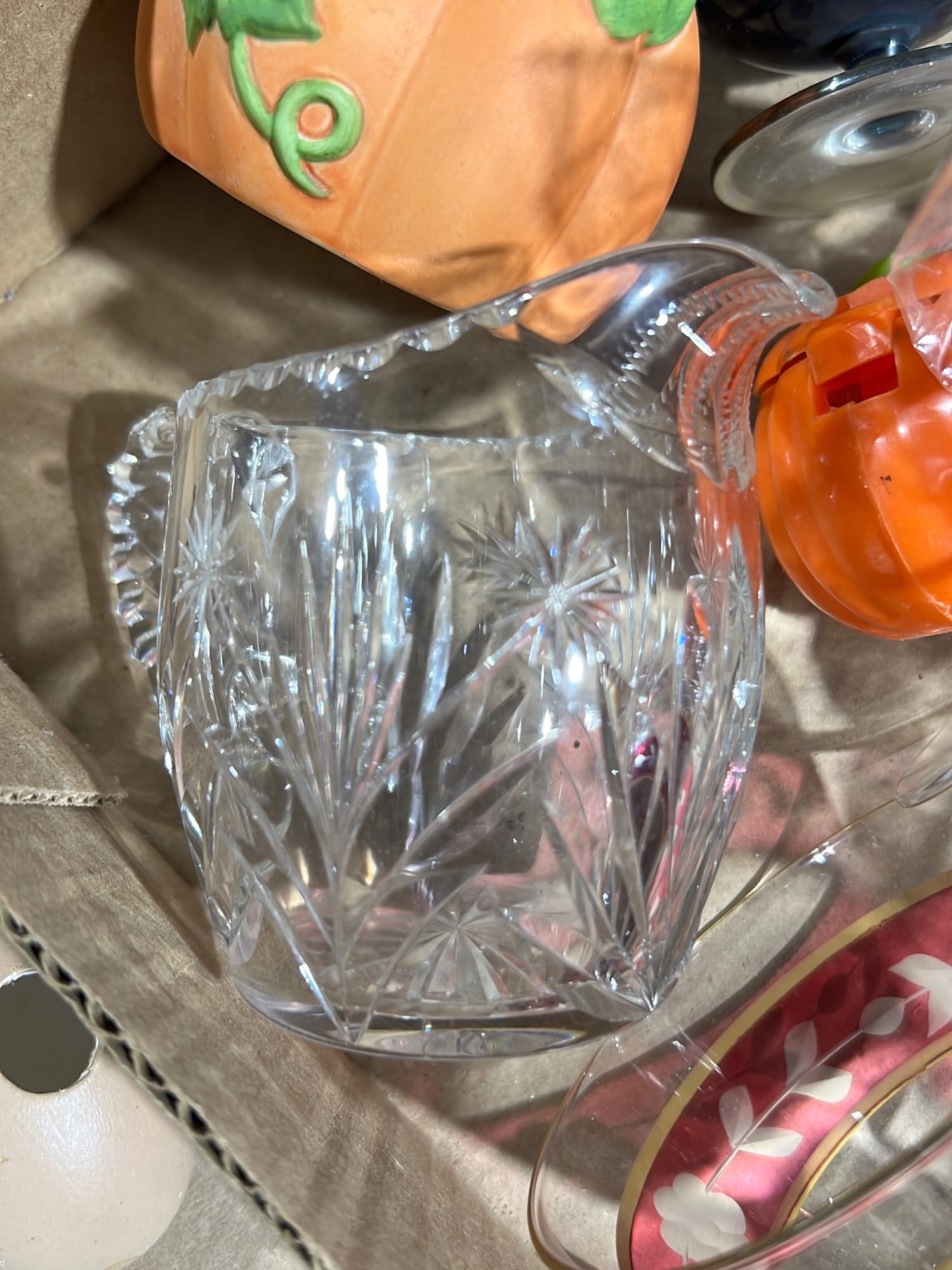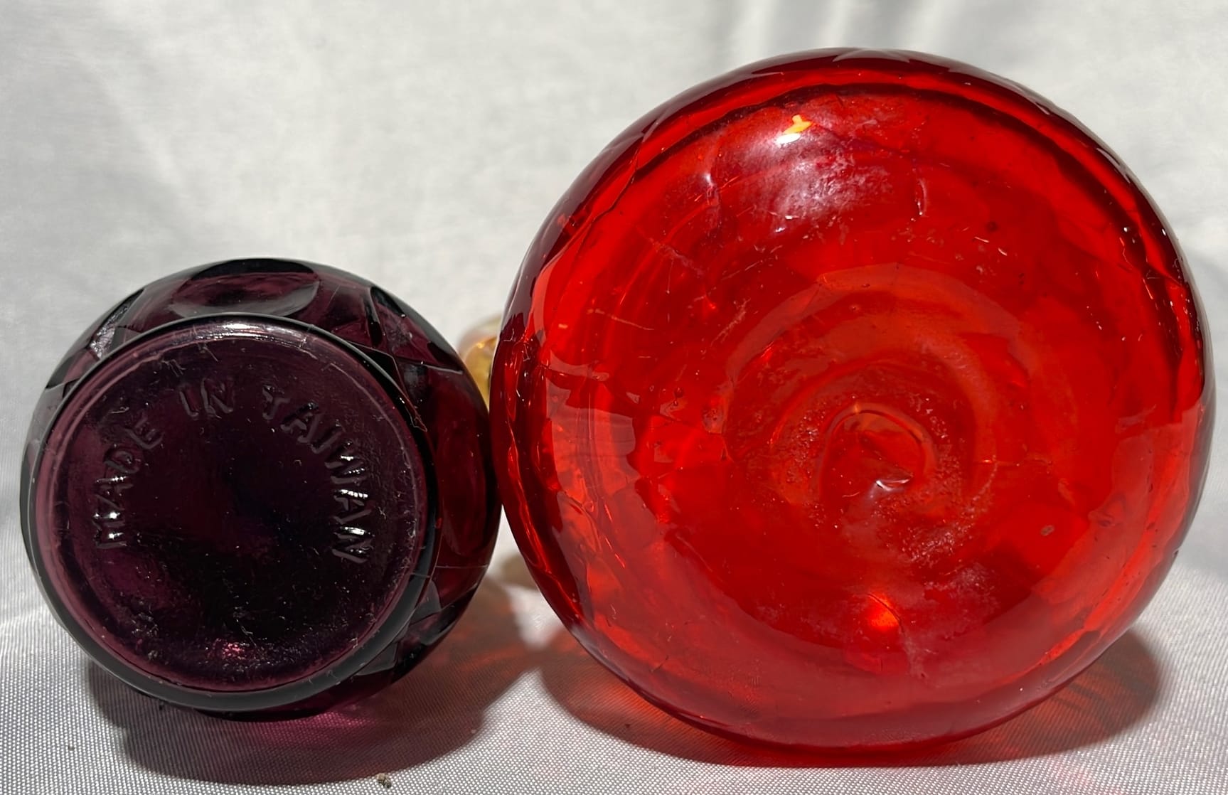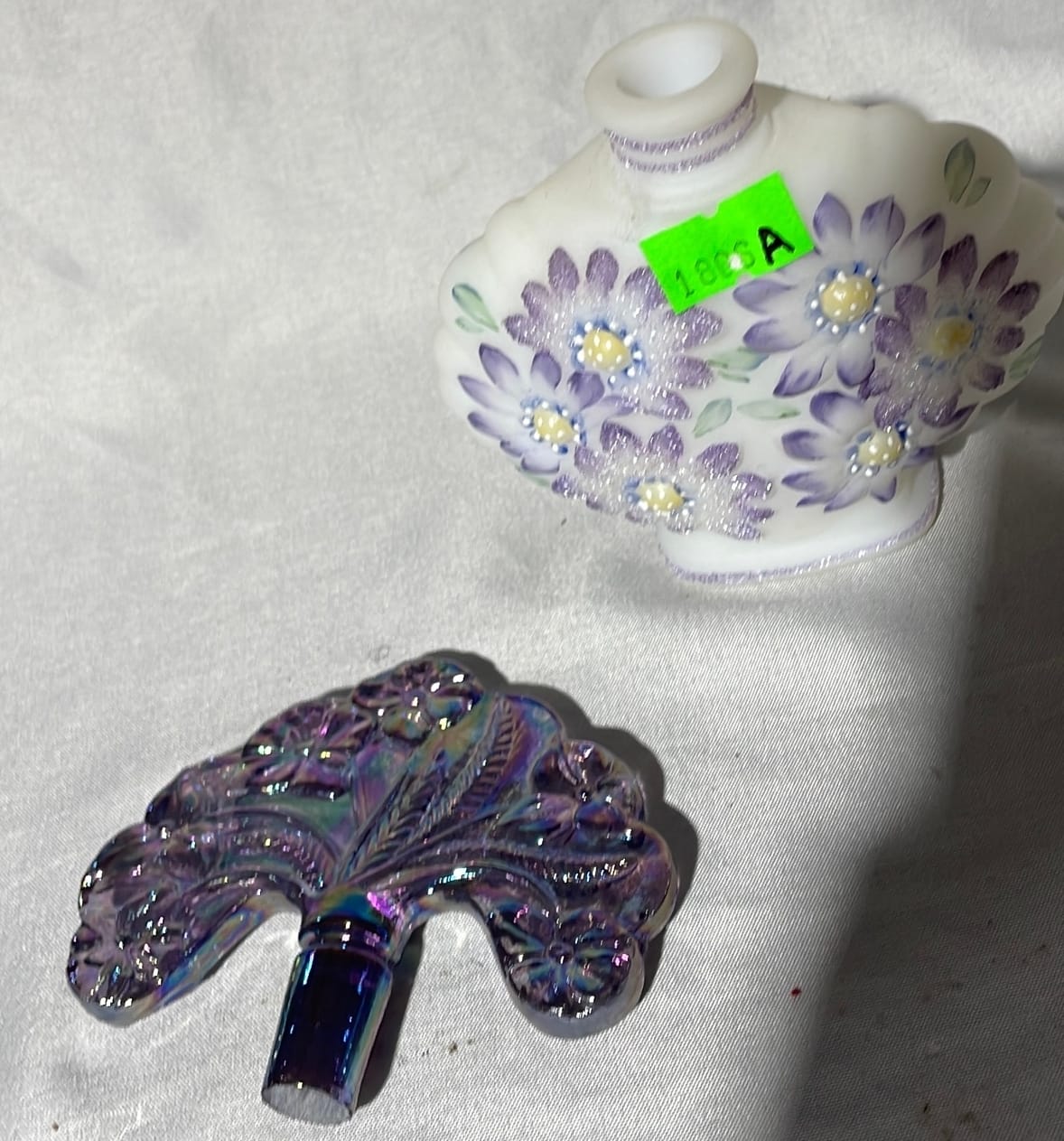 1239 Orange glass vase 3"x3", purple crackle creamer 5"