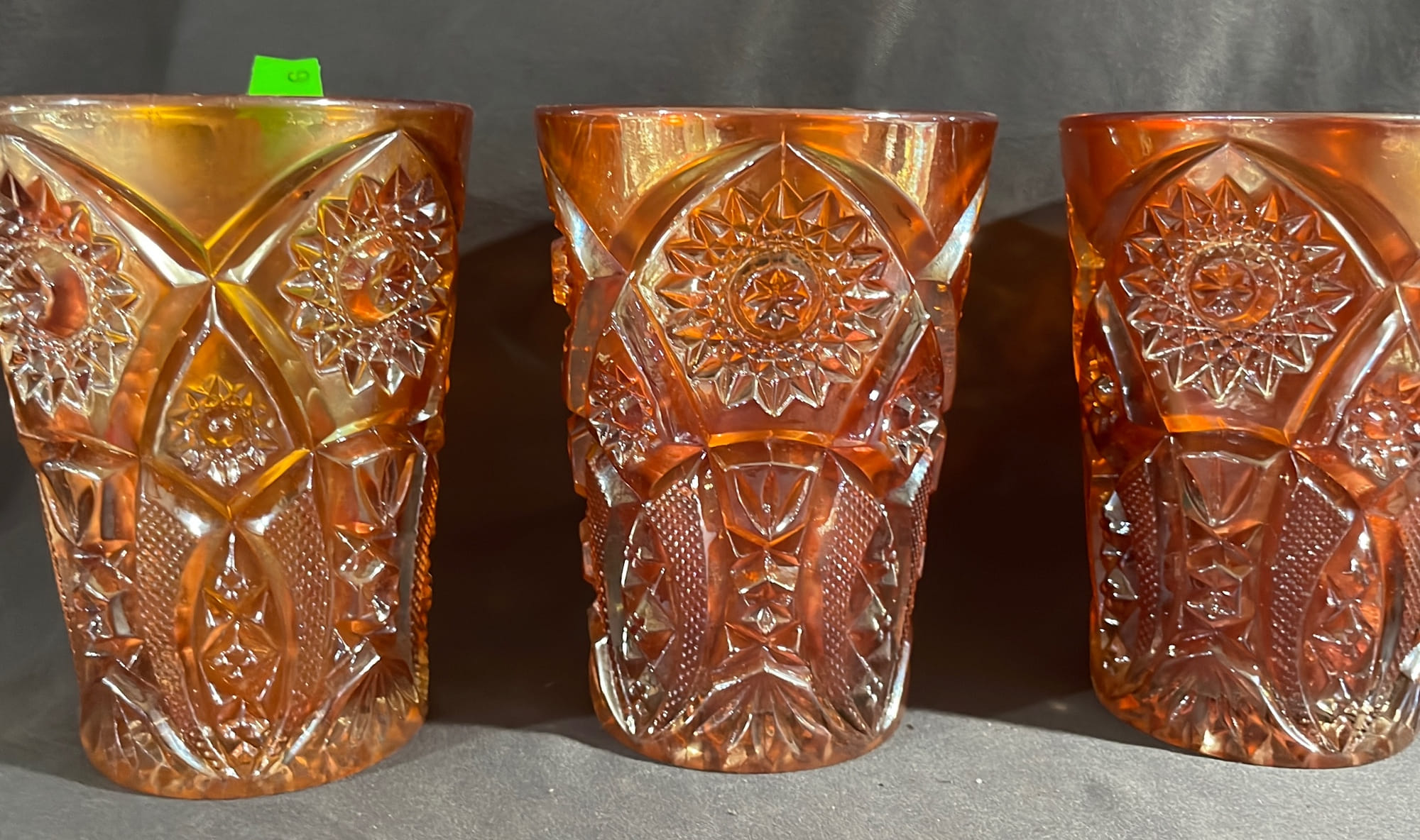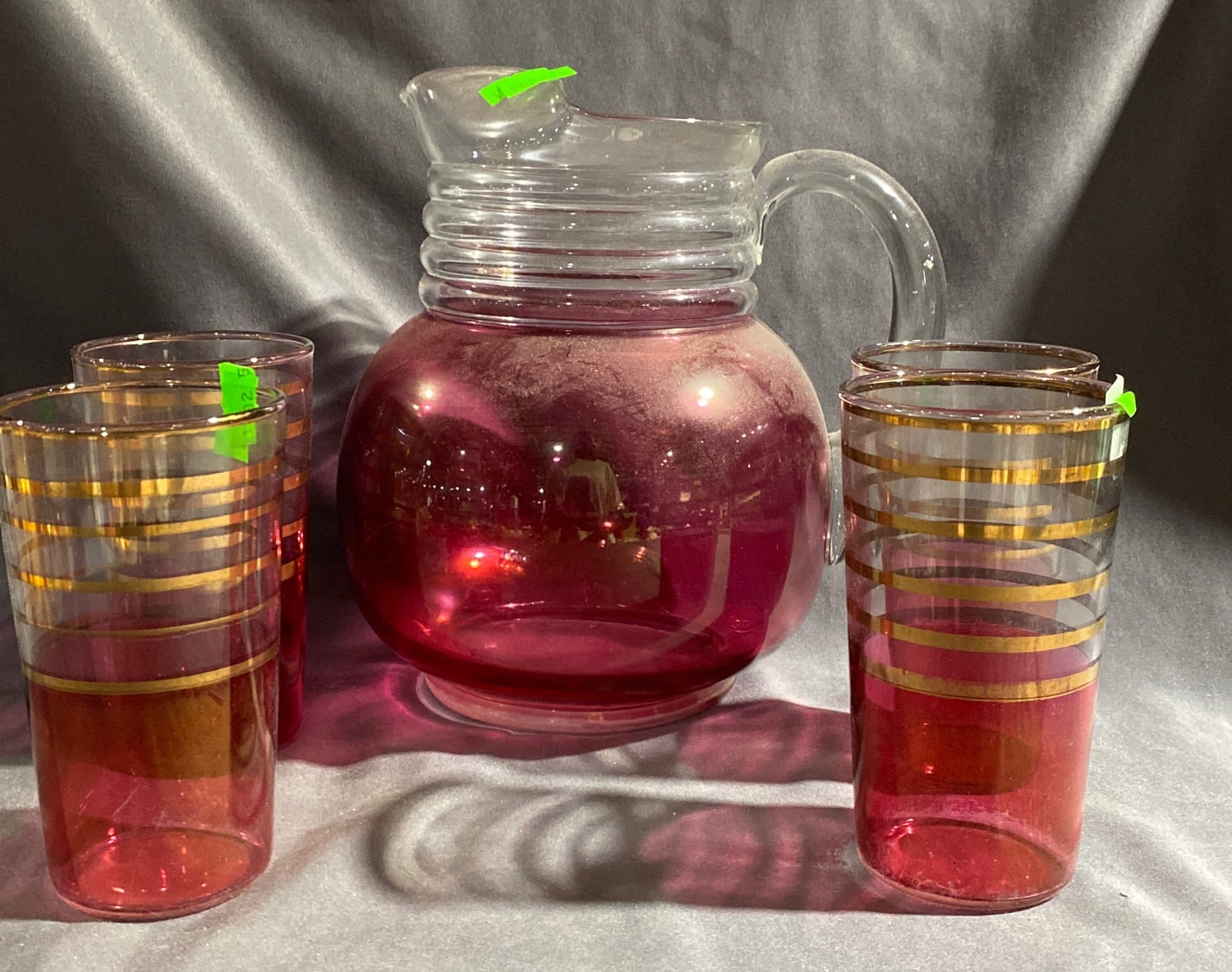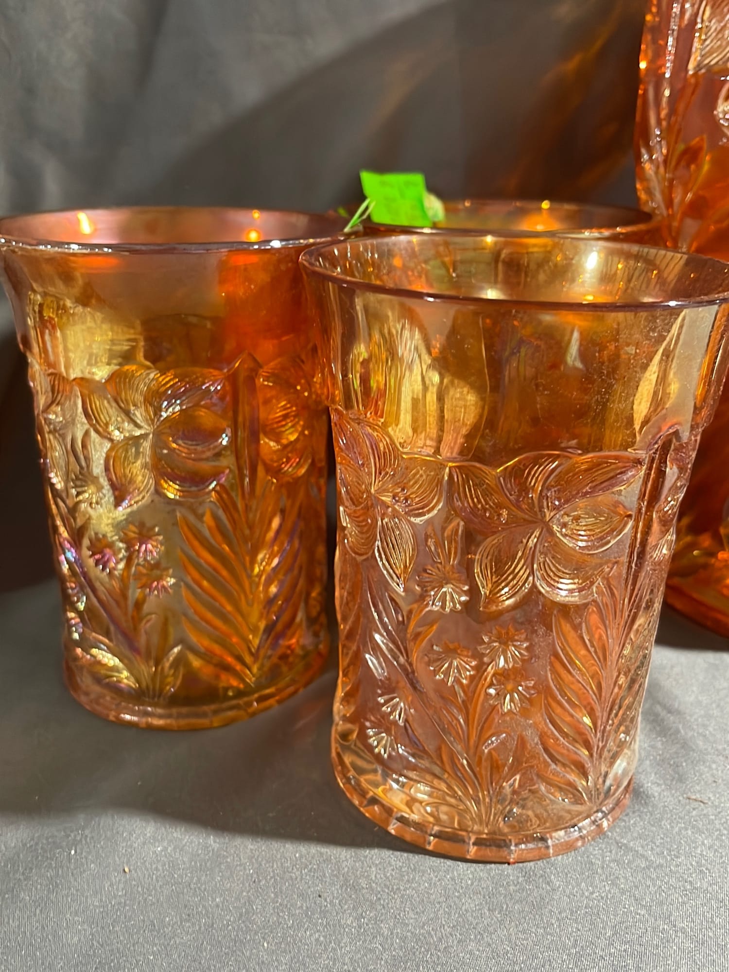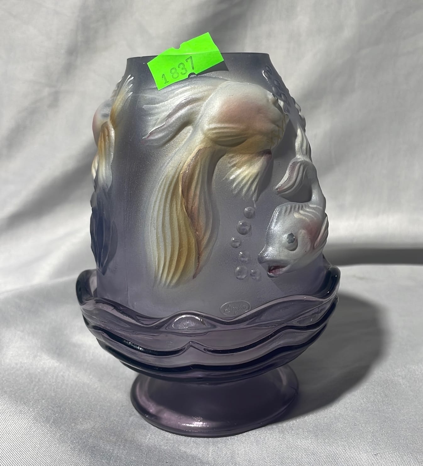 1239 Orange glass vase 3"x3", purple crackle creamer 5"