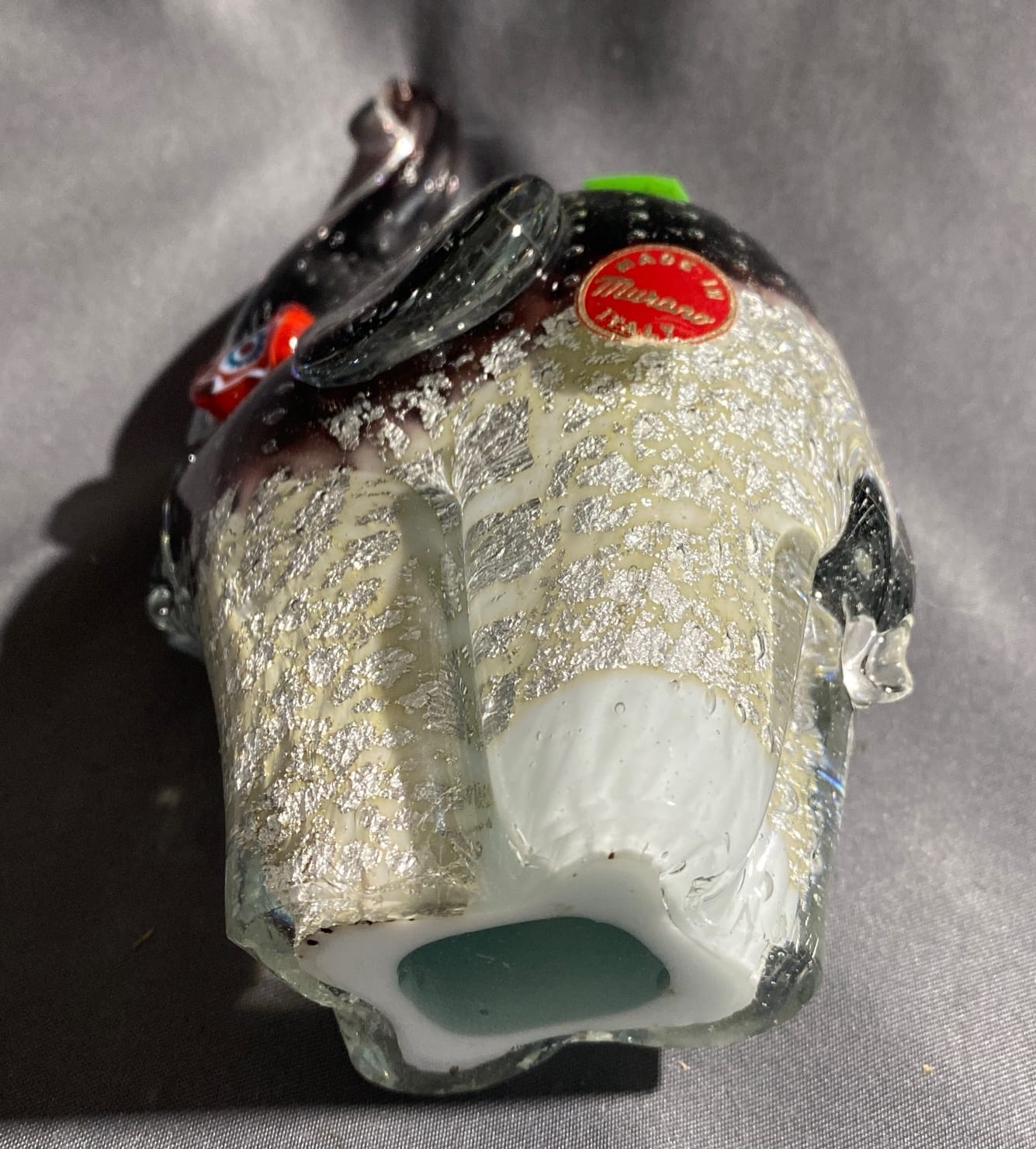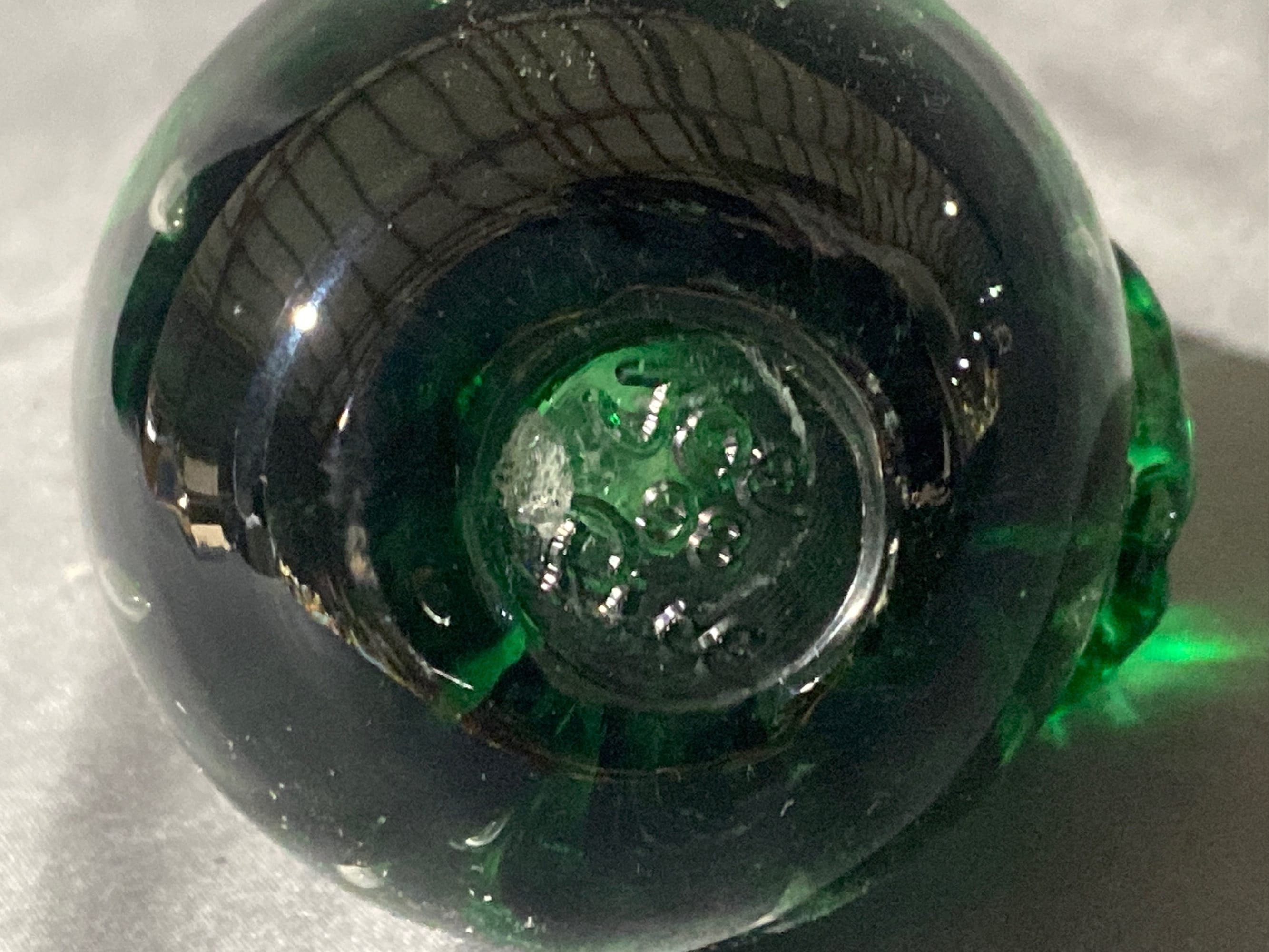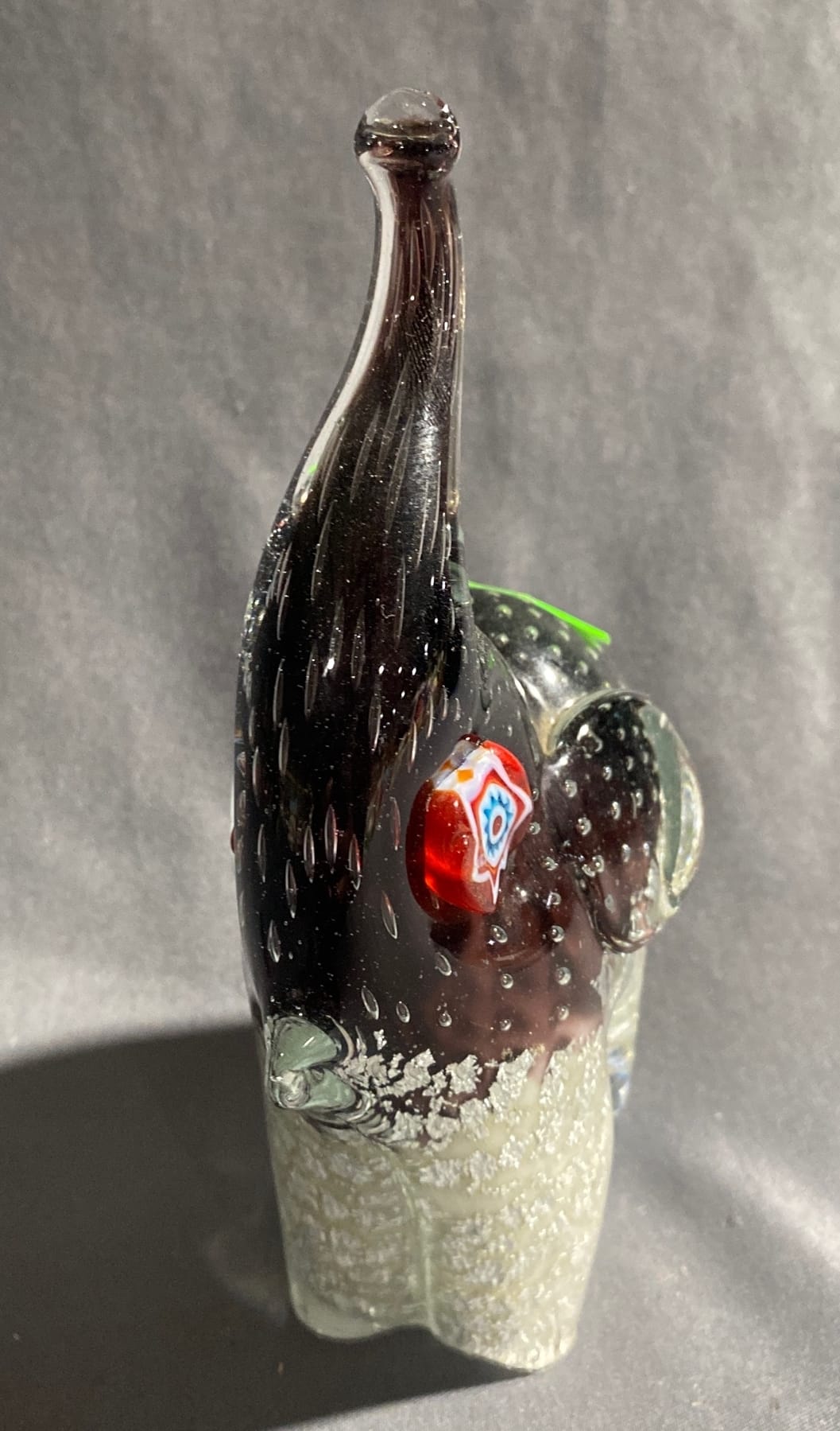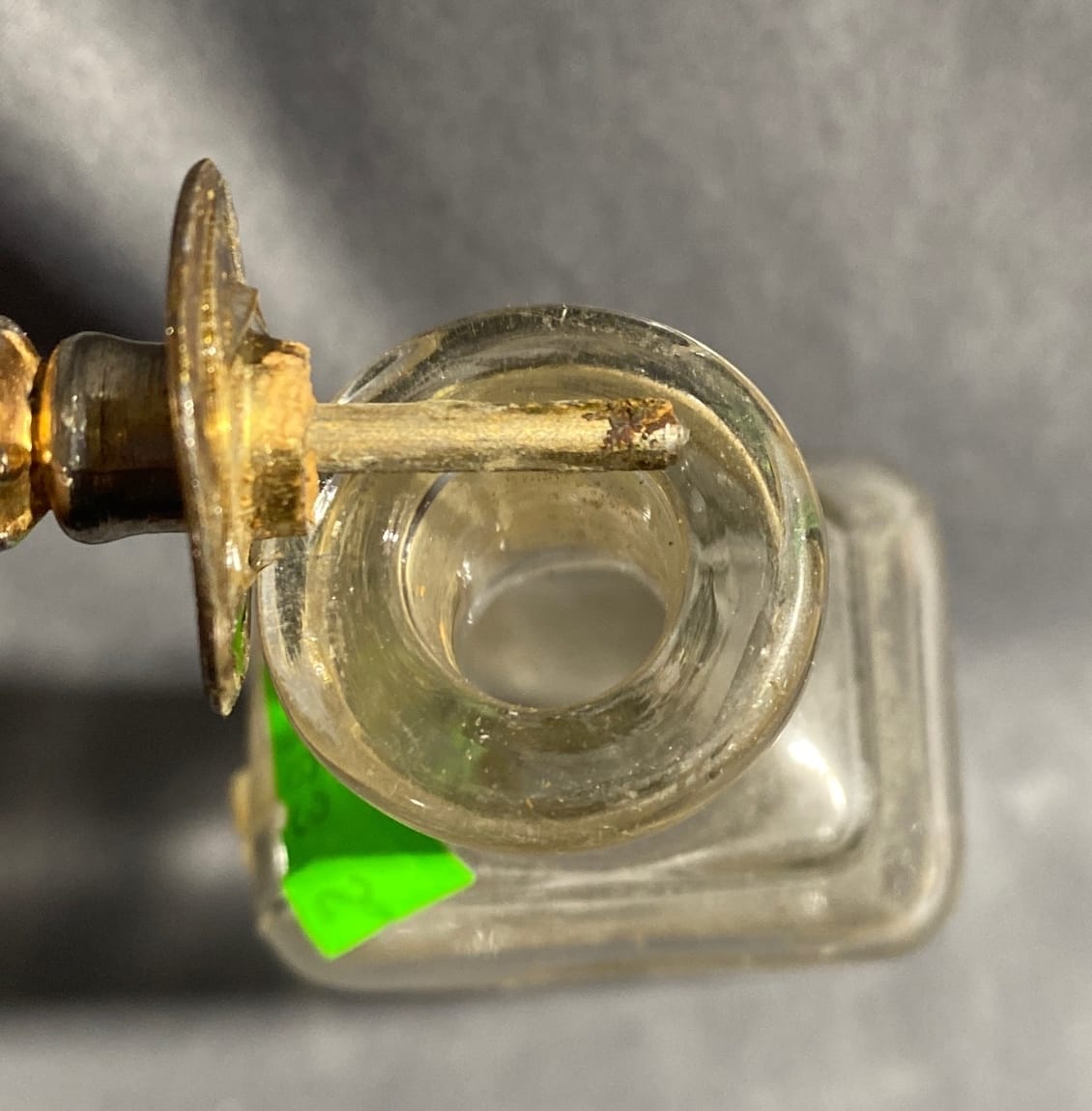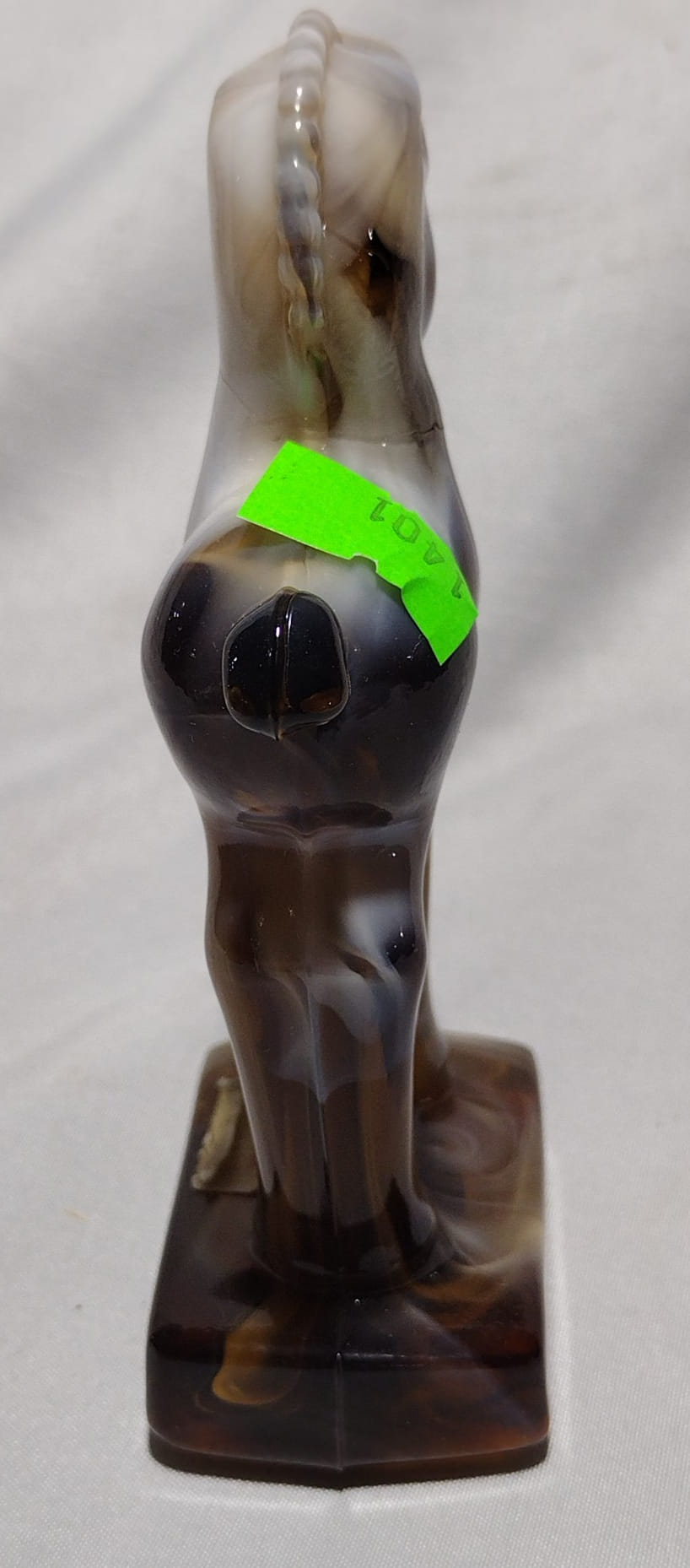 1238 Rainbow crackle glass decanter 7", purple amethyst decanter-stopper is chipped 5"