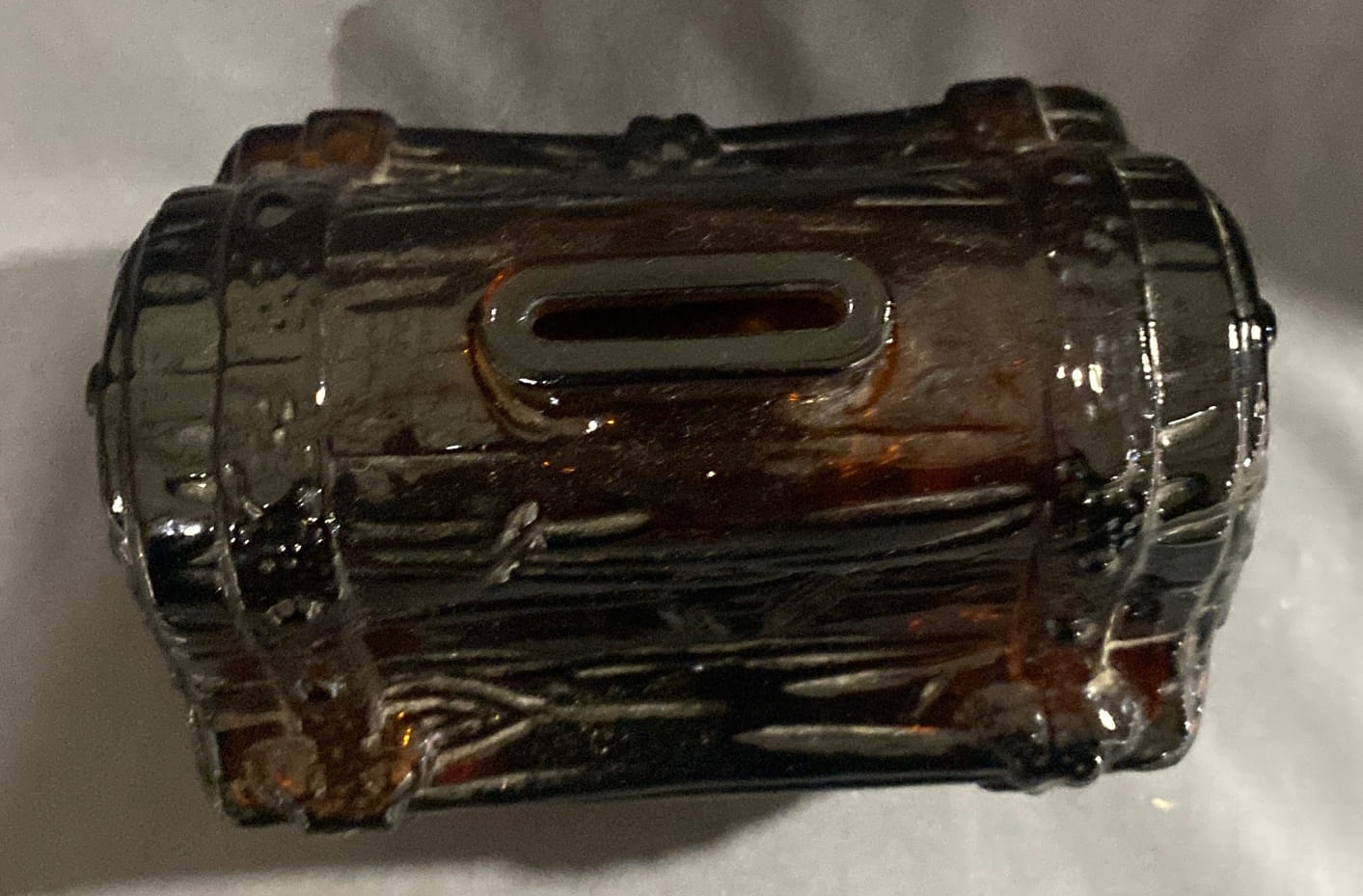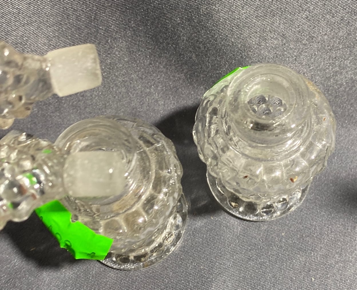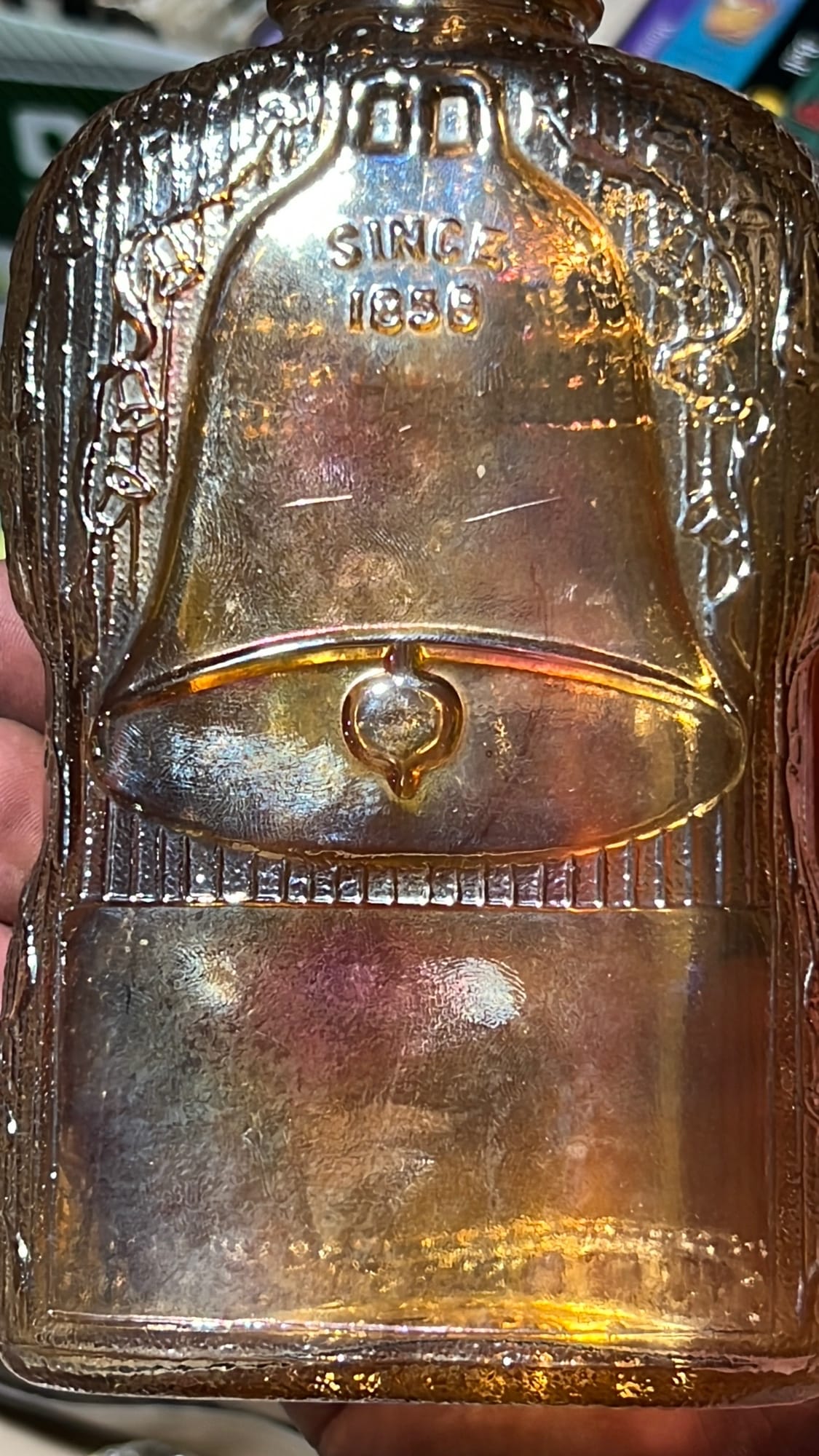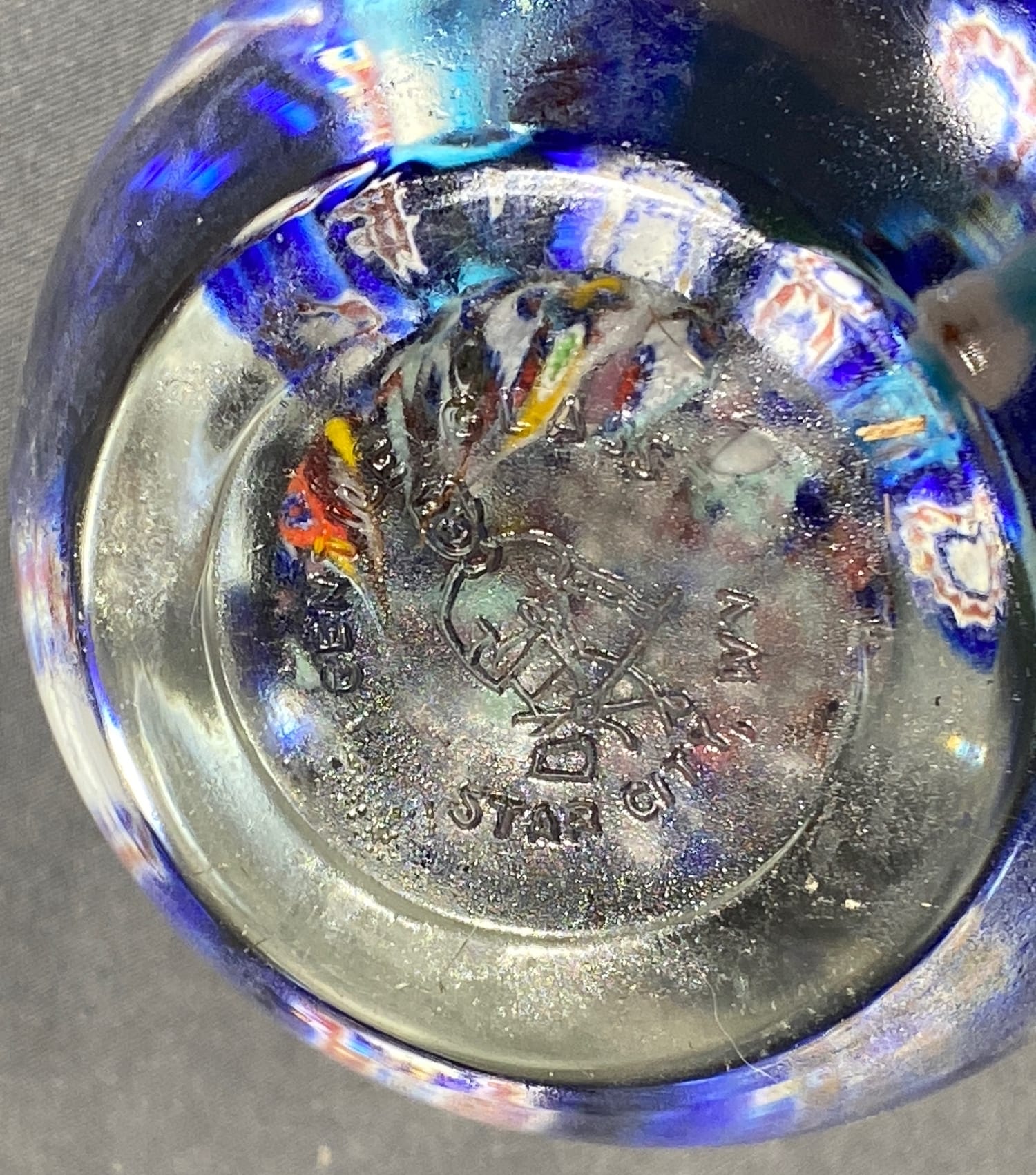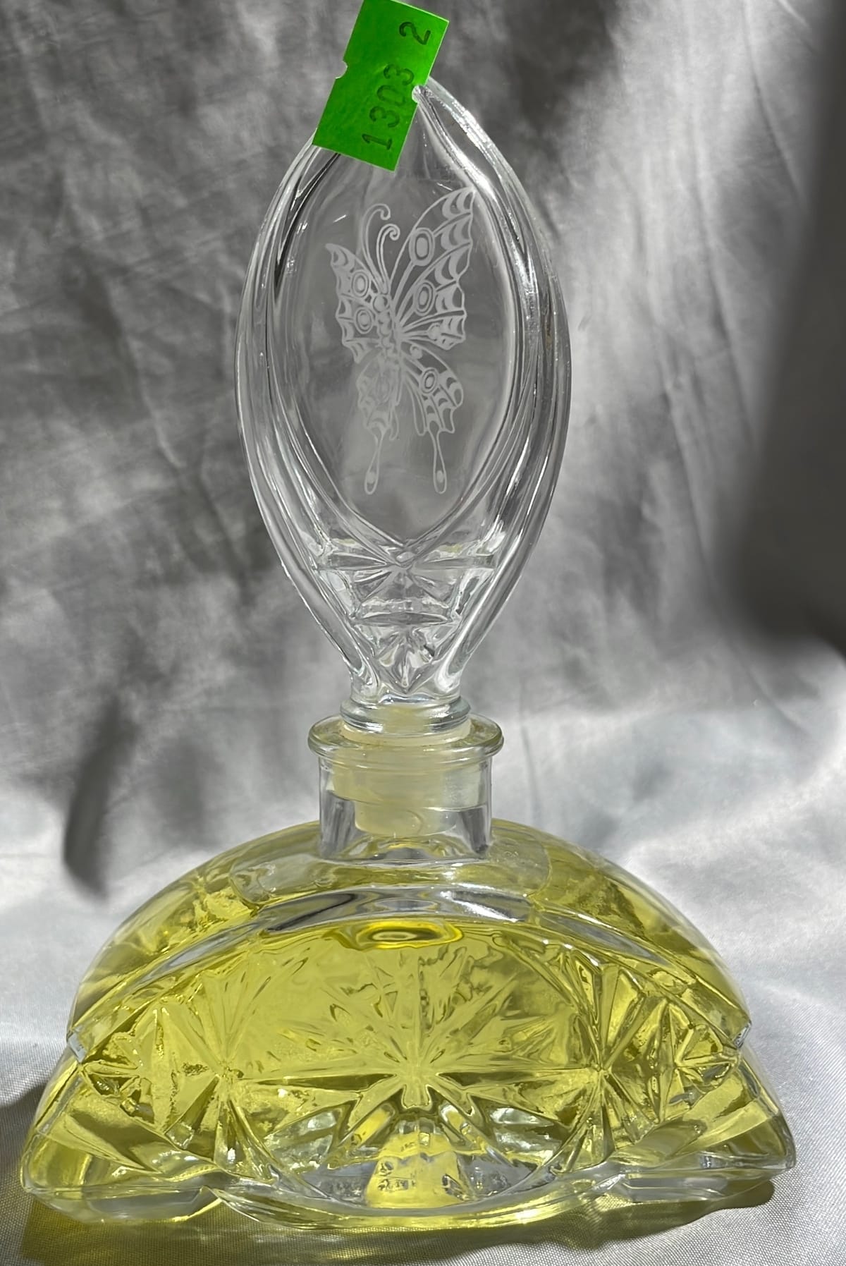 1238 Rainbow crackle glass decanter 7", purple amethyst decanter-stopper is chipped 5"