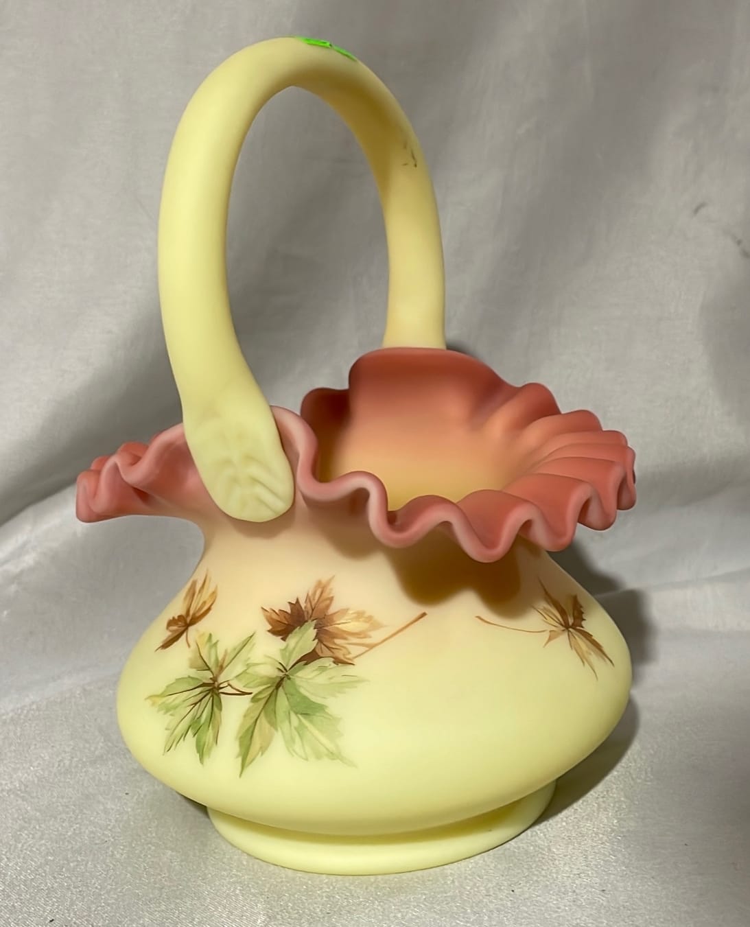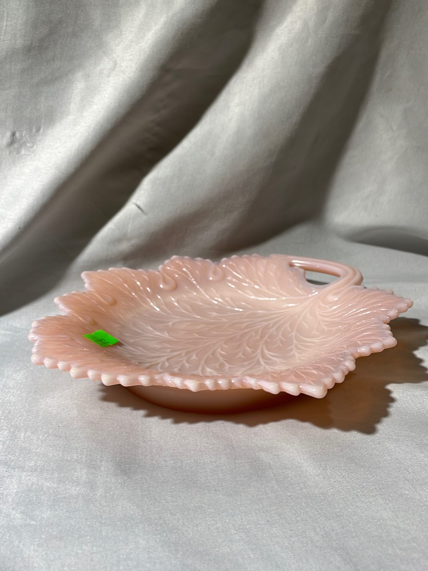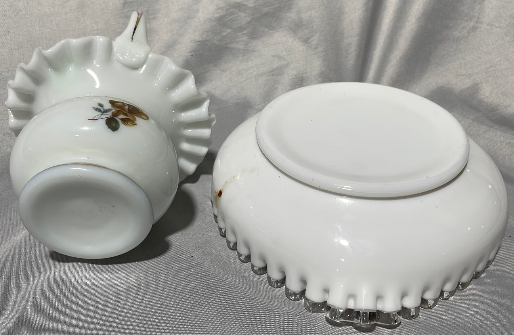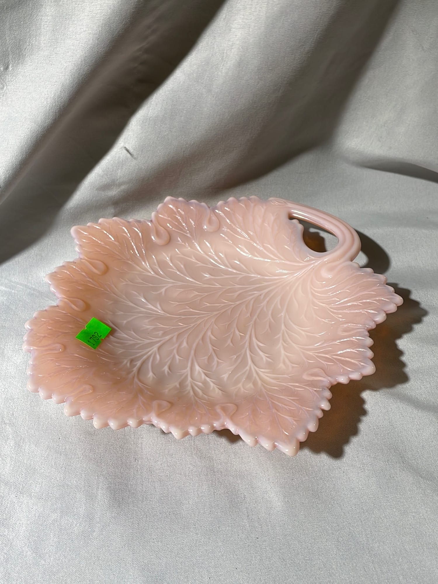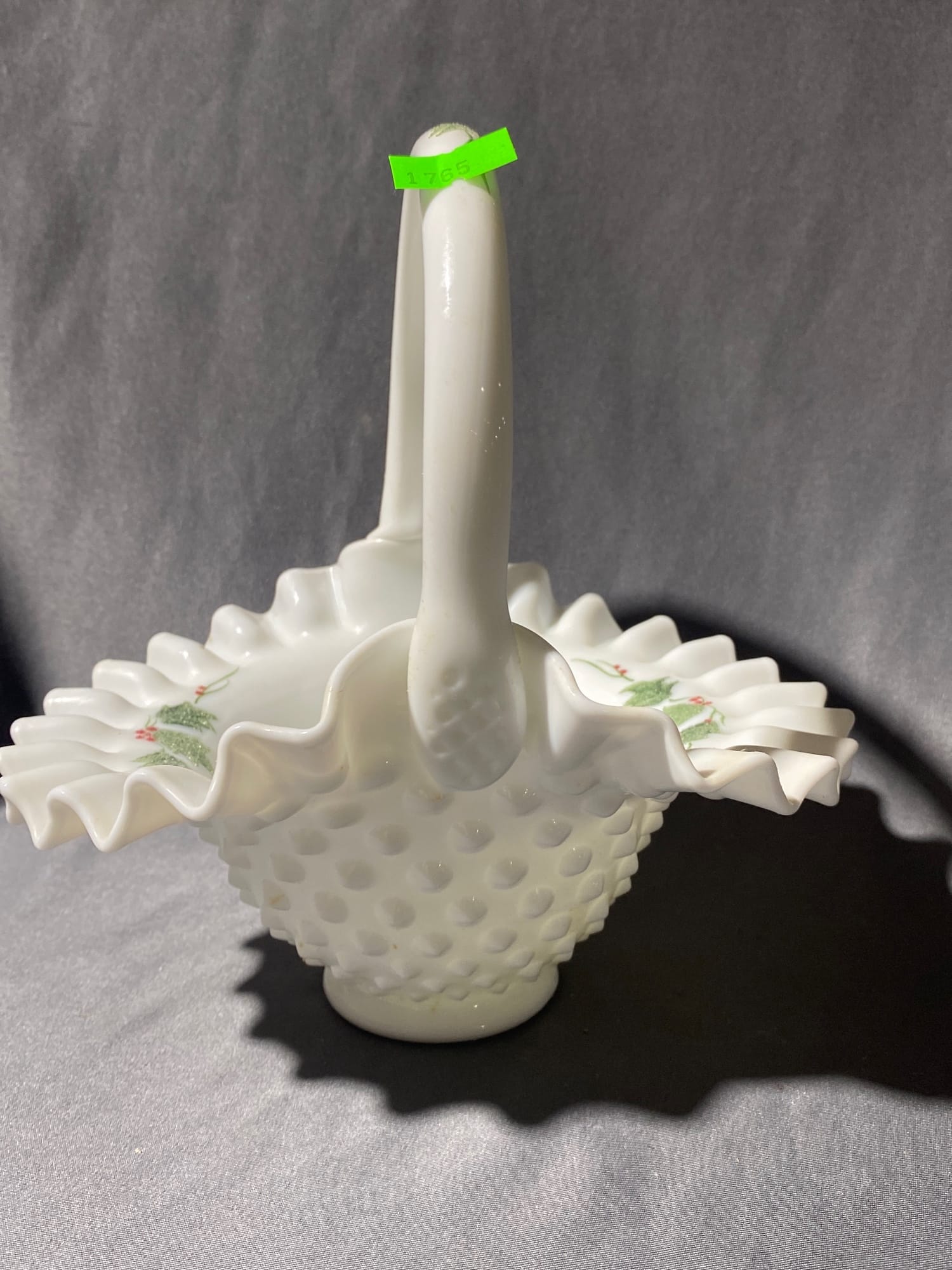 1243 Milk glass basket 4"x7", Fenton silver crest leaf dish 8"