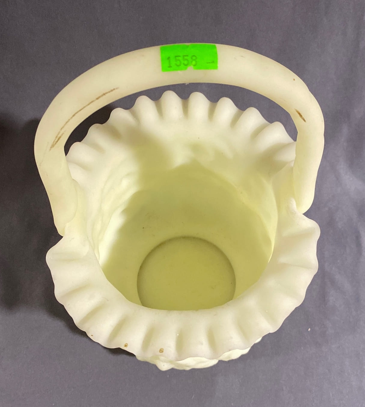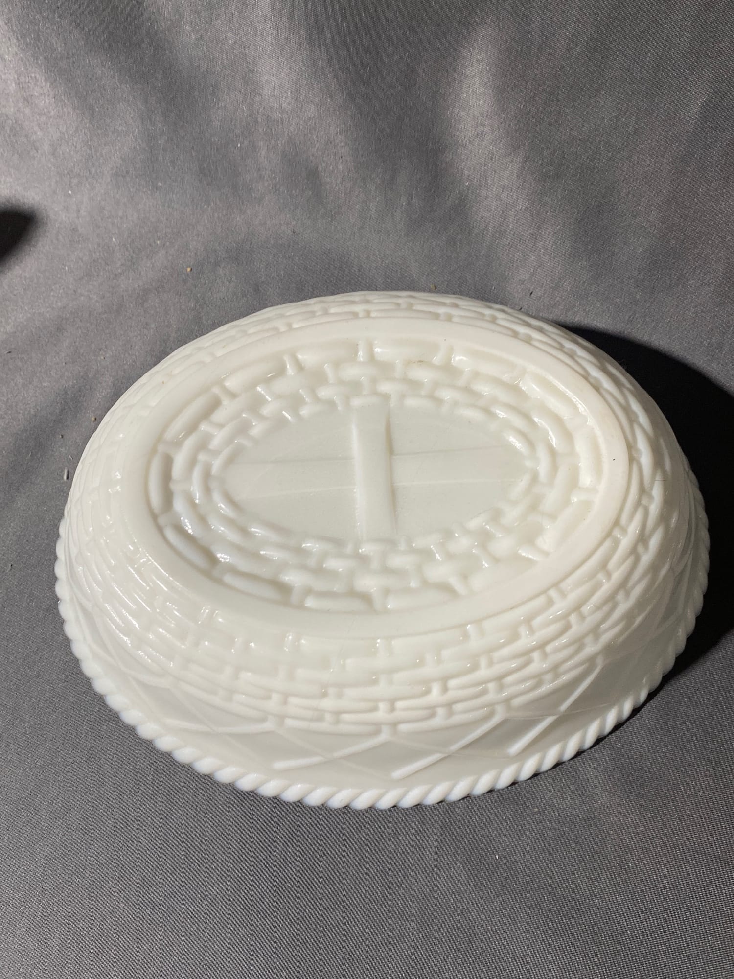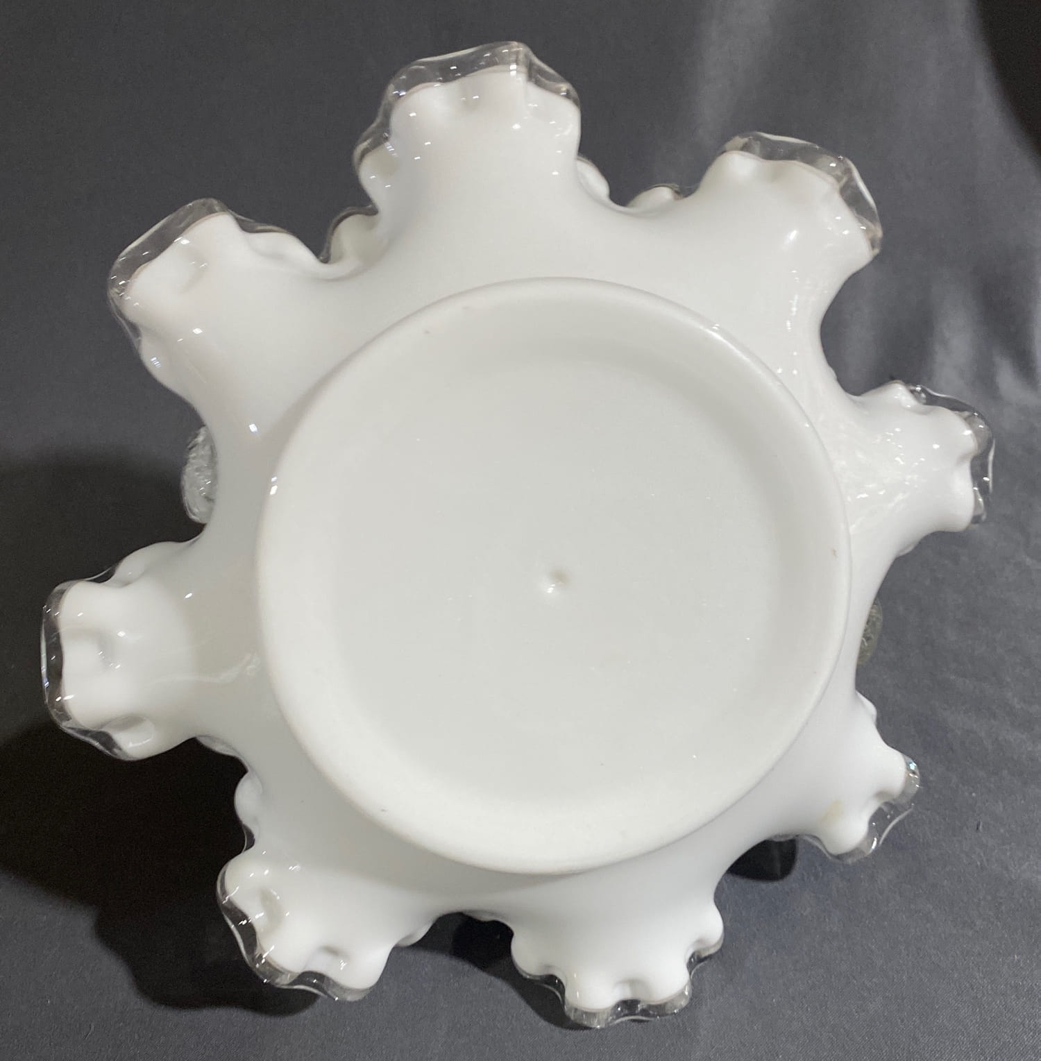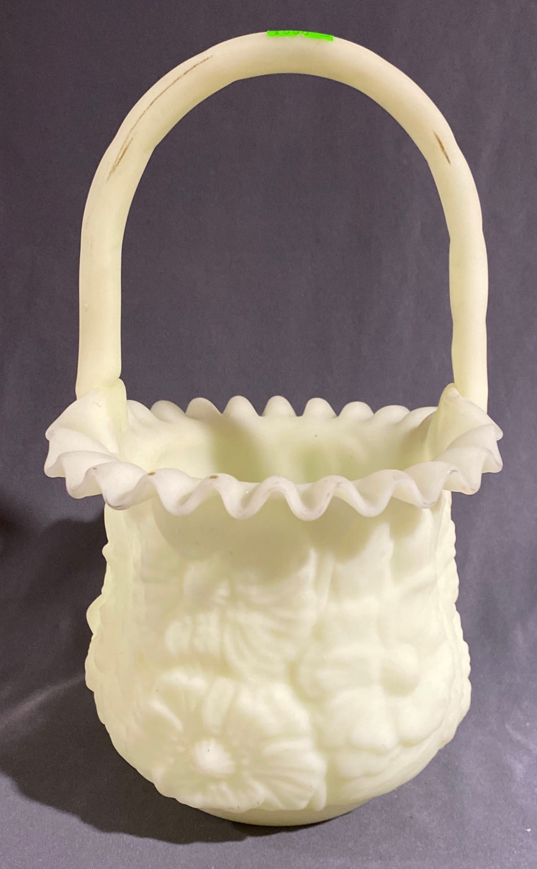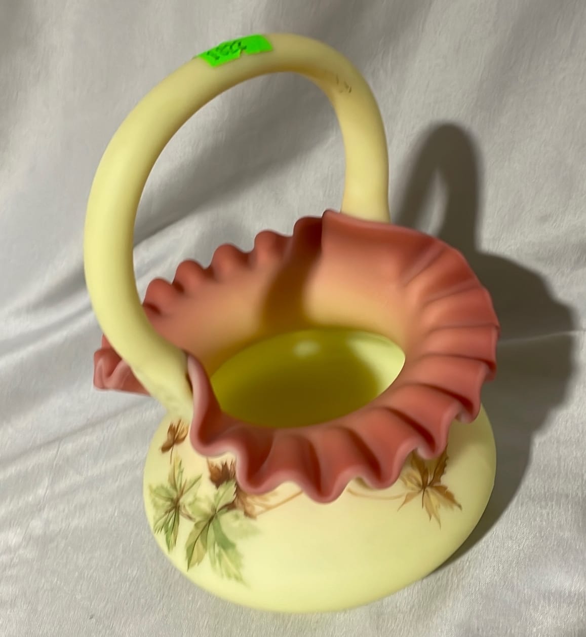 1243 Milk glass basket 4"x7", Fenton silver crest leaf dish 8"