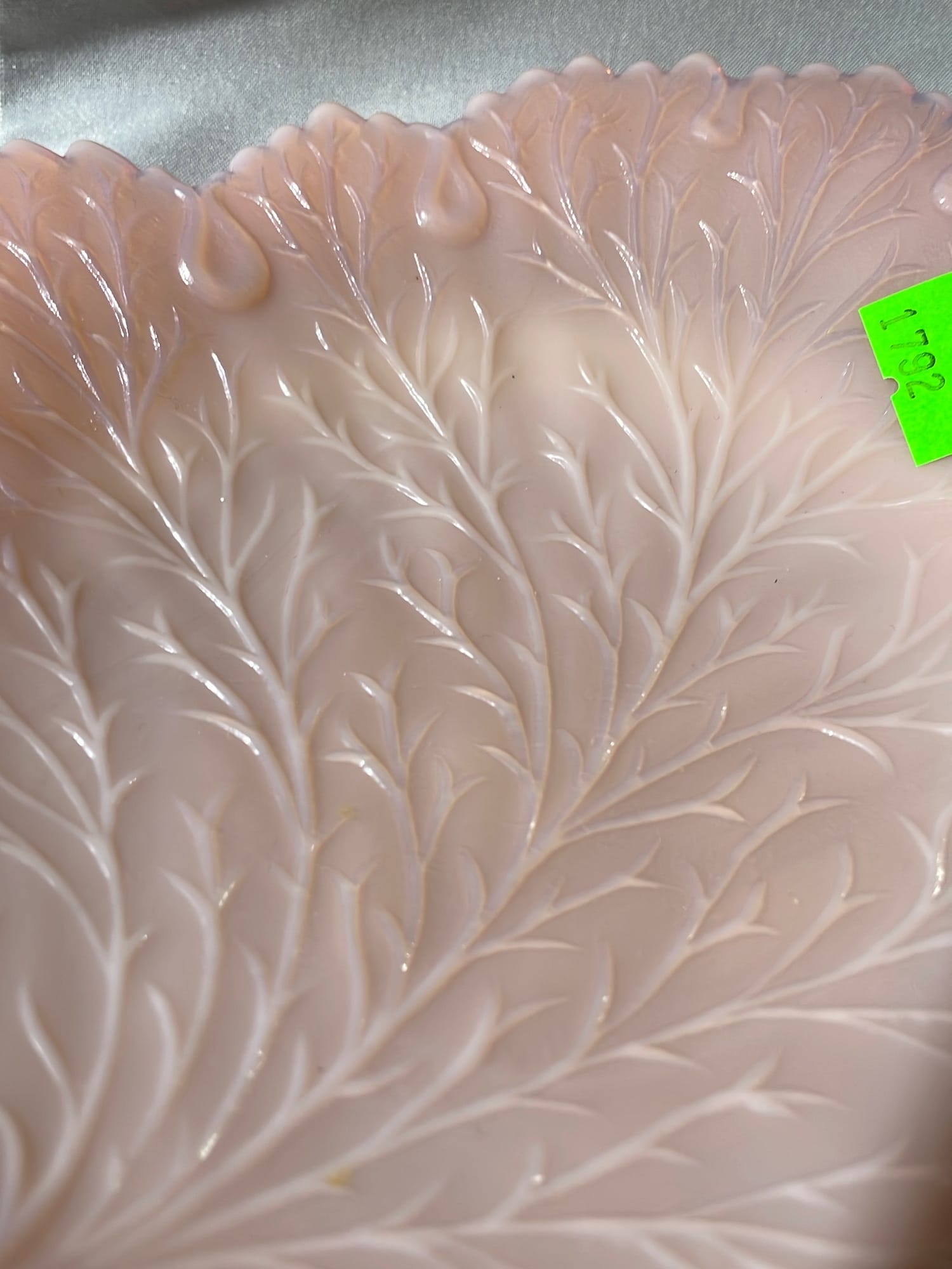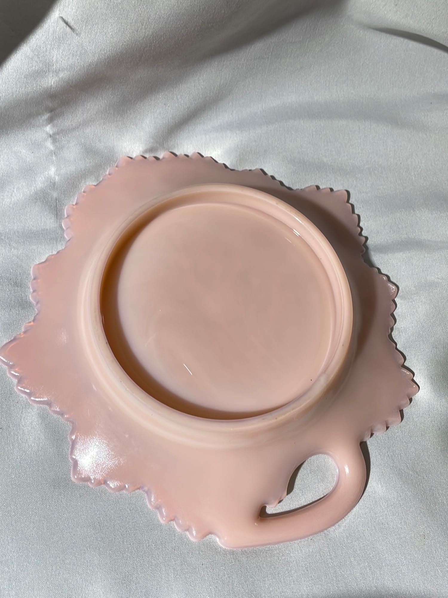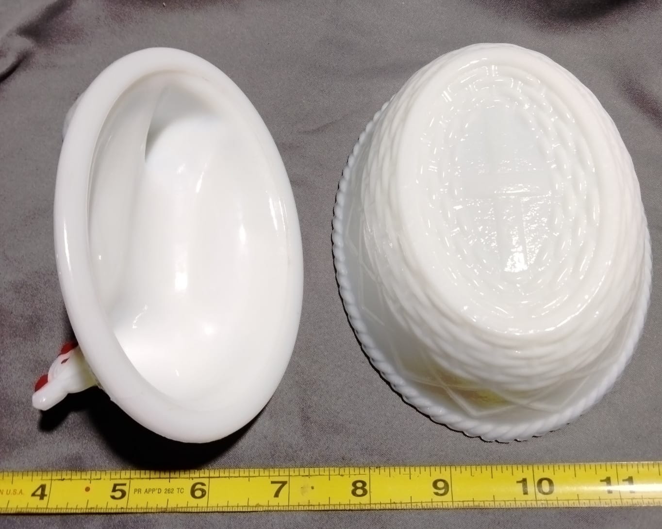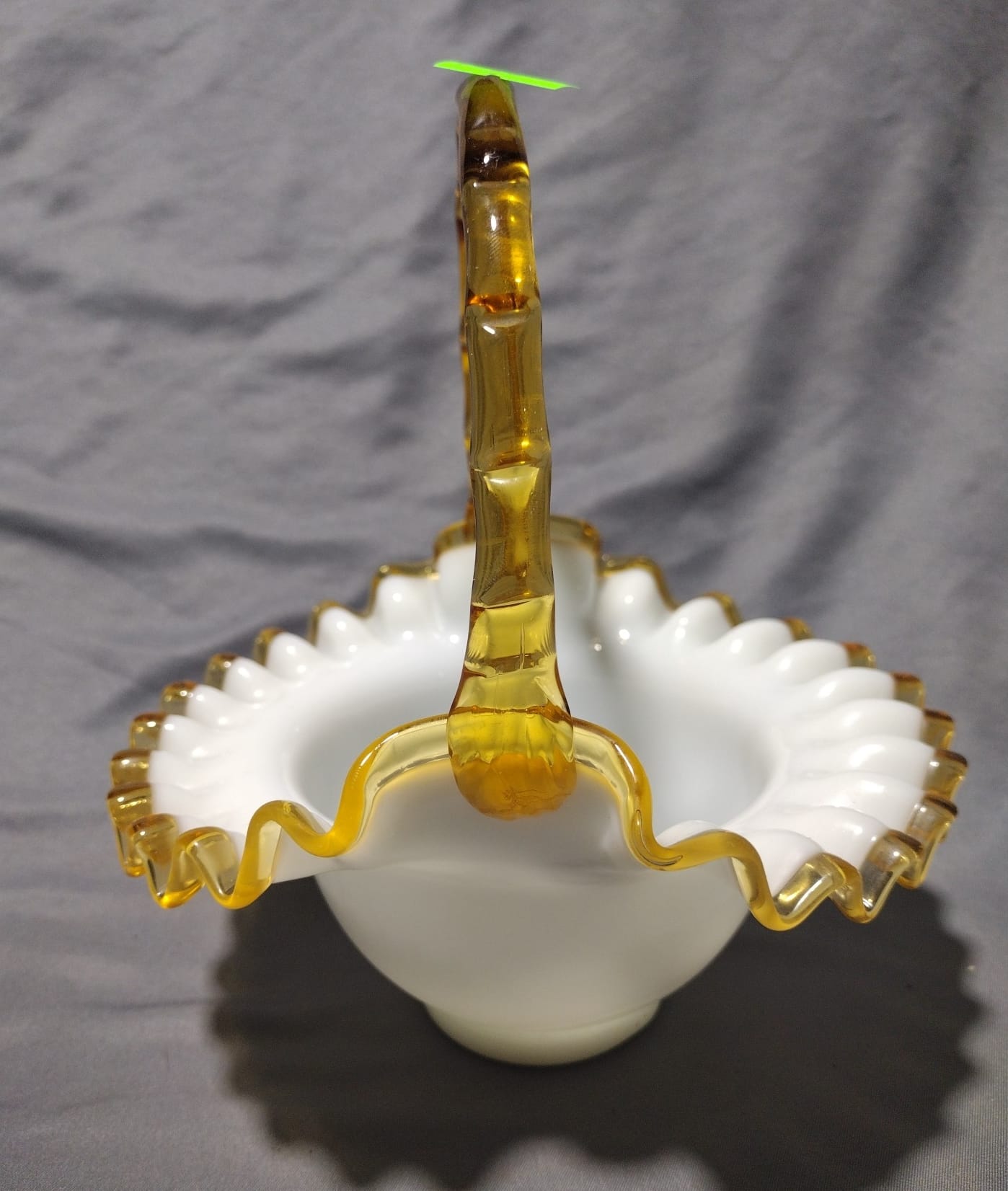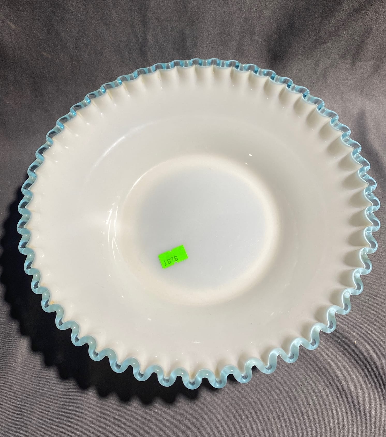 1243 Milk glass basket 4"x7", Fenton silver crest leaf dish 8"
