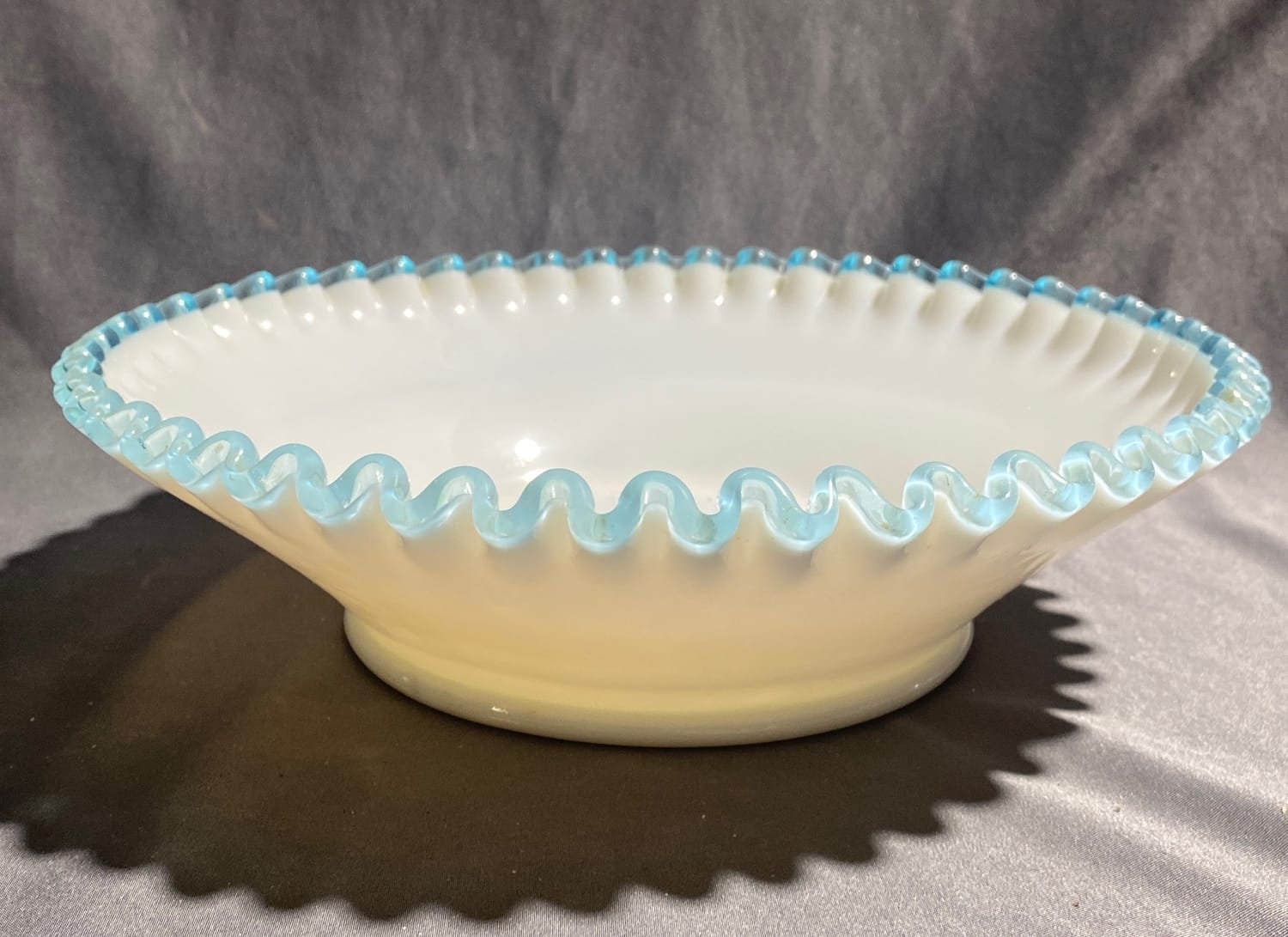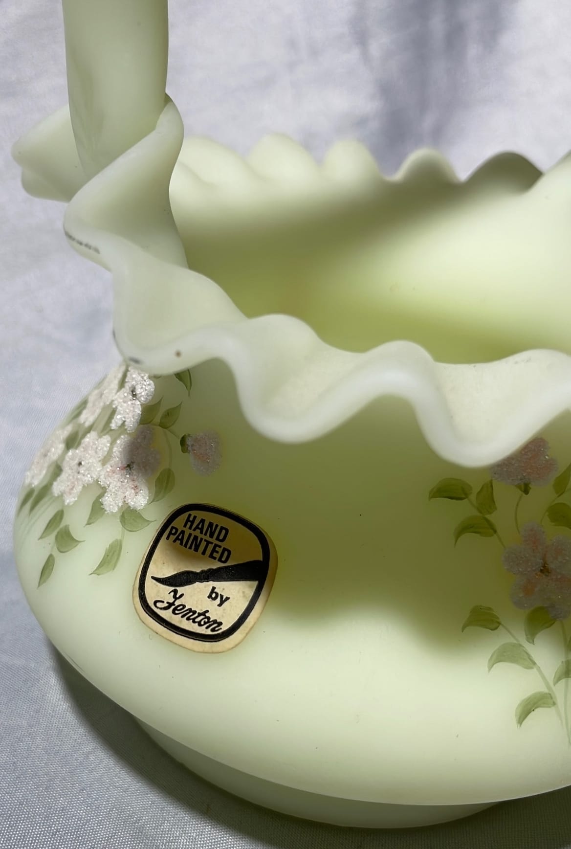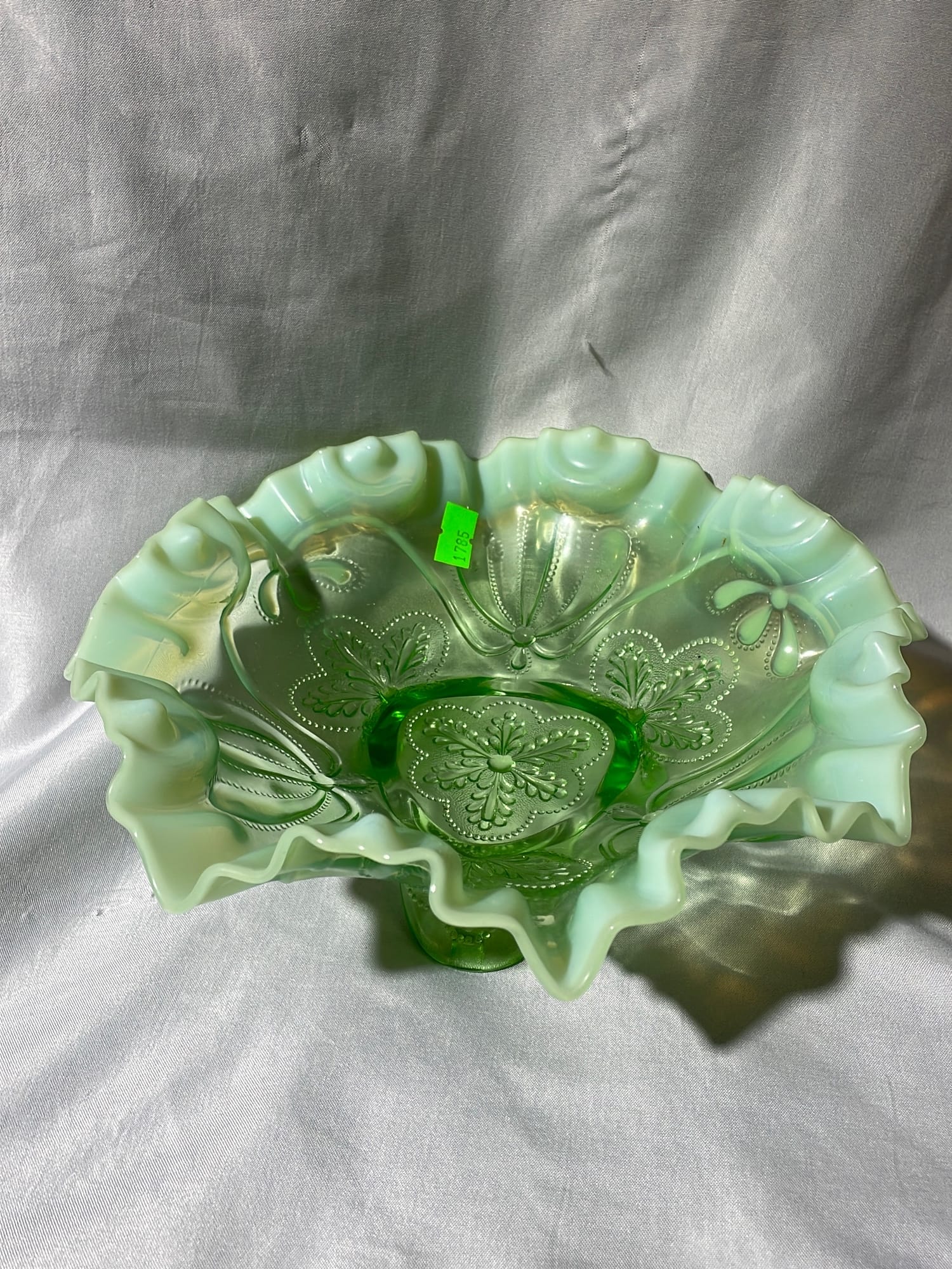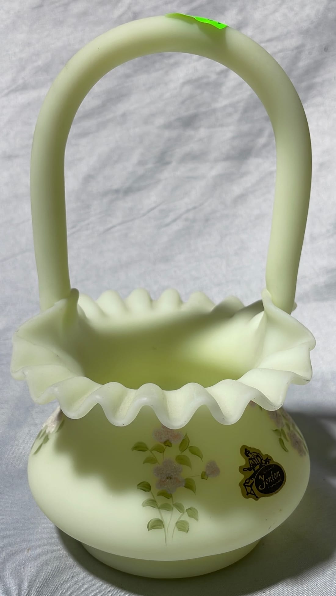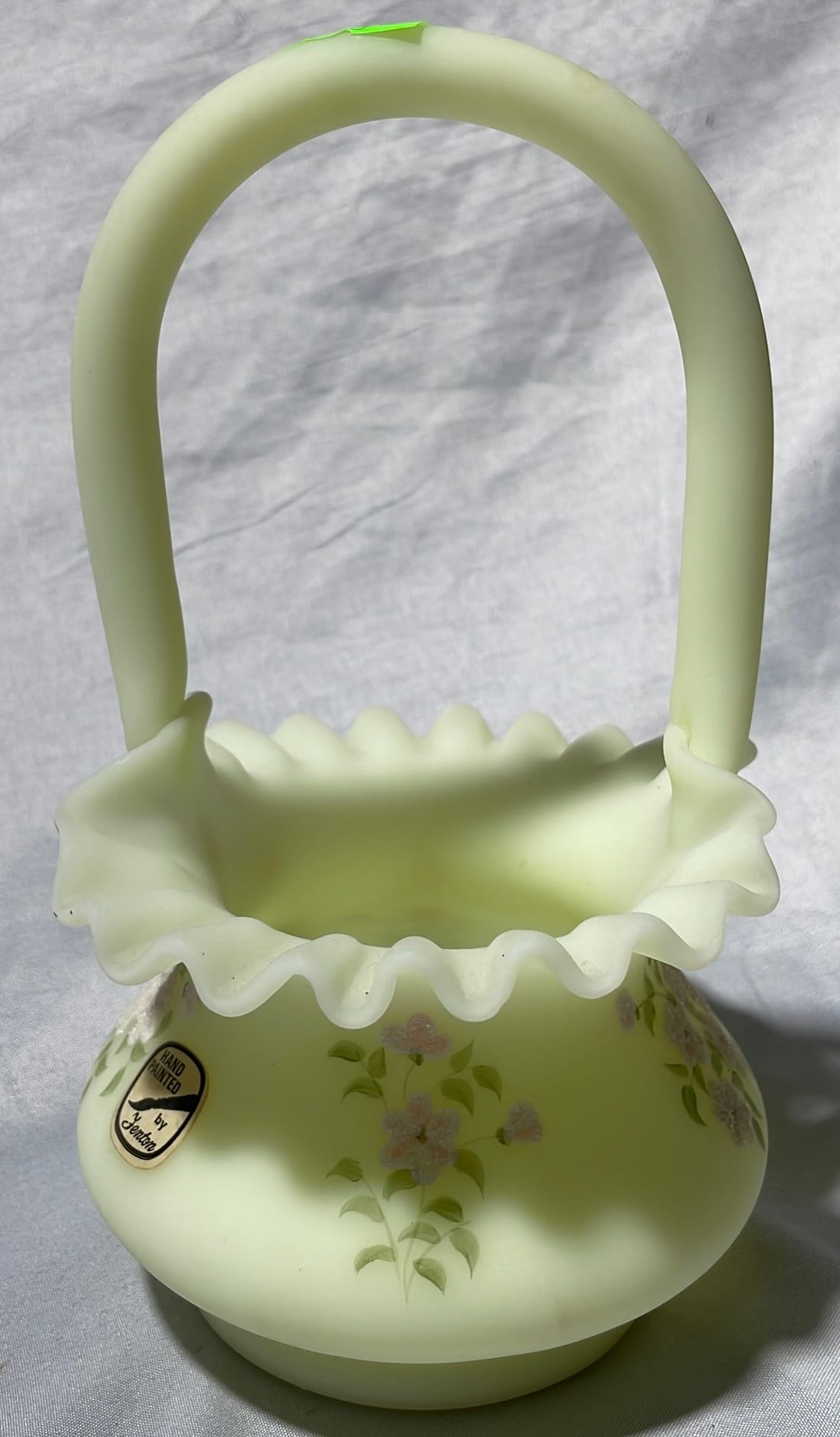 1243 Milk glass basket 4"x7", Fenton silver crest leaf dish 8"