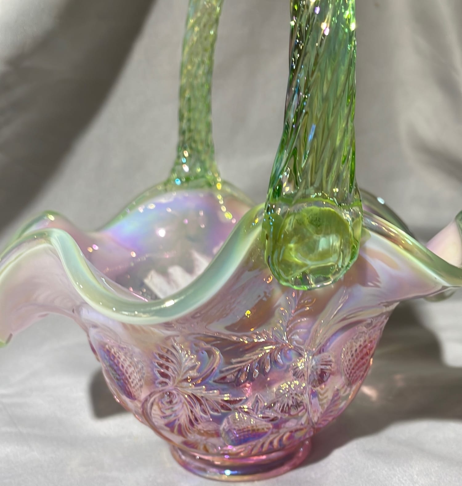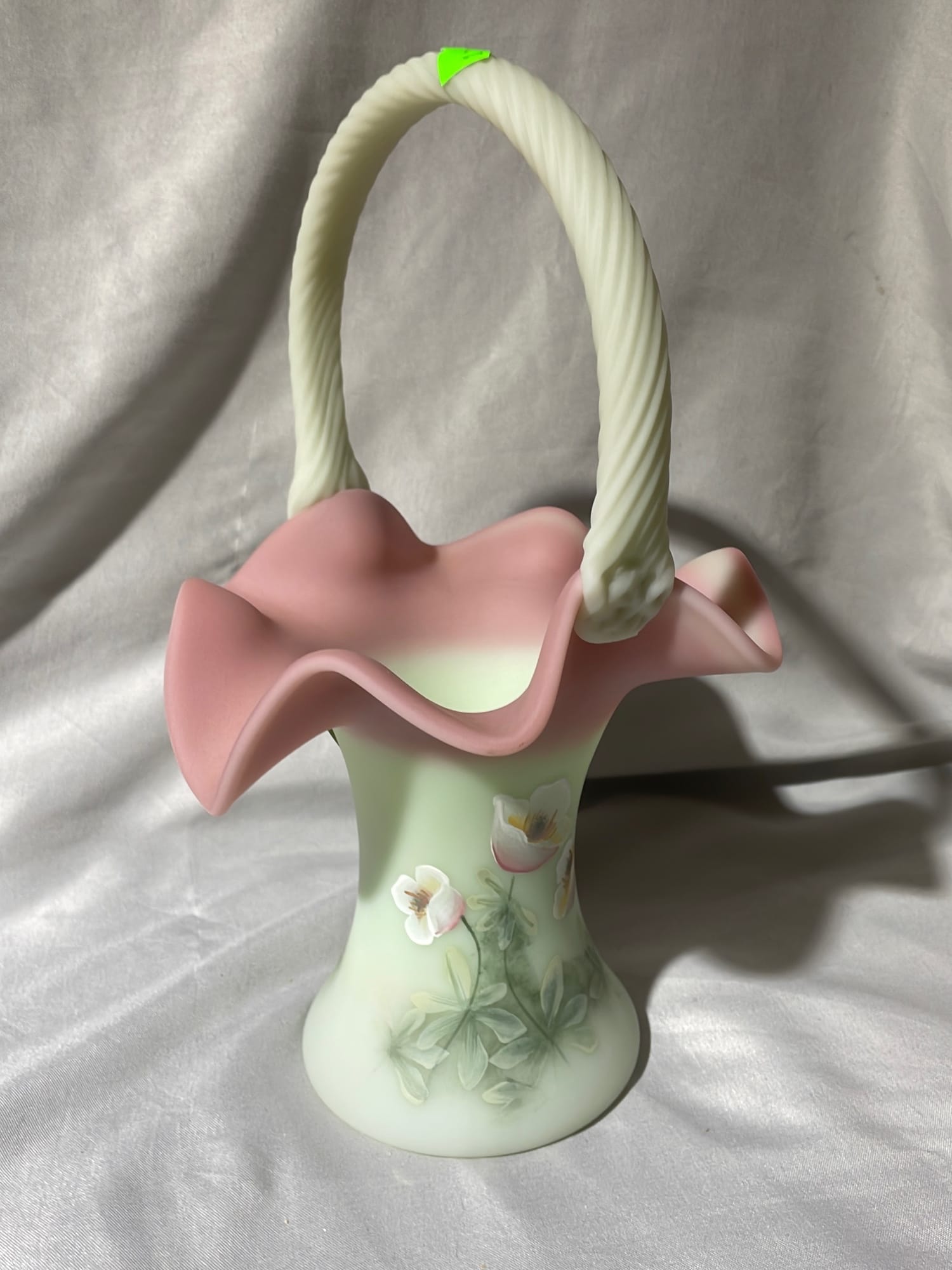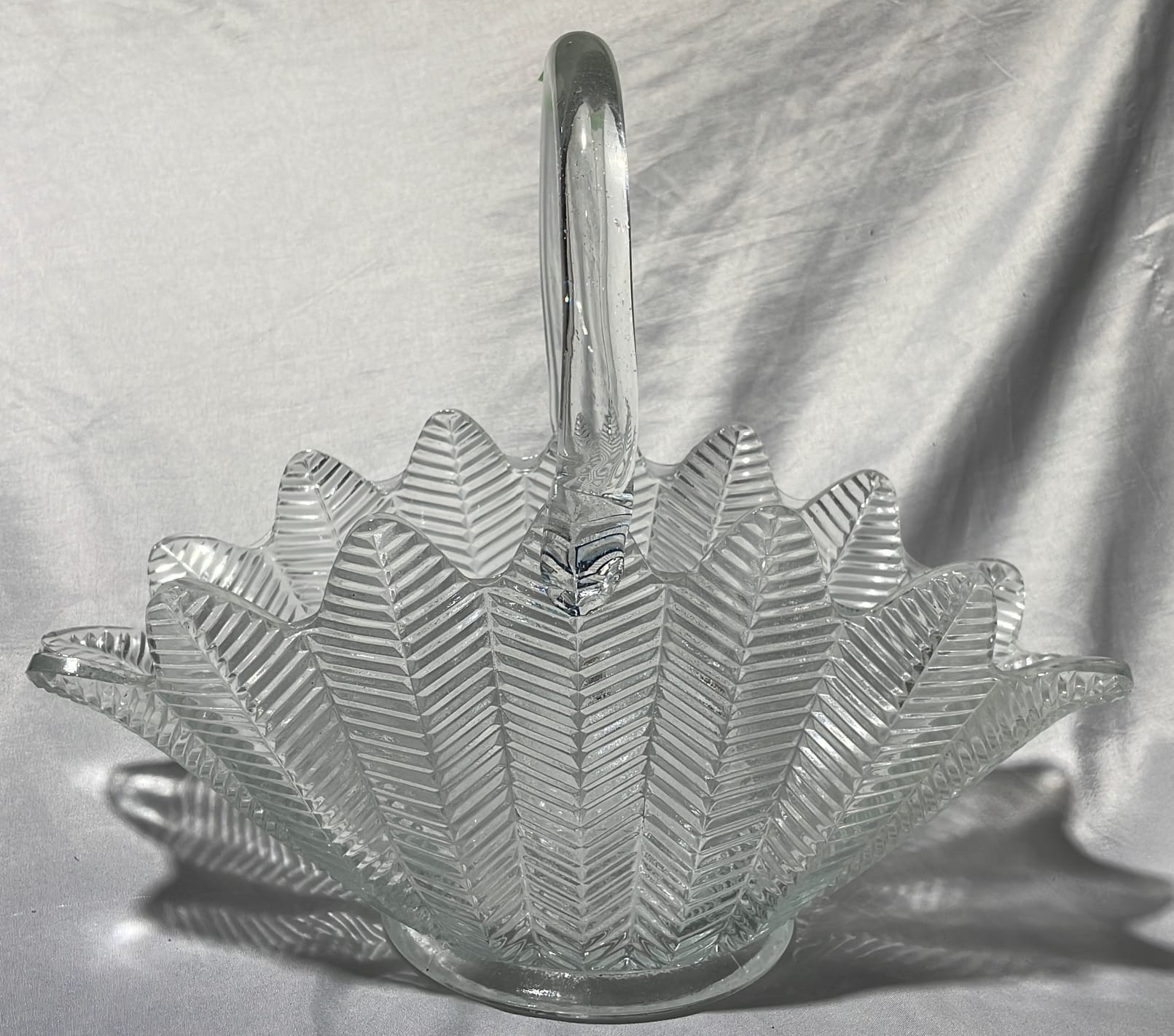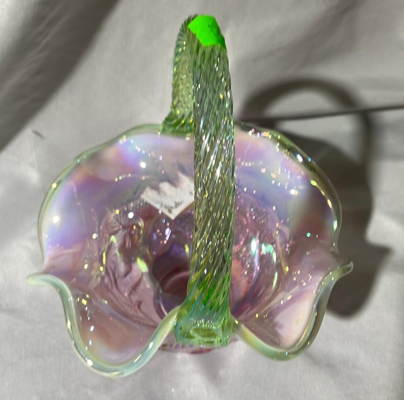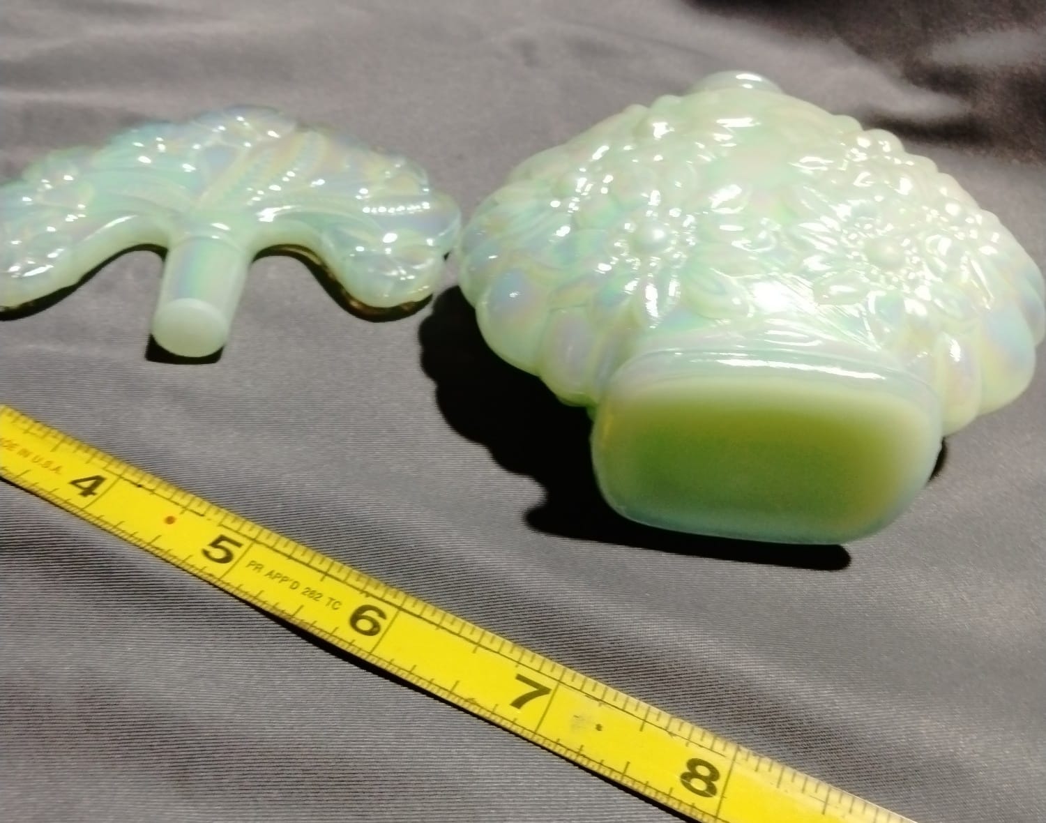 1243 Milk glass basket 4"x7", Fenton silver crest leaf dish 8"