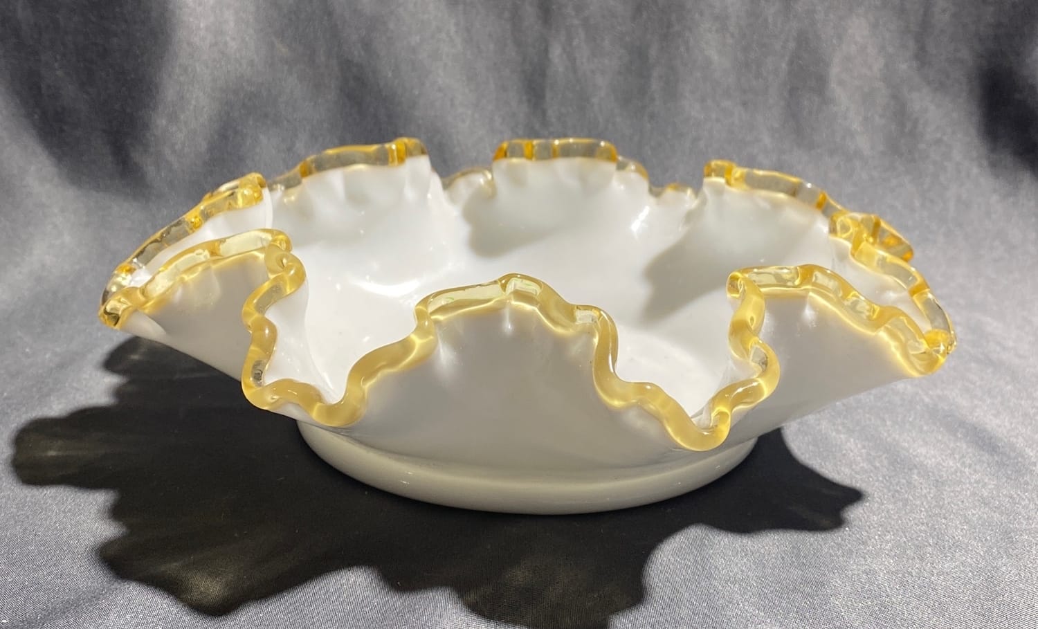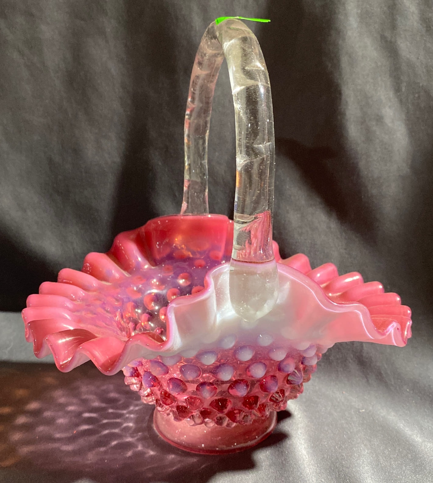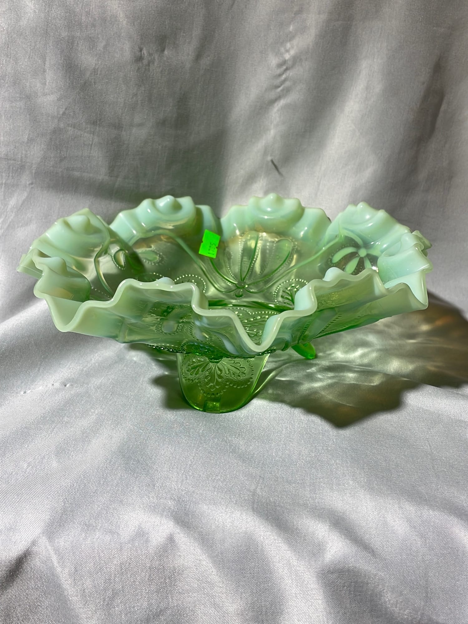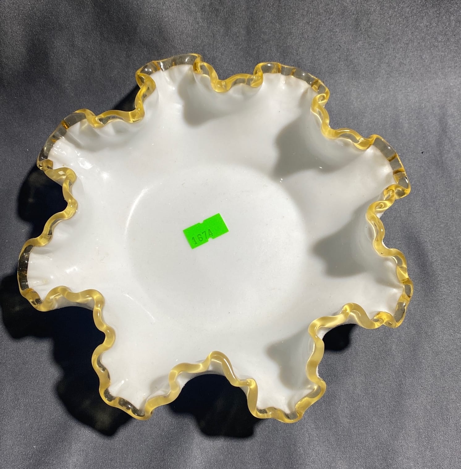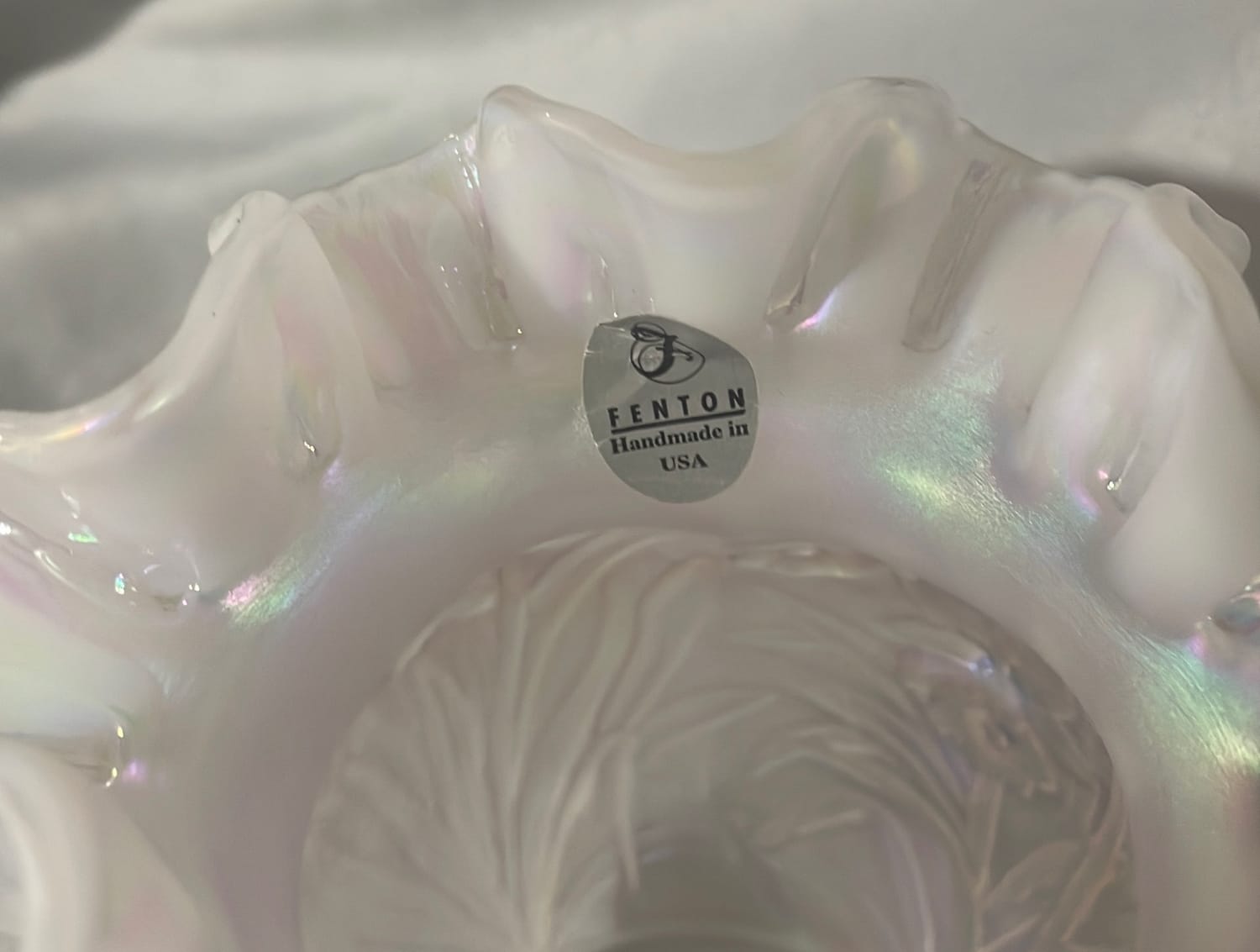 1243 Milk glass basket 4"x7", Fenton silver crest leaf dish 8"