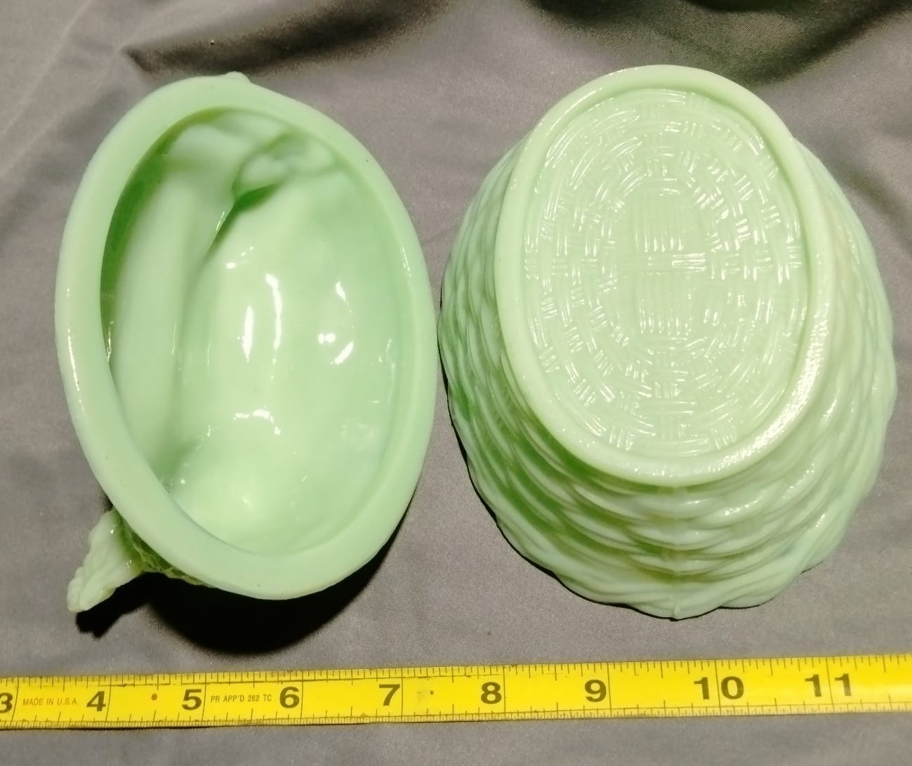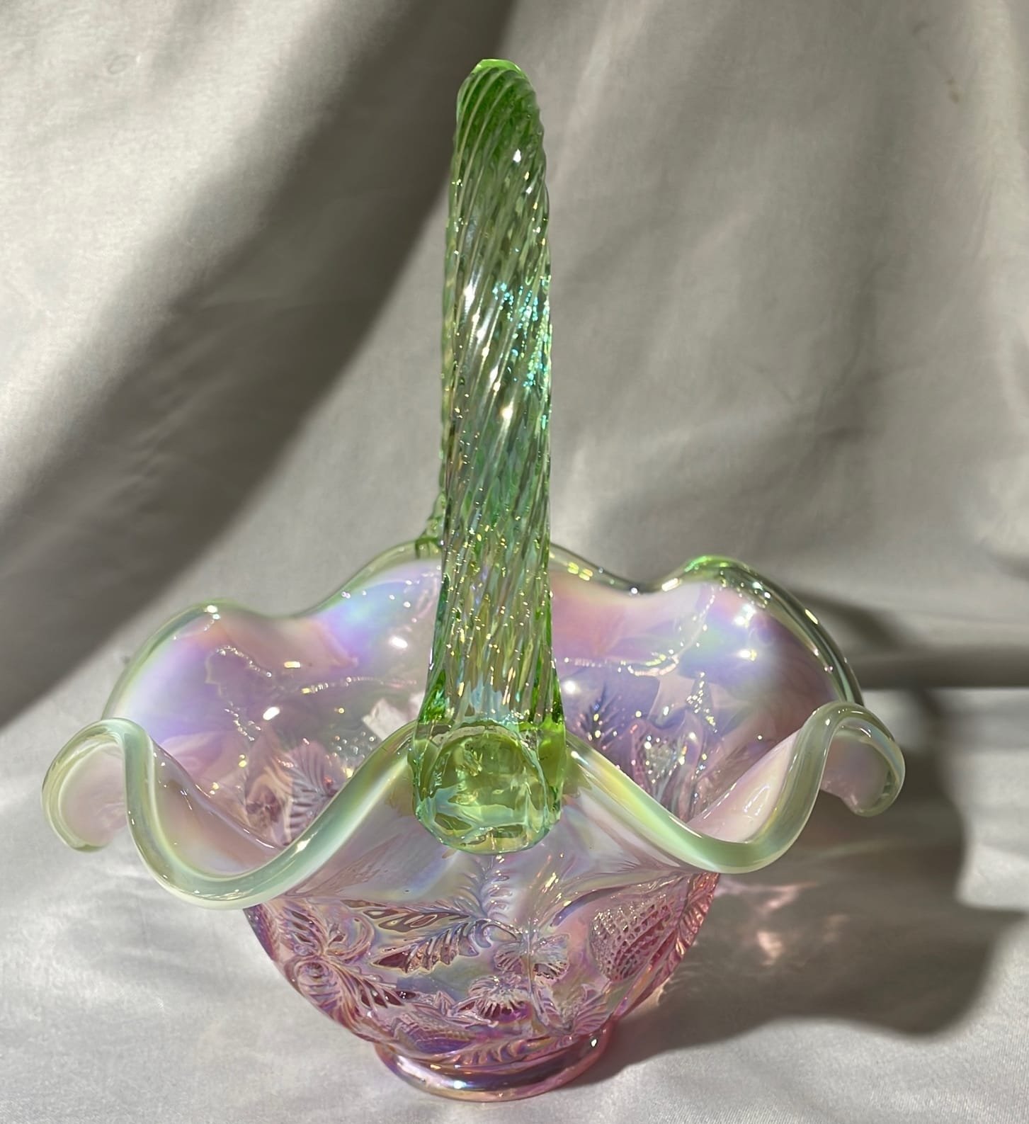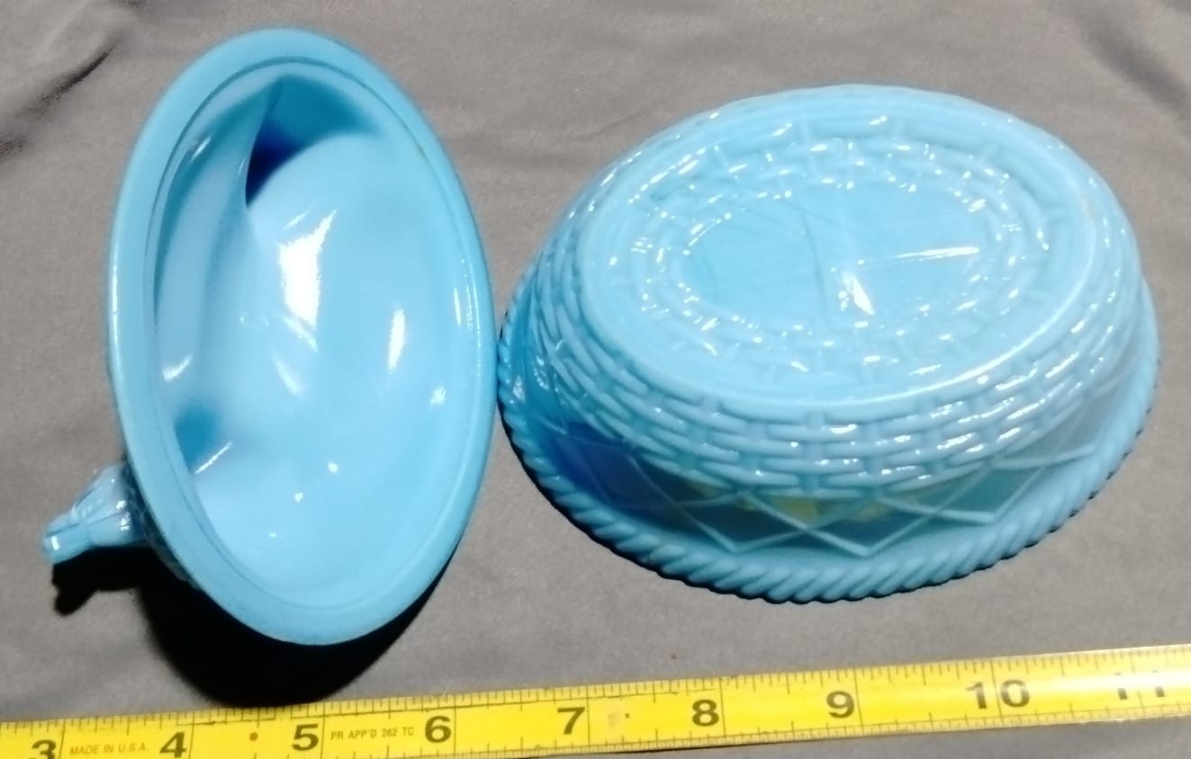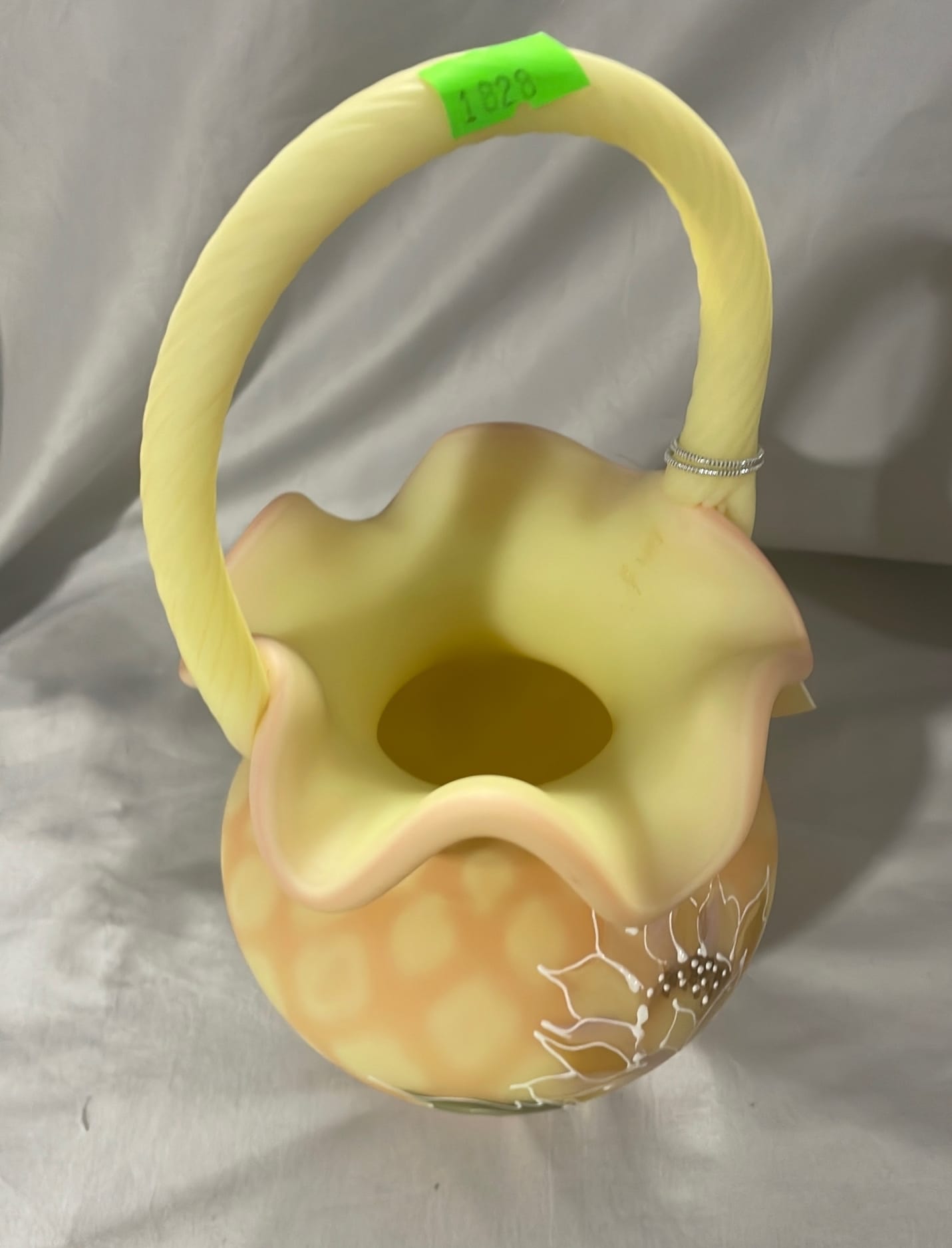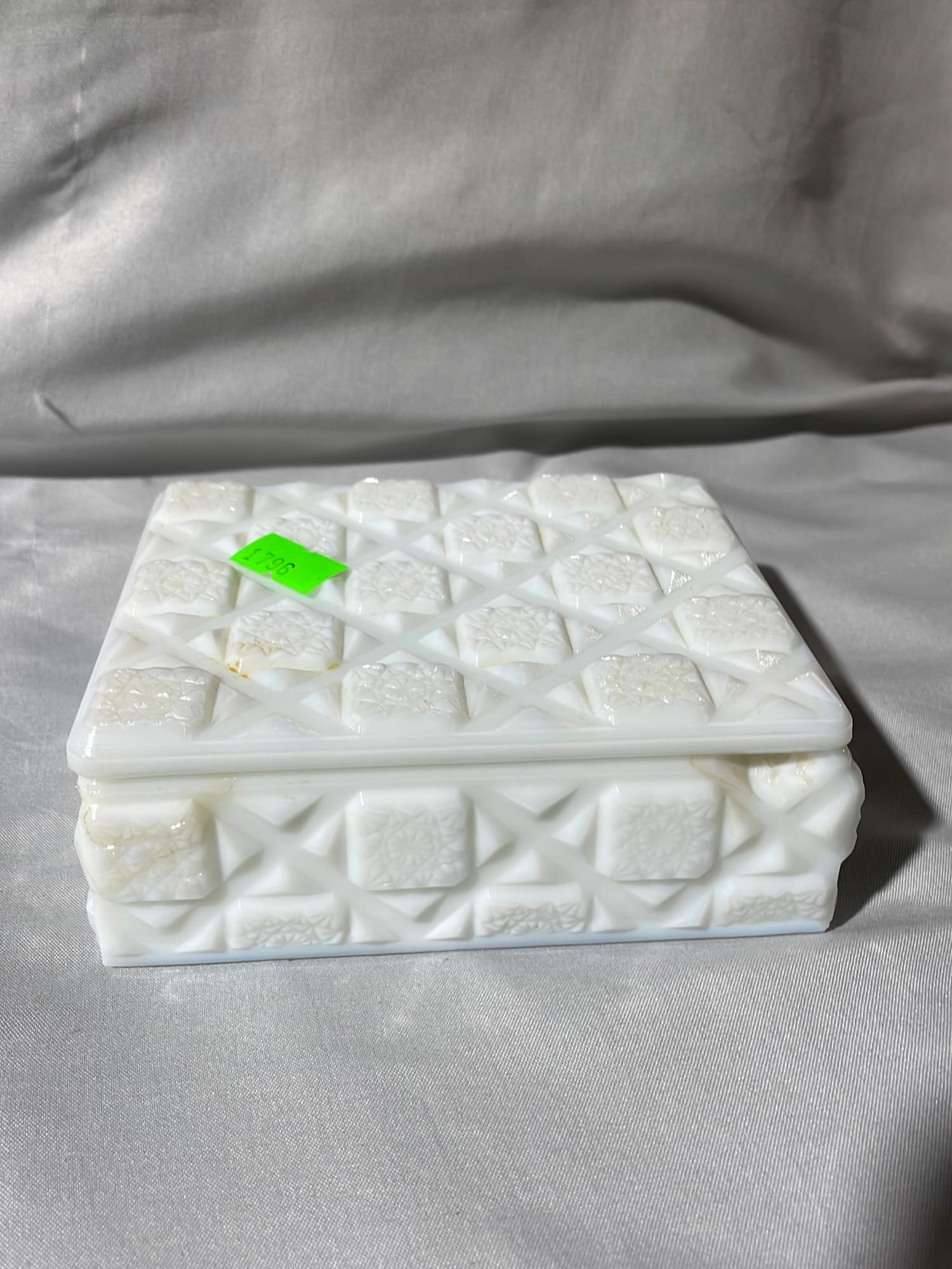 1243 Milk glass basket 4"x7", Fenton silver crest leaf dish 8"