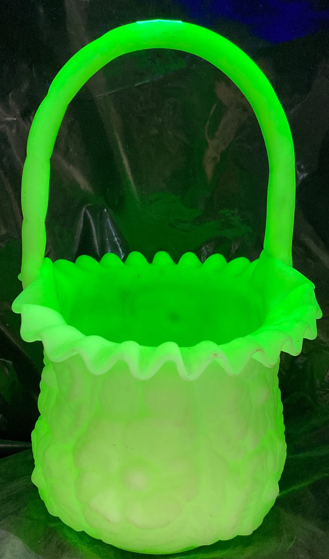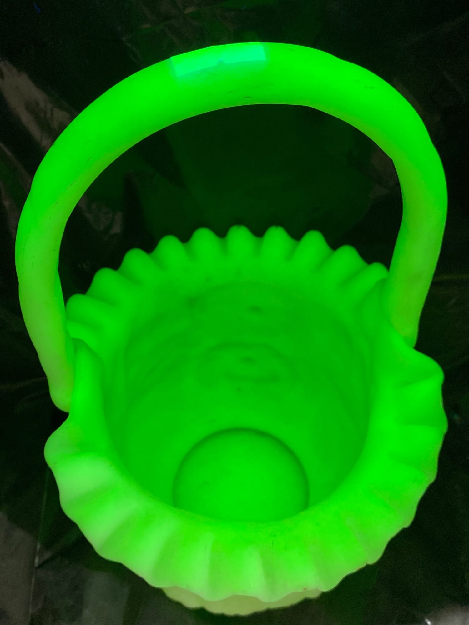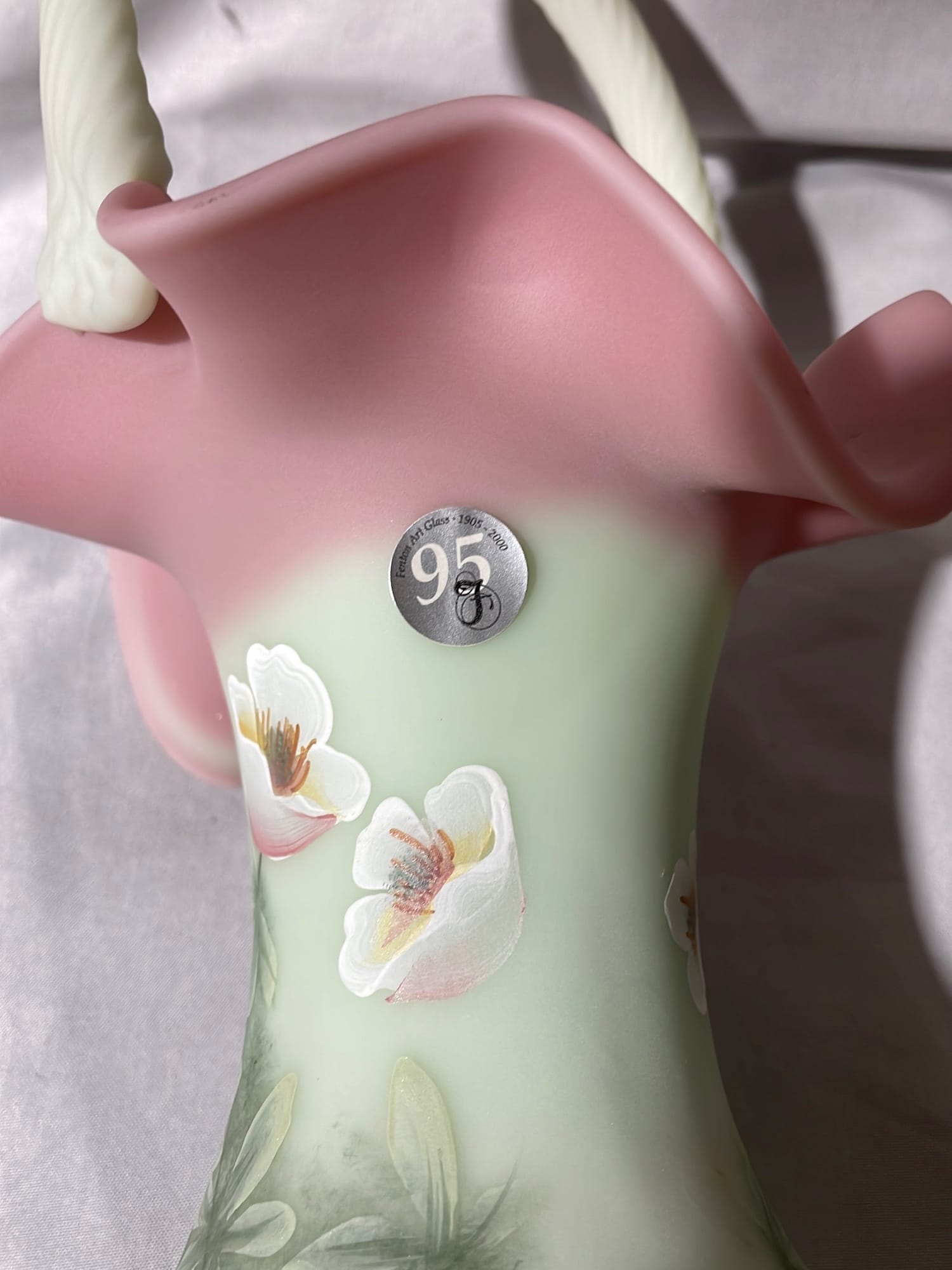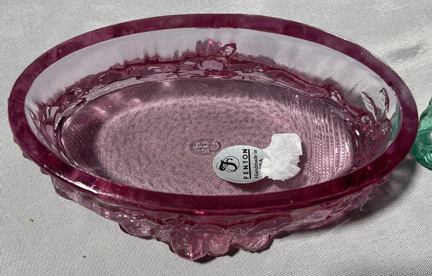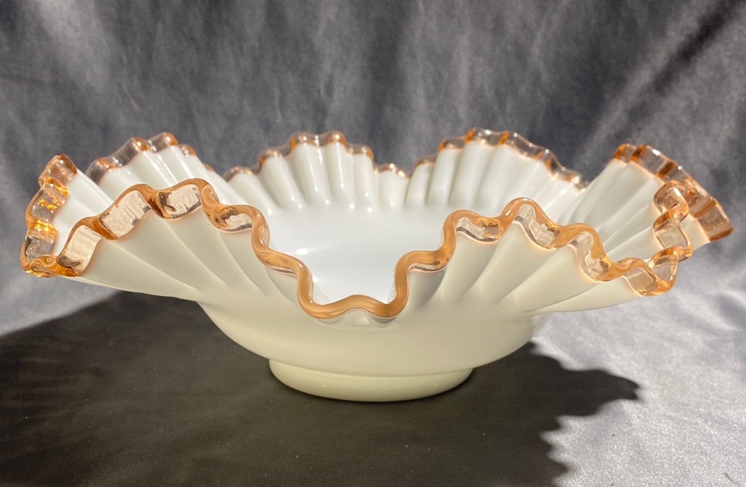 1243 Milk glass basket 4"x7", Fenton silver crest leaf dish 8"