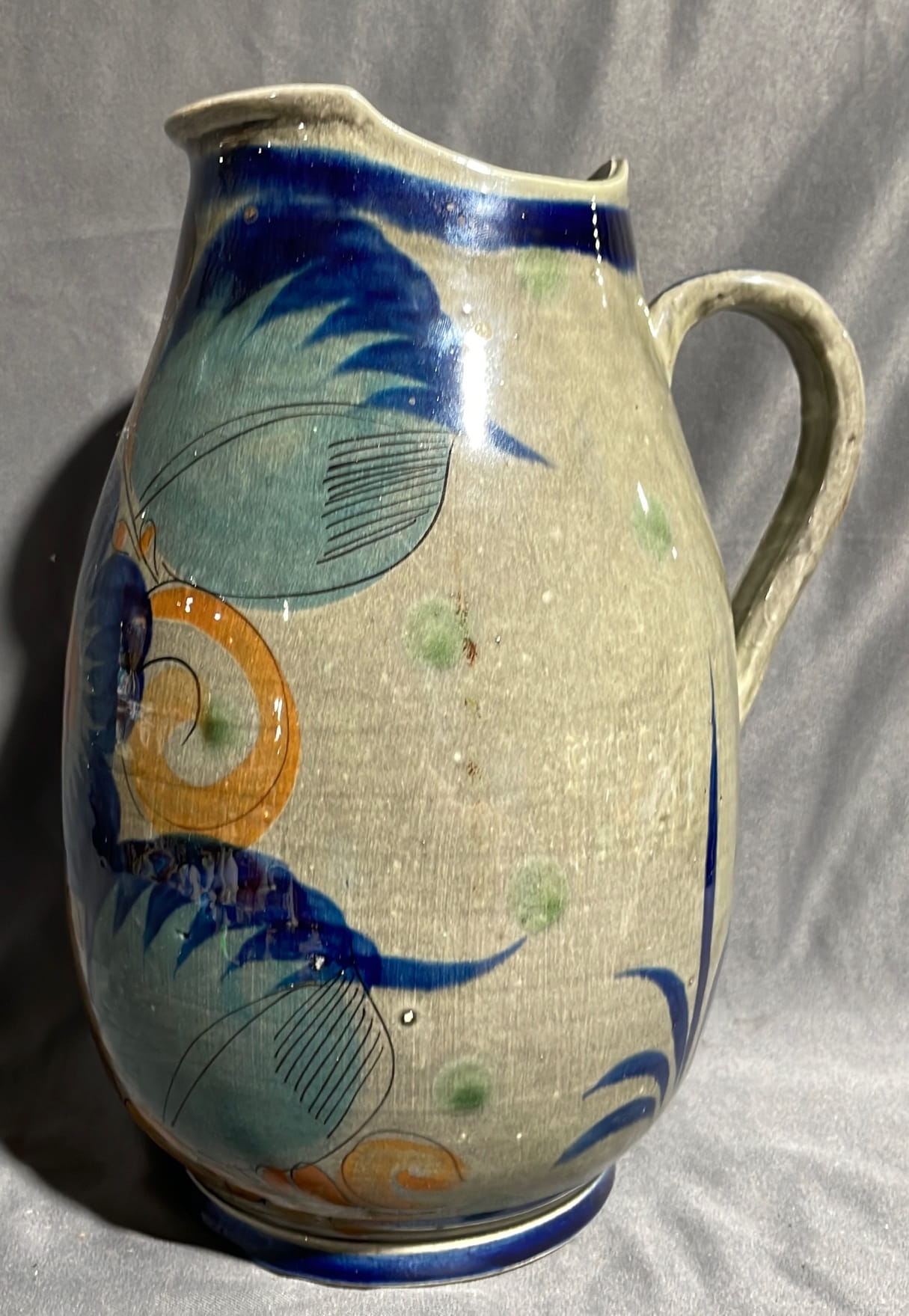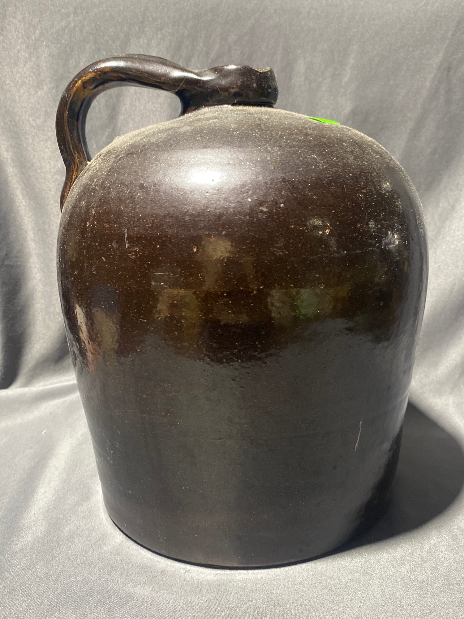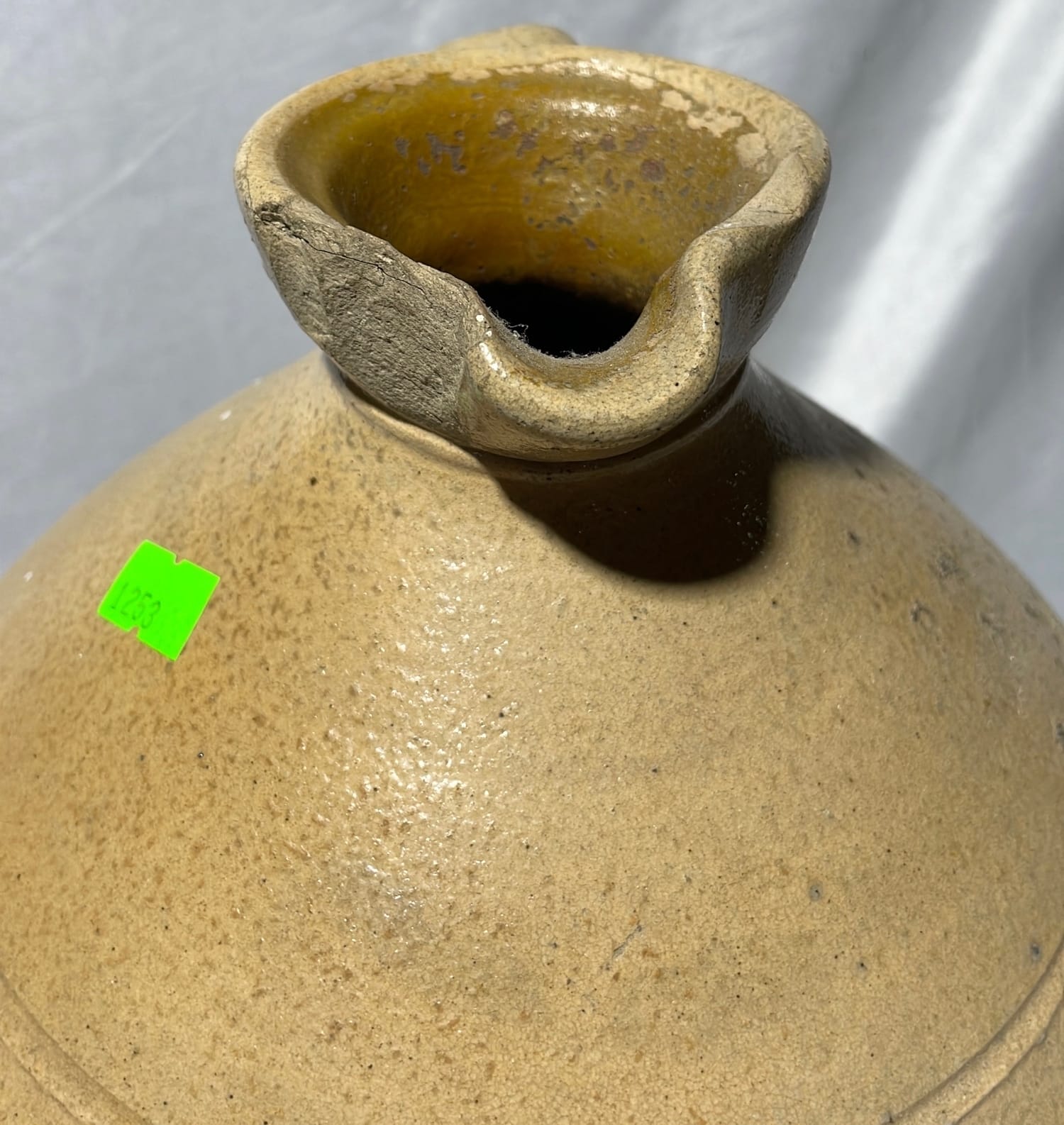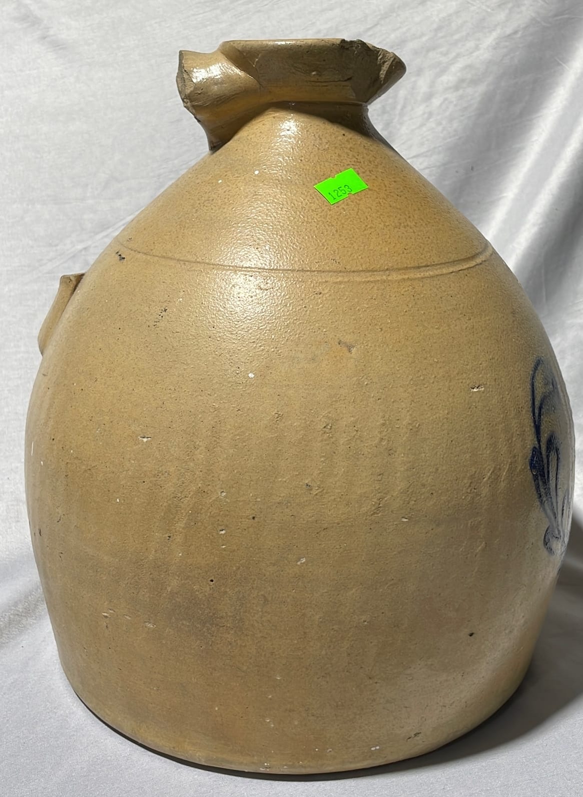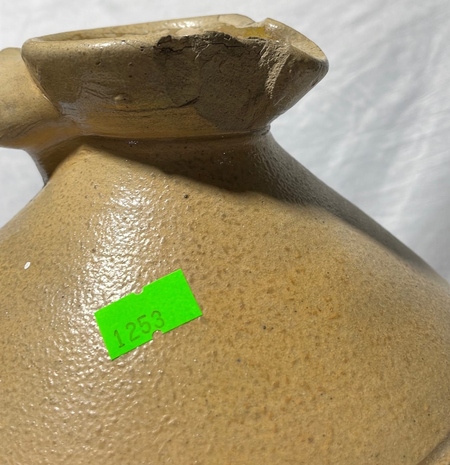 1253 Stoneware jug, handle is broken and top is damaged 7"x13"